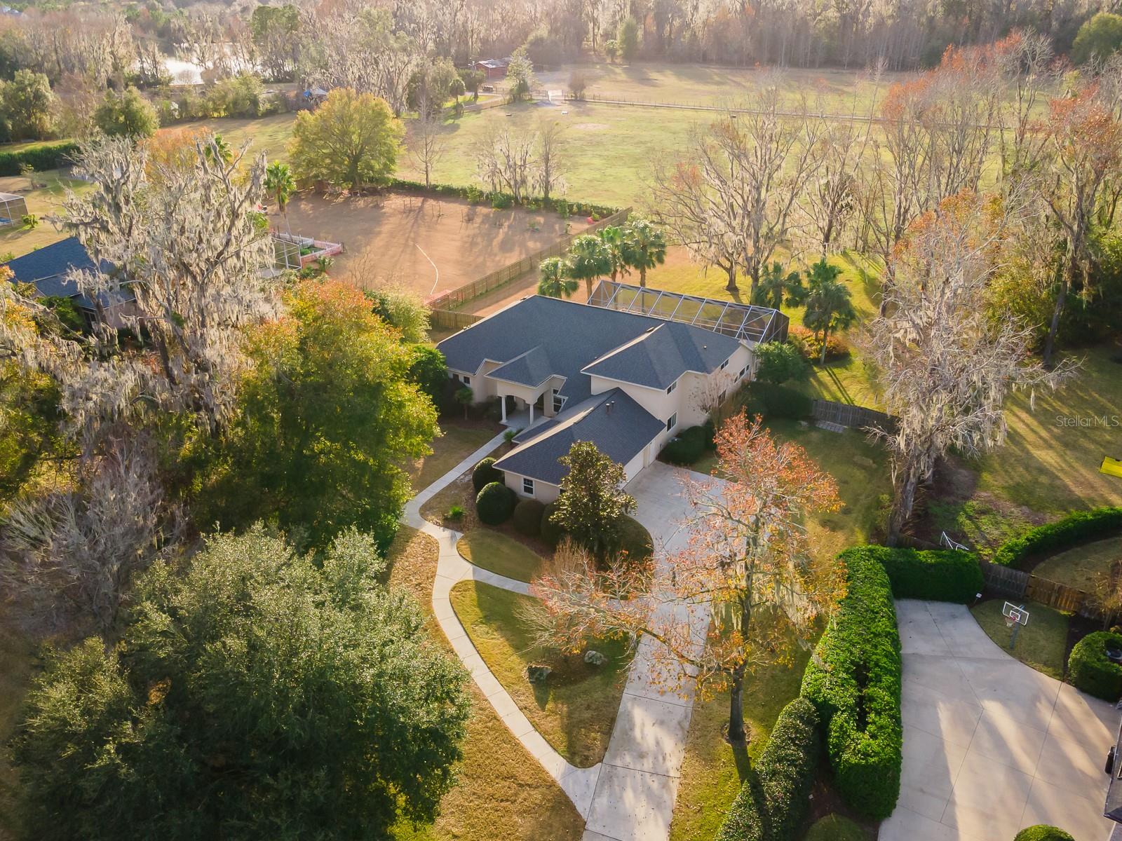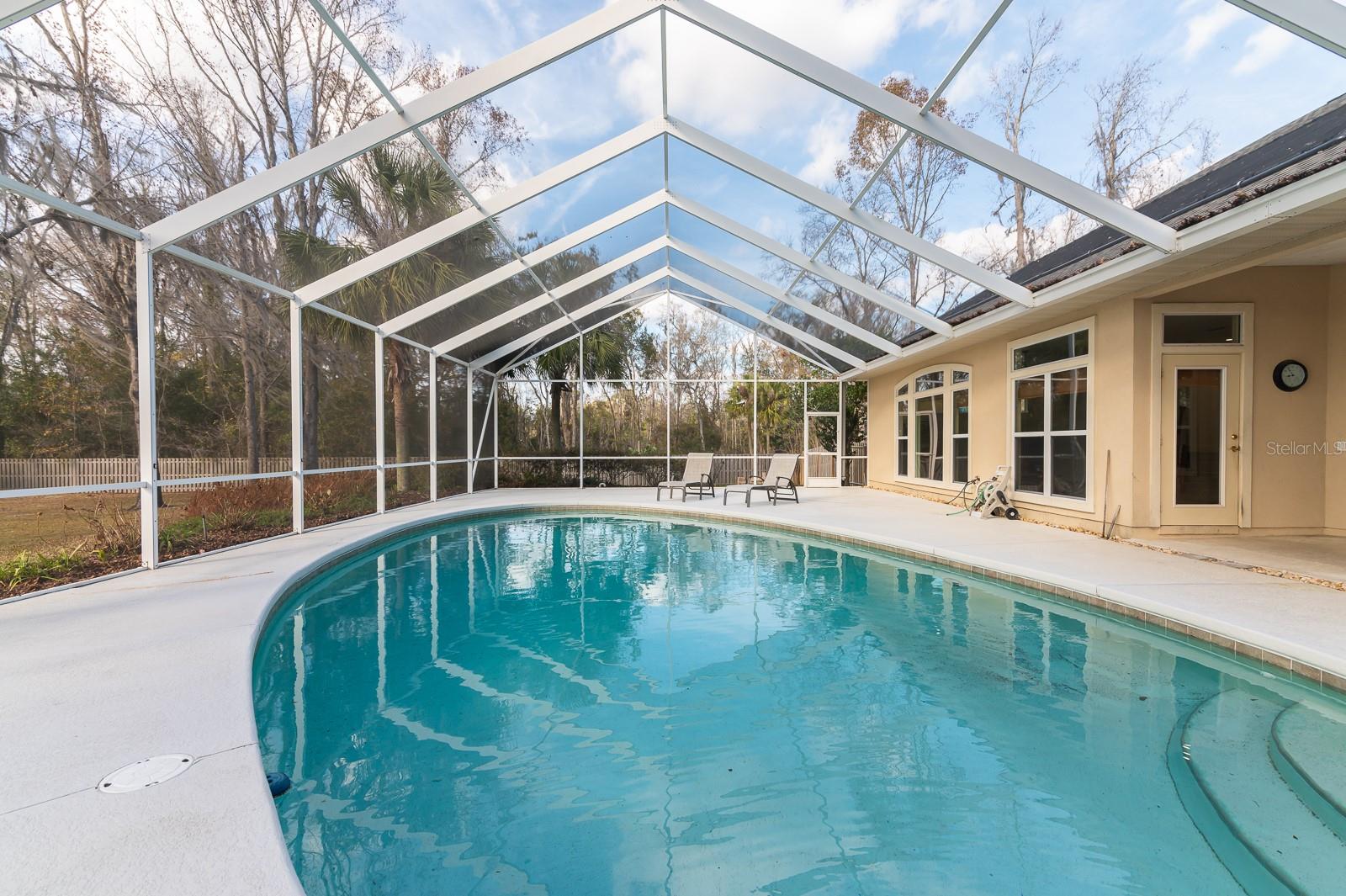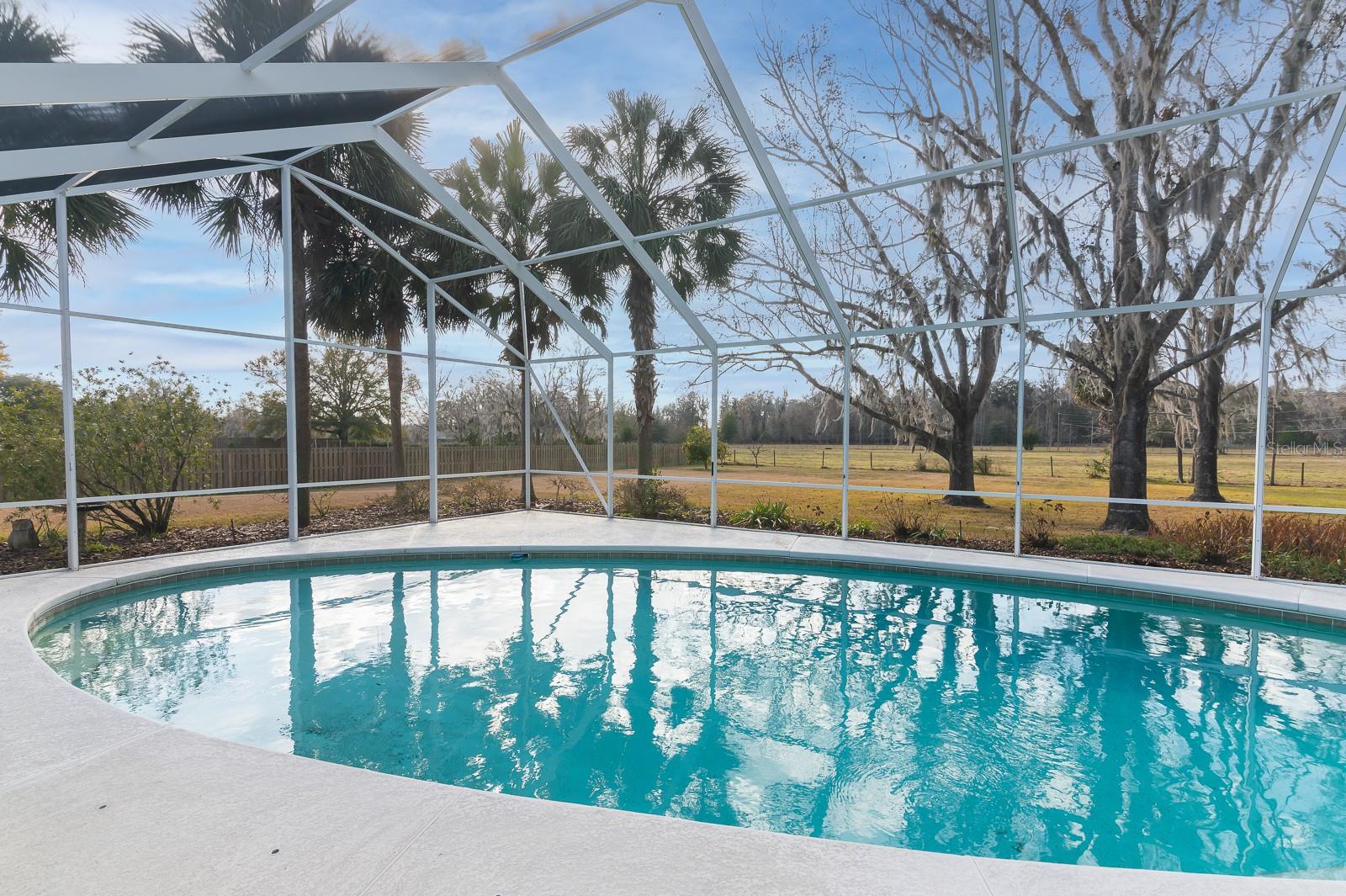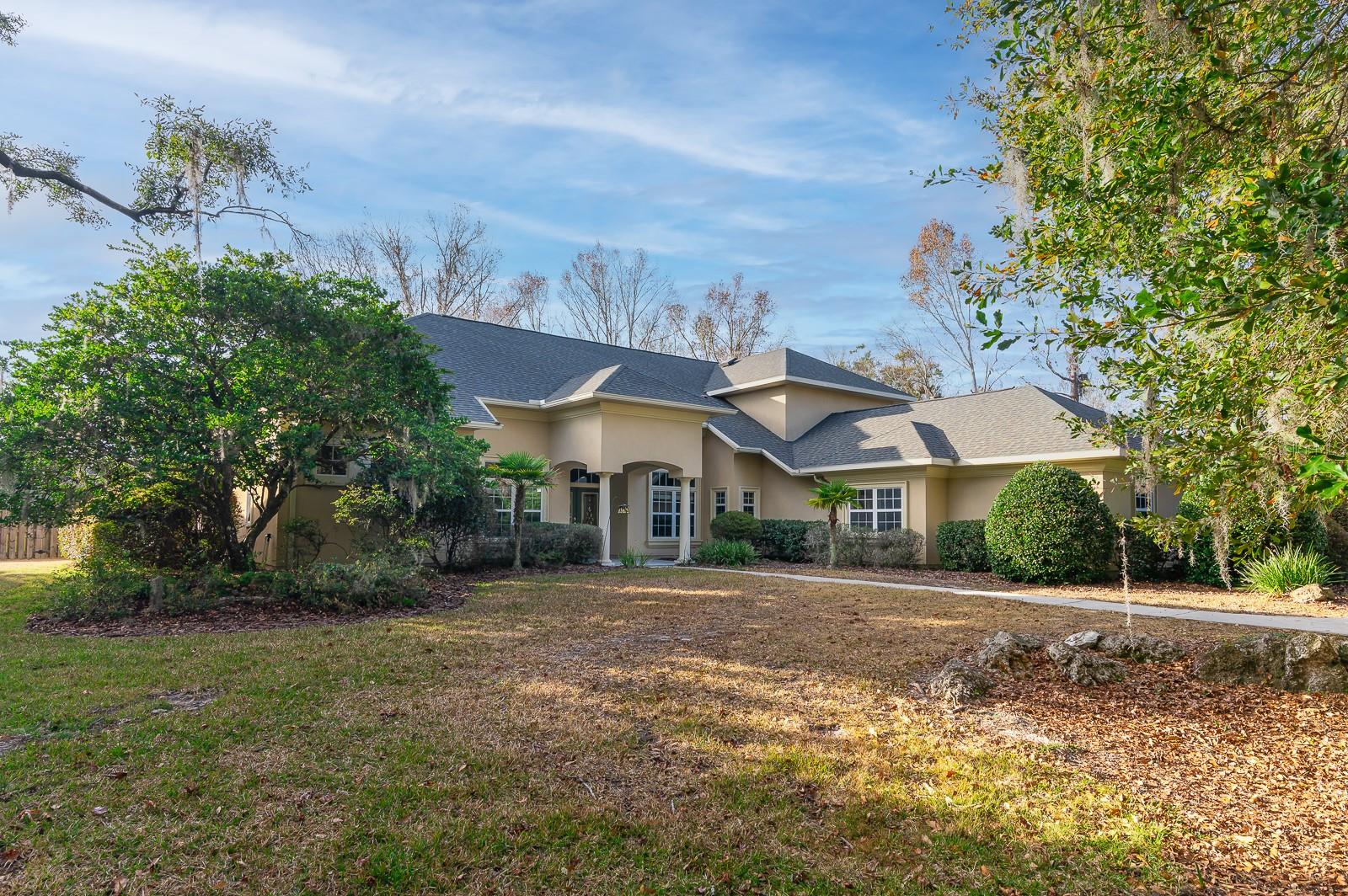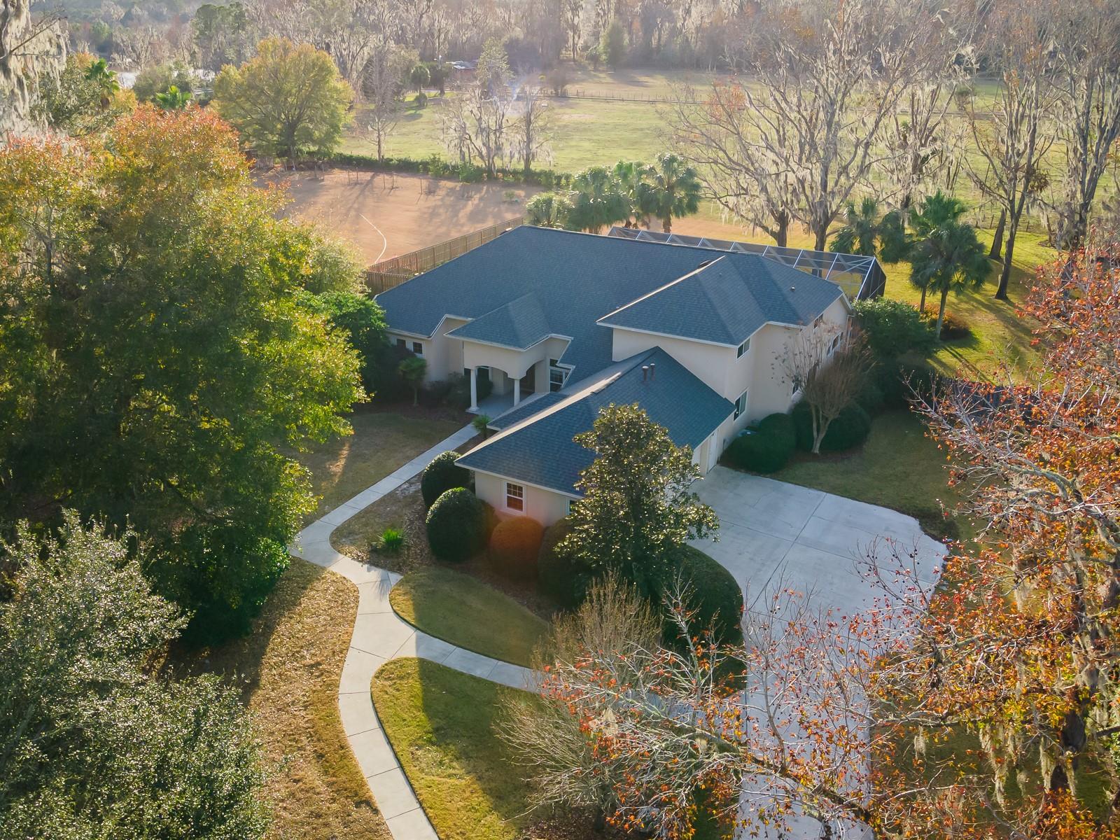 In the exclusive gated neighborhood of Woodfield, discover this exquisite 6 bedroom, 4 bath home on an over-sized 1.33 acre private lot. This meticulously maintained estate features soaring 10 foot ceilings, a HUGE upstairs rec room (with a connected extra storage room), and a light-filled first floor primary suite with a closet that would please any fashionista! Three more spacious bedrooms are on the first floor: one near the primary suite, perfectly situated to be an executive office, and the other two downstairs bedrooms are in their own separate wing (connected by a bathroom), lending itself to be the perfect set up for a private mother-in-law suite. The updated gourmet kitchen with modern appliances is open and inviting, with an oversized quartz island, ample cabinetry, and a coffee bar! A formal dining room and living room are perfect for entertaining, and guests can stay in the two additional airy bedrooms upstairs (joined by a lovely Jack and Jill bath). A custom stone gas fireplace adds warmth and ambiance to the family room, and the oversized windows provide a perfect view of the welcoming, solar-heated pool, the large screened patio, and the extensive backyard, which backs up to a serene and scenic pasture. Enjoy peace of mind with a newer roof (2022) and two newer HVACs (2020 and 2024). This estate is not only in close proximity to top schools, shopping, dining, parks, the University of Florida and UF Health/Shands, but also provides tranquility and privacy for those seeking the best of both worlds! Homes in this neighborhood rarely come on the market, so come tour this home before it's gone!