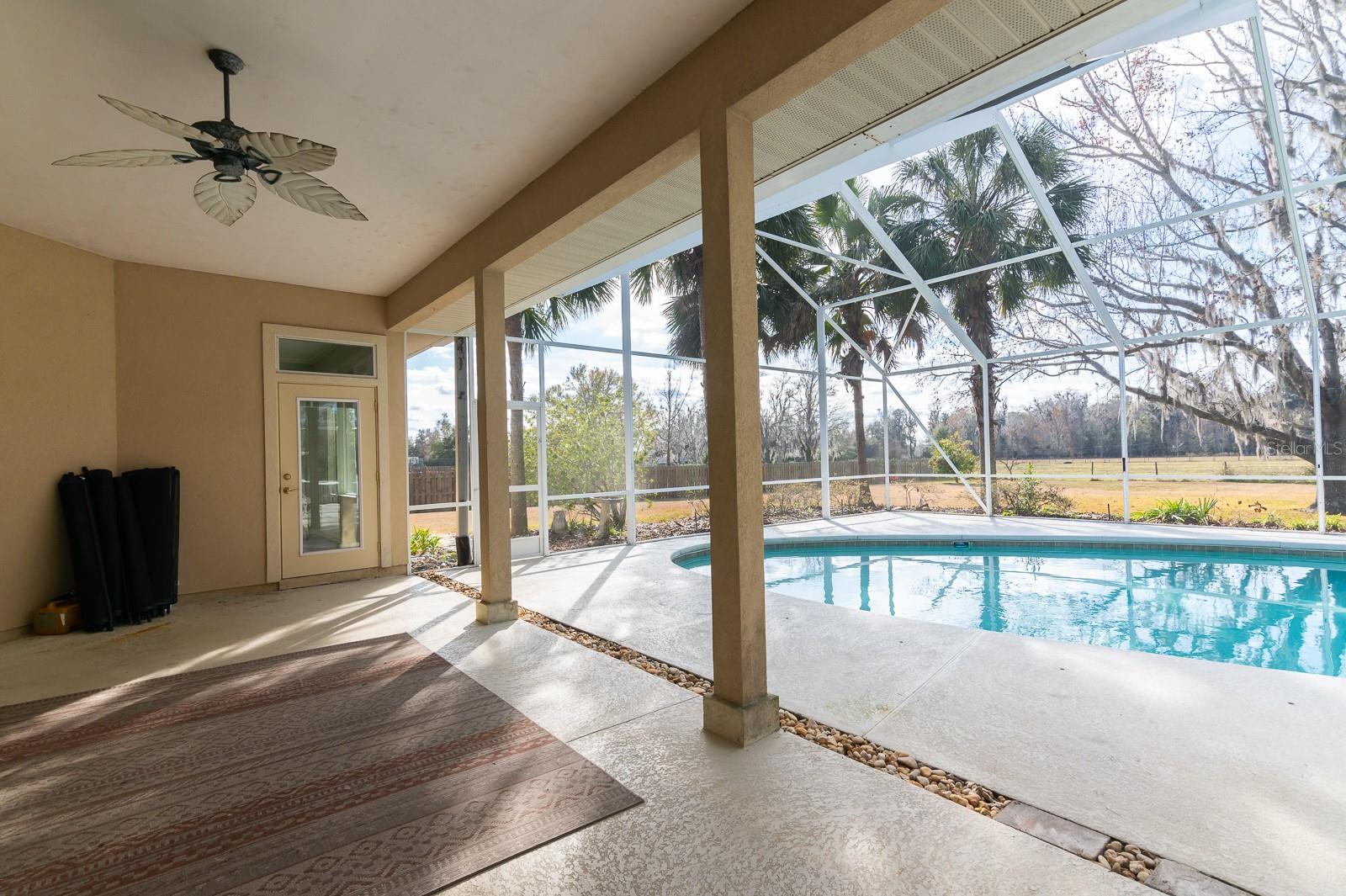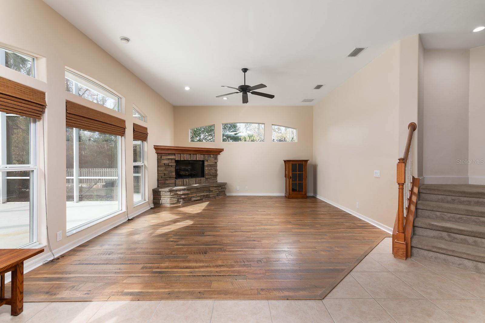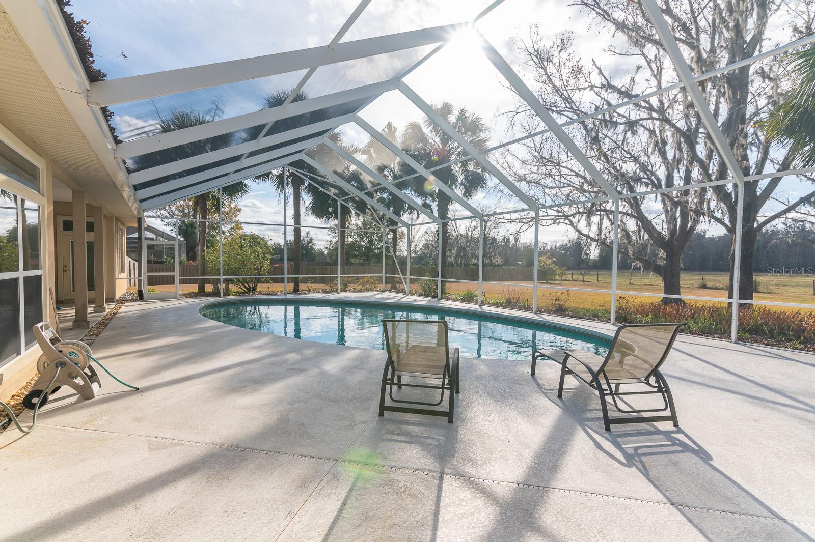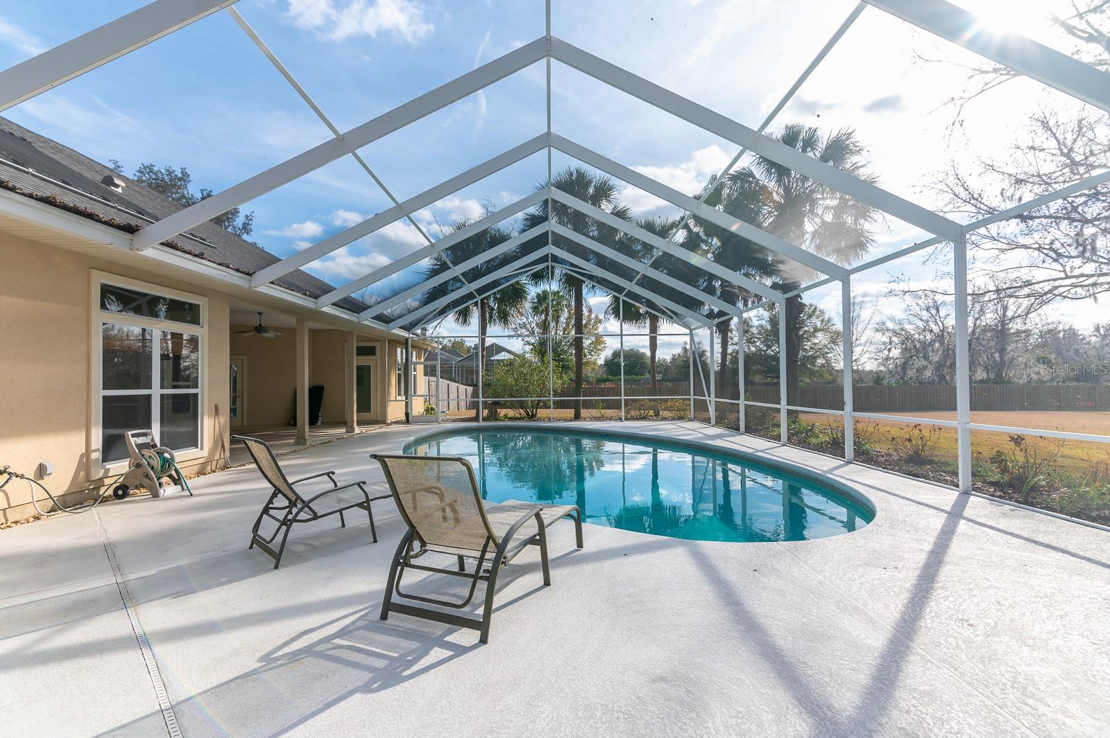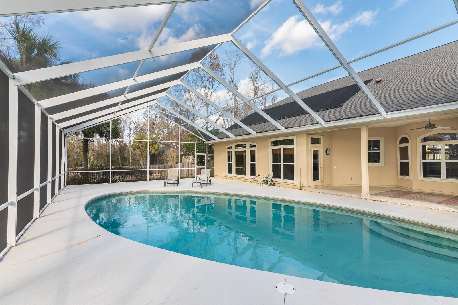 In the exclusive gated neighborhood of Woodfield, discover this exquisite 6 bedroom, 4 bath home on an over-sized 1.33 acre private lot. This meticulously maintained estate features soaring 10 foot ceilings, a HUGE upstairs rec room (with a connected extra storage room), and a light-filled first floor primary suite with a closet that would please any fashionista! Three more spacious bedrooms are on the first floor: one near the primary suite, perfectly situated to be an executive office, and the other two downstairs bedrooms are in their own separate wing (connected by a bathroom), lending itself to be the perfect set up for a private mother-in-law suite. The updated gourmet kitchen with modern appliances is open and inviting, with an oversized quartz island, ample cabinetry, and a coffee bar! A formal dining room and living room are perfect for entertaining, and guests can stay in the two additional airy bedrooms upstairs (joined by a lovely Jack and Jill bath). A custom stone gas fireplace adds warmth and ambiance to the family room, and the oversized windows provide a perfect view of the welcoming, solar-heated pool, the large screened patio, and the extensive backyard, which backs up to a serene and scenic pasture. Enjoy peace of mind with a newer roof (2022) and two newer HVACs (2020 and 2024). This estate is not only in close proximity to top schools, shopping, dining, parks, the University of Florida and UF Health/Shands, but also provides tranquility and privacy for those seeking the best of both worlds! Homes in this neighborhood rarely come on the market, so come tour this home before it's gone!