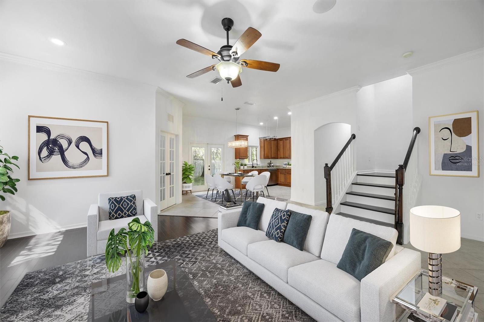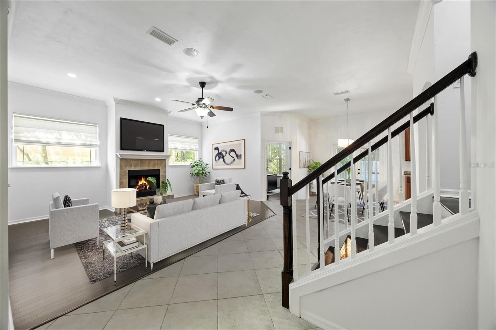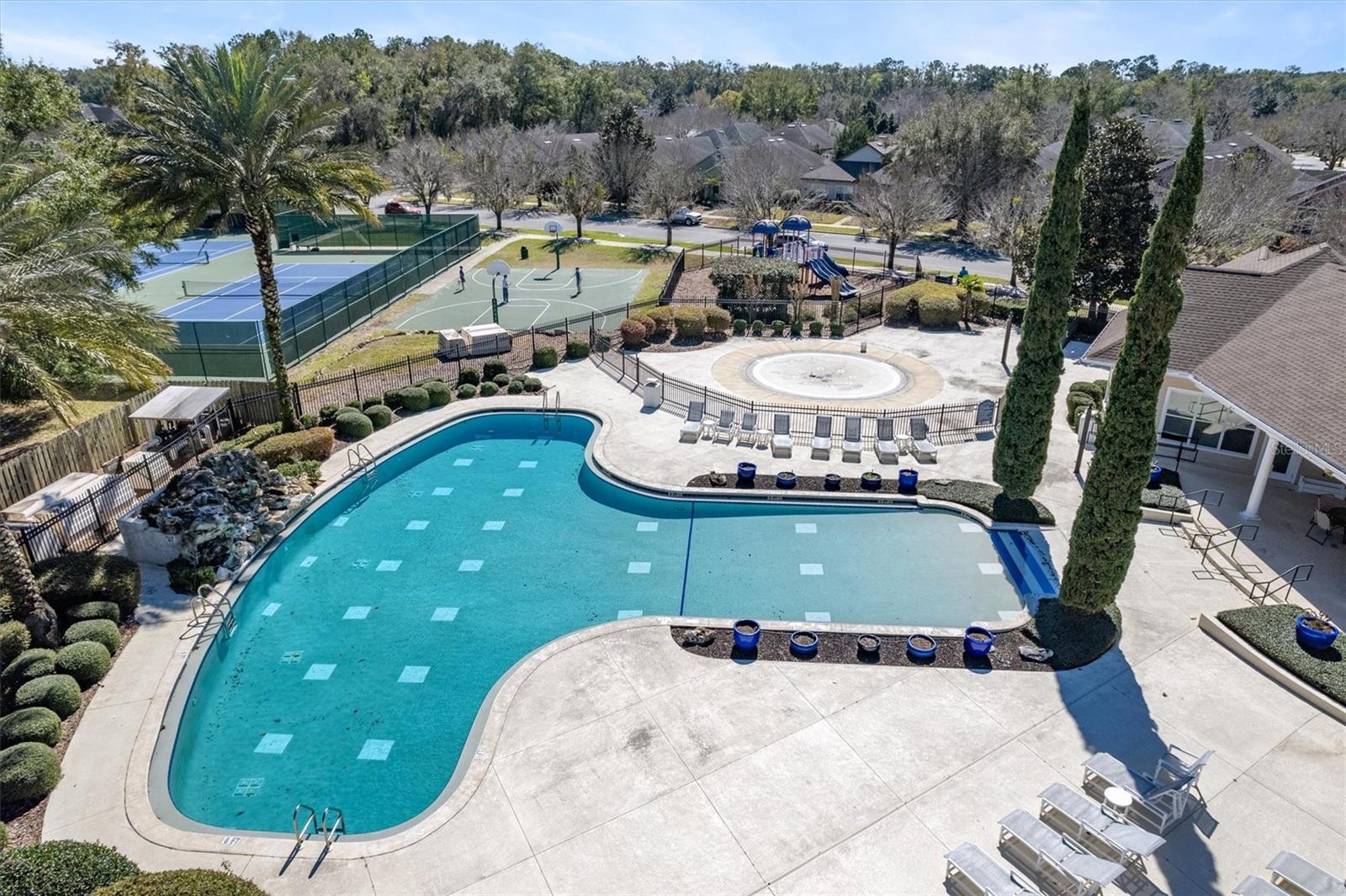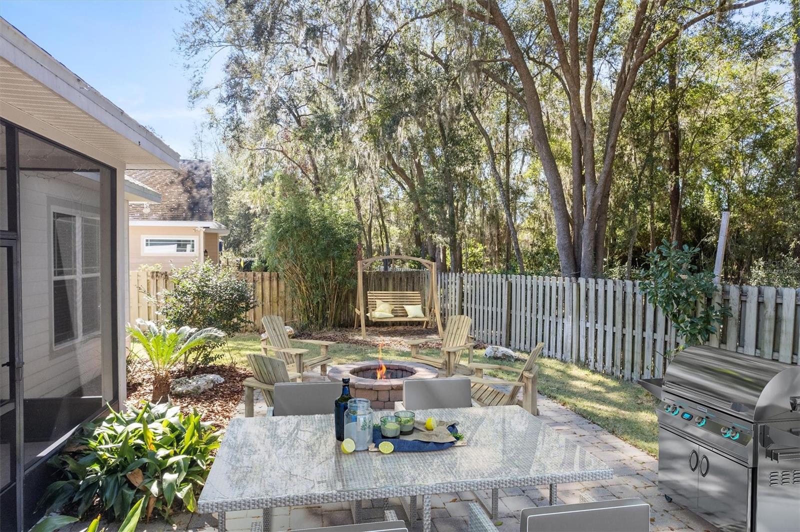 One or more photo(s) has been virtually staged. **The seller is offering to PAY one full year of HOA dues with an acceptable offer.** WELCOME TO This stunning 5-bedroom, 3 FULL bath home that features an open floor plan with elegant hardwood floors, ceramic tile, and fresh paint throughout. The updated kitchen boasts a butcher block island, granite countertops, stainless steel appliances, and a gas stove. Other highlights include updated lighting, crown molding, ceiling speakers, 10-foot ceilings, and a gas fireplace. The primary suite offers 2 closets, a jetted tub, separate shower, and dual vanities. Outside, enjoy a large paver patio with a fire pit, ideal for entertaining. Recent updates include a new roof & HVAC in (2019), Nest thermostat, tankless water heater (2023), and many more upgrades. Enjoy resort-style amenities—a beach-entry pool, fitness center, and clubhouse, with front yard maintenance covered by the HOA. Conveniently located near UF, Shands & NFRMC. Call today for your VIP TOUR!