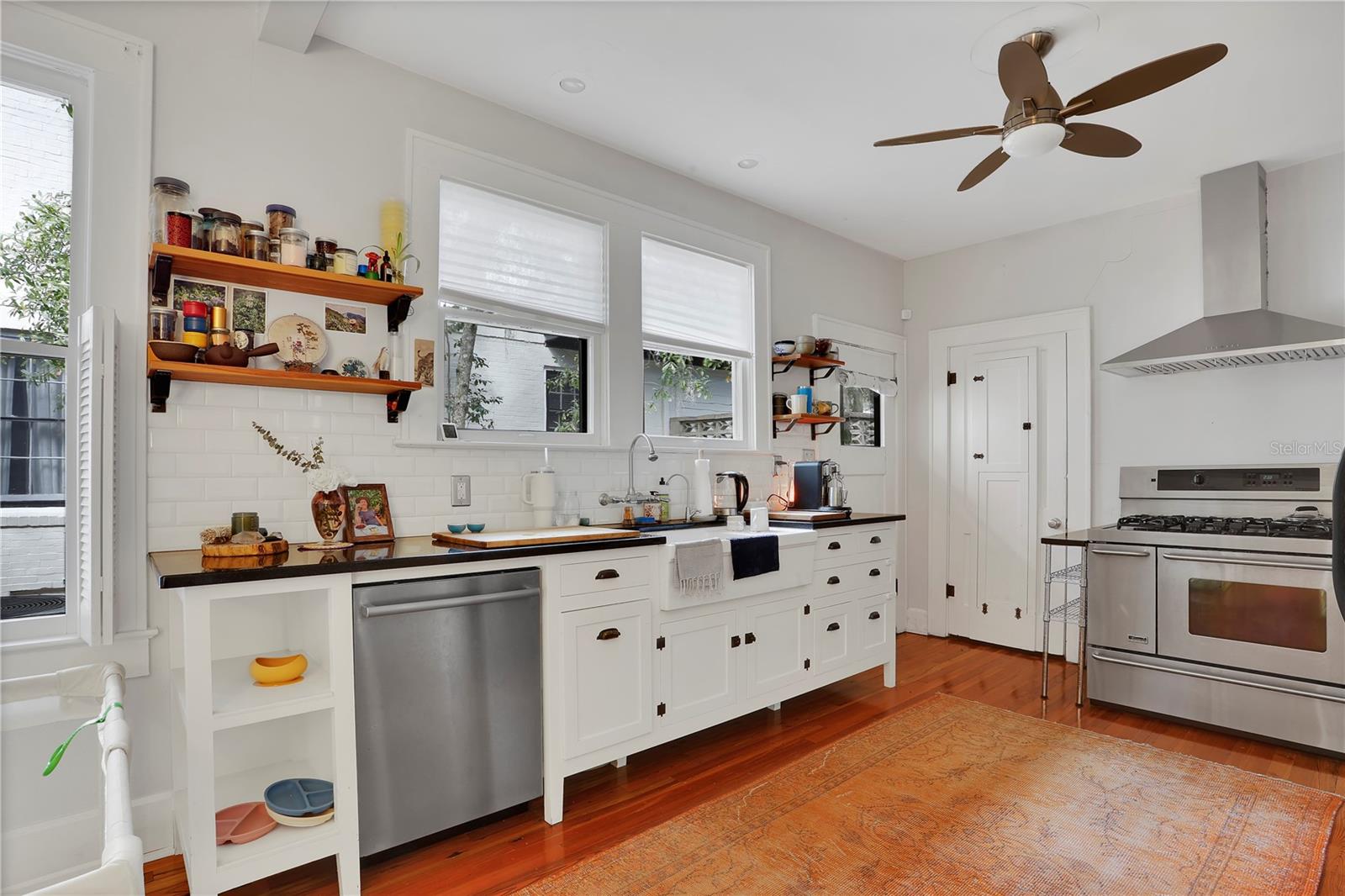 Back on the market due to no fault of the seller!! Discover the charm of this unique 3-bedroom, 2-bathroom Duckpond home built in 1927. The large front porch opens to a light-filled and spacious living room. A dining room just off of this flows into the gorgeous kitchen. Set along the historic Boulevard this home comes complete with a detached artist's studio and separate garage. It is set along the historic Boulevard on a spacious, private lot overlooking the infamous and tranquil Duckpond. This home blends timeless character with thoughtful updates, including an inviting kitchen remodeled in 2015 featuring handcrafted cabinets, granite countertops, heart pine shelving with custom brackets, an Italian farmhouse sink with drainboards, stainless steel appliances, and a beautiful gas range. Original 100-year-old heart pine floors, warm sconces, and a wood-burning fireplace add to the home's vintage appeal. The property offers exciting development potential, allowing for additional structures to be added on the spacious lot. Relax on the front porch under the shade of a magnificent live oak, surrounded by a carefully curated camellia garden. Practical upgrades include a 2017 HVAC system, a 2013 tankless gas water heater, cedar-lined closets, updated exterior paint and screens in 2020, and plumbing improvements in the same year. With its blend of history, charm, and modern comforts, this home is a truly special find.
