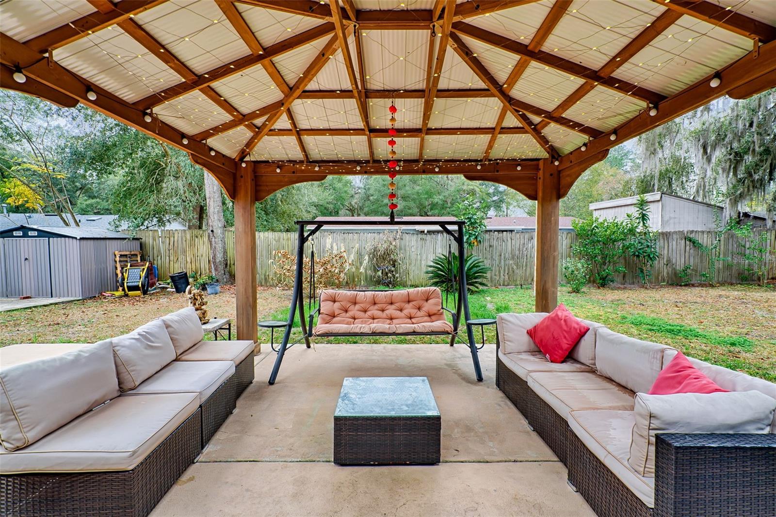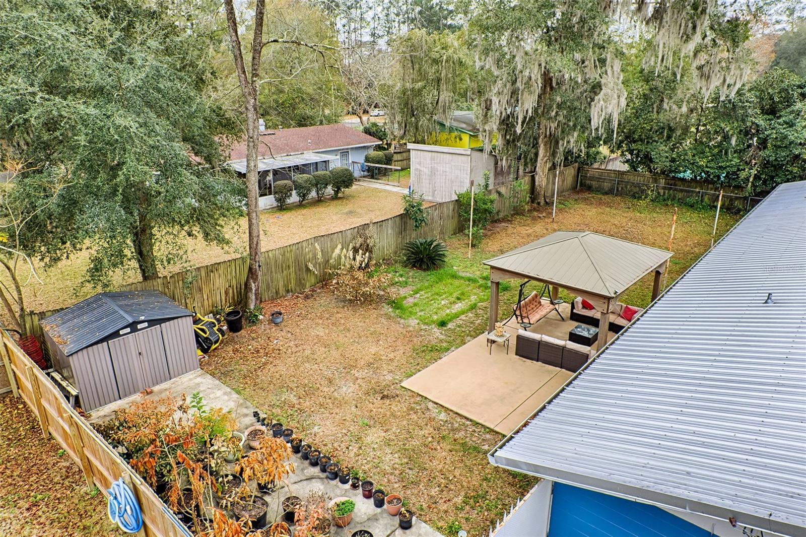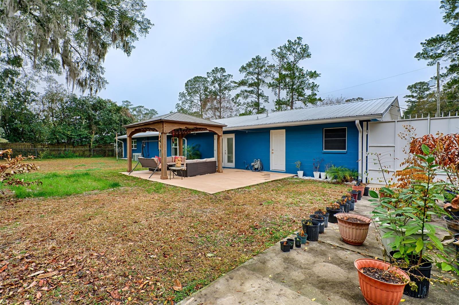 WOW! Price Improvement! Beautifully Updated 4-Bedroom Home with Office and No HOA in Prime NW Gainesville Location Discover this beautifully updated 4-bedroom, 2-bathroom concrete block home with a versatile bonus room/office, ideally situated on a spacious 0.23-acre lot in the sought-after Benwood Estates neighborhood. With no HOA fees and a prime location near top-rated schools, shopping, dining, and medical facilities, this 1,788 sq. ft. residence offers both convenience and comfort. Step inside to find a thoughtfully designed layout, starting with a welcoming foyer that leads to the expansive living room, perfect for gathering and entertaining. The upgraded chef-inspired kitchen is a culinary delight, featuring stainless steel appliances, rich granite countertops, and custom lighting. A formal dining room adjoins the kitchen, with elegant French doors opening to the fenced backyard—a serene retreat with a gazebo-covered patio, lush greenery, and a variety of fruit trees, including peach, pear, guava, pomegranate, loquat, tangerine, and lime. The primary suite boasts an updated ensuite bath with high-end finishes, while the additional bedrooms are well-sized and complemented by an upgraded guest bath. Easy-to-maintain tile flooring flows throughout the main living areas, while gorgeous vinyl plank flooring enhances the comfort of the bedrooms—no carpeting! This meticulously maintained home features fresh interior and exterior paint and numerous upgrades, including a newer metal roof, gutters, windows, water heater, storage shed, garage door, sprinkler system, and more. The attached two-car garage offers ample storage, plus an additional utility/laundry room for added convenience. Property also features outdoor storage shed for convenient use. Located in the F.W. Buchholz High School zone, this home is just off NW 43rd Street, across from the Millhopper Branch Public Library, Thornebrook Shopping Center, The Fresh Market, Publix, and CVS. The Oaks Mall and HCA Florida North Florida Hospital are only 3 miles away, while the University of Florida is less than 5 miles away. Enjoy easy access to both coasts—just 75 miles to the Atlantic Coast and 60 miles to the Gulf Coast—perfect for weekend getaways. Centrally located and move-in ready, this home is an exceptional opportunity to experience the best of Florida living. Schedule your private showing today! Welcome HOME to Benwood Estates!
