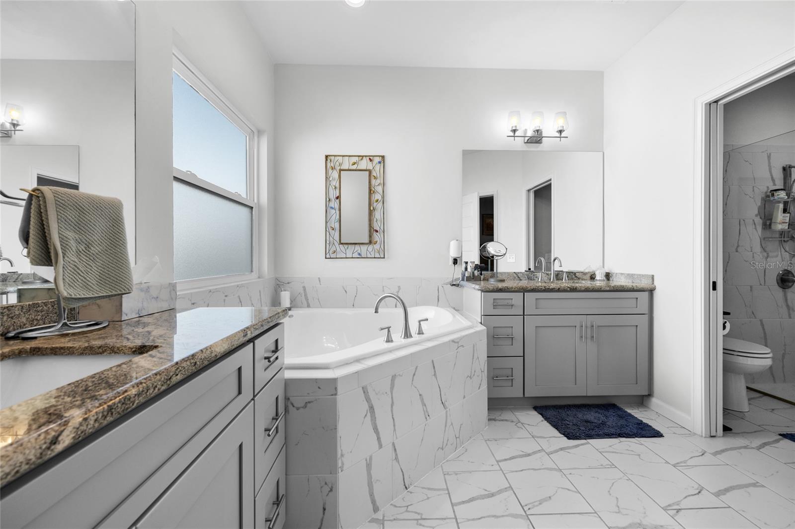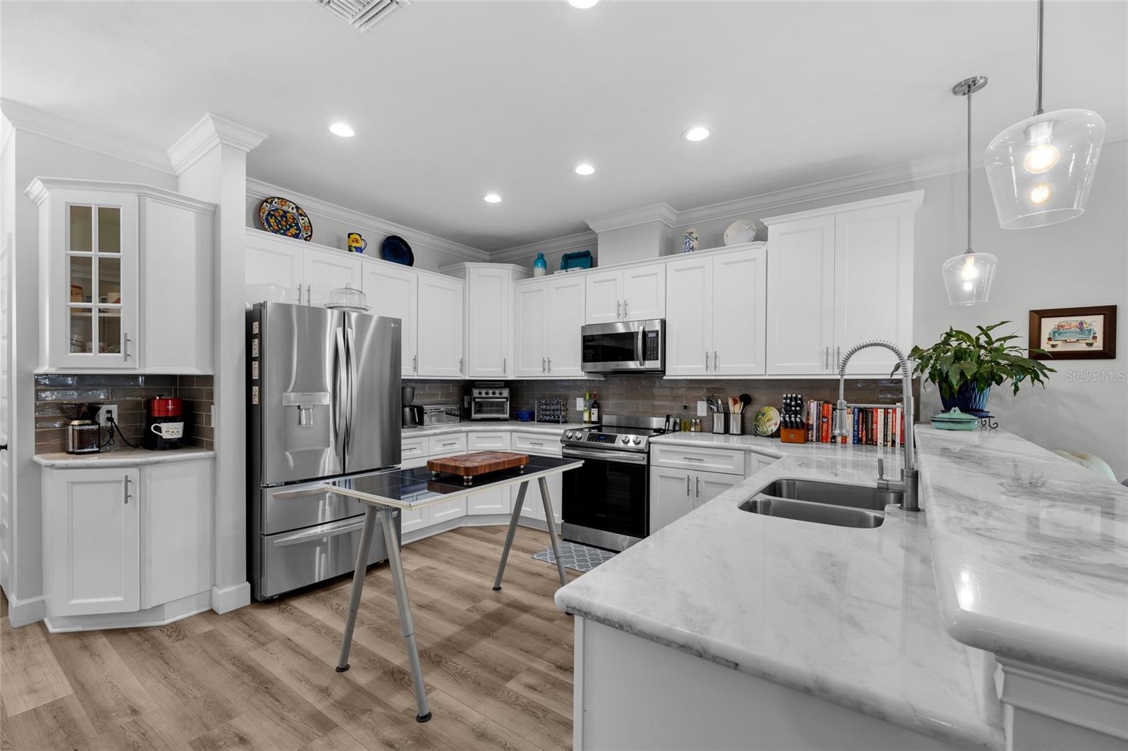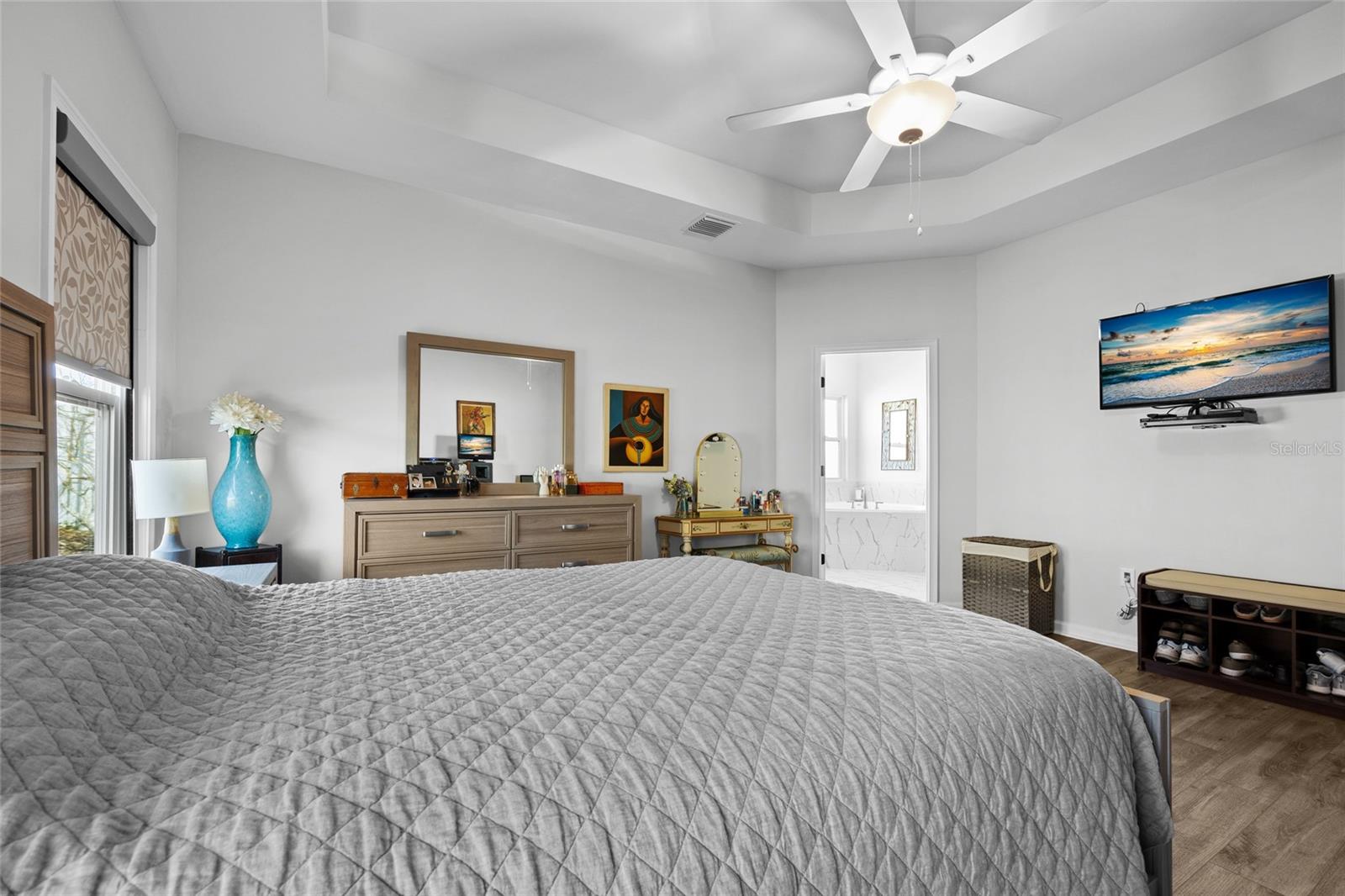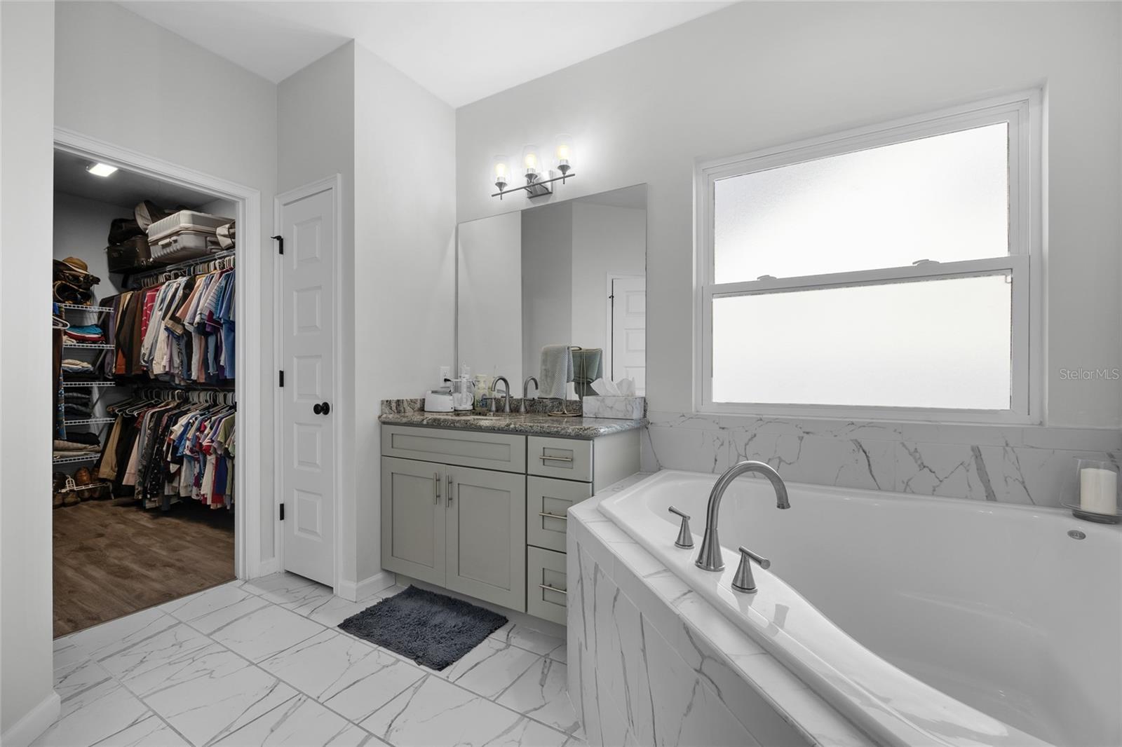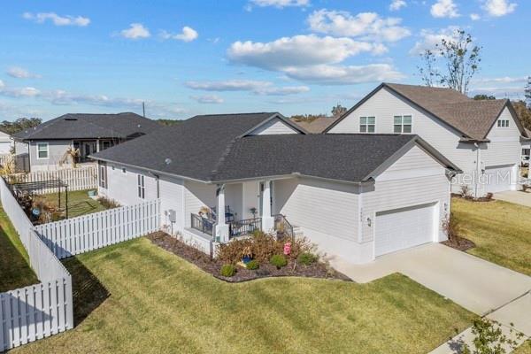 Better Than New – Move-In Ready with Over $50K in Upgrades! This stunning 3-bedroom, 3-bathroom home is a true showstopper, offering high-end finishes and thoughtful upgrades throughout! The gourmet kitchen features elegant and spacious marble countertops, with elegant range hood and coffee station, while luxury vinyl tile and tile flooring flow seamlessly through the main living areas. Enjoy soaring trey ceilings, custom blinds, and a spacious walk-in closet in the primary suite. Relax in the spa-like ensuite with a soaker tub, glass-enclosed shower, and private water closet. Step outside to a screened-in back patio overlooking a fully fenced backyard—perfect for pets or entertaining! Additional upgrades include gutters, a French drain, and a beautifully landscaped yard. Located in a sidewalk-lined community with a sparkling pool, this home is nestled between I-75 and the Tioga Publix, just minutes from top shopping, dining, and entertainment. Don’t wait—this beauty won’t last long! Schedule your showing today!