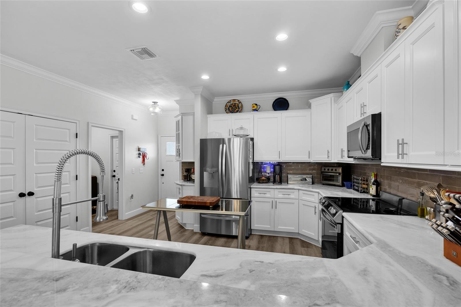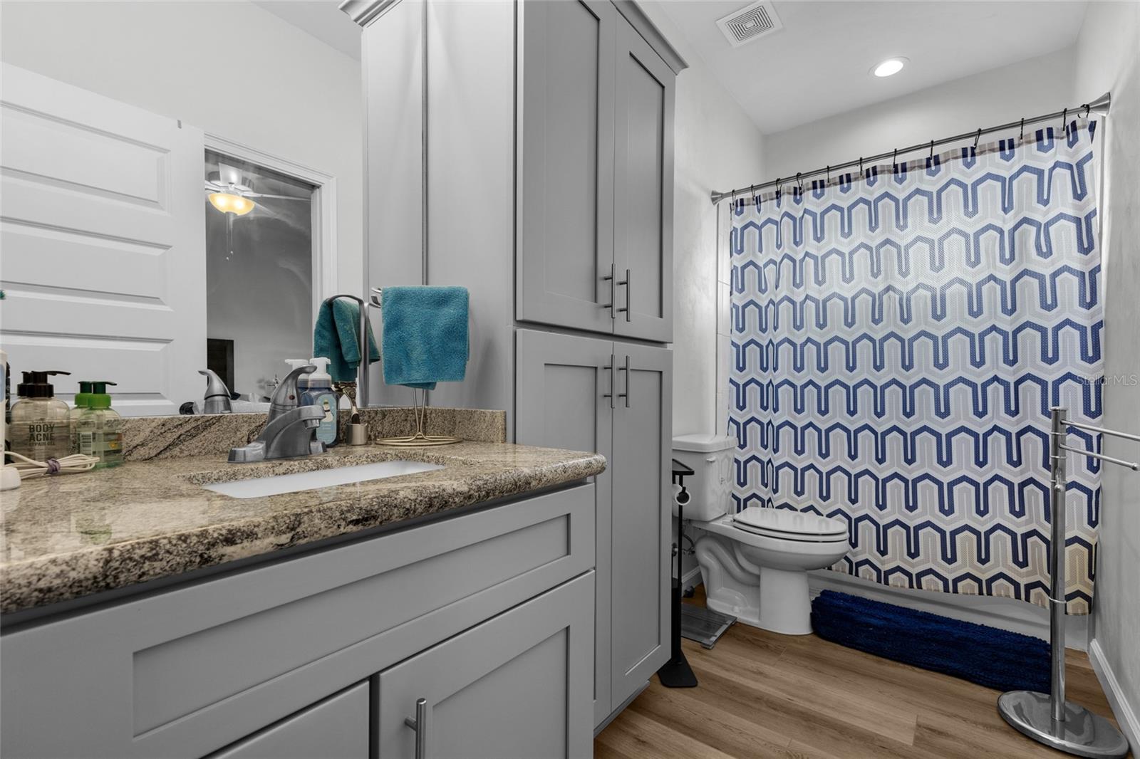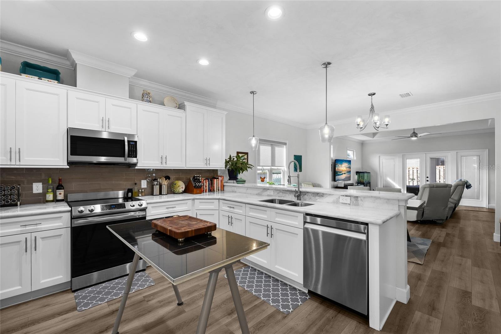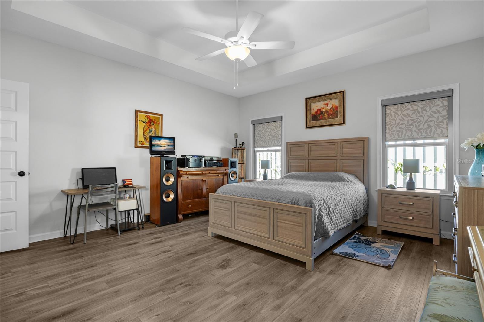 Better Than New – Move-In Ready with Over $50K in Upgrades! This stunning 3-bedroom, 3-bathroom home is a true showstopper, offering high-end finishes and thoughtful upgrades throughout! The gourmet kitchen features elegant and spacious marble countertops, with elegant range hood and coffee station, while luxury vinyl tile and tile flooring flow seamlessly through the main living areas. Enjoy soaring trey ceilings, custom blinds, and a spacious walk-in closet in the primary suite. Relax in the spa-like ensuite with a soaker tub, glass-enclosed shower, and private water closet. Step outside to a screened-in back patio overlooking a fully fenced backyard—perfect for pets or entertaining! Additional upgrades include gutters, a French drain, and a beautifully landscaped yard. Located in a sidewalk-lined community with a sparkling pool, this home is nestled between I-75 and the Tioga Publix, just minutes from top shopping, dining, and entertainment. Don’t wait—this beauty won’t last long! Schedule your showing today!