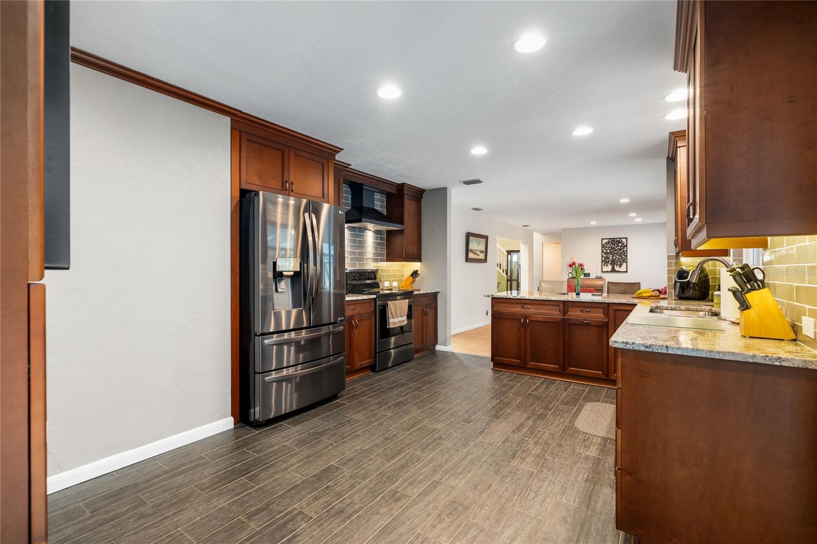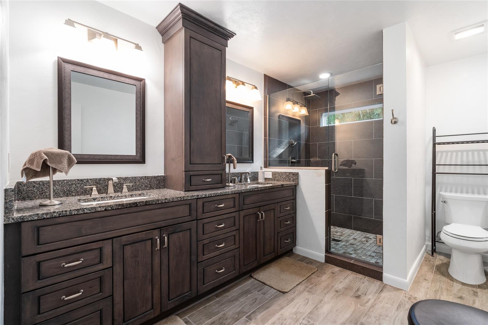 Back on the market! Buyer financing fell thru. Welcome to this charming mid-century modern style home with plenty of space and character! With 5 bedrooms, 3 full bathrooms, and a bonus room with a closet, this home offers ample living space for any family or anyone who needs extra room to spread out. The bonus room, complete with its own bathroom, is perfect for guests or could easily be converted into a sixth bedroom. The large lot offers plenty of tree cover, beautiful spring blooms, making it a perfect outdoor retreat. You'll appreciate the modern touches inside, including a kitchen with dark stainless steel appliances, granite countertops, and wood cabinets. The slow-close drawers and pull-out pantry shelves add convenience and style to your everyday routine. The spacious family room, with its cozy fireplace (propane but can be converted to wood), and the formal dining room create a welcoming and functional living space. The primary suite is a true retreat with a shower that boasts two shower heads, including a rain head for added luxury. And for natural light lovers, the home’s skylights will fill your spaces with sunshine – one of which even opens to let in the fresh air! This home also boasts a new roof (2020) and water heater (2018), ensuring peace of mind for years to come. Additional features include two sheds (both staying, one a lean-to), a laundry closet with washer and dryer included, and a septic system with two tanks to accommodate the spacious home. Plus, the property is on city water and electric, with affordable monthly utility costs. If you're looking for a well-maintained home with lots of potential and charm, this is it! Come see it for yourself – you won’t want to miss out on this unique opportunity.