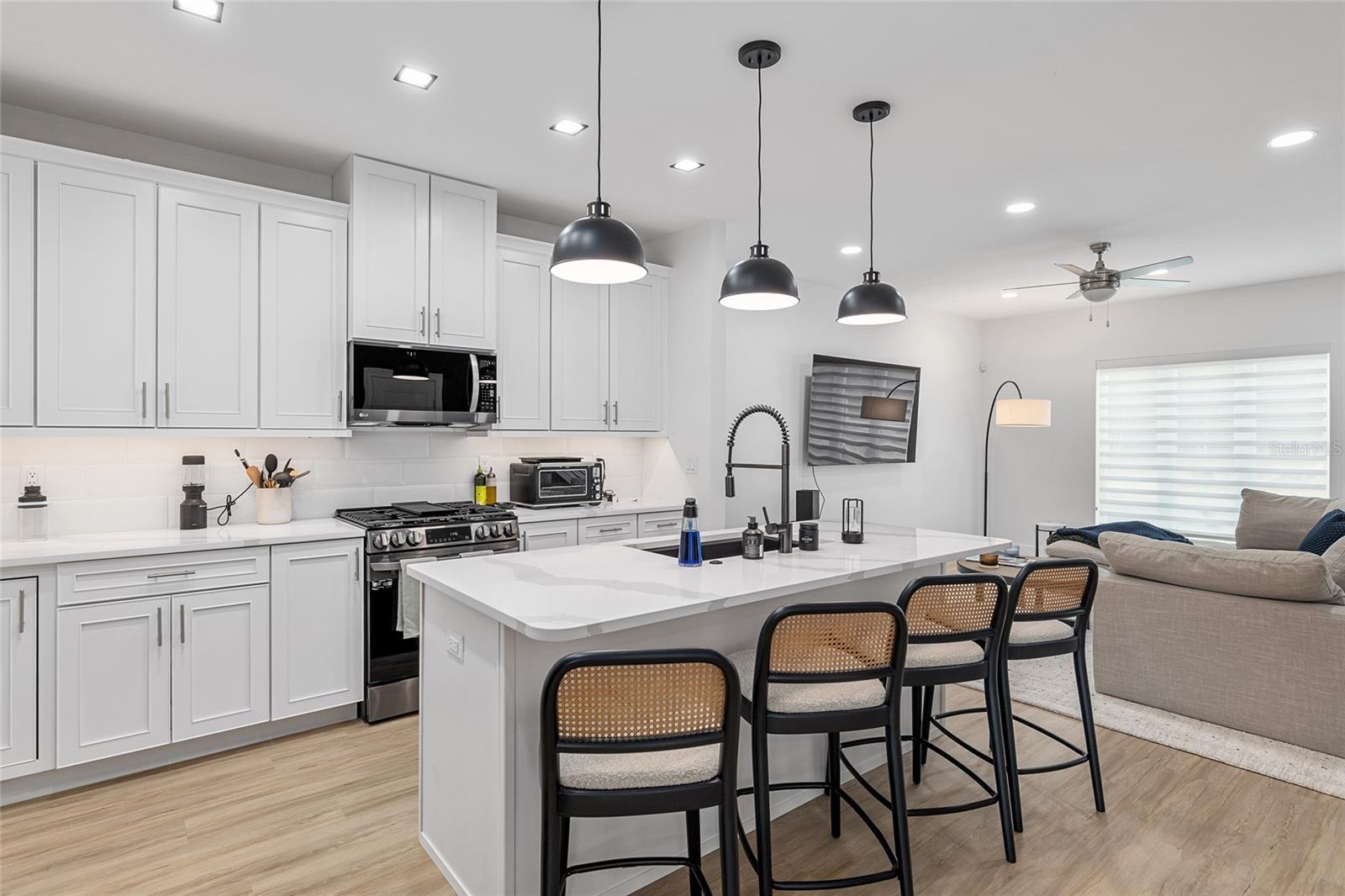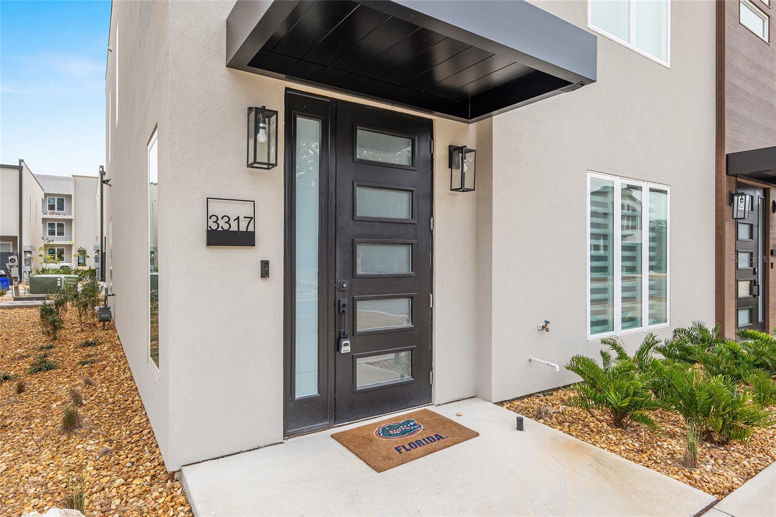 END UNIT with balcony off of owner's suite! Discover modern living in this bright and airy 2-story townhome featuring 3 bedrooms, 2.5 baths, quartz countertops, European-style cabinetry, luxury plank flooring, stainless steel appliances, and an outdoor garden patio perfect for entertaining. Thoughtfully designed with 12-inch insulated walls, noise-reducing and fire-resistant insulation, energy-efficient windows, sound-dampening sub-floors, a tankless water heater, and a 17 SEER high-efficiency HVAC system, this home offers both privacy and energy savings. Located in The VUE at Celebration Pointe, residents enjoy amenities like a cabana, pool, and jacuzzi, all within walking distance of premier shopping, dining, and entertainment at Celebration Pointe. Close to I-75, Butler Plaza, and the University of Florida. This is your opportunity to call this luxury condo home!