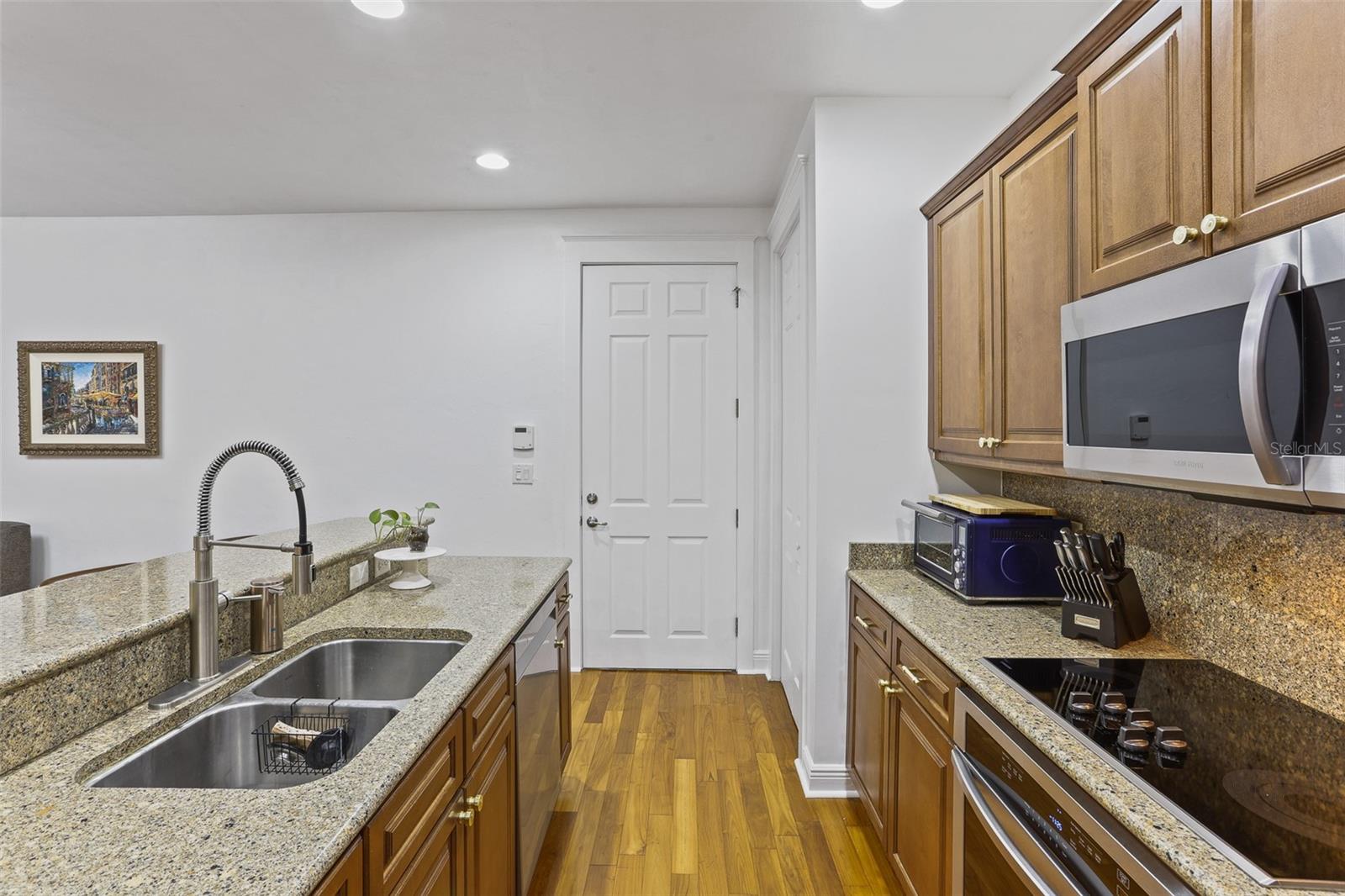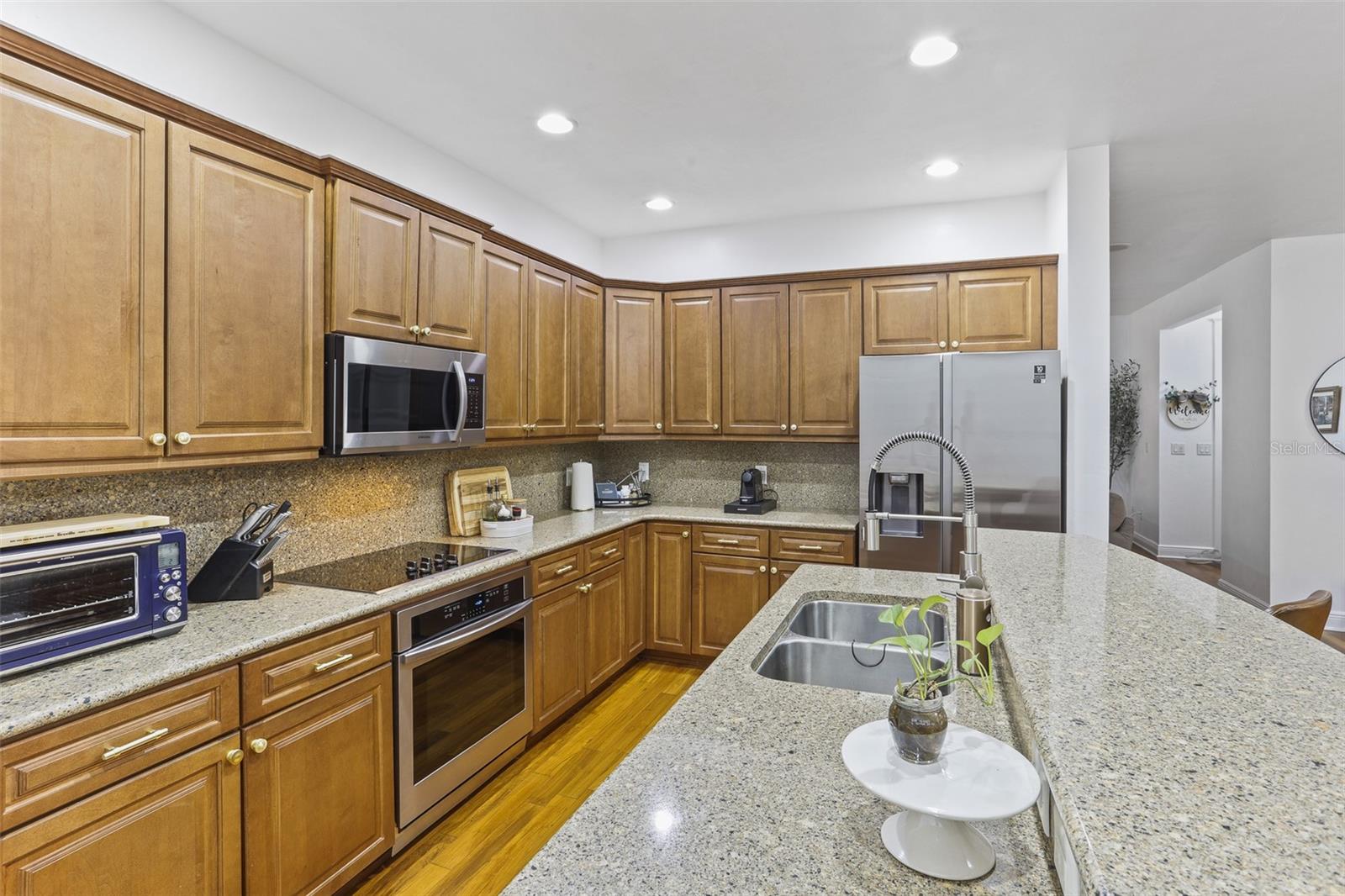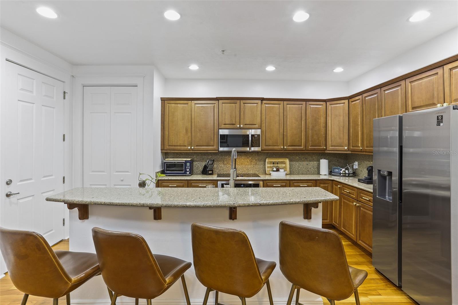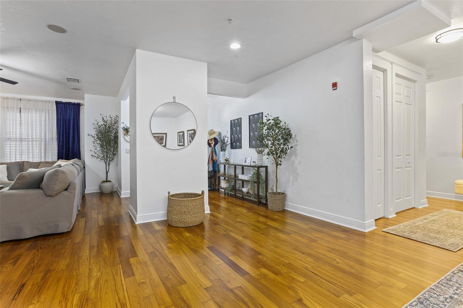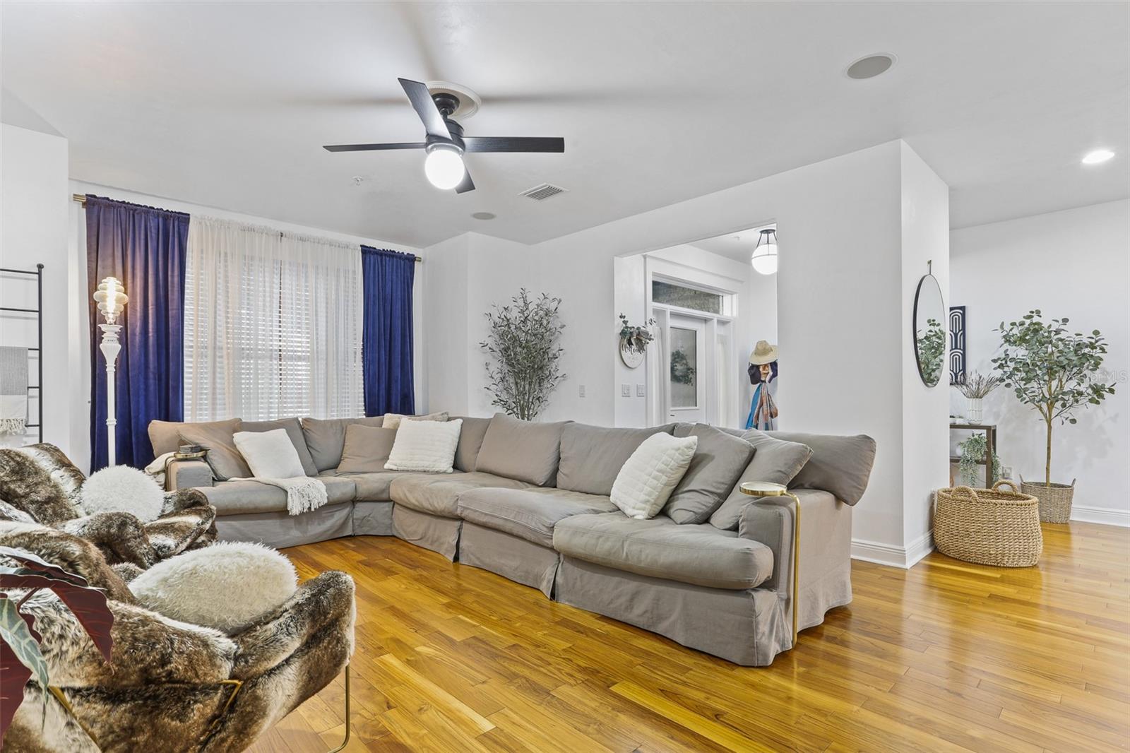 Rare find in Regents Park! This spacious three-bedroom, two-bath condominium is one of the few larger units without stairs. The fantastic design includes an open living area and an ideal split-bedroom layout. Engineered wood flooring and high ceilings throughout provide a seamless flow and sense of connection throughout the spacious unit. The kitchen includes an island with a breakfast bar, solid wood cabinets, granite and stainless steel appliances. The primary bedroom has plenty of closet space and an attached bathroom with double sinks and a walk-in shower. The fully-finished garage includes two automated options - the main garage door and a unique screened enclosure that allows the space to function as an outdoor entertaining space. The large laundry closet includes a high-efficiency washer and dryer set with pedestals from 2022. Recent updates include upgraded appliances, 2021 ceiling fans an HVAC in 2016, tankless water heater in 2023, 75-year polyurea garage flooring in 2024 and interior painting throughout. The HOA fees cover the roof, insurance, exterior maintenance, landscaping, pest control and internet. The ideal urban location is walkable to all of the amenities of downtown Gainesville and the historic Duckpond neighborhood. It is located just around the corner from the Thomas Center, the Hippodrome, Roper Park, library, farmers' markets, restaurants and parks.