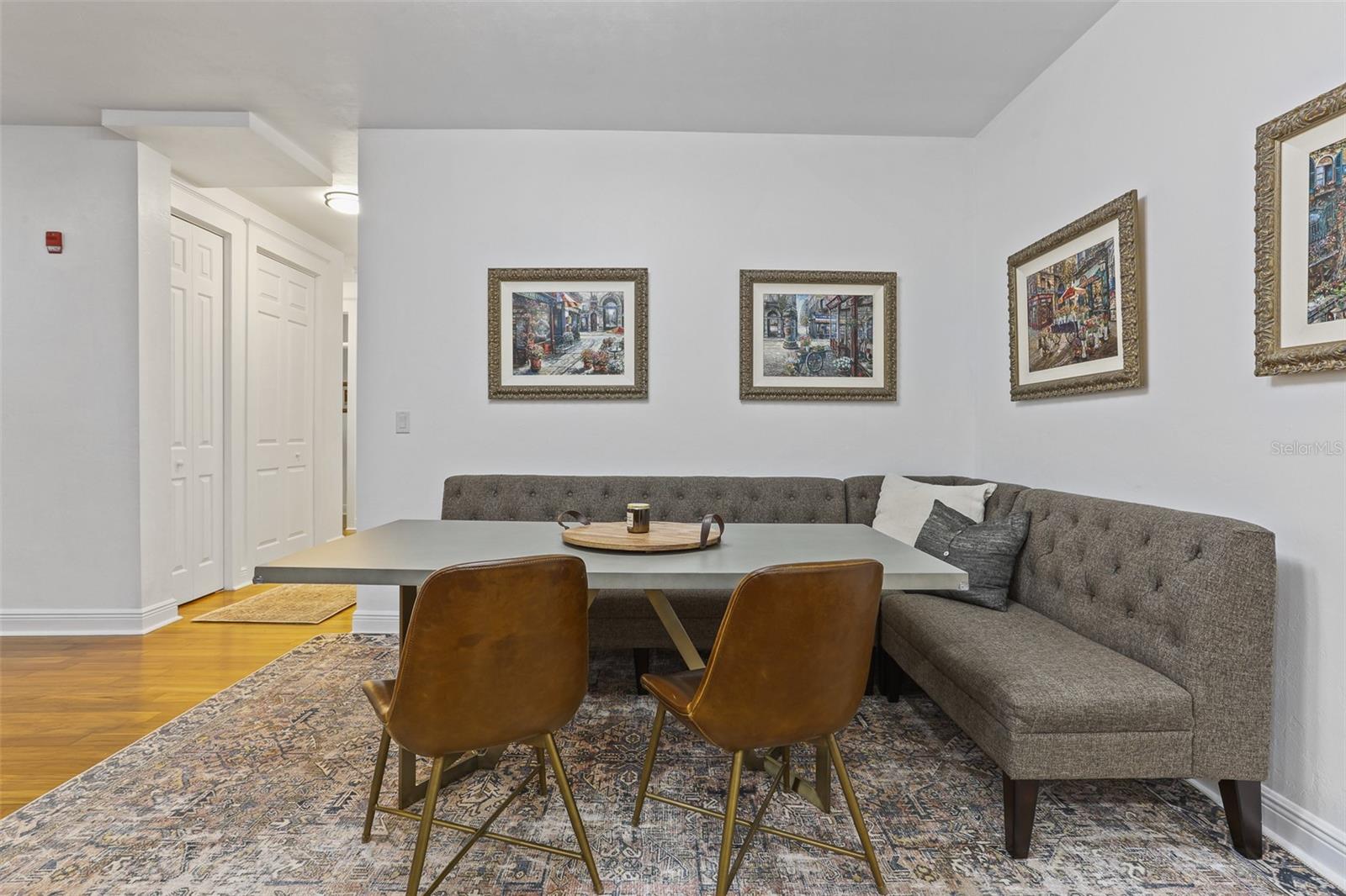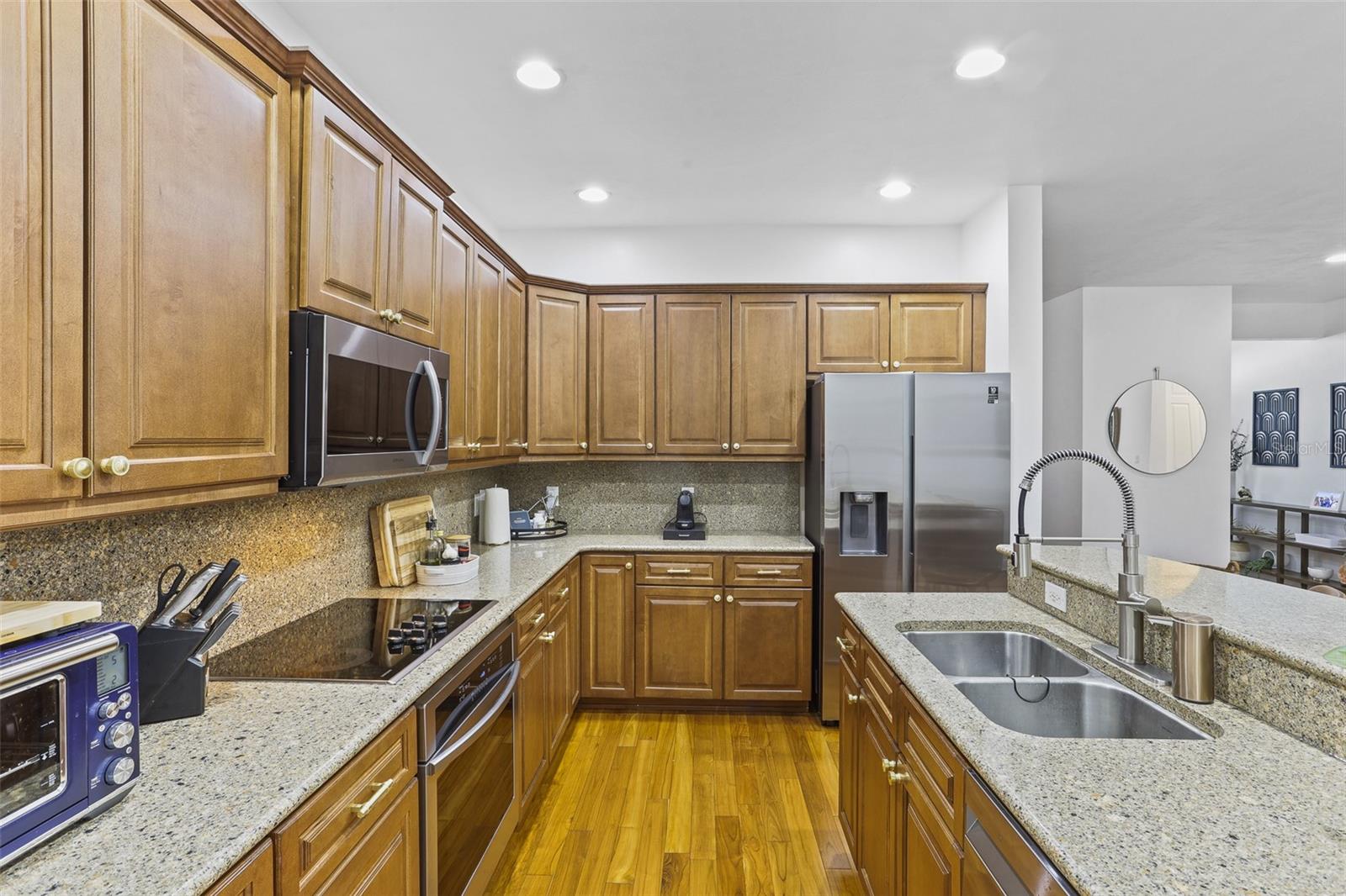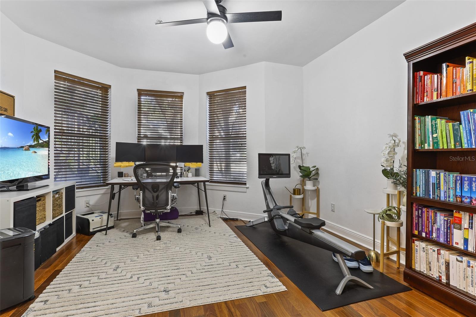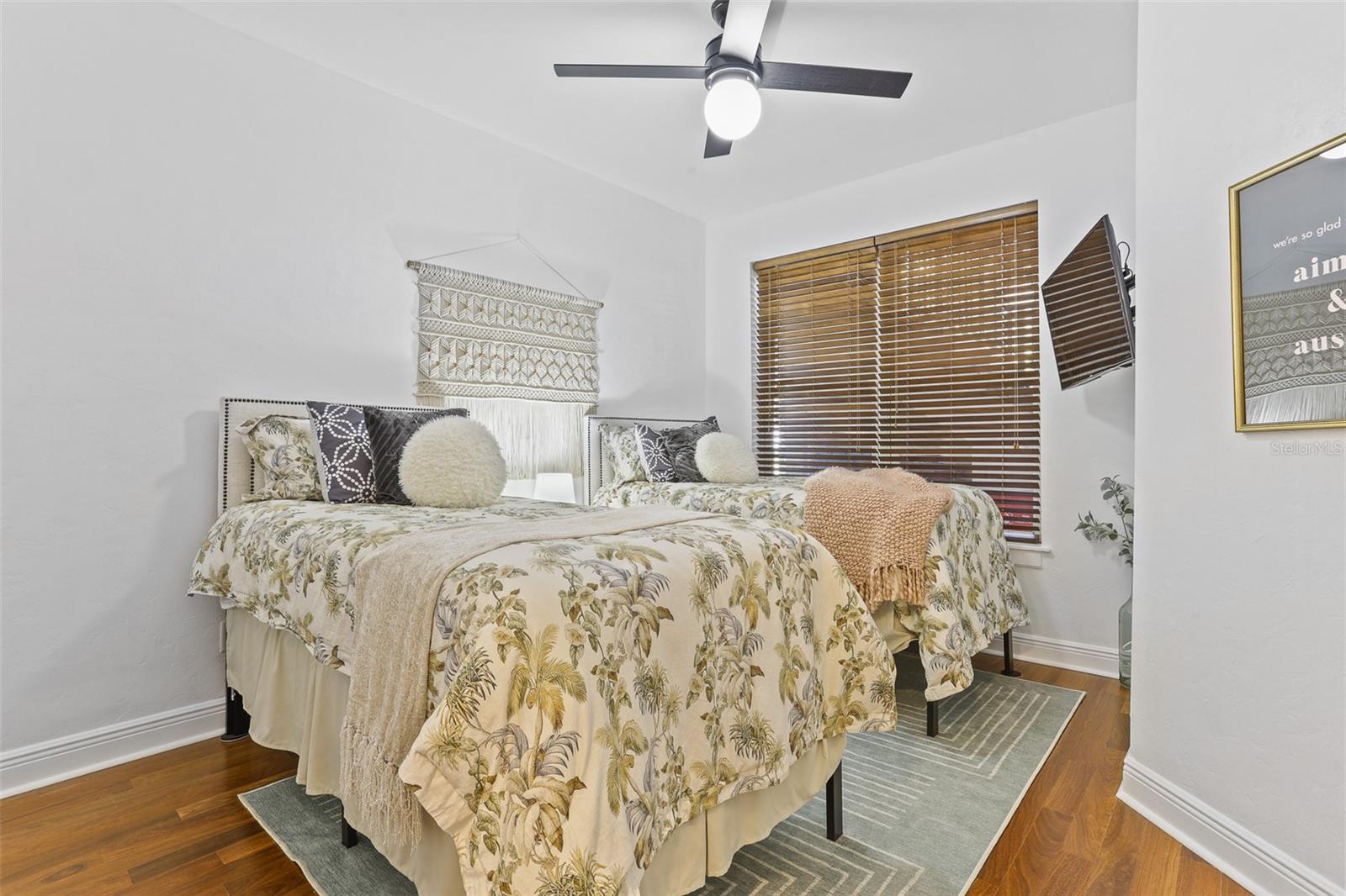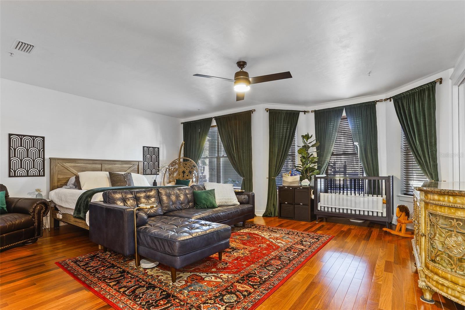 Rare find in Regents Park! This spacious three-bedroom, two-bath condominium is one of the few larger units without stairs. The fantastic design includes an open living area and an ideal split-bedroom layout. Engineered wood flooring and high ceilings throughout provide a seamless flow and sense of connection throughout the spacious unit. The kitchen includes an island with a breakfast bar, solid wood cabinets, granite and stainless steel appliances. The primary bedroom has plenty of closet space and an attached bathroom with double sinks and a walk-in shower. The fully-finished garage includes two automated options - the main garage door and a unique screened enclosure that allows the space to function as an outdoor entertaining space. The large laundry closet includes a high-efficiency washer and dryer set with pedestals from 2022. Recent updates include upgraded appliances, 2021 ceiling fans an HVAC in 2016, tankless water heater in 2023, 75-year polyurea garage flooring in 2024 and interior painting throughout. The HOA fees cover the roof, insurance, exterior maintenance, landscaping, pest control and internet. The ideal urban location is walkable to all of the amenities of downtown Gainesville and the historic Duckpond neighborhood. It is located just around the corner from the Thomas Center, the Hippodrome, Roper Park, library, farmers' markets, restaurants and parks.