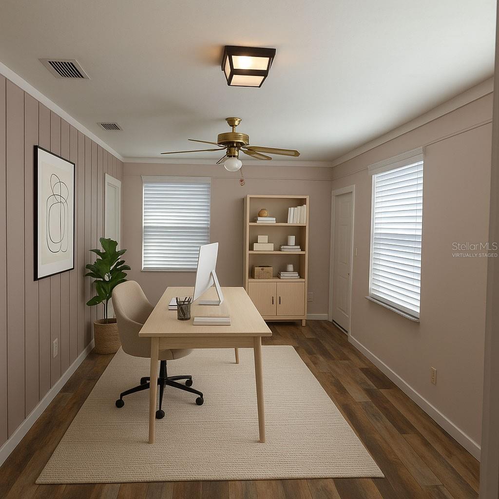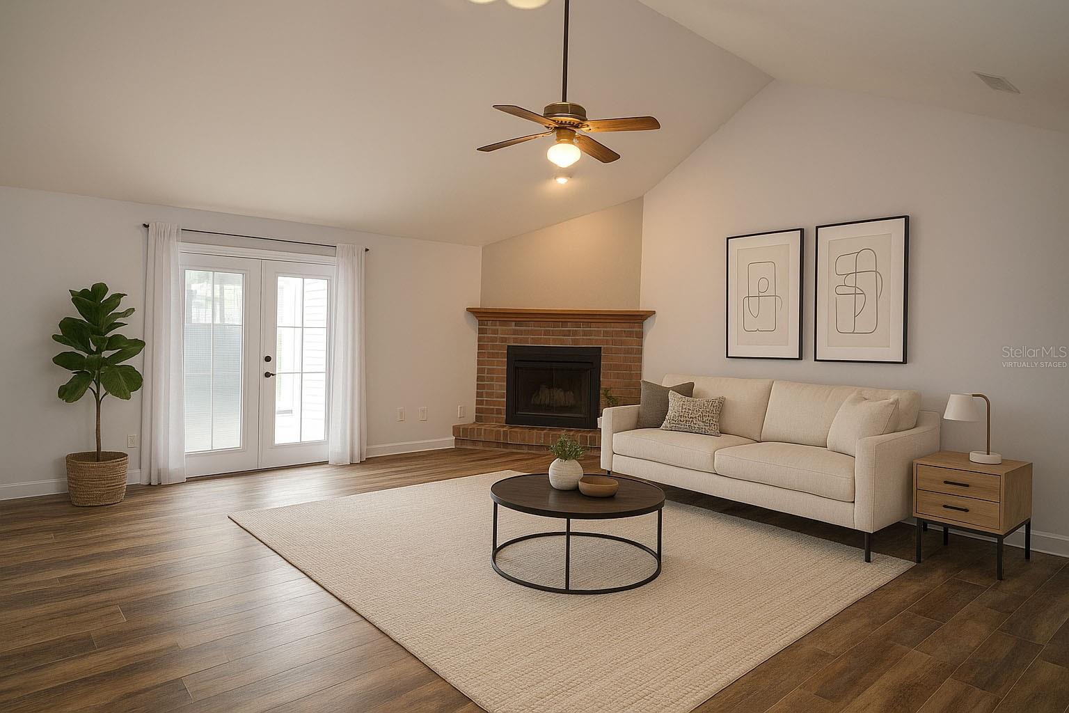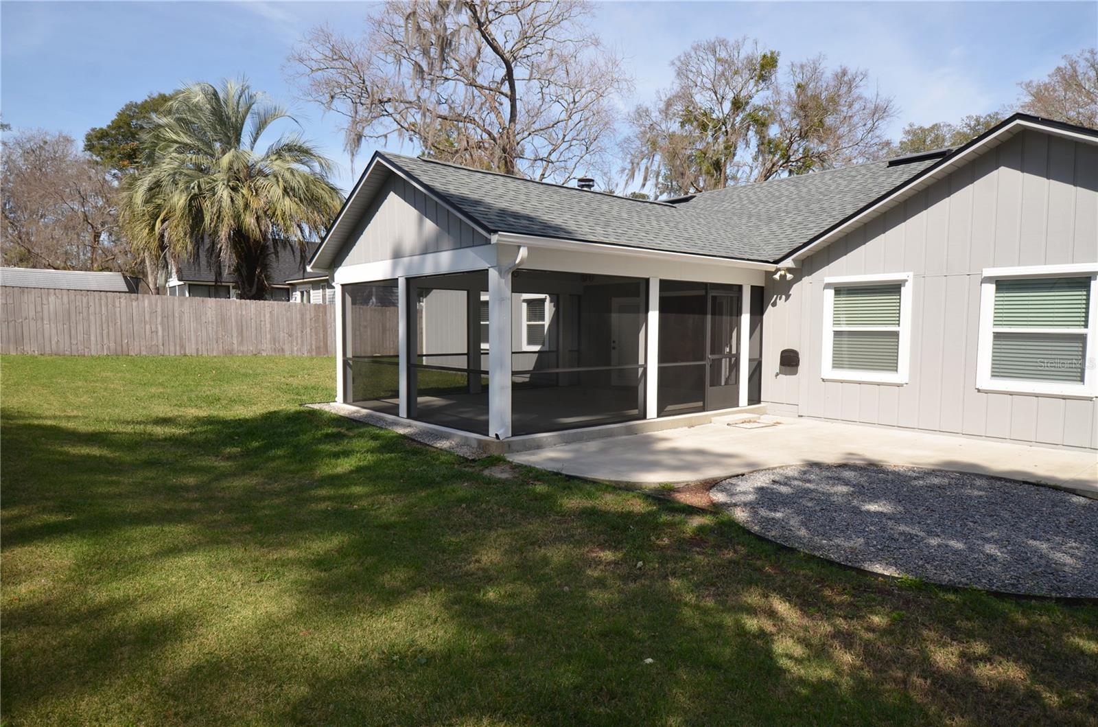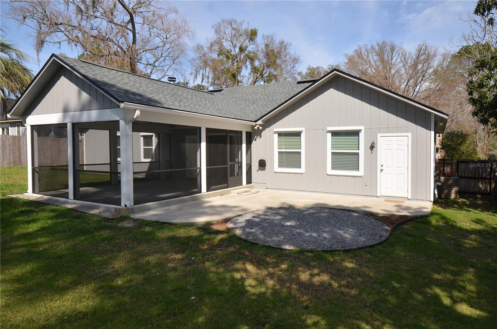 One or more photo(s) has been virtually staged. Beautifully Updated Home – Move-In Ready! This stunning 3-bedroom, 2-bath home with a dedicated office seamlessly blends modern updates with timeless charm. Nestled in a prime location, it boasts a brand-new roof (2025), new windows (2022), new bedroom flooring (2025) and a fully re-piped plumbing system for peace of mind. Step inside to an open and airy living space featuring vaulted ceilings, a cozy fireplace, and abundant natural light. The beautifully updated kitchen, complemented by brand-new flooring, adds a contemporary touch. A gas-powered water heater and furnace ensure comfort even during power outages. Additional highlights include: Hurricane Category 5-rated custom shutter system for ultimate storm protection IQ Fiber internet installed in 2024 for high-speed connectivity Proximity to top-rated schools, hospitals, UF, and Santa Fe College Just 10 minutes from Celebration Pointe for shopping, dining, and entertainment Enjoy Florida living with a screened-in Florida room that leads to a spacious back patio and a fully fenced backyard—perfect for relaxing or entertaining. With 2,725 sq. ft. of total space (1,809 sq. ft. heated) and no HOA, this home is a rare find. Don’t miss the opportunity to make it yours! Some photos have been virtually staged.