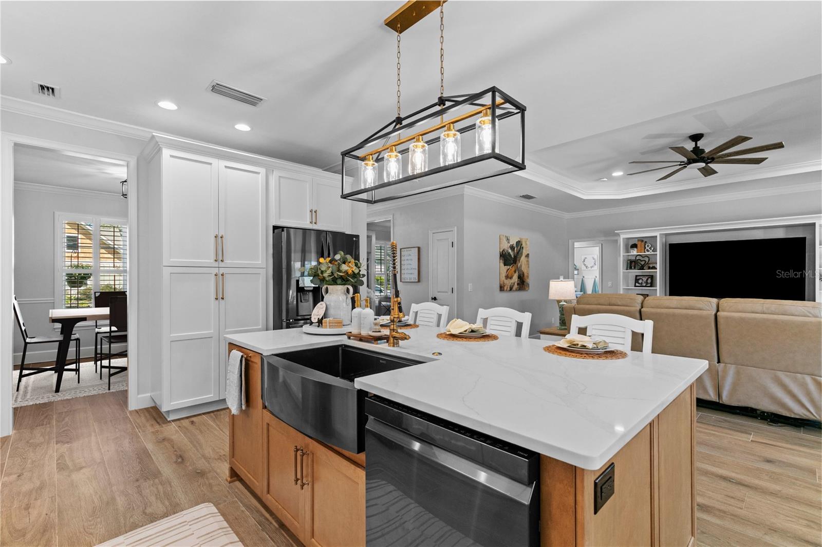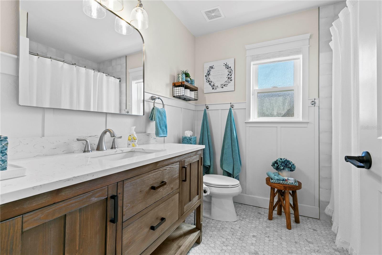 Welcome to Fletcher Park! From the moment you step inside this just-renovated home, you’ll fall in love with the charming details—beautiful crown molding, elegant trim, and brand-new wood-look tile flooring that flows throughout the spacious layout. Thoughtfully designed with families in mind, this home features a 3-way split floor plan, offering both privacy and versatility for every stage of life. At the front of the home, a bright bedroom with French doors and its own bathroom makes the perfect home office, playroom, or guest space. Two additional bedrooms share a fully renovated Jack-and-Jill bathroom with a large linen closet, giving kids or guests their own space while staying connected. The fourth bedroom, tucked away with its own nearby bathroom and outdoor access, is perfect for visitors or older family members needing extra privacy. The primary suite is a true retreat, featuring a gorgeous tray ceiling with crown molding, private access to the lanai, and a completely remodeled spa-like bathroom. Enjoy a relaxing soak in the tub, a luxurious walk-in shower, dual vanities, and a spacious custom closet with plenty of storage. The heart of the home is the stunning new open-concept kitchen, designed for gathering and making memories. It boasts high-end custom wood cabinetry, an oversized island with a farmhouse sink, and elegant quartz countertops. The kitchen seamlessly connects to the breakfast area, offering extra storage and display space. With a cozy family room, a formal dining area, and a large laundry room, there’s space for everything and everyone. This home is packed with upgrades, including custom plantation shutters, fresh interior and exterior paint, stylish board-and-batten accents, new lighting, and a two-car garage with an extra-wide driveway. Step outside to your private backyard oasis—perfect for kids and pets to play! The paved lanai and fire pit area provide the ideal setting for family barbecues, roasting marshmallows, or simply enjoying the outdoors. There’s even plenty of space for a future pool! Located in the highly sought-after Fletcher Park community, this neighborhood is perfect for families, with sidewalks for evening strolls, a playground for little ones, and peaceful green spaces for outdoor fun. Sitting on a spacious 0.35-acre lot, this home offers room to grow and make lasting memories. The only thing missing is you—move in and start your next chapter today!