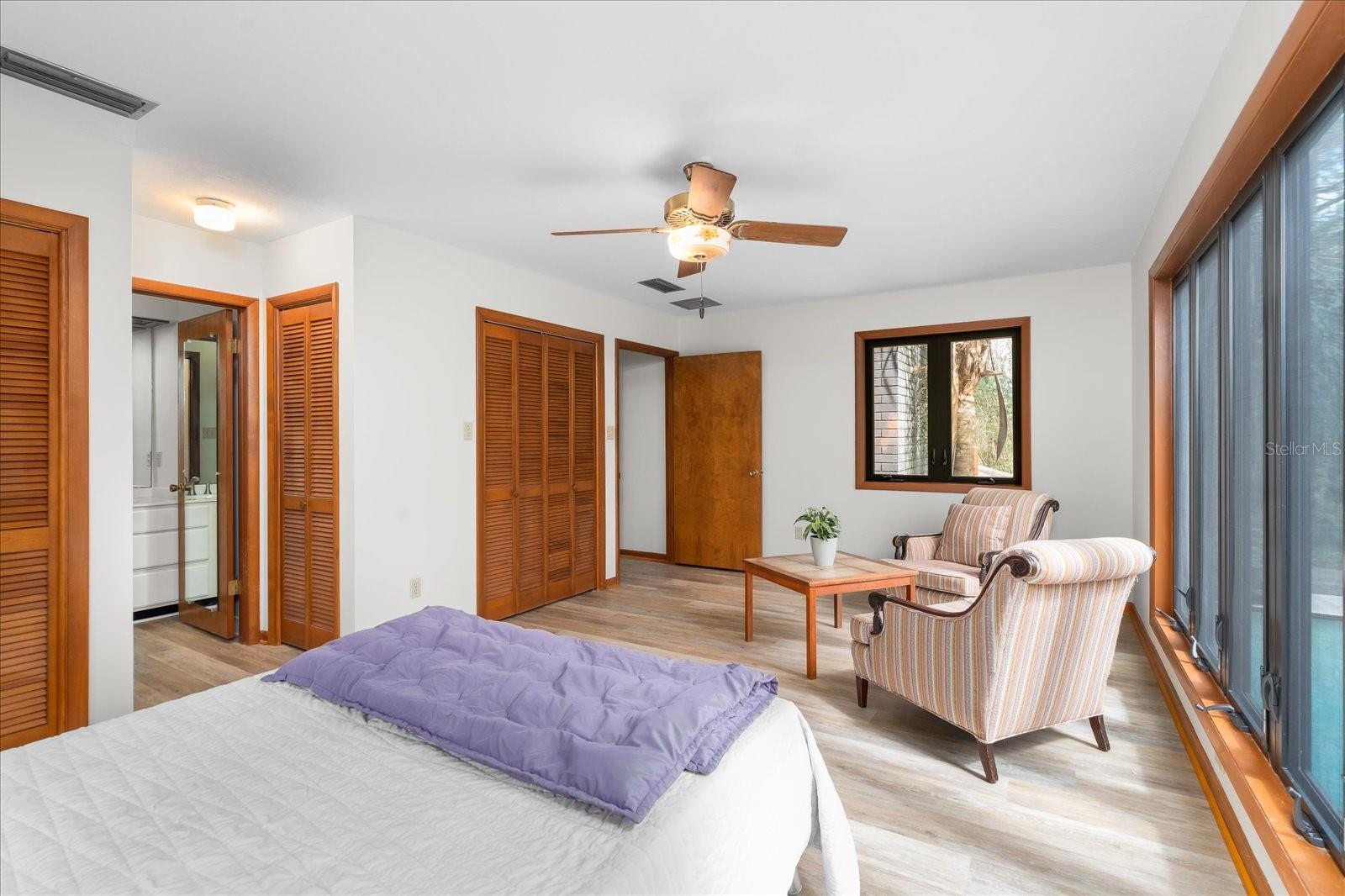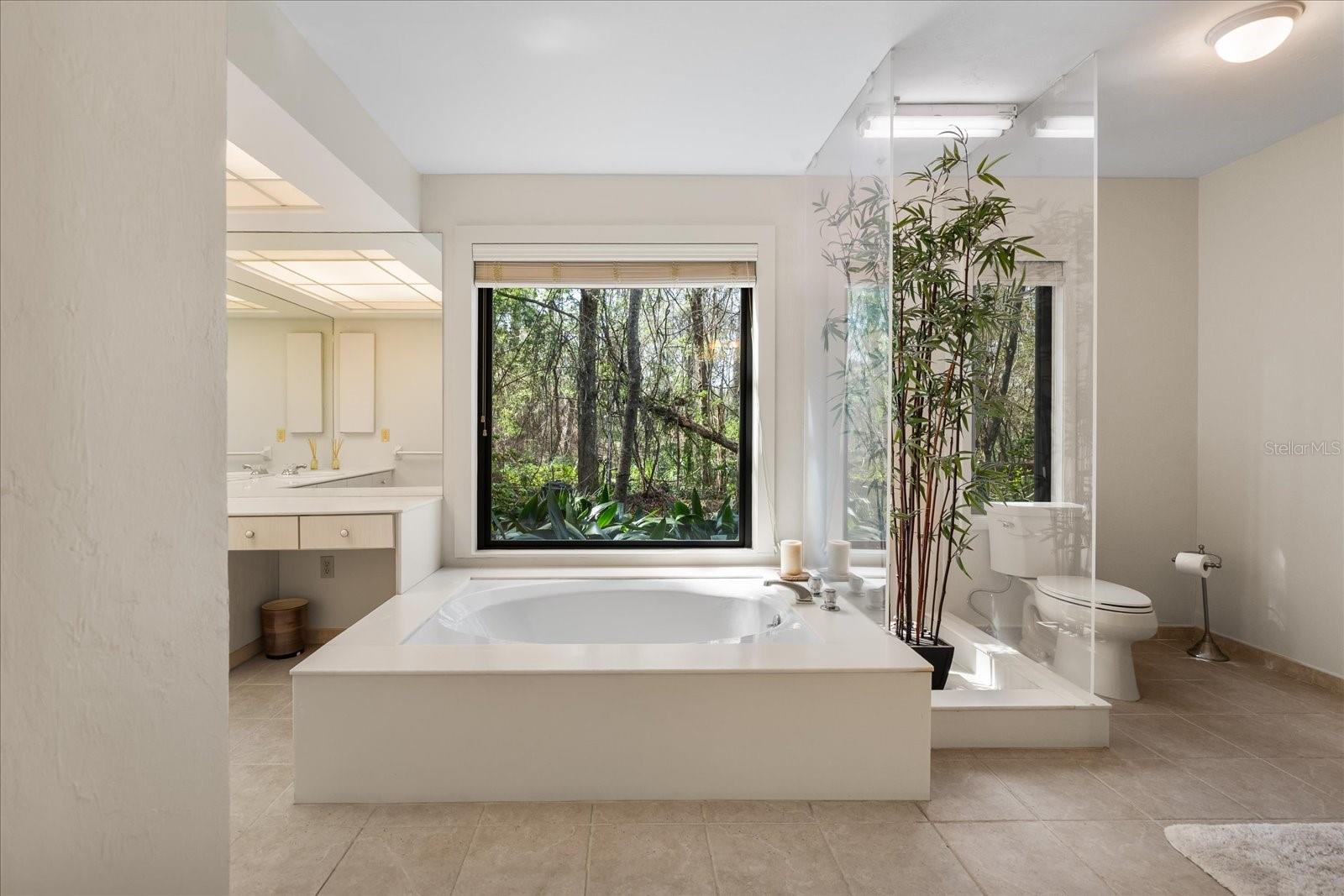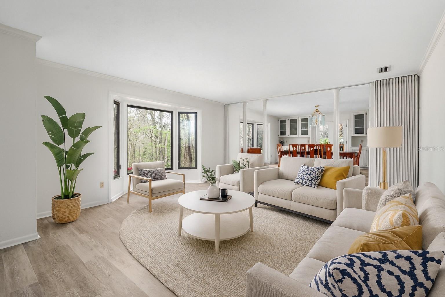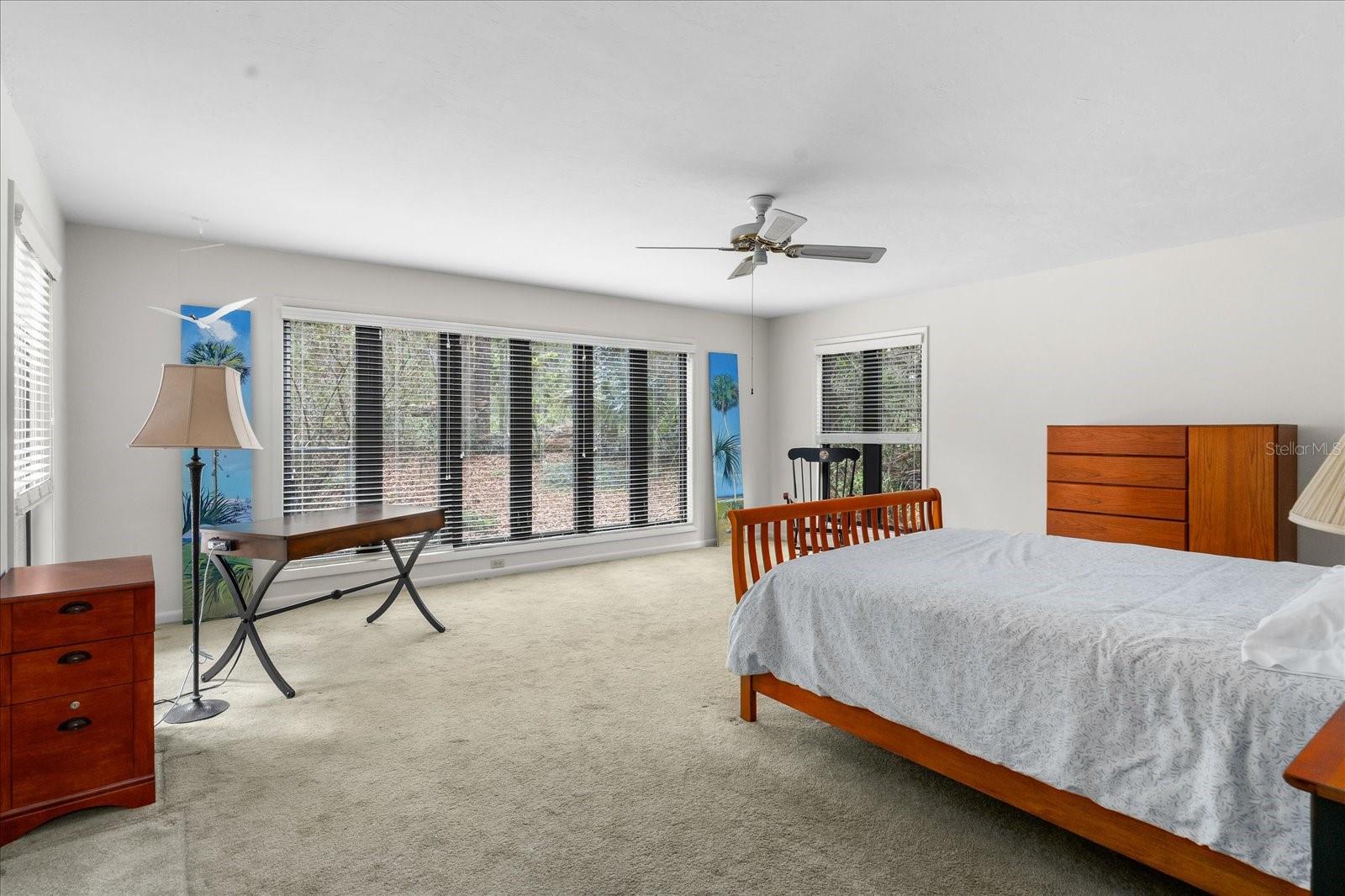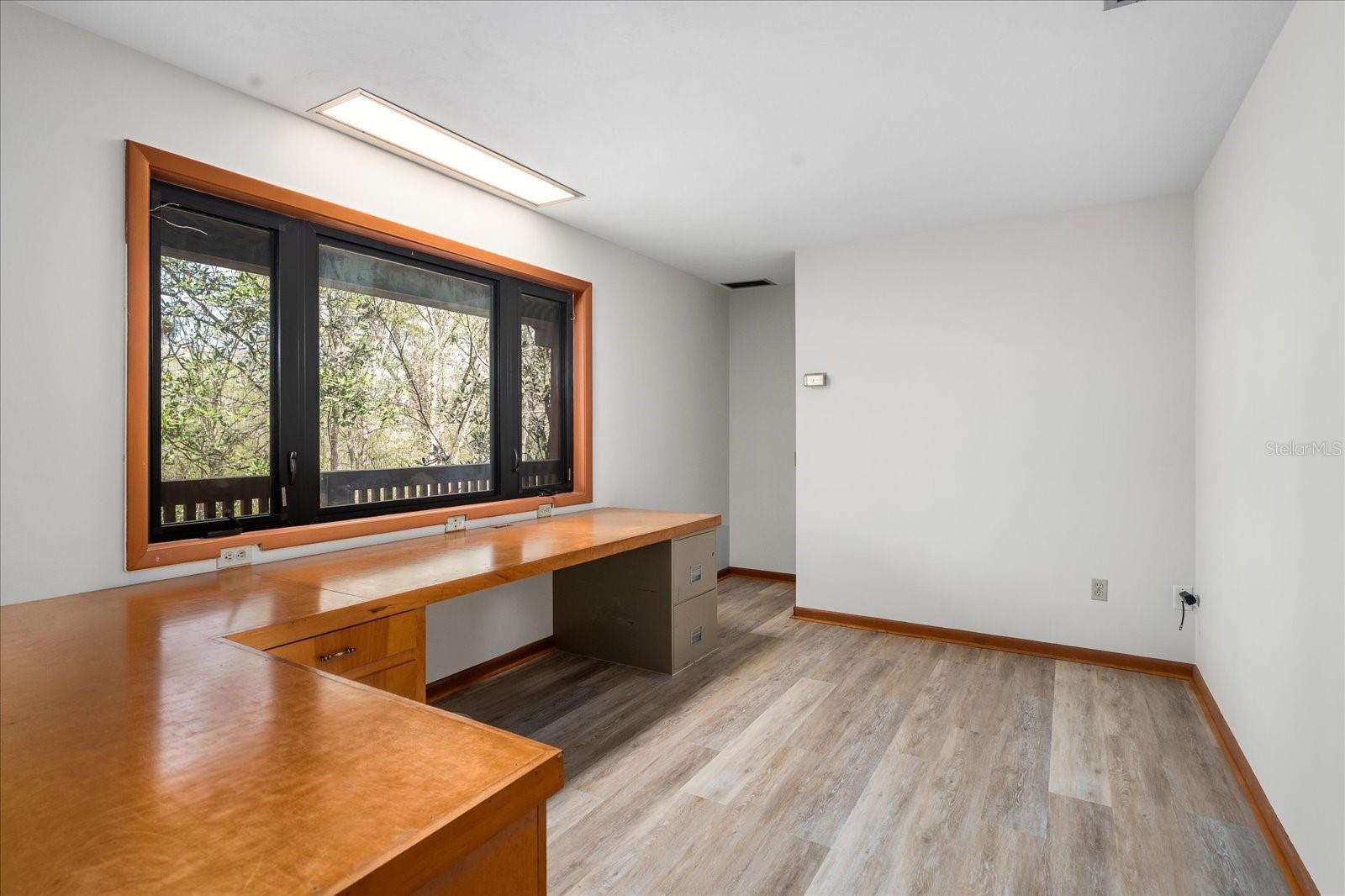 One or more photo(s) has been virtually staged. Tucked away on more than 2.5 acres less than a mile from UF and Shands, this one-of-a-kind property offers the serenity of a nature preserve right in the heart of Gainesville. Perched high above Hogtown Creek, the home captures sweeping, tree-top views and complete privacy — a rare combination of acreage, location, and natural beauty. Step inside to a dramatic two-story great room wrapped in cedar batten-and-board with a striking Spade stone fireplace that anchors the space and frames the view beyond. Walls of windows blur the line between indoors and out, filling every room with light and a connection to the surrounding preserve. The main level features a formal living room with bay windows, a spacious dining room with custom built-ins, and an island kitchen with double ovens and breakfast area opening to the pool deck. The primary suite is a peaceful retreat overlooking the pool and wooded backdrop, while upstairs offers five additional bedrooms (two of which have ensuite bathrooms) plus an office and game room — plenty of space for family, guests, or multi-generational living. Recent updates include a NEW 2024 roof, newer water heaters, fresh interior and exterior paint, and luxury vinyl flooring. Outdoors, enjoy the 30,000-gallon pool, multiple decks, and direct access to the creek below. With timeless design, enduring craftsmanship, and unmatched privacy, this Shands Woods retreat blends the best of nature and convenience — minutes to UF, Shands, the VA, and downtown, yet worlds away from it all.