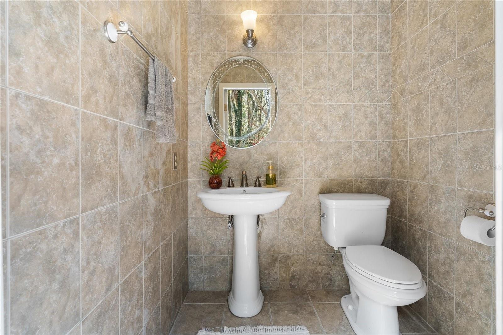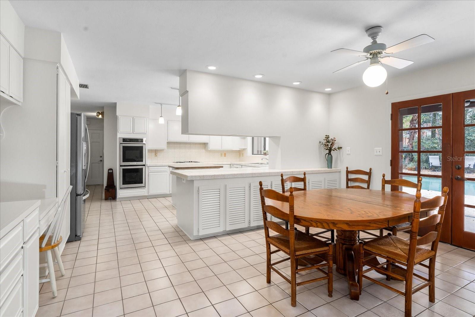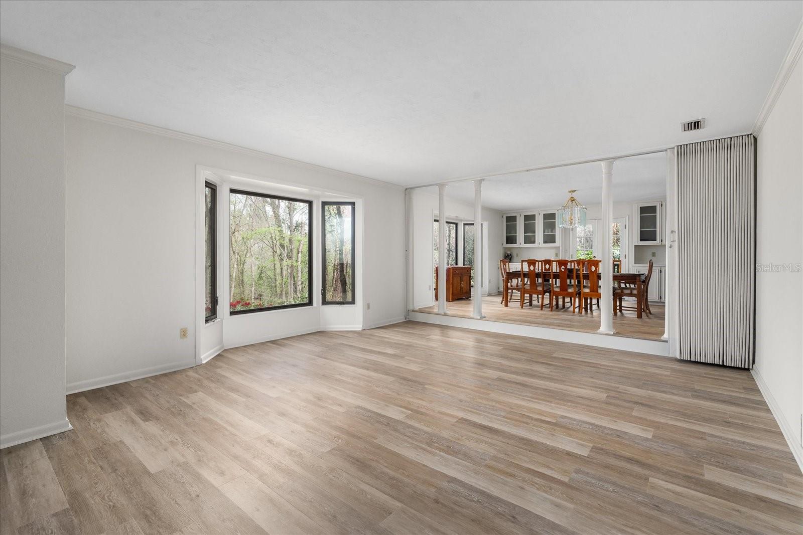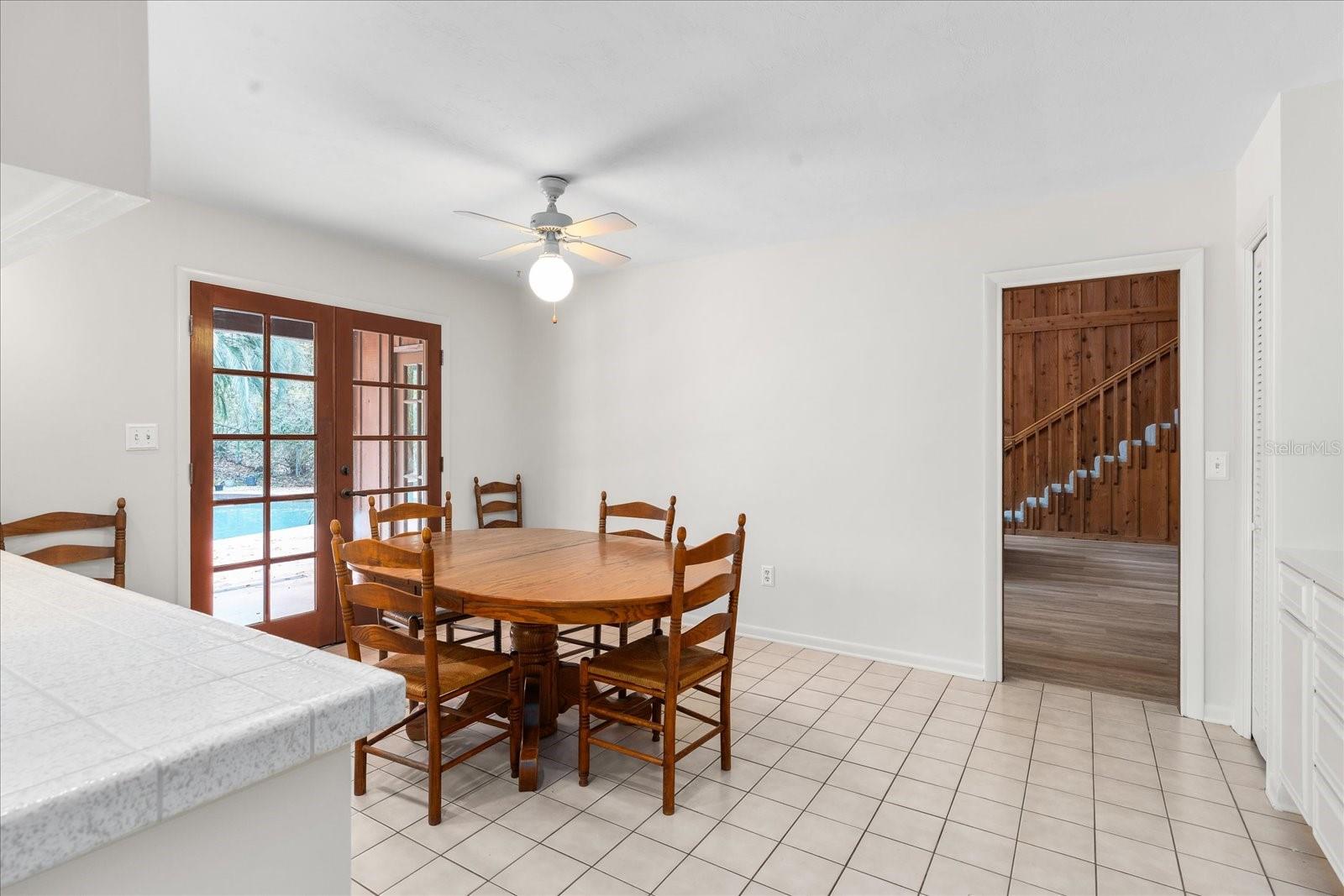 One or more photo(s) has been virtually staged. Tucked away on more than 2.5 acres less than a mile from UF and Shands, this one-of-a-kind property offers the serenity of a nature preserve right in the heart of Gainesville. Perched high above Hogtown Creek, the home captures sweeping, tree-top views and complete privacy — a rare combination of acreage, location, and natural beauty. Step inside to a dramatic two-story great room wrapped in cedar batten-and-board with a striking Spade stone fireplace that anchors the space and frames the view beyond. Walls of windows blur the line between indoors and out, filling every room with light and a connection to the surrounding preserve. The main level features a formal living room with bay windows, a spacious dining room with custom built-ins, and an island kitchen with double ovens and breakfast area opening to the pool deck. The primary suite is a peaceful retreat overlooking the pool and wooded backdrop, while upstairs offers five additional bedrooms (two of which have ensuite bathrooms) plus an office and game room — plenty of space for family, guests, or multi-generational living. Recent updates include a NEW 2024 roof, newer water heaters, fresh interior and exterior paint, and luxury vinyl flooring. Outdoors, enjoy the 30,000-gallon pool, multiple decks, and direct access to the creek below. With timeless design, enduring craftsmanship, and unmatched privacy, this Shands Woods retreat blends the best of nature and convenience — minutes to UF, Shands, the VA, and downtown, yet worlds away from it all.