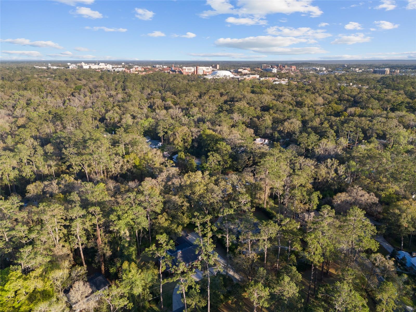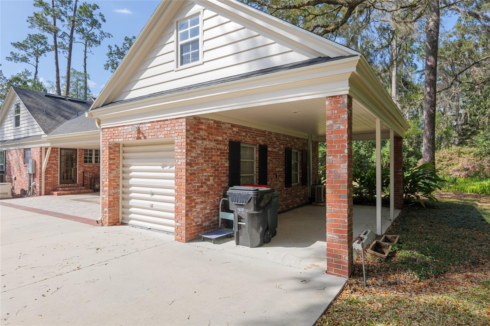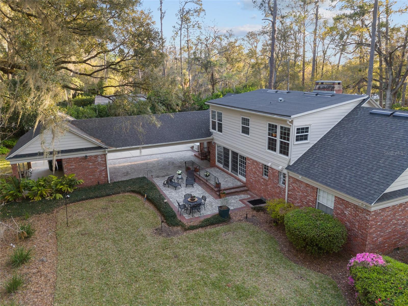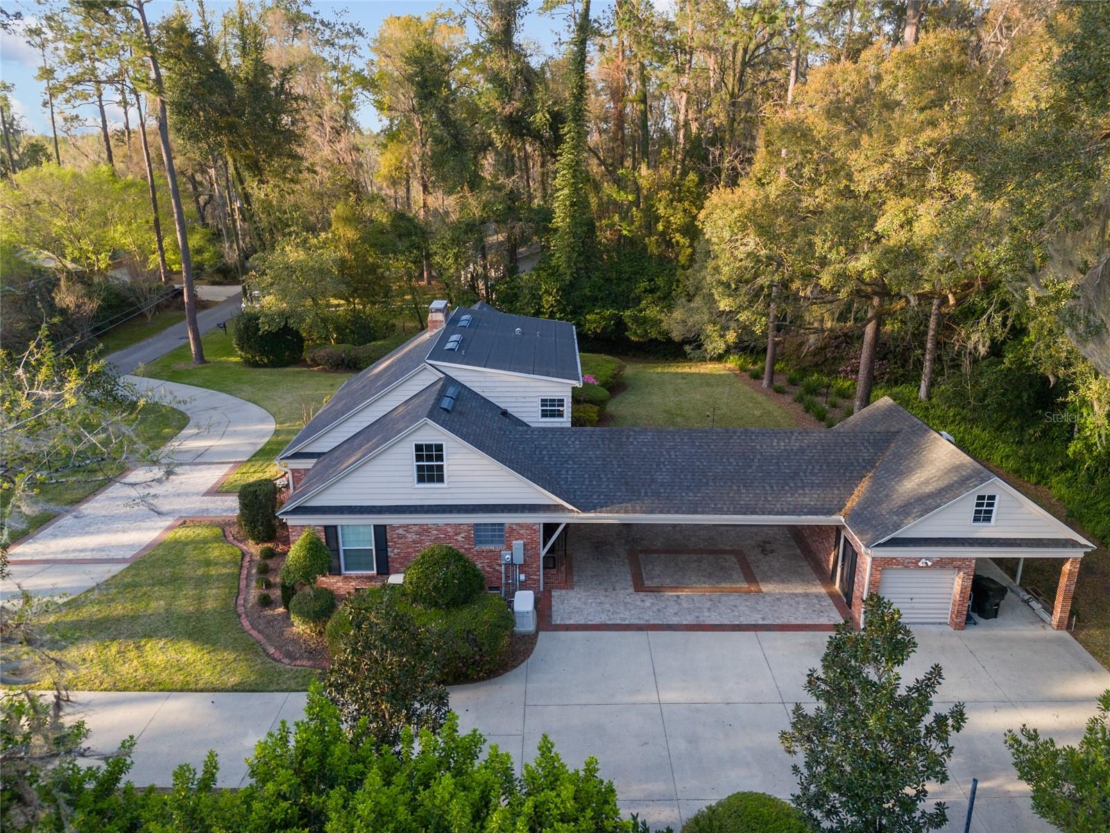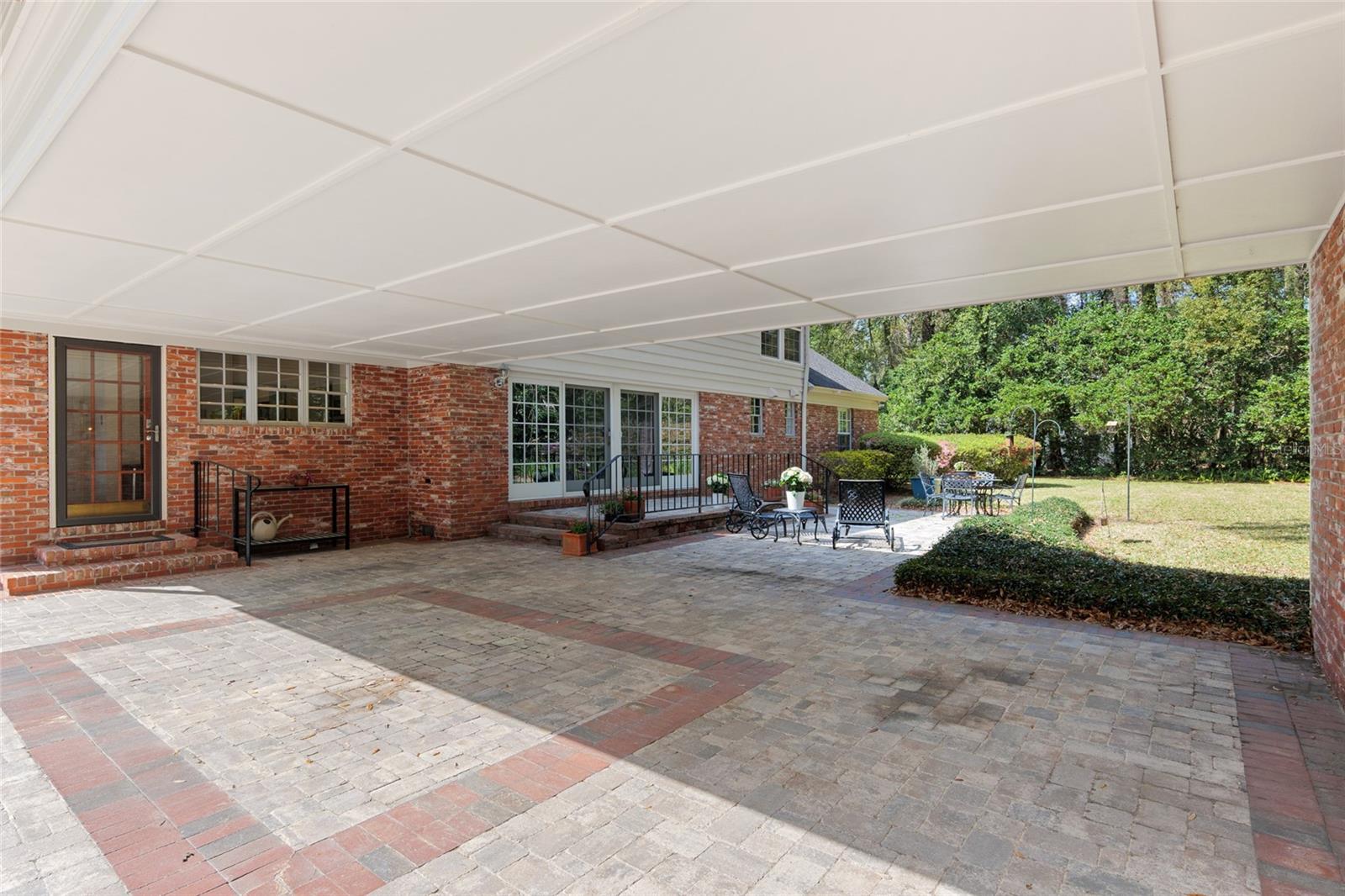 Elegantly maintained brick-accented home exudes classic charm while featuring thoughtful modern updates. A circular driveway leads to the inviting front entrance, where you’ll step into a foyer featuring a striking winding staircase to the upper level. Sliding doors open to a stunning, paver patio and manicured backyard, offering picturesque views of a beautiful oak canopy. To the left of the foyer, a formal living room provides an elegant space for entertaining, while to the right, a cozy family room sits just off the kitchen—perfect for relaxed gatherings. Gorgeous wood floors extend throughout the home, enhancing its warmth and character. The primary and upstairs bathrooms have been tastefully updated, with no expense spared. The home also features a one-car garage with a mini-split system and additional rear storage or parking. This space offers versatile potential—easily convertible into an in-law suite or a cabana for a future pool. Inside, the layout is both functional and flexible: two bedrooms and 2.5 bathrooms downstairs, while the upstairs offers two additional bedrooms, each with its own bonus room, plus a full bathroom. The kitchen, accessible from the covered paver carport—which accommodates more than two vehicles—boasts a walk-in pantry, wet bar, and in-kitchen laundry for added convenience. Updated windows, a whole-home Generac generator, two HVAC systems, and an on-demand water heater, ensuring modern efficiency and comfort. This home has been meticulously cared for, and its prime location is unbeatable—just minutes from Westwood Publix Shopping Center, local shops, and restaurants. UF Health/Shands and downtown Gainesville is only 3 miles away, and UF’s main campus is one mile away. Zoned for Beatrice Parker Elementary, Westwood Middle, and Gainesville High School, this home is truly a rare find.