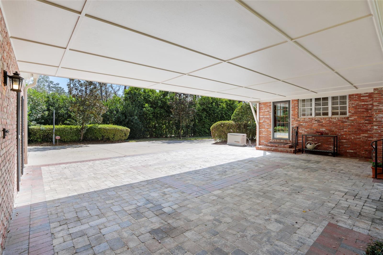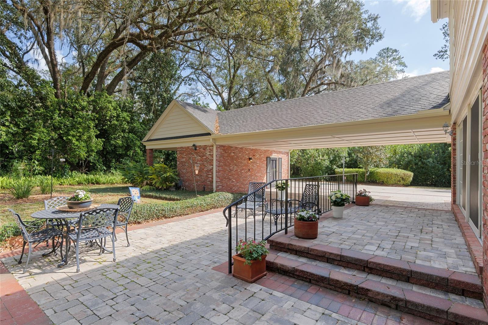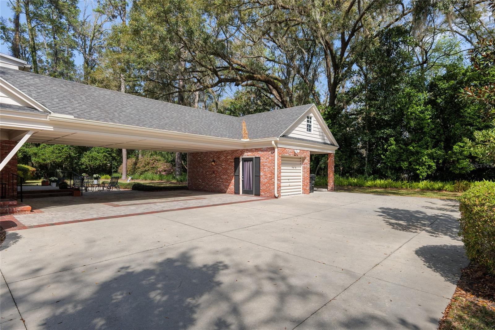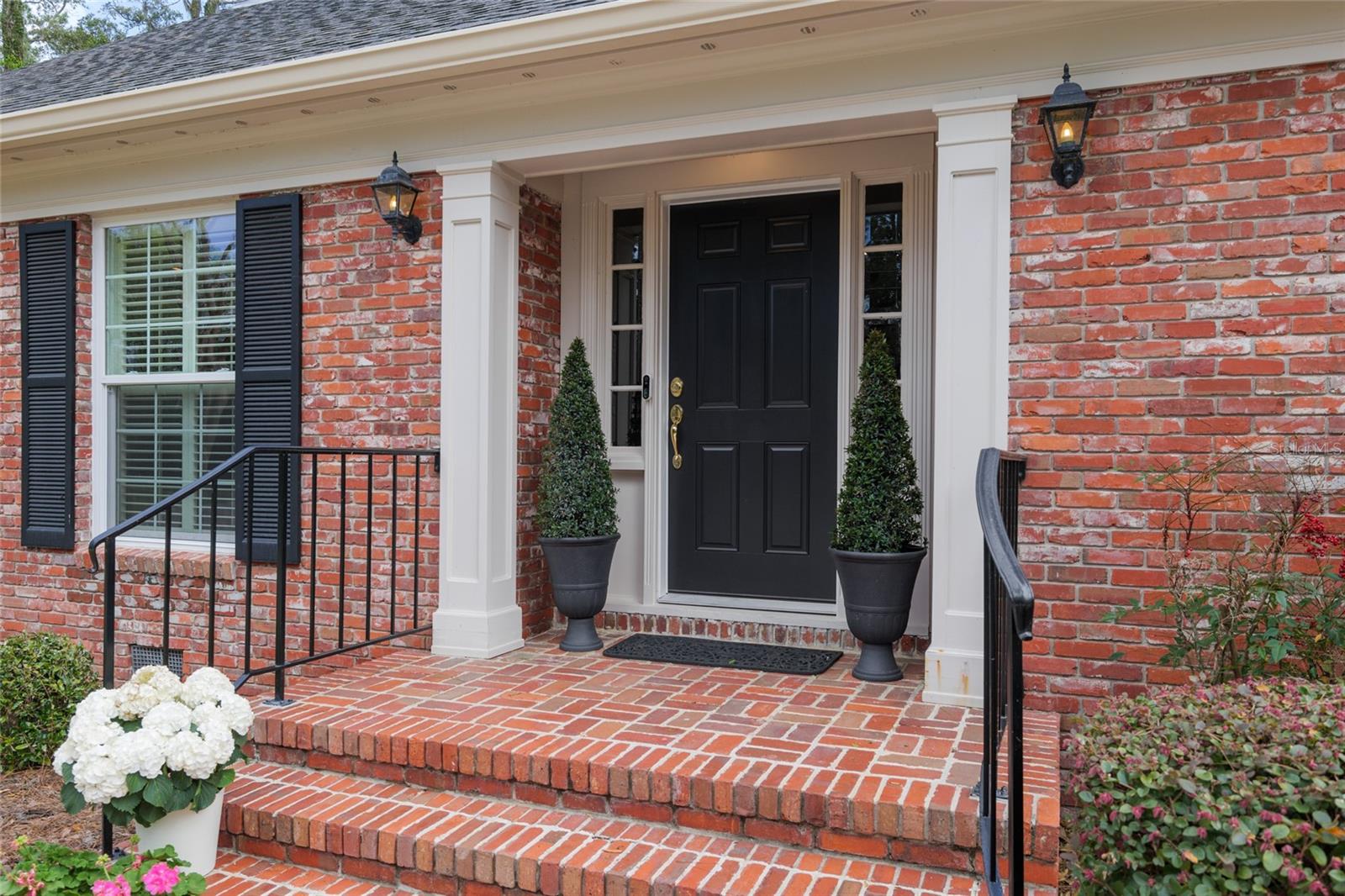 Elegantly maintained brick-accented home exudes classic charm while featuring thoughtful modern updates. A circular driveway leads to the inviting front entrance, where you’ll step into a foyer featuring a striking winding staircase to the upper level. Sliding doors open to a stunning, paver patio and manicured backyard, offering picturesque views of a beautiful oak canopy. To the left of the foyer, a formal living room provides an elegant space for entertaining, while to the right, a cozy family room sits just off the kitchen—perfect for relaxed gatherings. Gorgeous wood floors extend throughout the home, enhancing its warmth and character. The primary and upstairs bathrooms have been tastefully updated, with no expense spared. The home also features a one-car garage with a mini-split system and additional rear storage or parking. This space offers versatile potential—easily convertible into an in-law suite or a cabana for a future pool. Inside, the layout is both functional and flexible: two bedrooms and 2.5 bathrooms downstairs, while the upstairs offers two additional bedrooms, each with its own bonus room, plus a full bathroom. The kitchen, accessible from the covered paver carport—which accommodates more than two vehicles—boasts a walk-in pantry, wet bar, and in-kitchen laundry for added convenience. Updated windows, a whole-home Generac generator, two HVAC systems, and an on-demand water heater, ensuring modern efficiency and comfort. This home has been meticulously cared for, and its prime location is unbeatable—just minutes from Westwood Publix Shopping Center, local shops, and restaurants. UF Health/Shands and downtown Gainesville is only 3 miles away, and UF’s main campus is one mile away. Zoned for Beatrice Parker Elementary, Westwood Middle, and Gainesville High School, this home is truly a rare find.