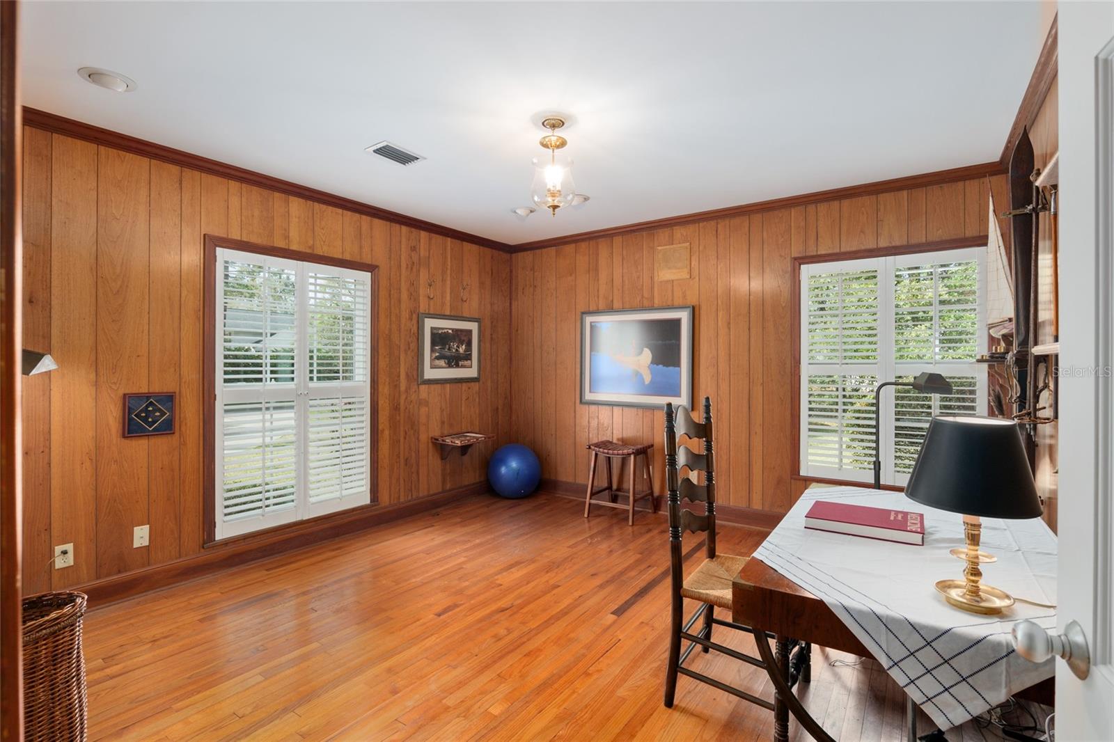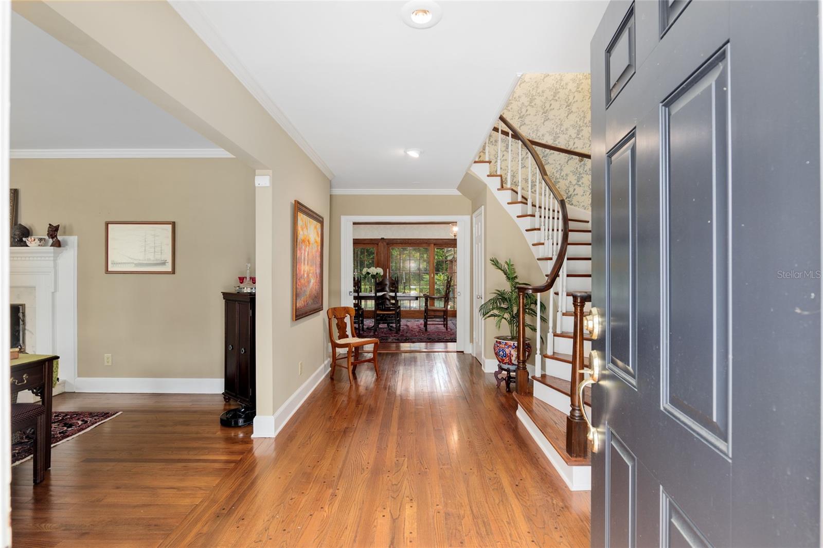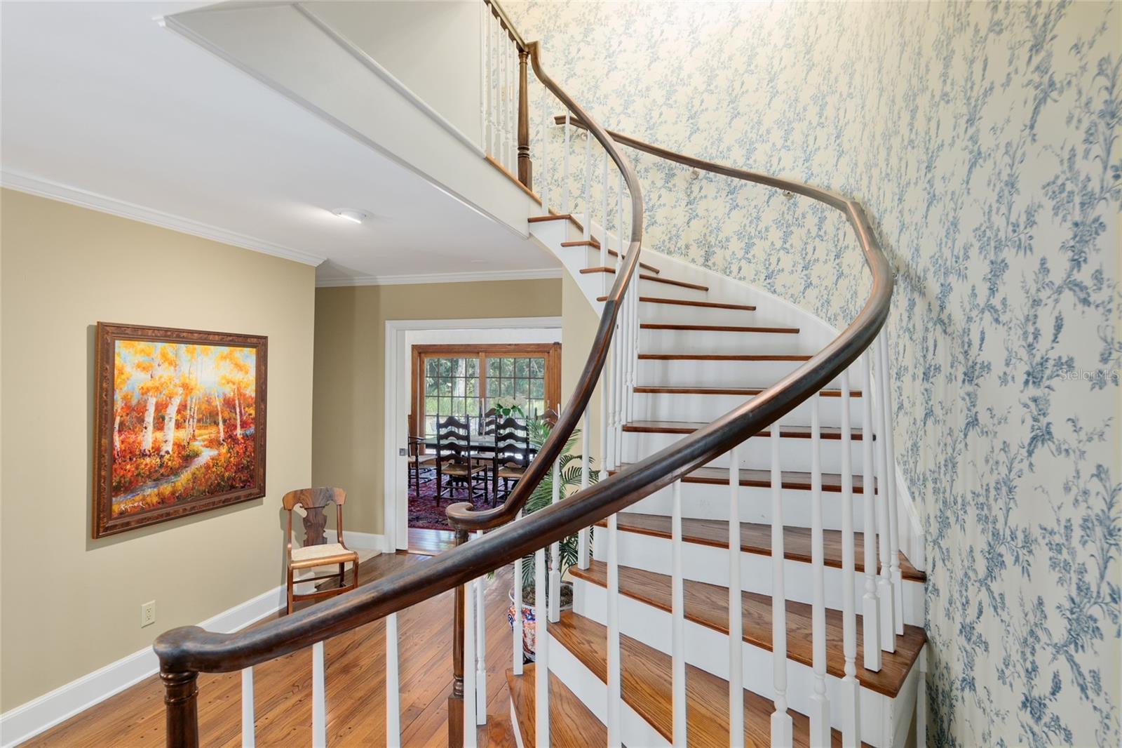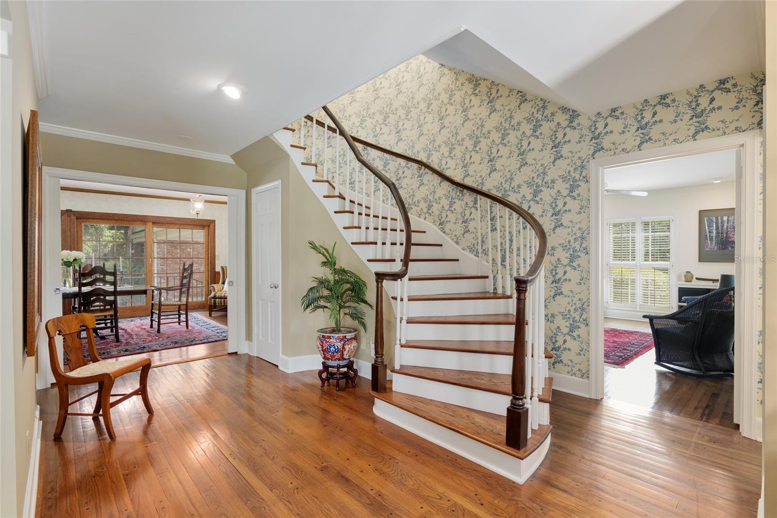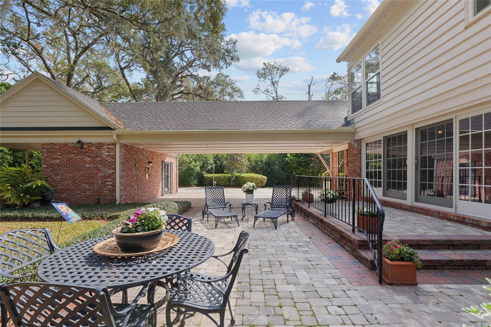 Elegantly maintained brick-accented home exudes classic charm while featuring thoughtful modern updates. A circular driveway leads to the inviting front entrance, where you’ll step into a foyer featuring a striking winding staircase to the upper level. Sliding doors open to a stunning, paver patio and manicured backyard, offering picturesque views of a beautiful oak canopy. To the left of the foyer, a formal living room provides an elegant space for entertaining, while to the right, a cozy family room sits just off the kitchen—perfect for relaxed gatherings. Gorgeous wood floors extend throughout the home, enhancing its warmth and character. The primary and upstairs bathrooms have been tastefully updated, with no expense spared. The home also features a one-car garage with a mini-split system and additional rear storage or parking. This space offers versatile potential—easily convertible into an in-law suite or a cabana for a future pool. Inside, the layout is both functional and flexible: two bedrooms and 2.5 bathrooms downstairs, while the upstairs offers two additional bedrooms, each with its own bonus room, plus a full bathroom. The kitchen, accessible from the covered paver carport—which accommodates more than two vehicles—boasts a walk-in pantry, wet bar, and in-kitchen laundry for added convenience. Updated windows, a whole-home Generac generator, two HVAC systems, and an on-demand water heater, ensuring modern efficiency and comfort. This home has been meticulously cared for, and its prime location is unbeatable—just minutes from Westwood Publix Shopping Center, local shops, and restaurants. UF Health/Shands and downtown Gainesville is only 3 miles away, and UF’s main campus is one mile away. Zoned for Beatrice Parker Elementary, Westwood Middle, and Gainesville High School, this home is truly a rare find.