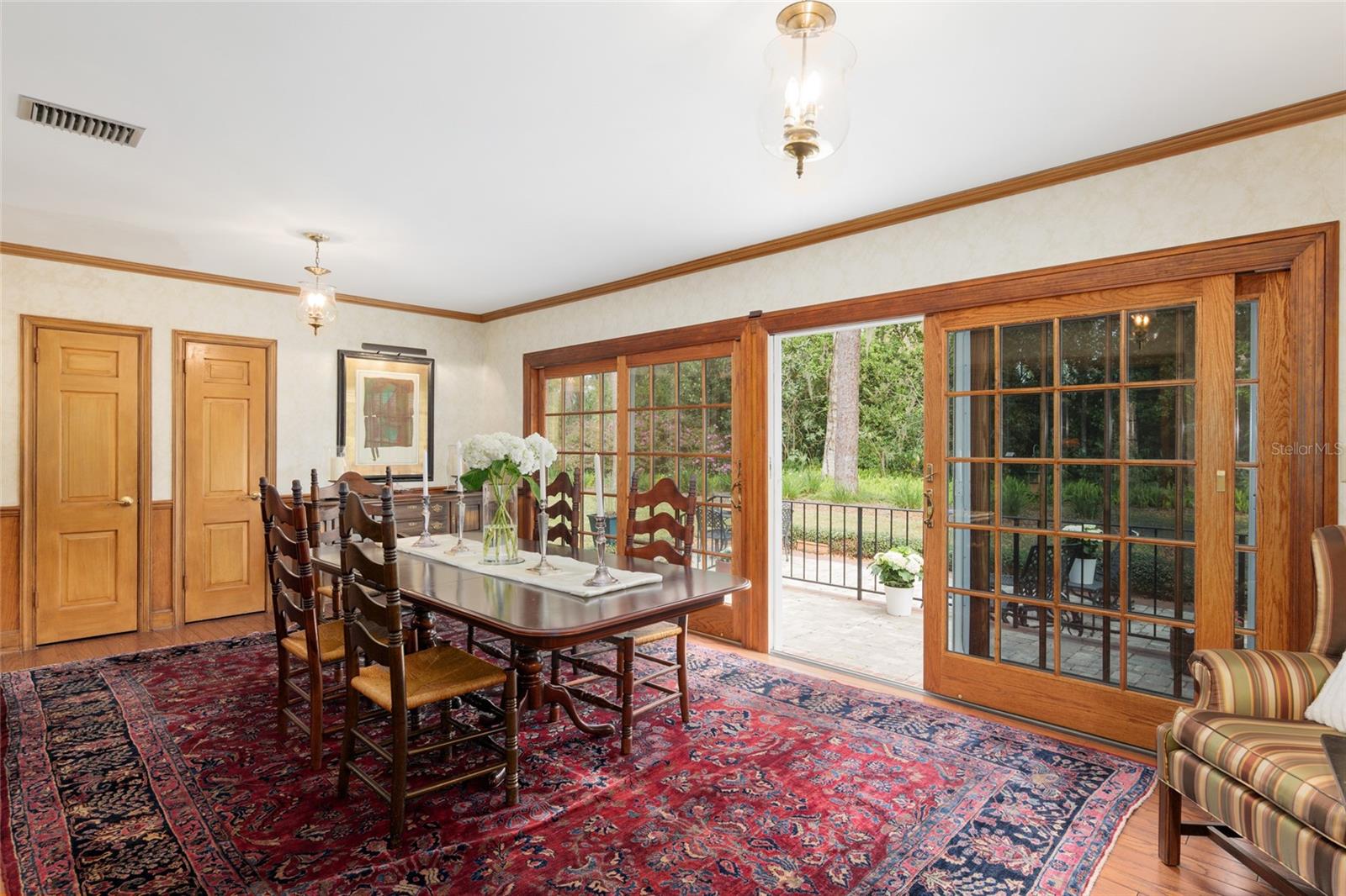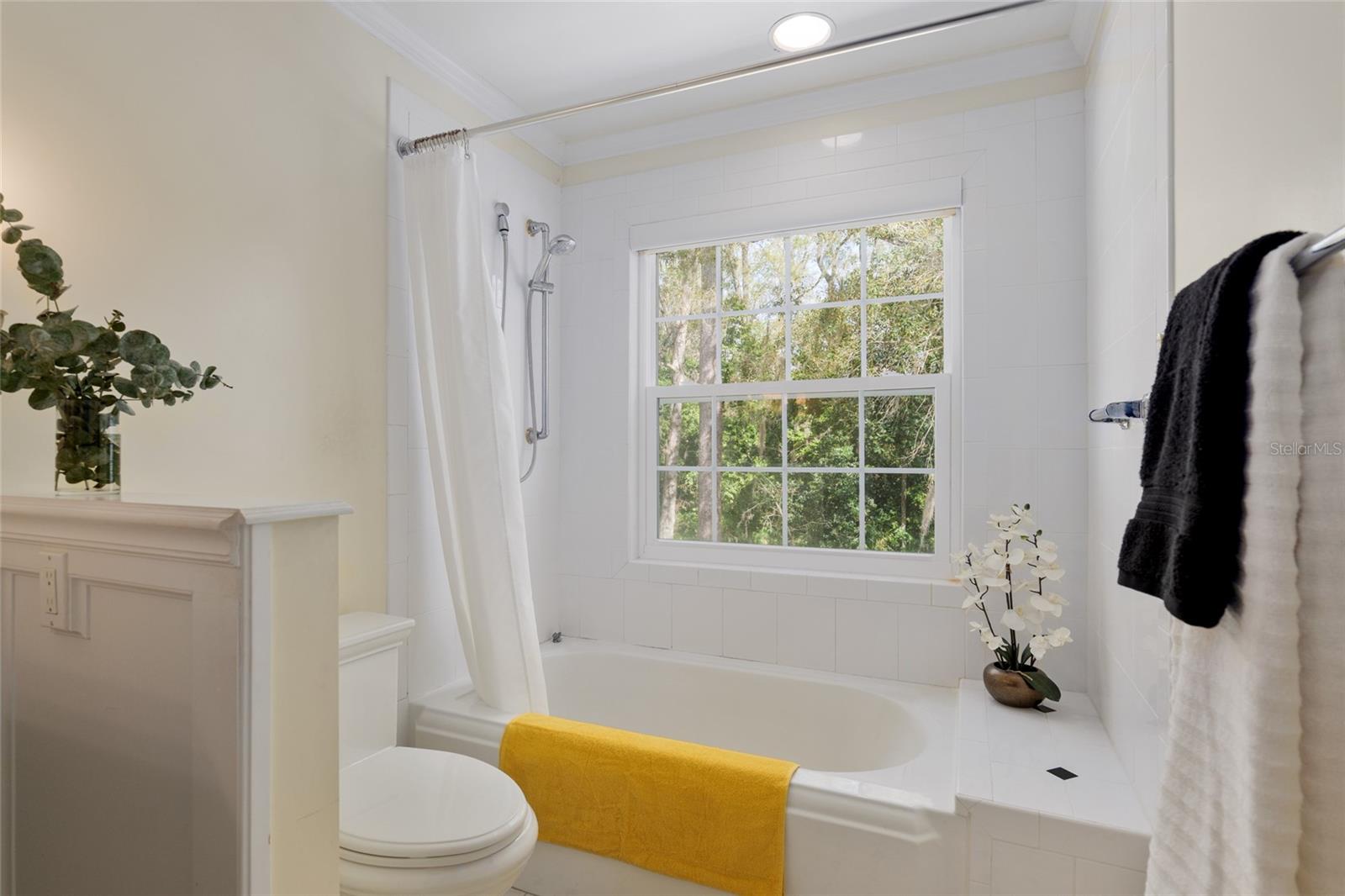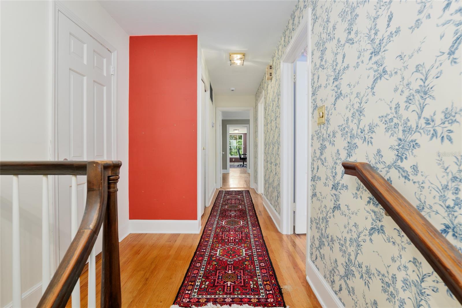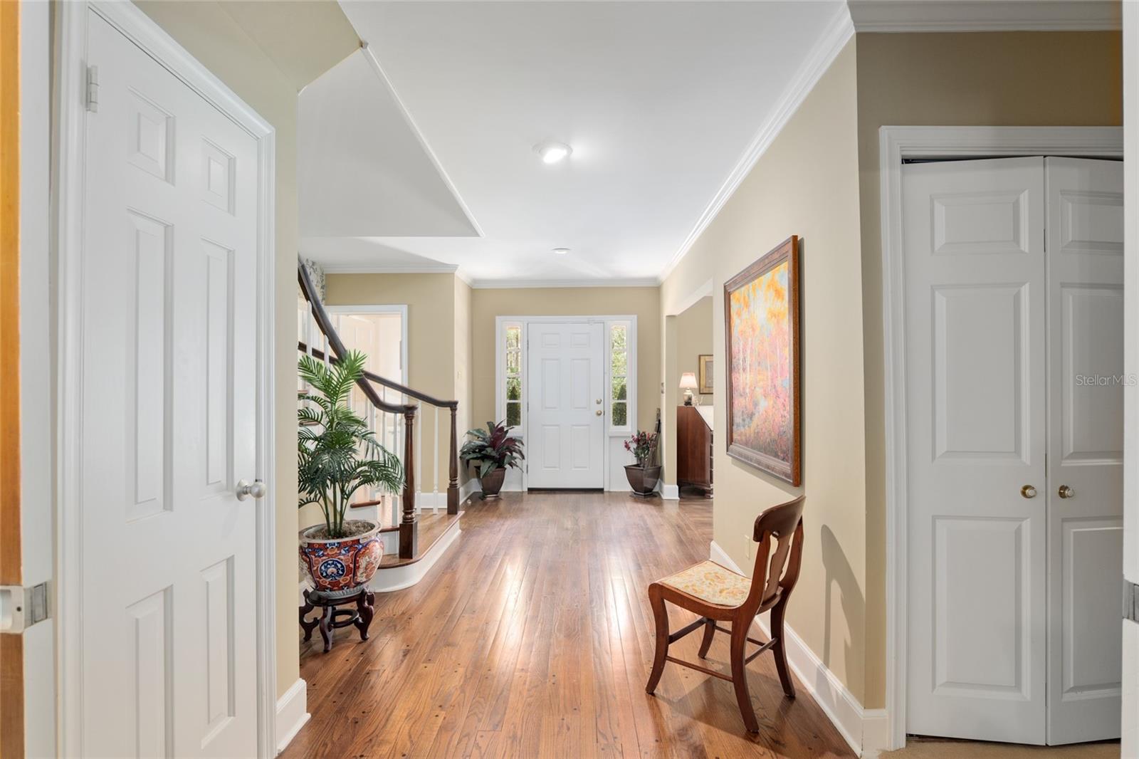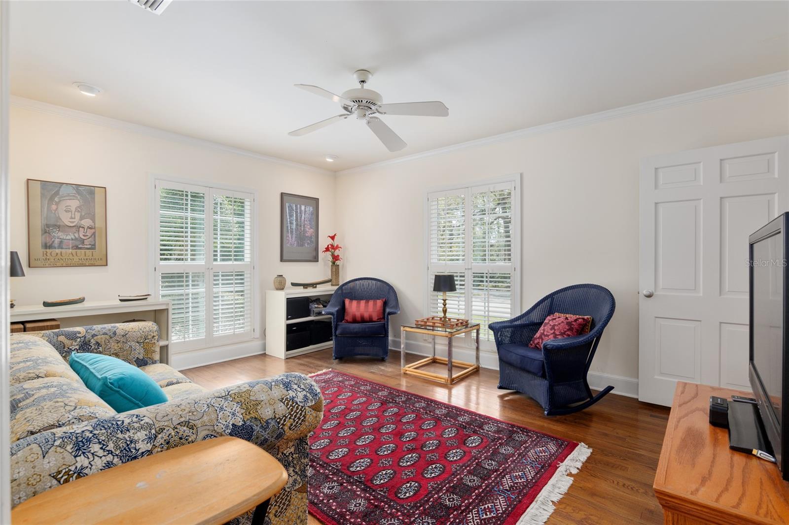 Elegantly maintained brick-accented home exudes classic charm while featuring thoughtful modern updates. A circular driveway leads to the inviting front entrance, where you’ll step into a foyer featuring a striking winding staircase to the upper level. Sliding doors open to a stunning, paver patio and manicured backyard, offering picturesque views of a beautiful oak canopy. To the left of the foyer, a formal living room provides an elegant space for entertaining, while to the right, a cozy family room sits just off the kitchen—perfect for relaxed gatherings. Gorgeous wood floors extend throughout the home, enhancing its warmth and character. The primary and upstairs bathrooms have been tastefully updated, with no expense spared. The home also features a one-car garage with a mini-split system and additional rear storage or parking. This space offers versatile potential—easily convertible into an in-law suite or a cabana for a future pool. Inside, the layout is both functional and flexible: two bedrooms and 2.5 bathrooms downstairs, while the upstairs offers two additional bedrooms, each with its own bonus room, plus a full bathroom. The kitchen, accessible from the covered paver carport—which accommodates more than two vehicles—boasts a walk-in pantry, wet bar, and in-kitchen laundry for added convenience. Updated windows, a whole-home Generac generator, two HVAC systems, and an on-demand water heater, ensuring modern efficiency and comfort. This home has been meticulously cared for, and its prime location is unbeatable—just minutes from Westwood Publix Shopping Center, local shops, and restaurants. UF Health/Shands and downtown Gainesville is only 3 miles away, and UF’s main campus is one mile away. Zoned for Beatrice Parker Elementary, Westwood Middle, and Gainesville High School, this home is truly a rare find.