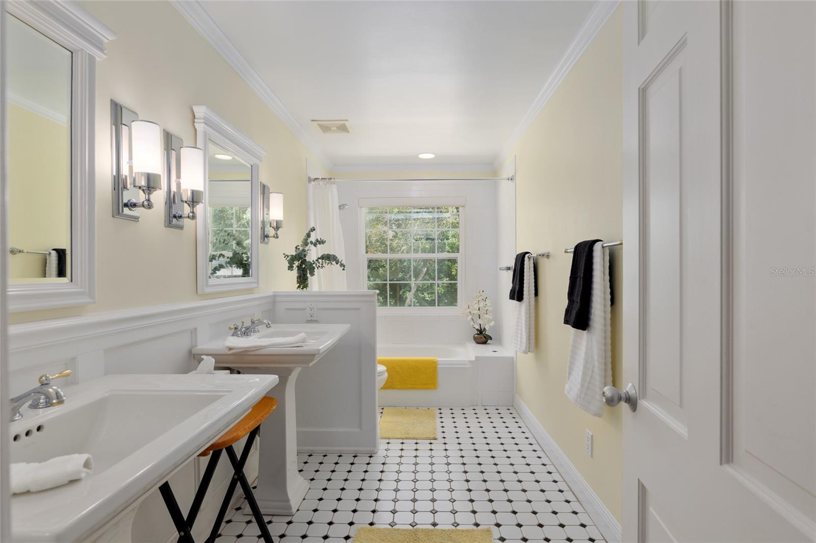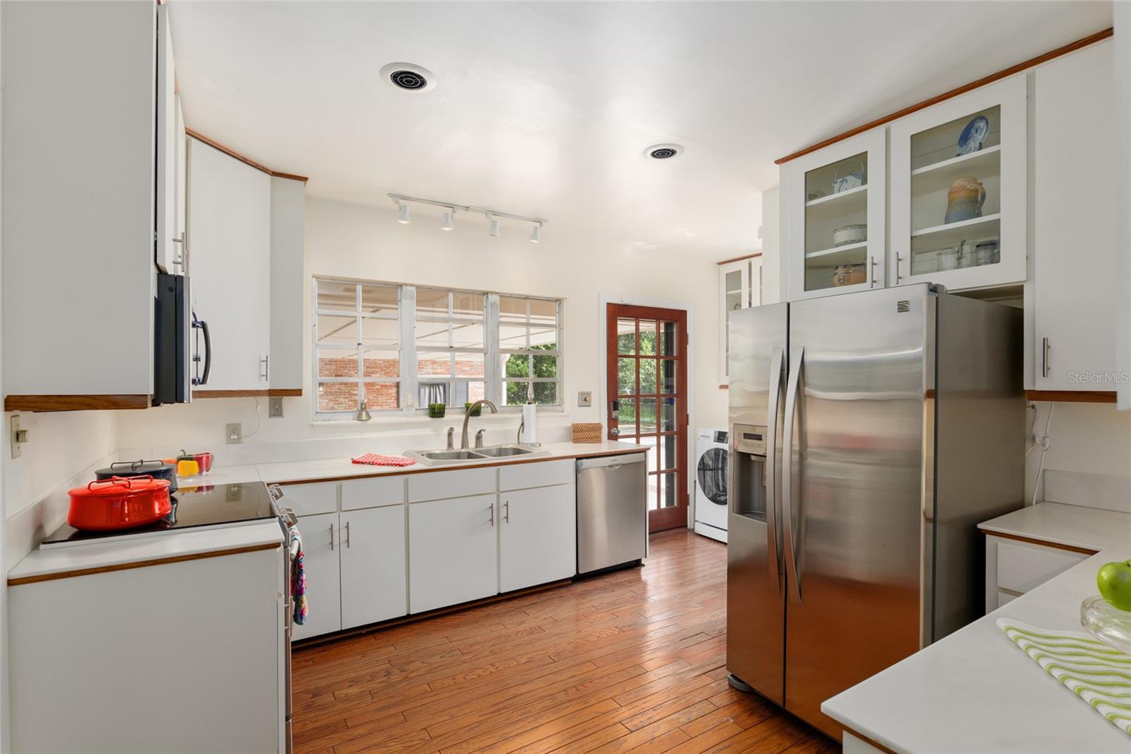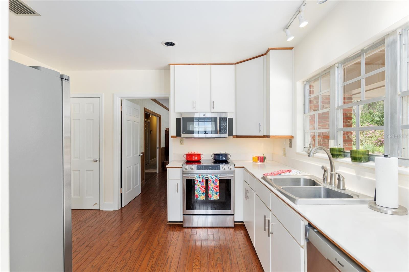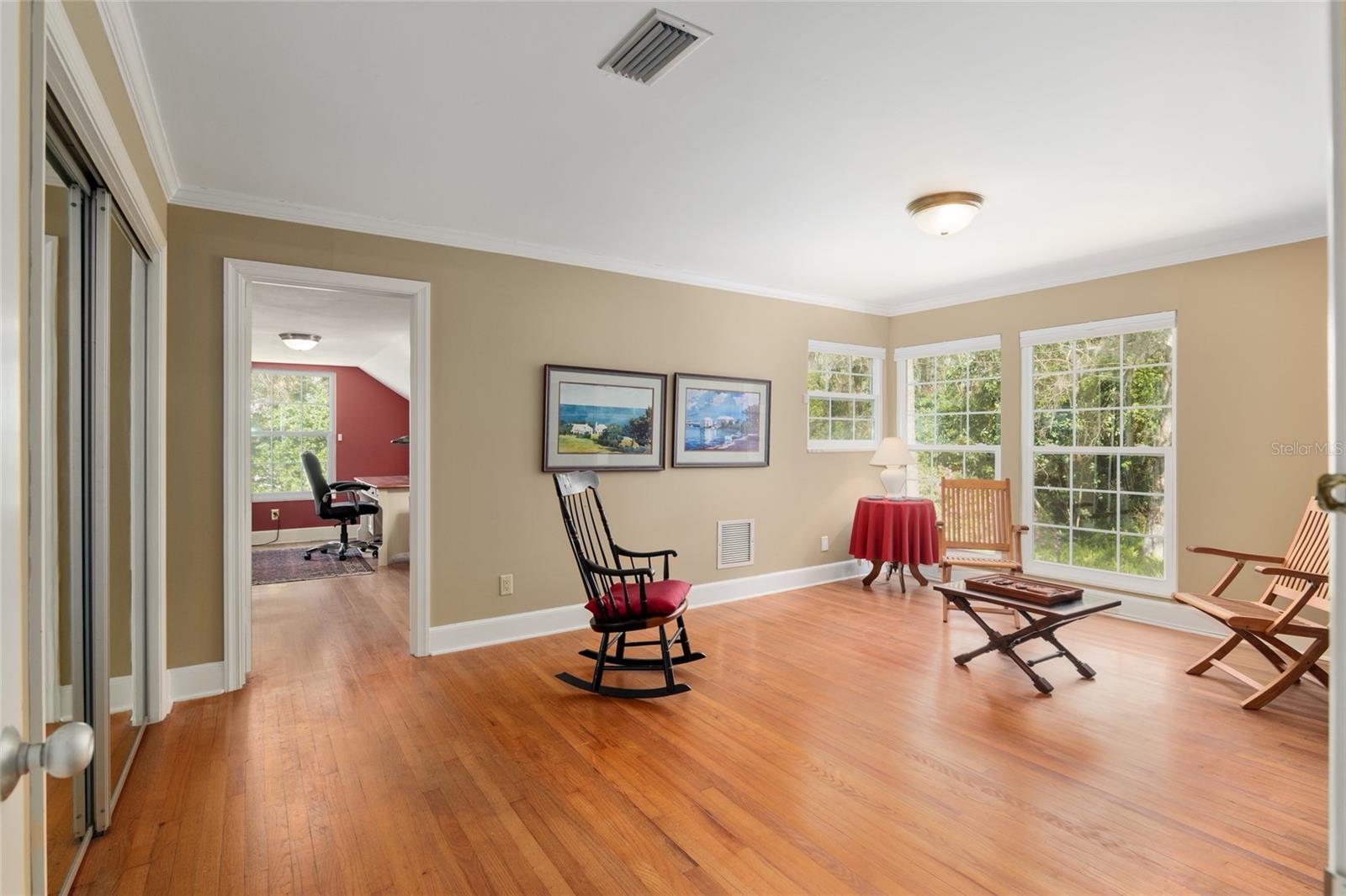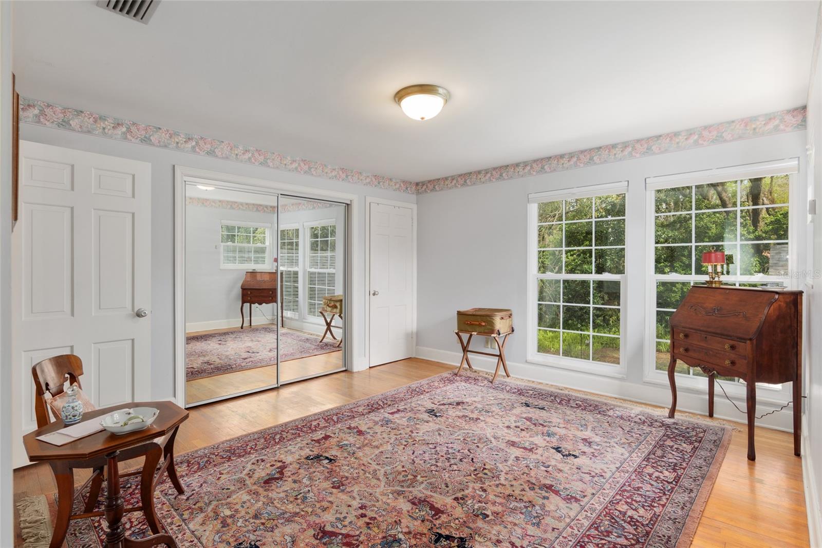 Elegantly maintained brick-accented home exudes classic charm while featuring thoughtful modern updates. A circular driveway leads to the inviting front entrance, where you’ll step into a foyer featuring a striking winding staircase to the upper level. Sliding doors open to a stunning, paver patio and manicured backyard, offering picturesque views of a beautiful oak canopy. To the left of the foyer, a formal living room provides an elegant space for entertaining, while to the right, a cozy family room sits just off the kitchen—perfect for relaxed gatherings. Gorgeous wood floors extend throughout the home, enhancing its warmth and character. The primary and upstairs bathrooms have been tastefully updated, with no expense spared. The home also features a one-car garage with a mini-split system and additional rear storage or parking. This space offers versatile potential—easily convertible into an in-law suite or a cabana for a future pool. Inside, the layout is both functional and flexible: two bedrooms and 2.5 bathrooms downstairs, while the upstairs offers two additional bedrooms, each with its own bonus room, plus a full bathroom. The kitchen, accessible from the covered paver carport—which accommodates more than two vehicles—boasts a walk-in pantry, wet bar, and in-kitchen laundry for added convenience. Updated windows, a whole-home Generac generator, two HVAC systems, and an on-demand water heater, ensuring modern efficiency and comfort. This home has been meticulously cared for, and its prime location is unbeatable—just minutes from Westwood Publix Shopping Center, local shops, and restaurants. UF Health/Shands and downtown Gainesville is only 3 miles away, and UF’s main campus is one mile away. Zoned for Beatrice Parker Elementary, Westwood Middle, and Gainesville High School, this home is truly a rare find.