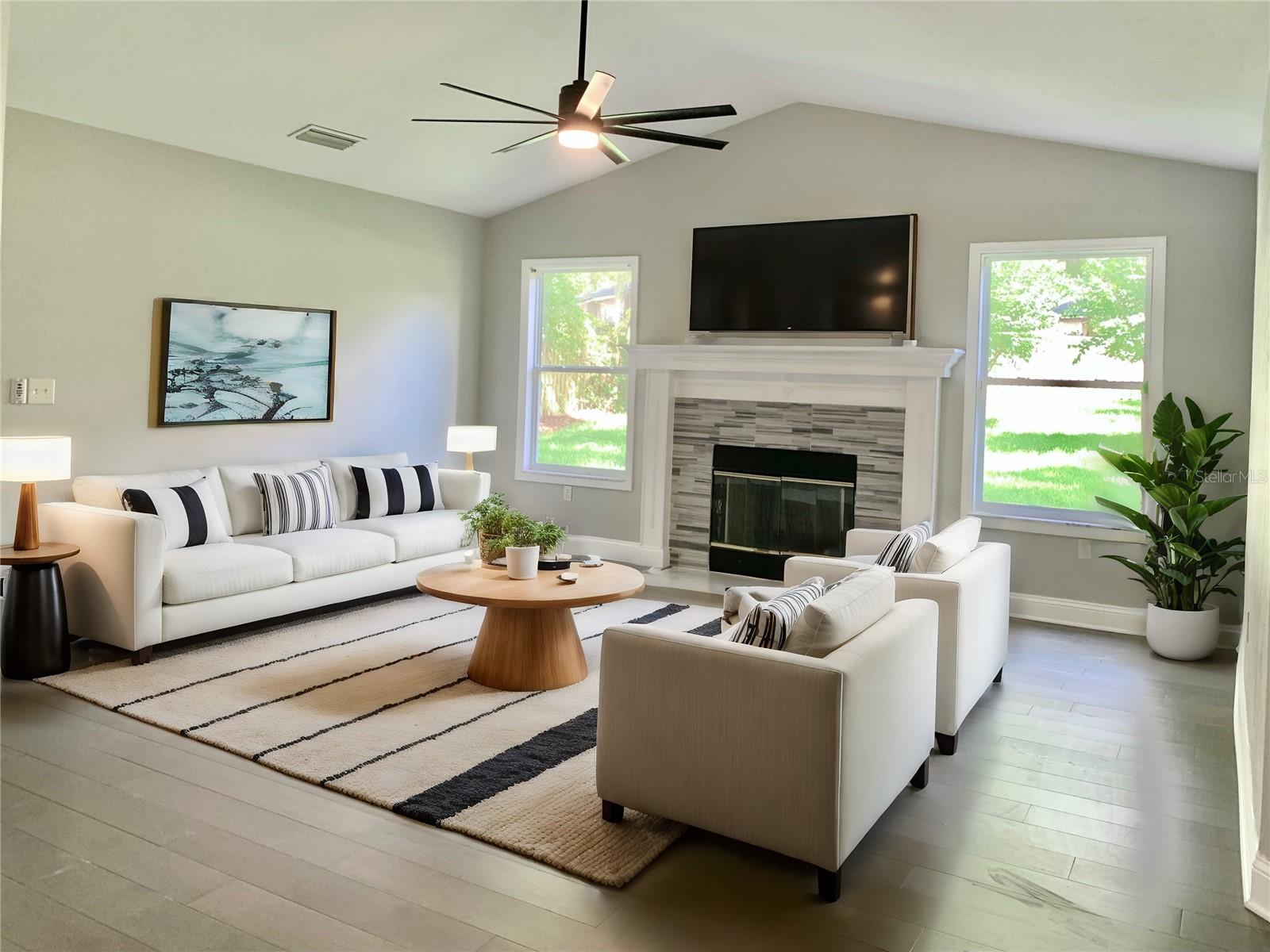 One or more photo(s) has been virtually staged. Prime Listing in Eagle Point Neighborhood! This beautiful cut-de-sac home in Eagle point will welcome you with many updates. As you enter the home you will find high vaulted ceilings, solid wood floors, modern lighting and open floorplan with large living room/dinning room combo and lots of space for entertaining. There is also a half bath to offer guests in the front room common areas. The kitchen is spacious and has been updated with marble countertops, stainless appliances and gorgeous large format tiled flooring. The kitchen has a breakfast bar next to the breakfast area that overlooks the porch and backyard. The family room has a vaulted ceiling as well with wood burning fireplace with a beautiful tiled veneer. The home has a split bedroom plan with two guest rooms and a bath on one side and the Primary bedroom, primary bath and office/4th bedroom on the other side. In the primary bedroom you will find new carpet, tray ceiling with ceiling fan, a large walk-in closet with wonderful organizer installed. The primary bathroom offers your escape with a whirlpool tub and separate walk-in shower. The double vanity has a new quartz countertop and newer lighting. The guest rooms on the other side of the home are spacious with newer carpet and nice natural lighting. The guest bathroom has been updated with a modern tiled shower and newer vanity. The home has a 2 car garage, updated HVAC unit, New roof in 2022, new water heater in 2024. This home really shines with all of the updates that have been done. Come take a look before it's gone!