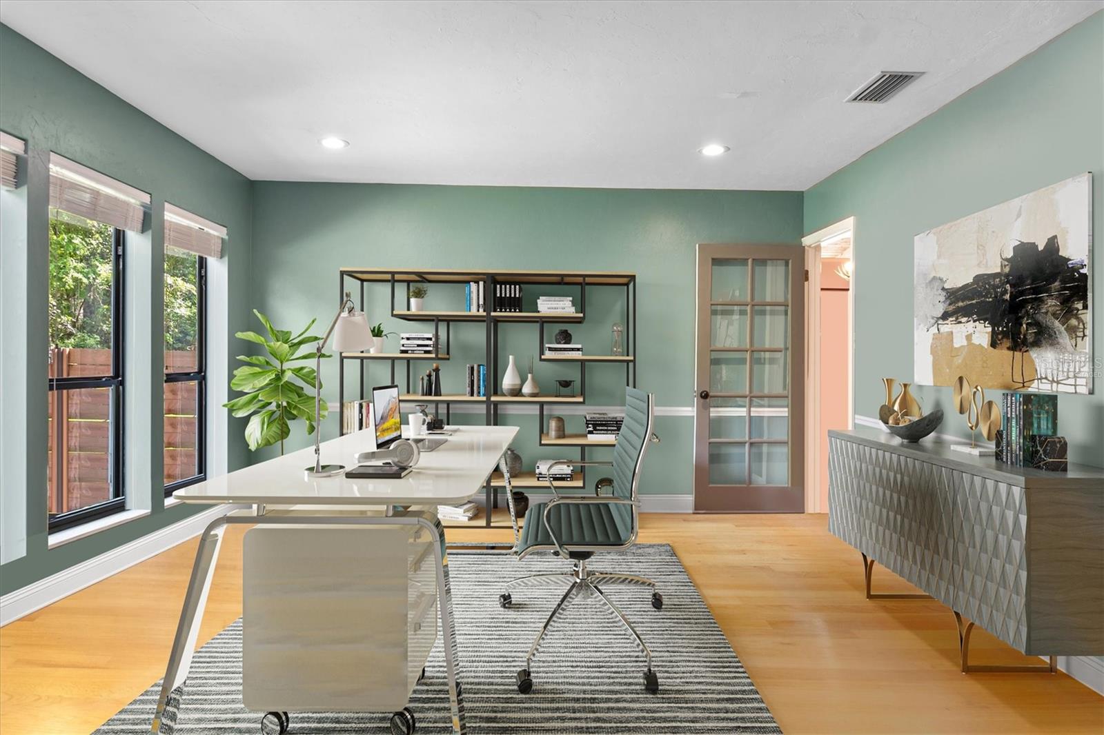 One or more photo(s) has been virtually staged. STUNNING POOL HOME with a TRUE FULLY SEPARATE IN-LAW SUITE! *Call today for your private VIP TOUR*! This incredible 4-bedroom/4.5 bathroom pool home is the perfect blend of elegance, space, and versatility. Featuring a dedicated office (or potential 5th bedroom), a formal dining room, and a spacious, updated kitchen with views of the custom-designed pool oasis, this home is built for both relaxation and entertaining. The in-law suite is a rare find—completely private with its own FULL kitchen, living room, office, private porch leading to the pool, full bathroom, and direct access to the pool and lanai. It’s ideal for multi-generational living or guests. Step into the Owner’s Suite and indulge in the spa-inspired ensuite complete with a luxurious soaking tub and tiled walk-in shower and a walk-in closet. Upstairs, you'll find two generously sized bedrooms and a full bathroom, offering flexible space. Cozy up by the custom indoor fireplace or unwind outdoors by the fireplace on cooler Florida evenings. The oversized screened Florida room provides ample space for dining, lounging, or simply soaking in the serene backyard views. **Additional highlights include a newer roof (2021), converted saltwater pool with custom waterfall, gas water heater (for the pool), sand filter, wireless pool controller, upgraded lighting throughout the home, freshly painted interior and exterior, vaulted ceilings, cedar siding, upgraded garage hardware, newer ac's, multiple patios, and extra storage spaces. All this, just minutes from Haile Village, shopping, UF, medical centers, the VA, I-75, Ocala, and so much more. This home is not just a must-see—it's a must-have. Schedule your private tour today and fall in love with everything it has to offer!