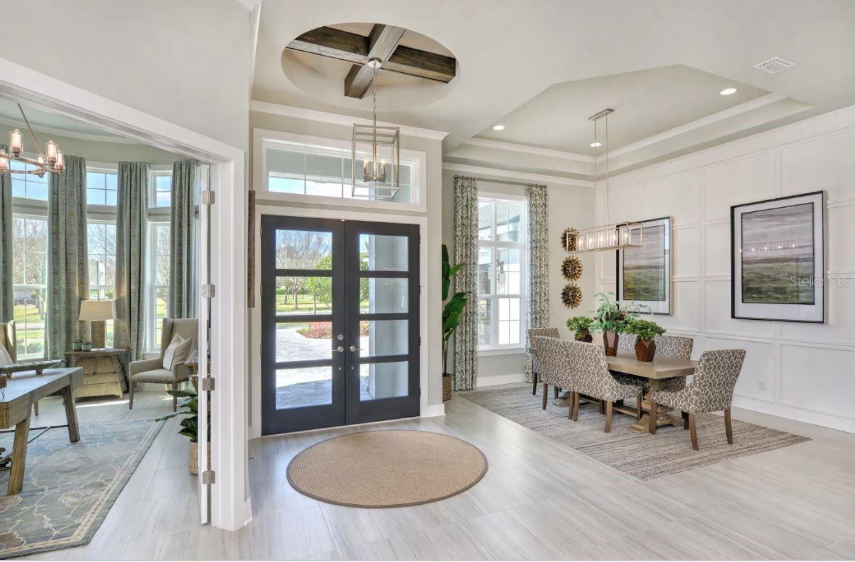 Welcome to the Egret V ICI Homes Design Center Model, which is a thoughtfully crafted and spacious four-bedroom, three-bathroom home that is as functional as it is elegant. Spanning over 3,000 square feet, this layout is perfect for families, entertainers, and those who crave both privacy and open space. Imagine entering through the inviting foyer with its high tray ceiling that sets the tone for the elegance and openness that follows throughout the home. To your right, a flexible space awaits, ready to become a cozy study, home office, or even an additional bedroom, depending on your needs.