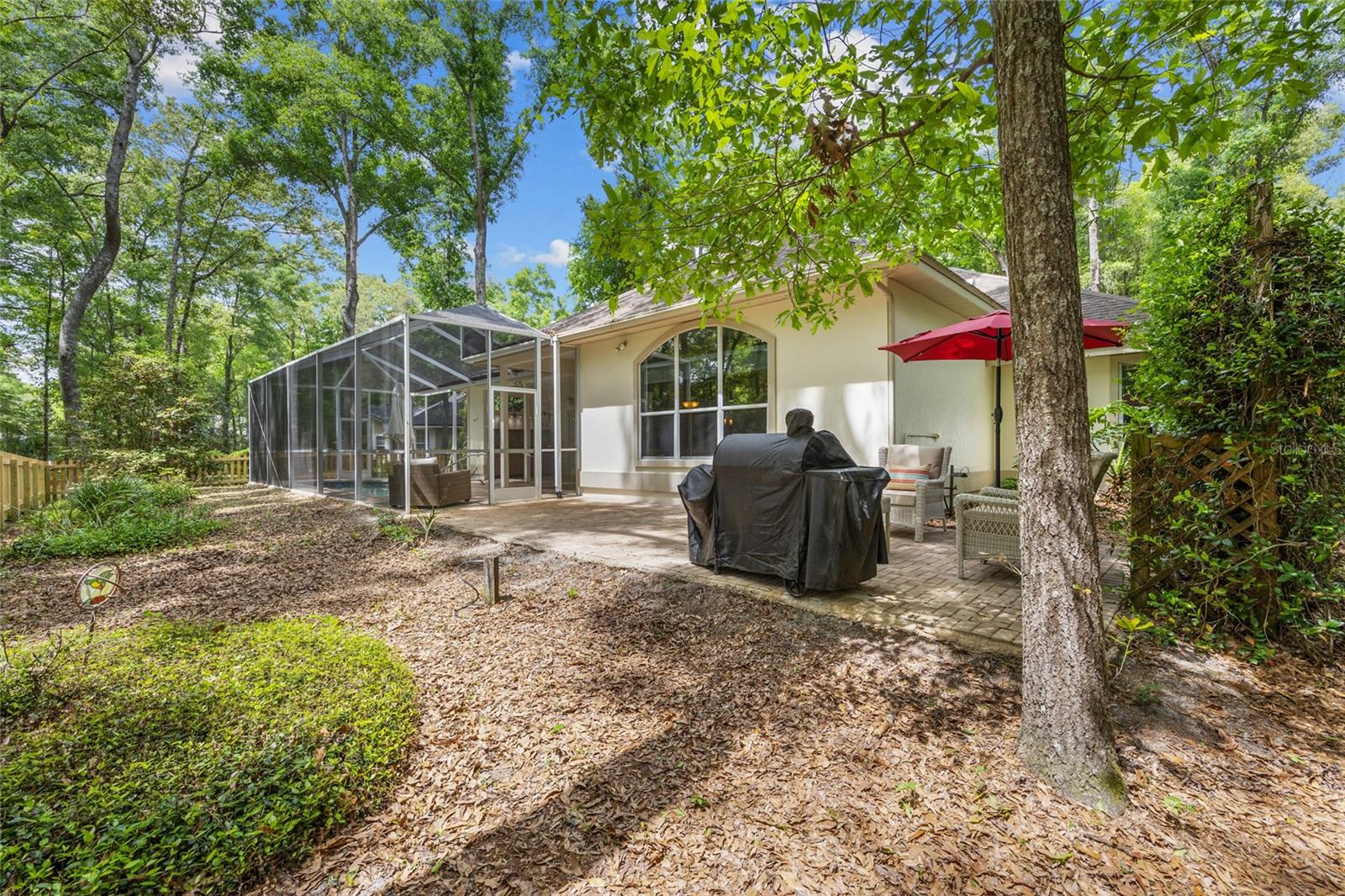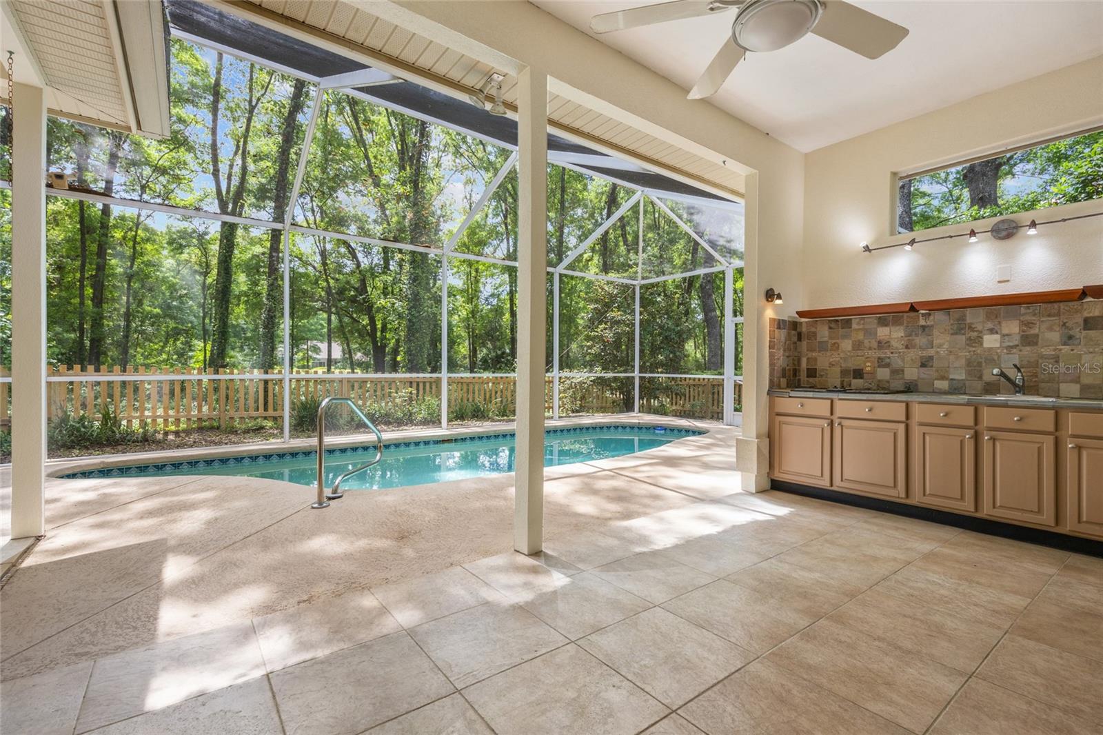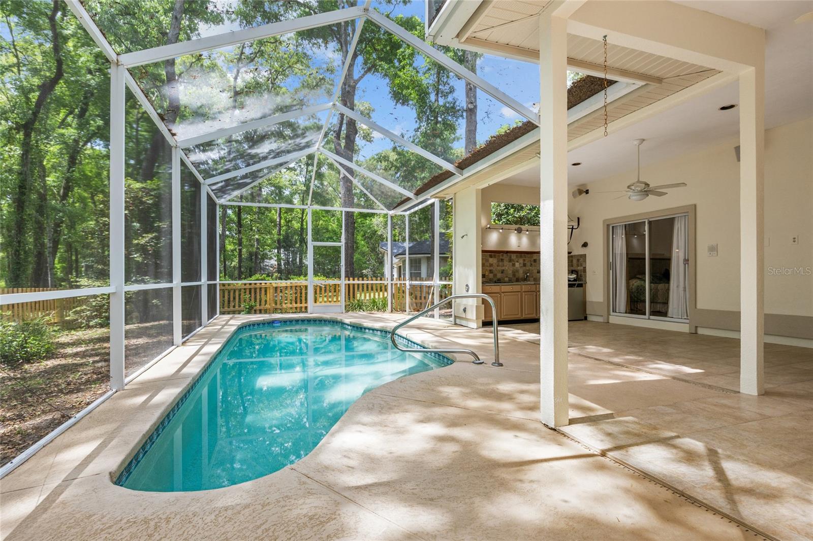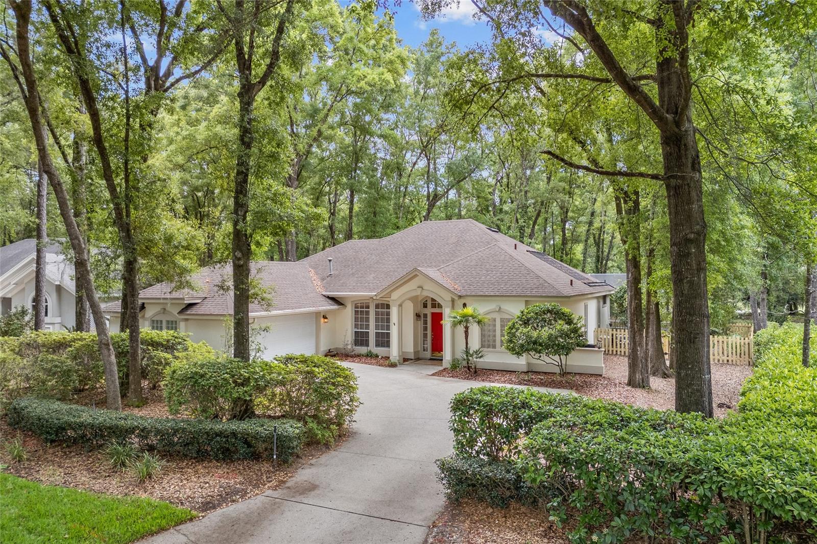 Prime Location!! If you love golf, This beautiful pool home is on the golf course and within a short distance to the Hawkstone Clubhouse, as well as the charming Haile Village Center offering shops, restaurants, and a Saturday farmer's market. Nestled in the highly desirable Amelia Gardens neighborhood, this is the only pool home on this block! Enjoy stunning views of the 3rd fairway of the golf course right from your pool! This Wonderful 3-bedroom, 2.5-bathroom home has an additional flexible space, boasts curb appeal, an ideal floor plan, and a gorgeous serene outdoor living area. Relax by the screened pool, enjoy the separate patio adjacent to the pool, or admire the lovely landscaping in the backyard. Inside, the great room features a cozy gas fireplace, built-ins, and a wall of windows with breathtaking views of the 3rd fairway of the golf course—perfect for entertaining! It flows seamlessly into the kitchen, which includes stainless steel appliances, ample counter space, and a breakfast bar. Step outside to the lanai, which includes a fully equipped summer kitchen! The two-car garage also has a additional dedicated space for a golf cart with its own separate door. Easy access to nearby trails & parks. Within minutes of schools, the University of Florida, UF Health, and the VA. New fence, exterior and interior paint. Roof (2012), Water Heater (2011), HVAC (2010).