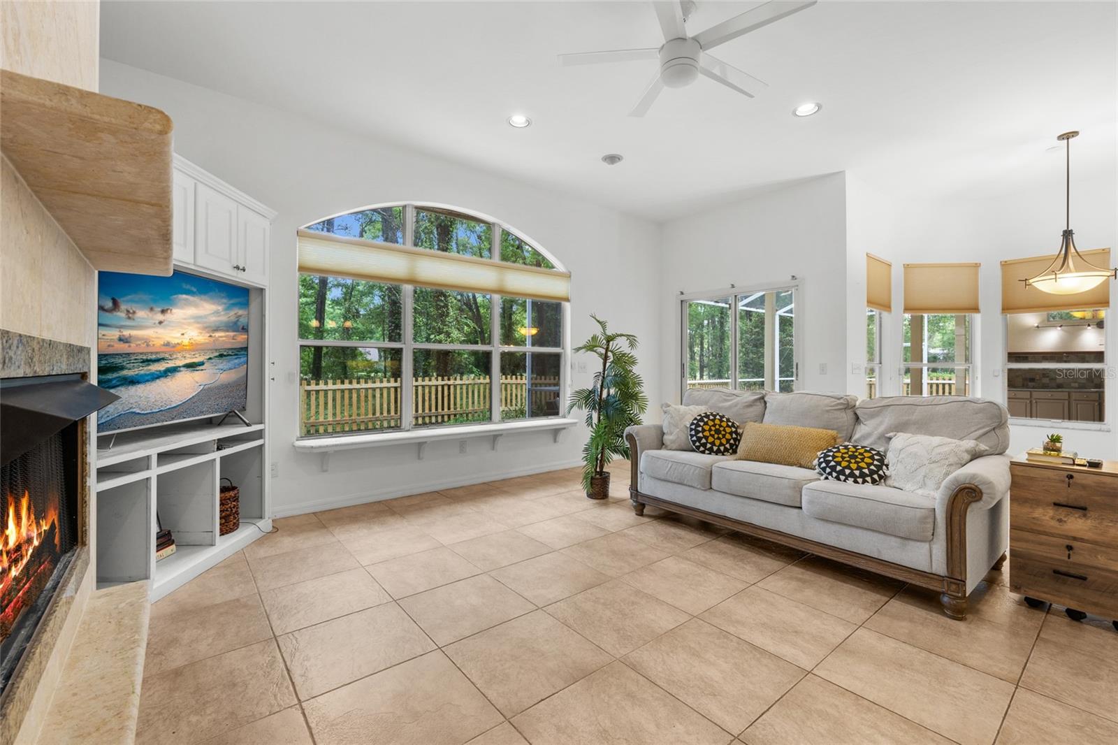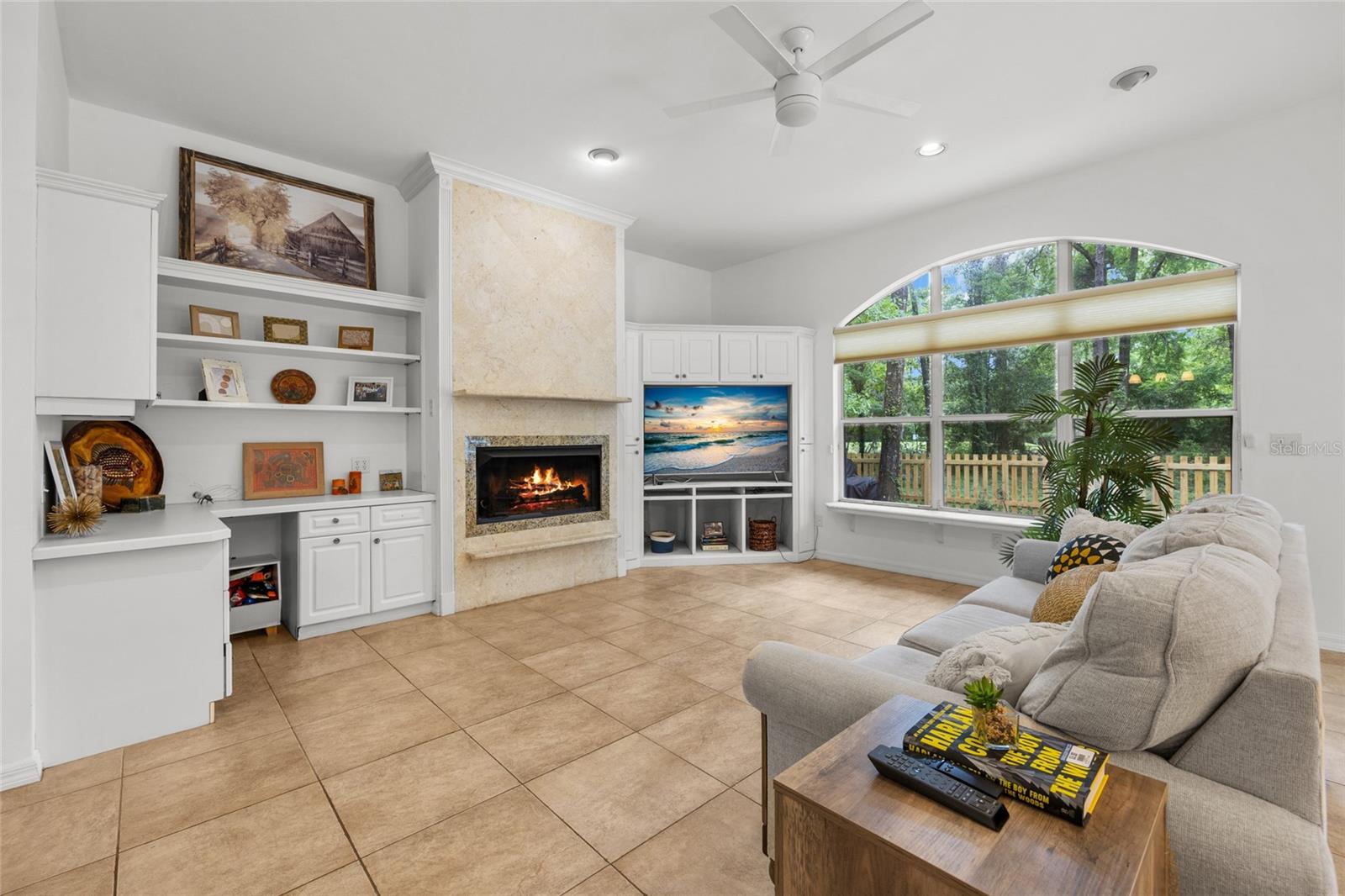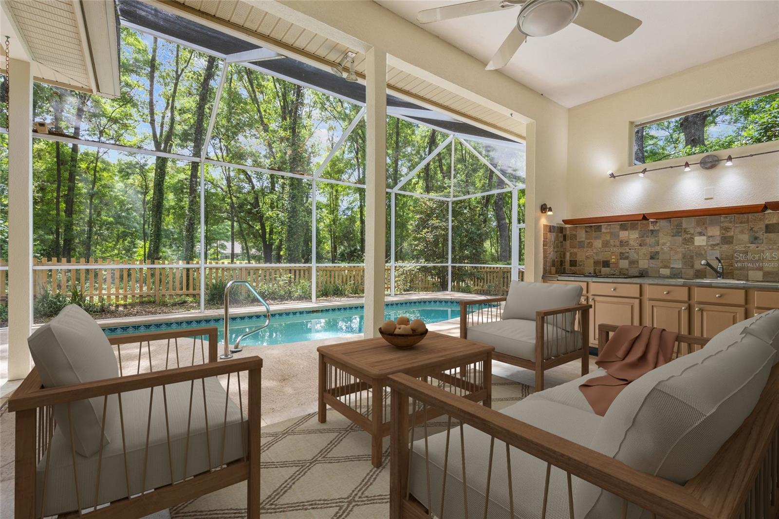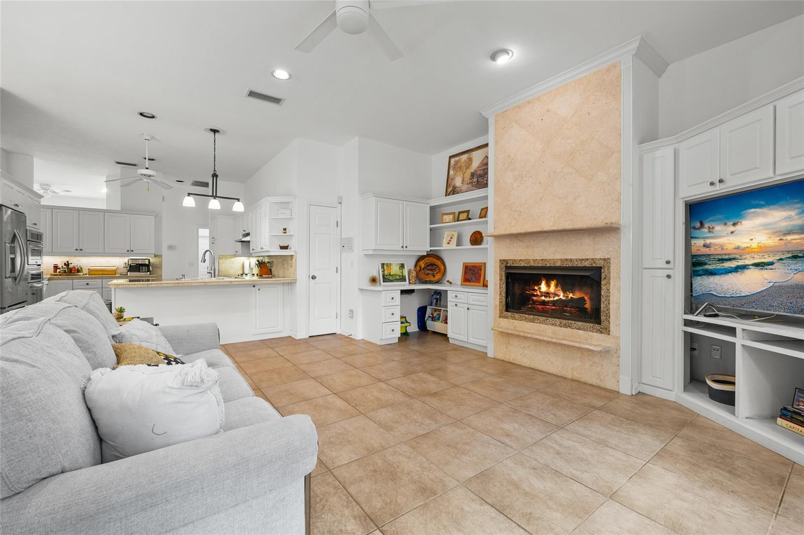 Prime Location!! If you love golf, This beautiful pool home is on the golf course and within a short distance to the Hawkstone Clubhouse, as well as the charming Haile Village Center offering shops, restaurants, and a Saturday farmer's market. Nestled in the highly desirable Amelia Gardens neighborhood, this is the only pool home on this block! Enjoy stunning views of the 3rd fairway of the golf course right from your pool! This Wonderful 3-bedroom, 2.5-bathroom home has an additional flexible space, boasts curb appeal, an ideal floor plan, and a gorgeous serene outdoor living area. Relax by the screened pool, enjoy the separate patio adjacent to the pool, or admire the lovely landscaping in the backyard. Inside, the great room features a cozy gas fireplace, built-ins, and a wall of windows with breathtaking views of the 3rd fairway of the golf course—perfect for entertaining! It flows seamlessly into the kitchen, which includes stainless steel appliances, ample counter space, and a breakfast bar. Step outside to the lanai, which includes a fully equipped summer kitchen! The two-car garage also has a additional dedicated space for a golf cart with its own separate door. Easy access to nearby trails & parks. Within minutes of schools, the University of Florida, UF Health, and the VA. New fence, exterior and interior paint. Roof (2012), Water Heater (2011), HVAC (2010).