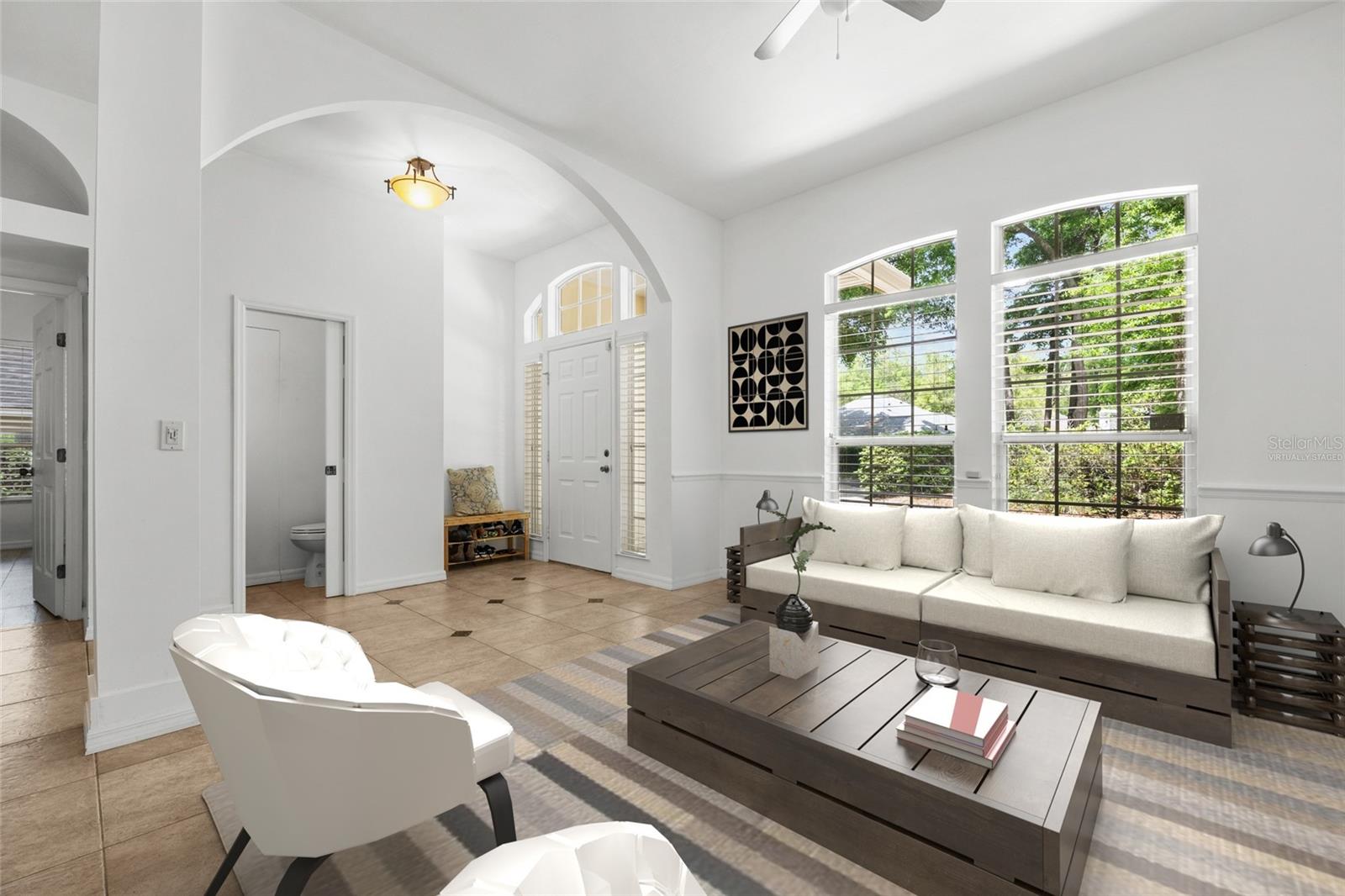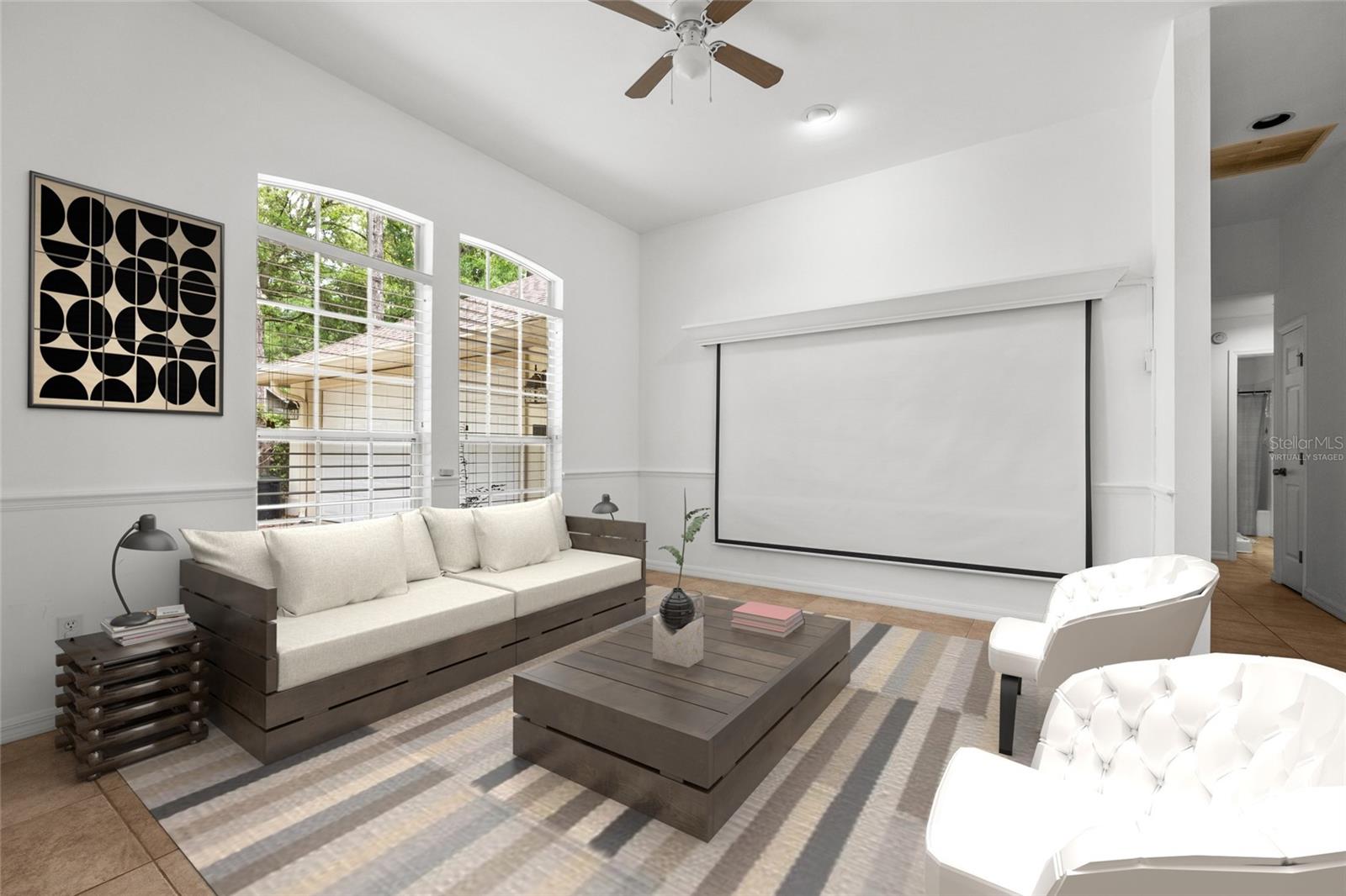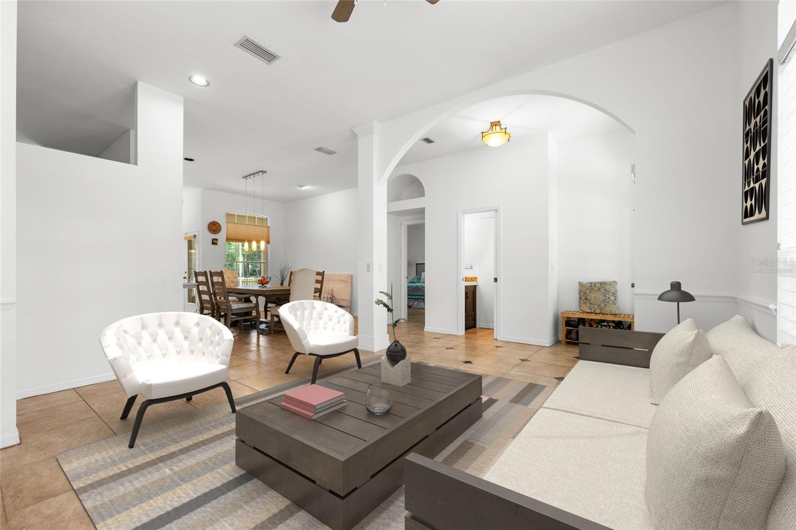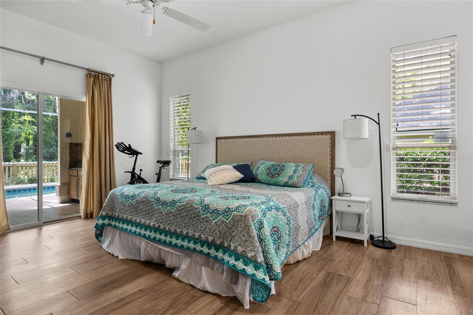 Prime Location!! If you love golf, This beautiful pool home is on the golf course and within a short distance to the Hawkstone Clubhouse, as well as the charming Haile Village Center offering shops, restaurants, and a Saturday farmer's market. Nestled in the highly desirable Amelia Gardens neighborhood, this is the only pool home on this block! Enjoy stunning views of the 3rd fairway of the golf course right from your pool! This Wonderful 3-bedroom, 2.5-bathroom home has an additional flexible space, boasts curb appeal, an ideal floor plan, and a gorgeous serene outdoor living area. Relax by the screened pool, enjoy the separate patio adjacent to the pool, or admire the lovely landscaping in the backyard. Inside, the great room features a cozy gas fireplace, built-ins, and a wall of windows with breathtaking views of the 3rd fairway of the golf course—perfect for entertaining! It flows seamlessly into the kitchen, which includes stainless steel appliances, ample counter space, and a breakfast bar. Step outside to the lanai, which includes a fully equipped summer kitchen! The two-car garage also has a additional dedicated space for a golf cart with its own separate door. Easy access to nearby trails & parks. Within minutes of schools, the University of Florida, UF Health, and the VA. New fence, exterior and interior paint. Roof (2012), Water Heater (2011), HVAC (2010).