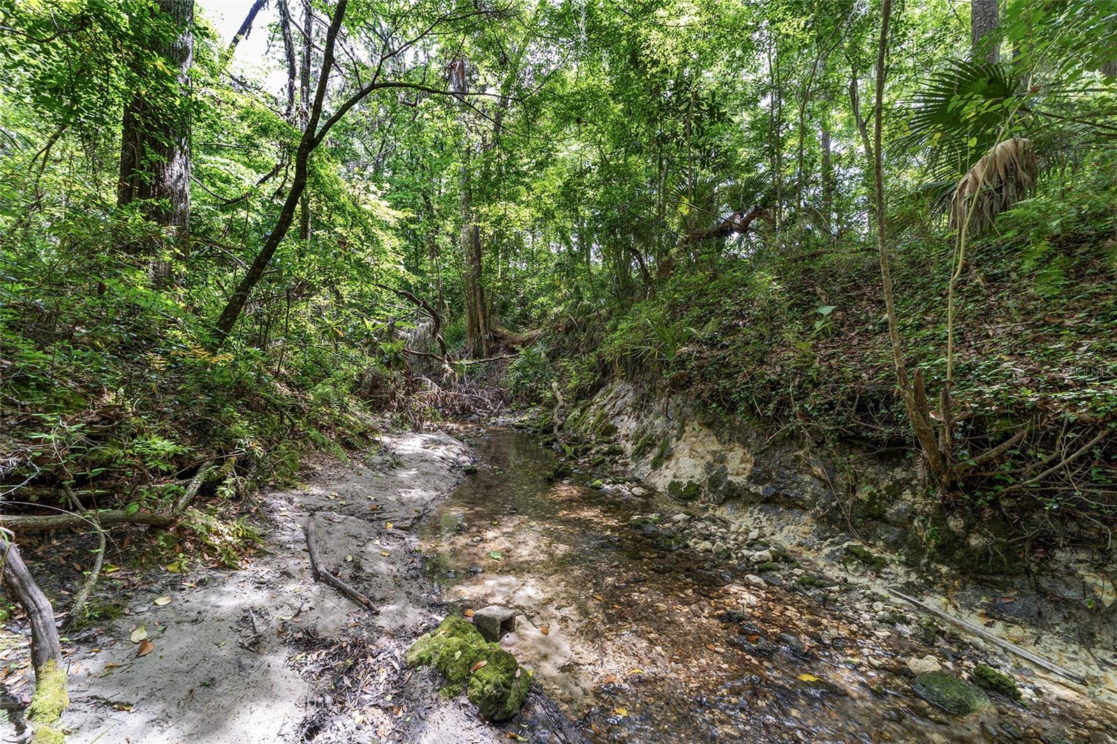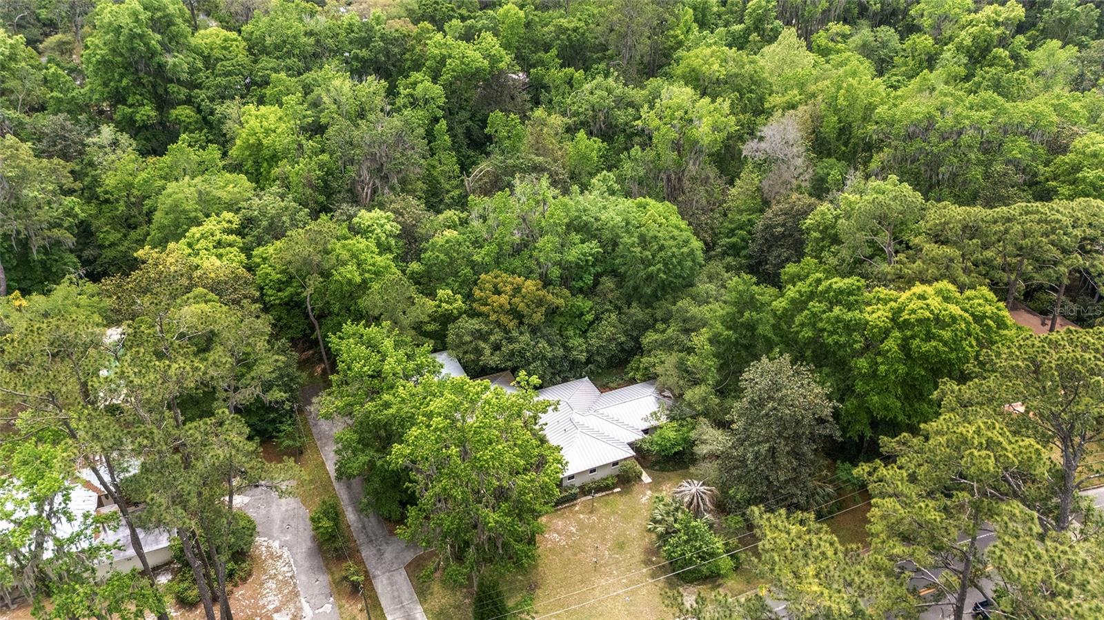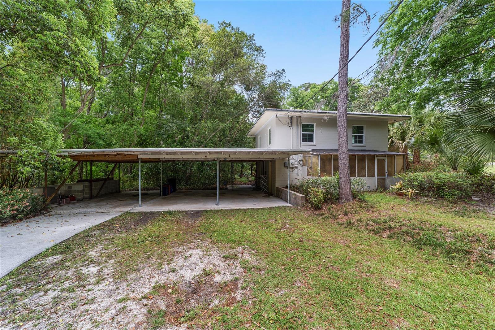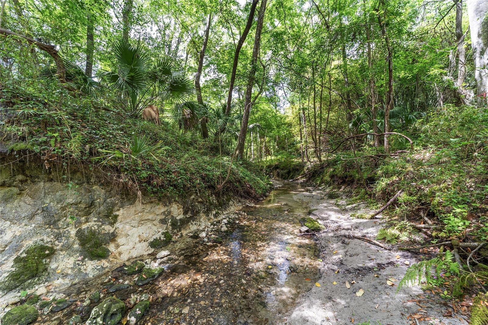 Charming 4-Bedroom Home nestled on over 1.3 acres and bounded by the Hogtown Creek in a serene natural setting. Welcome to your peaceful nature retreat just 1 mile to the University of Florida! This spacious 4-bedroom, 3.5-bathroom home in Florida Park offers the perfect blend of privacy, comfort, and functionality. The property features mature landscaping, oak and palm trees, and plenty of open space, making it ideal for relaxing, gardening, or entertaining outdoors. The house is a solid, split-level concrete block structure with a lifetime metal roof that has been nicely upgraded multiple times. Inside, the kitchen area features granite counters while the open Florida room is a true showstopper—bathed in natural light with wide views of the tranquil landscape, it's the perfect spot for a morning coffee or unwinding in the evening. The main living room offers expansive views of the back yard through floor to ceiling windows and an inviting layout for family life or hosting guests around the fireplace and on the adjacent hand-laid brick patio. The wood flooring was just refinished and freshly painted (including new ceiling paint). The home features a 3-way split floor plan, each bedroom is generously sized, and the three full bathrooms ensure convenience for everyone. The large primary bedroom on the main floor features an ensuite bathroom. Upstairs you will find two more large bedrooms with a hallway bathroom and linen closet. Downstairs is a laundry room, bedroom with ensuite bathroom, and a project/library room with built-in counters and bookshelves. Outside, a three-car carport provides ample covered parking and additional storage space. Gardeners will enjoy the turn-key greenhouse and potting room ready to go for adding to the property's existing natural beauty. Don't miss this opportunity to enjoy the best of North Florida living in a peaceful, natural setting!