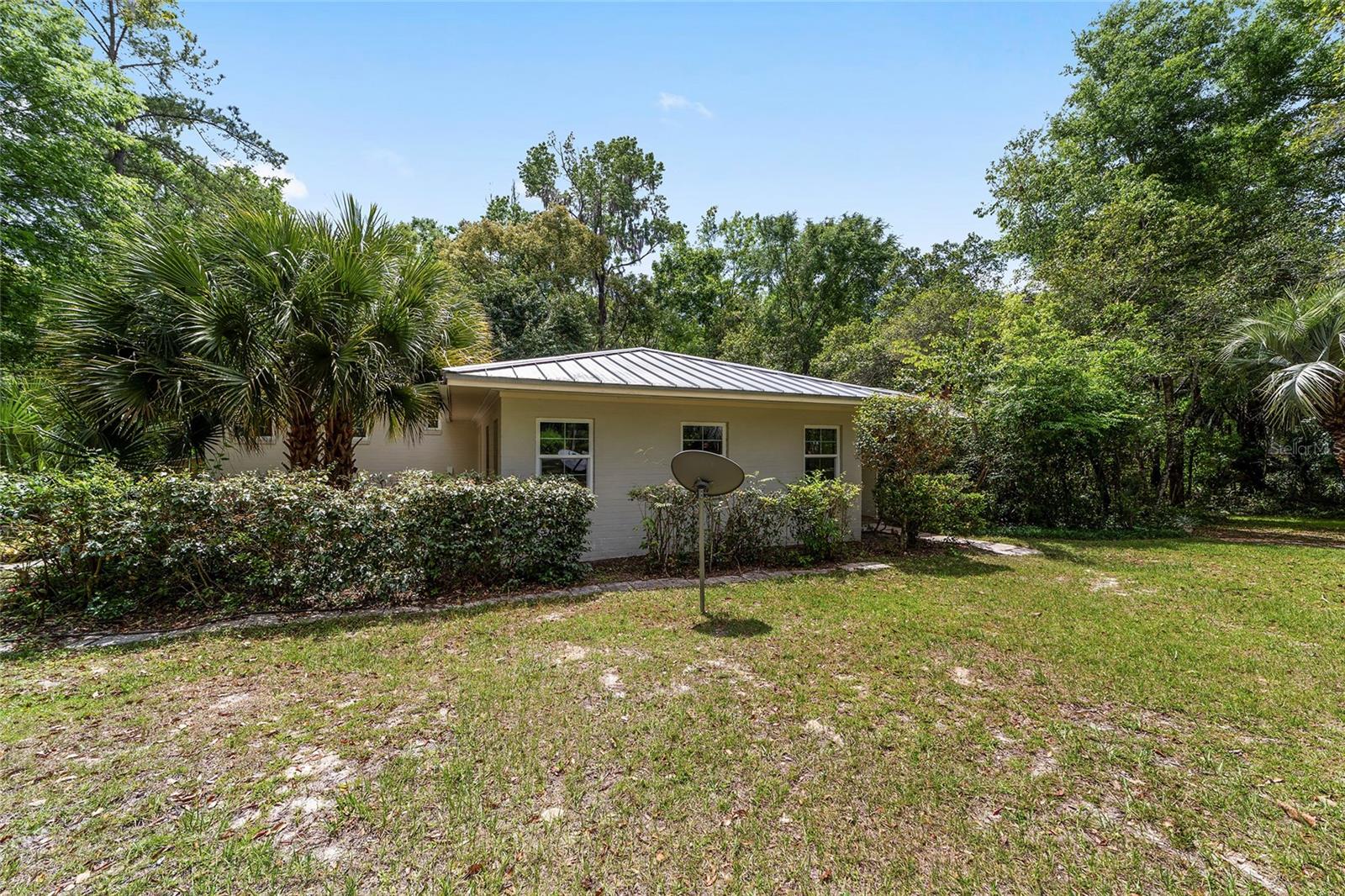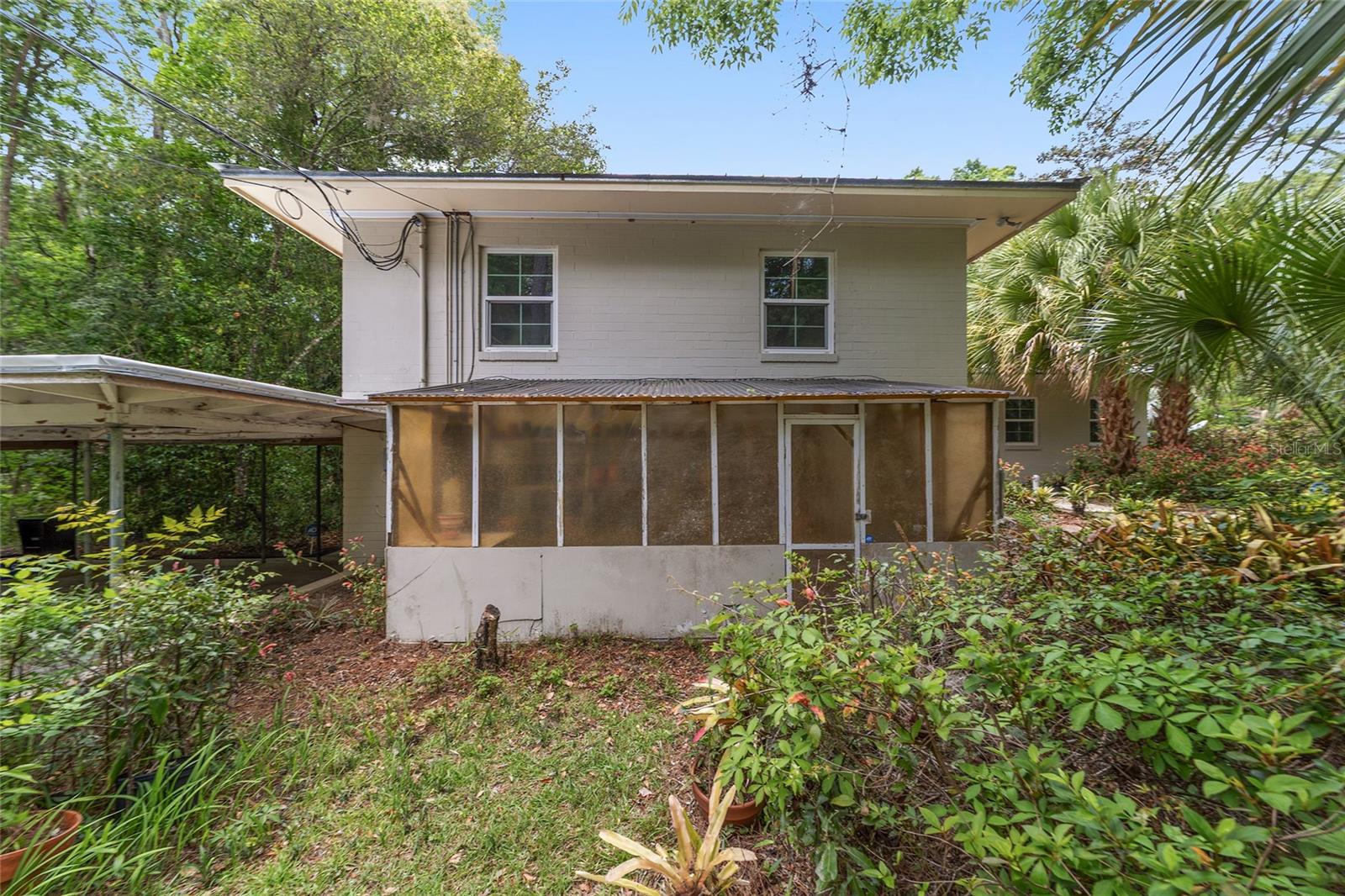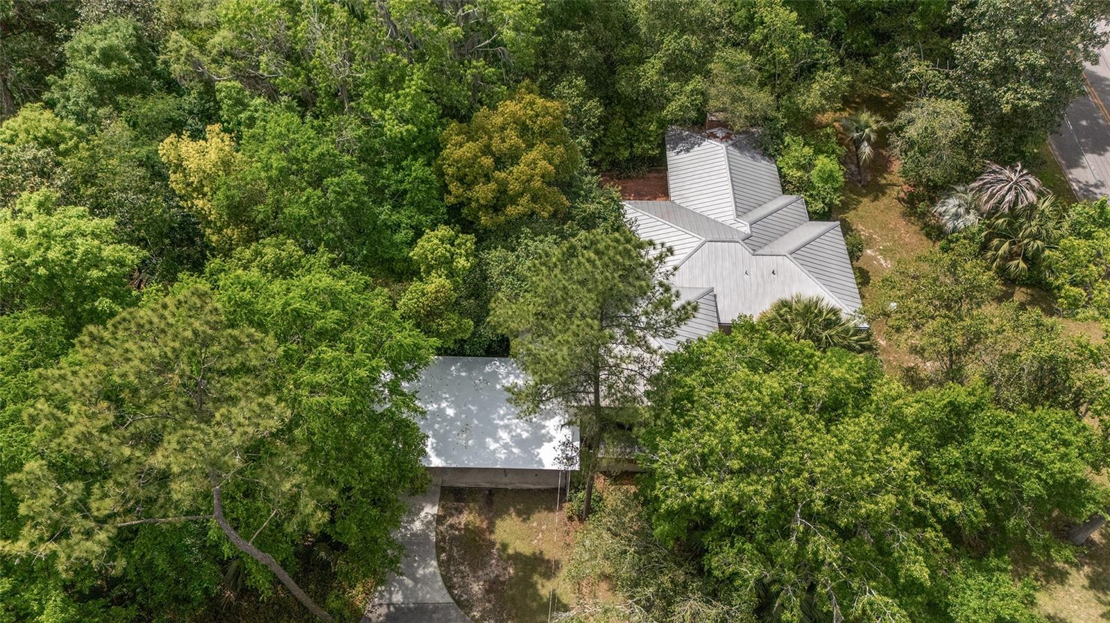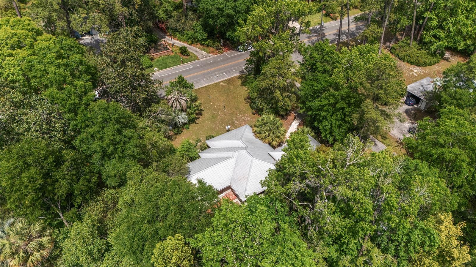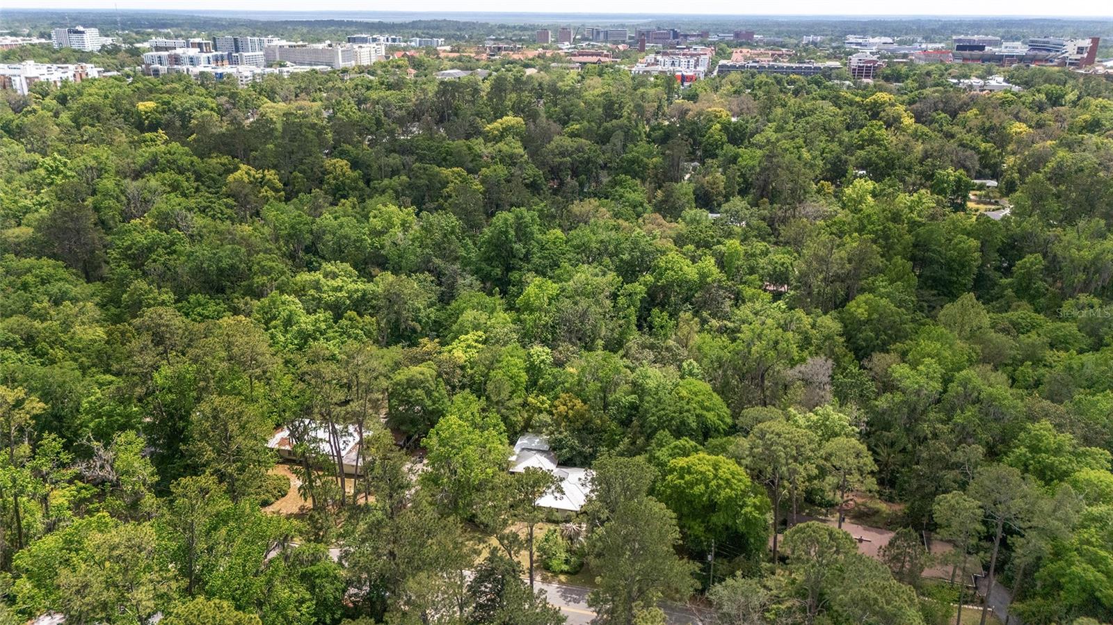 Charming 4-Bedroom Home nestled on over 1.3 acres and bounded by the Hogtown Creek in a serene natural setting. Welcome to your peaceful nature retreat just 1 mile to the University of Florida! This spacious 4-bedroom, 3.5-bathroom home in Florida Park offers the perfect blend of privacy, comfort, and functionality. The property features mature landscaping, oak and palm trees, and plenty of open space, making it ideal for relaxing, gardening, or entertaining outdoors. The house is a solid, split-level concrete block structure with a lifetime metal roof that has been nicely upgraded multiple times. Inside, the kitchen area features granite counters while the open Florida room is a true showstopper—bathed in natural light with wide views of the tranquil landscape, it's the perfect spot for a morning coffee or unwinding in the evening. The main living room offers expansive views of the back yard through floor to ceiling windows and an inviting layout for family life or hosting guests around the fireplace and on the adjacent hand-laid brick patio. The wood flooring was just refinished and freshly painted (including new ceiling paint). The home features a 3-way split floor plan, each bedroom is generously sized, and the three full bathrooms ensure convenience for everyone. The large primary bedroom on the main floor features an ensuite bathroom. Upstairs you will find two more large bedrooms with a hallway bathroom and linen closet. Downstairs is a laundry room, bedroom with ensuite bathroom, and a project/library room with built-in counters and bookshelves. Outside, a three-car carport provides ample covered parking and additional storage space. Gardeners will enjoy the turn-key greenhouse and potting room ready to go for adding to the property's existing natural beauty. Don't miss this opportunity to enjoy the best of North Florida living in a peaceful, natural setting!