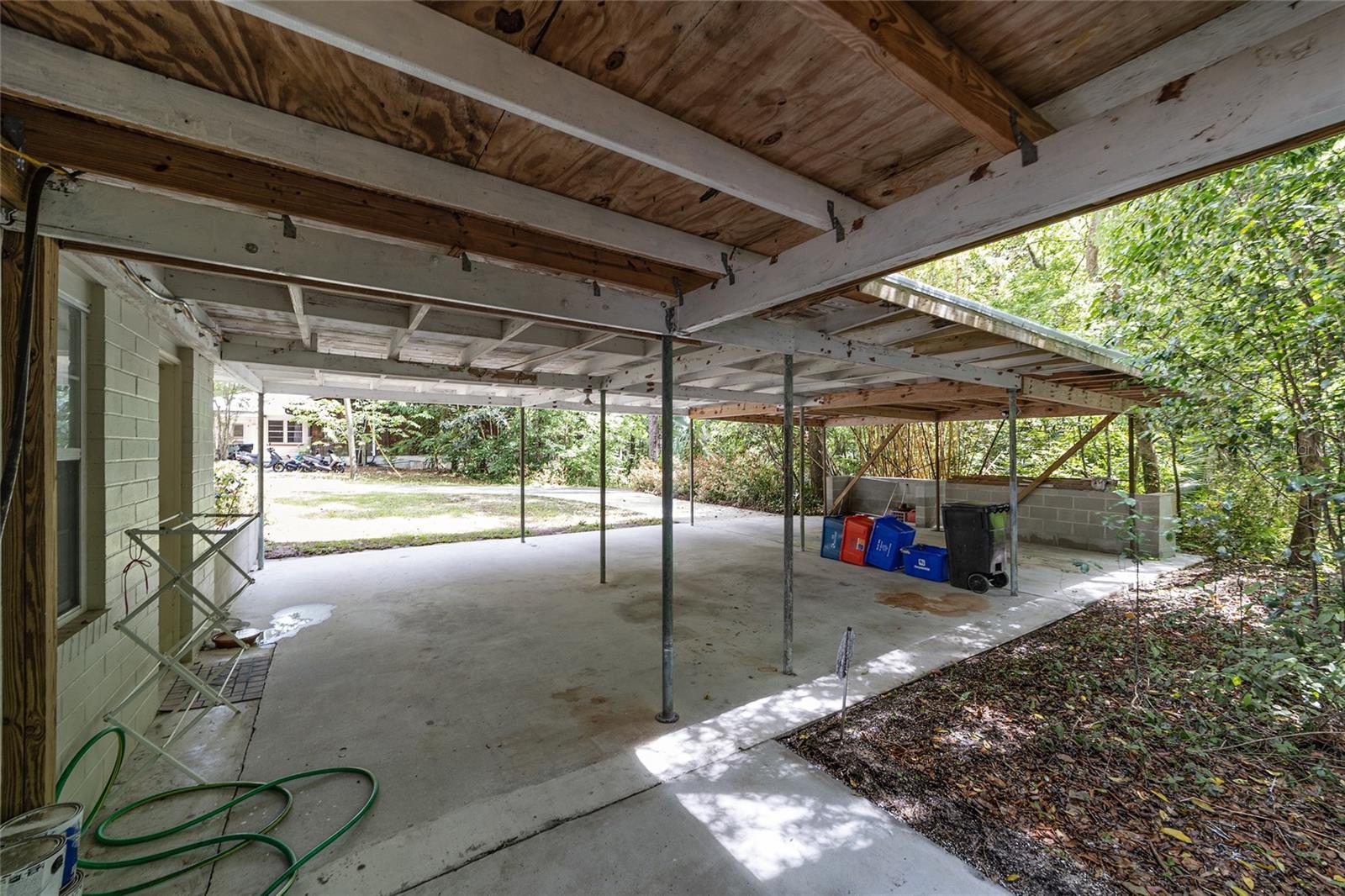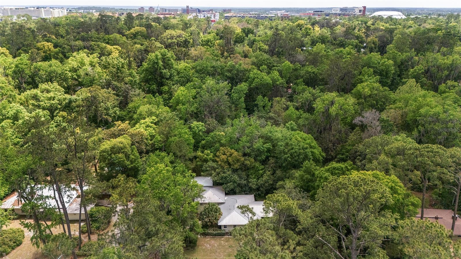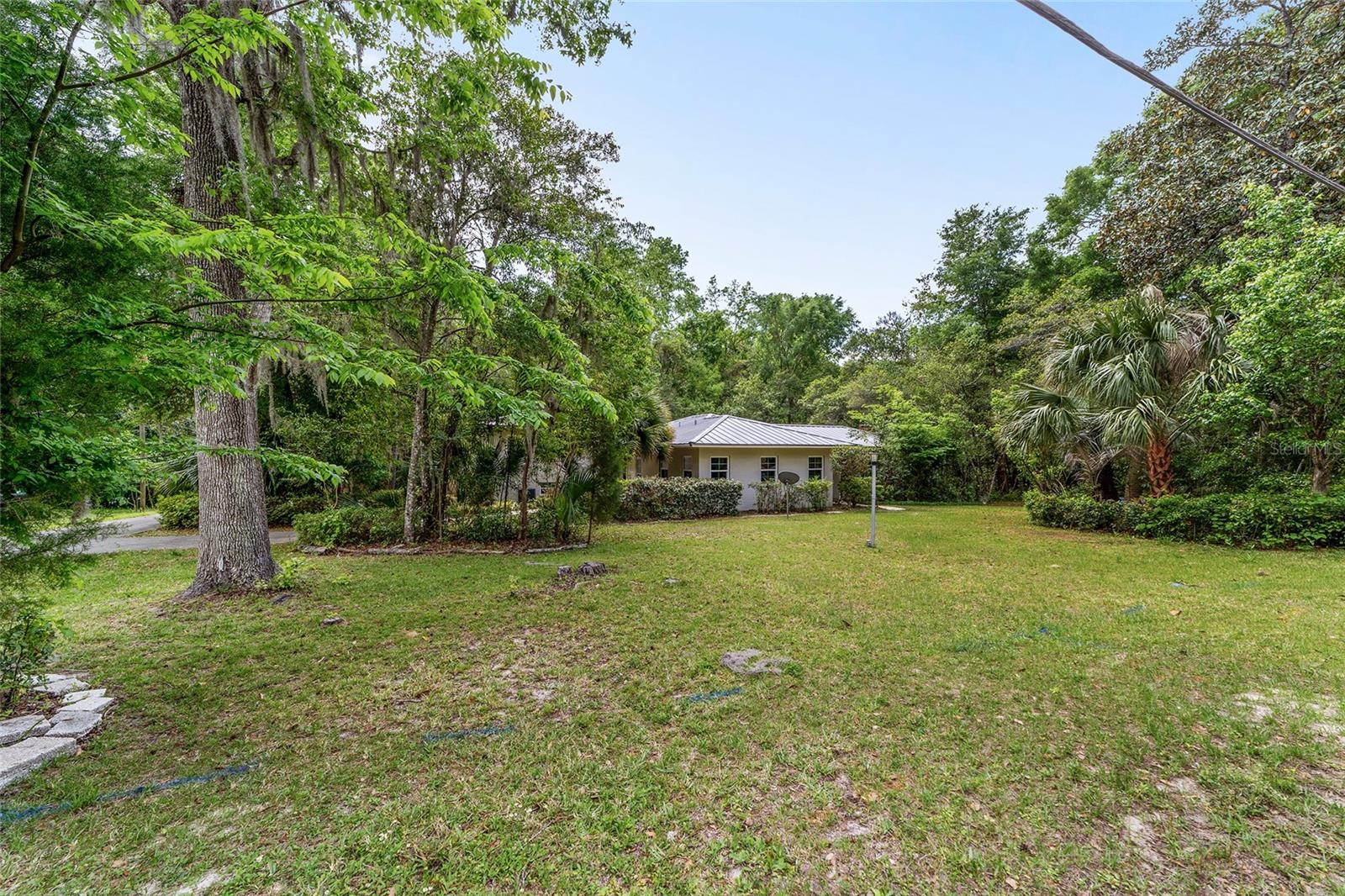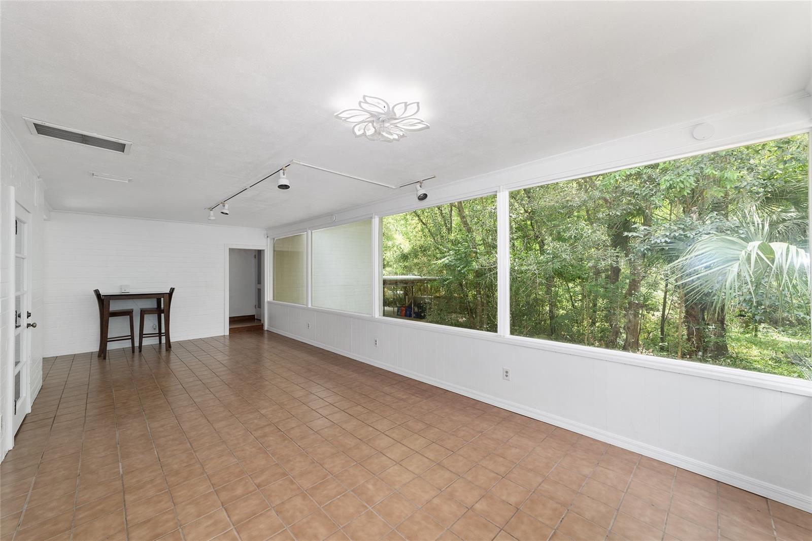 Charming 4-Bedroom Home nestled on over 1.3 acres and bounded by the Hogtown Creek in a serene natural setting. Welcome to your peaceful nature retreat just 1 mile to the University of Florida! This spacious 4-bedroom, 3.5-bathroom home in Florida Park offers the perfect blend of privacy, comfort, and functionality. The property features mature landscaping, oak and palm trees, and plenty of open space, making it ideal for relaxing, gardening, or entertaining outdoors. The house is a solid, split-level concrete block structure with a lifetime metal roof that has been nicely upgraded multiple times. Inside, the kitchen area features granite counters while the open Florida room is a true showstopper—bathed in natural light with wide views of the tranquil landscape, it's the perfect spot for a morning coffee or unwinding in the evening. The main living room offers expansive views of the back yard through floor to ceiling windows and an inviting layout for family life or hosting guests around the fireplace and on the adjacent hand-laid brick patio. The wood flooring was just refinished and freshly painted (including new ceiling paint). The home features a 3-way split floor plan, each bedroom is generously sized, and the three full bathrooms ensure convenience for everyone. The large primary bedroom on the main floor features an ensuite bathroom. Upstairs you will find two more large bedrooms with a hallway bathroom and linen closet. Downstairs is a laundry room, bedroom with ensuite bathroom, and a project/library room with built-in counters and bookshelves. Outside, a three-car carport provides ample covered parking and additional storage space. Gardeners will enjoy the turn-key greenhouse and potting room ready to go for adding to the property's existing natural beauty. Don't miss this opportunity to enjoy the best of North Florida living in a peaceful, natural setting!