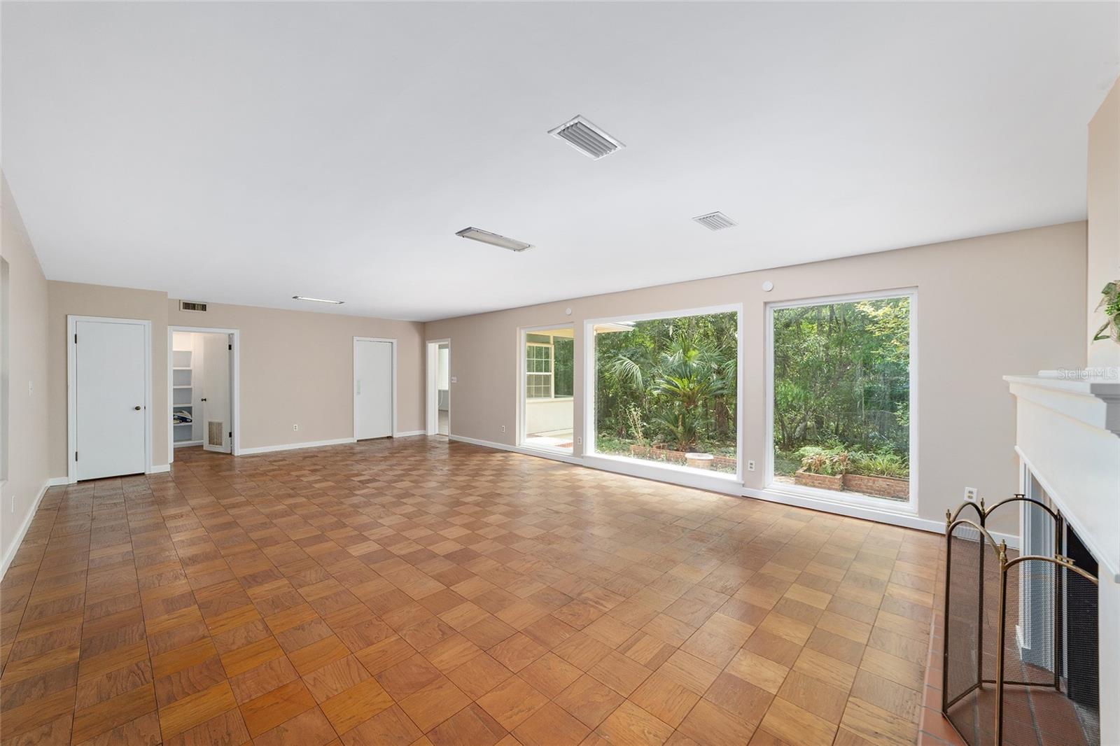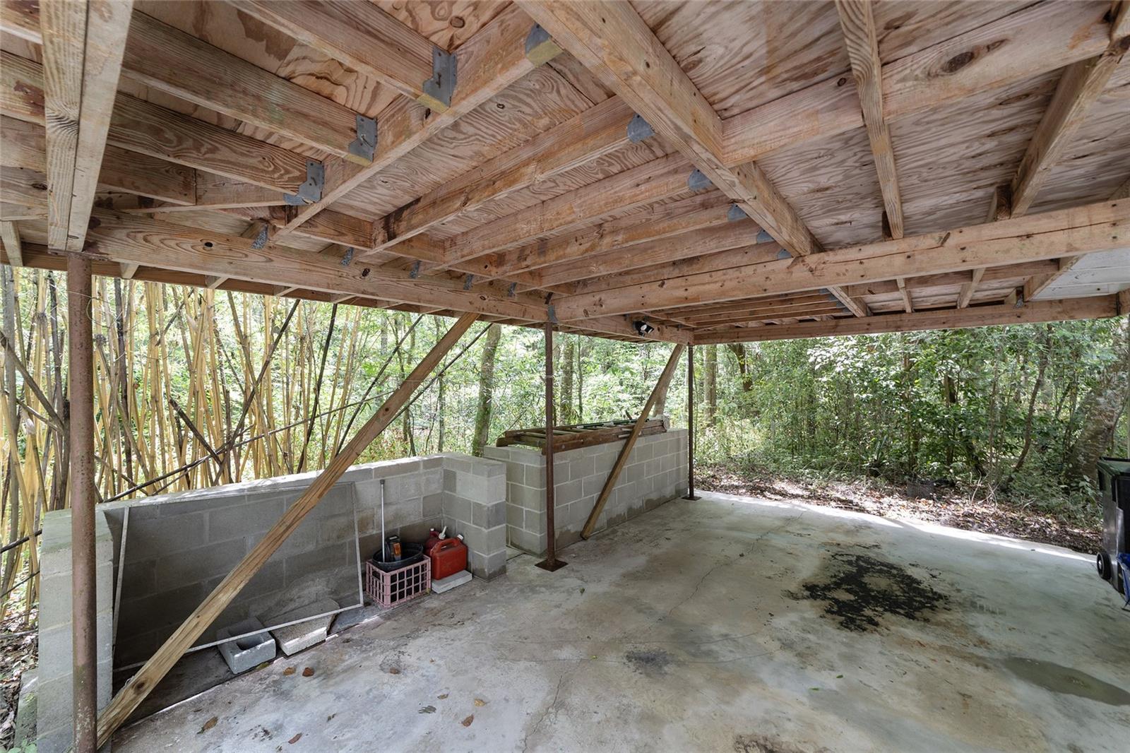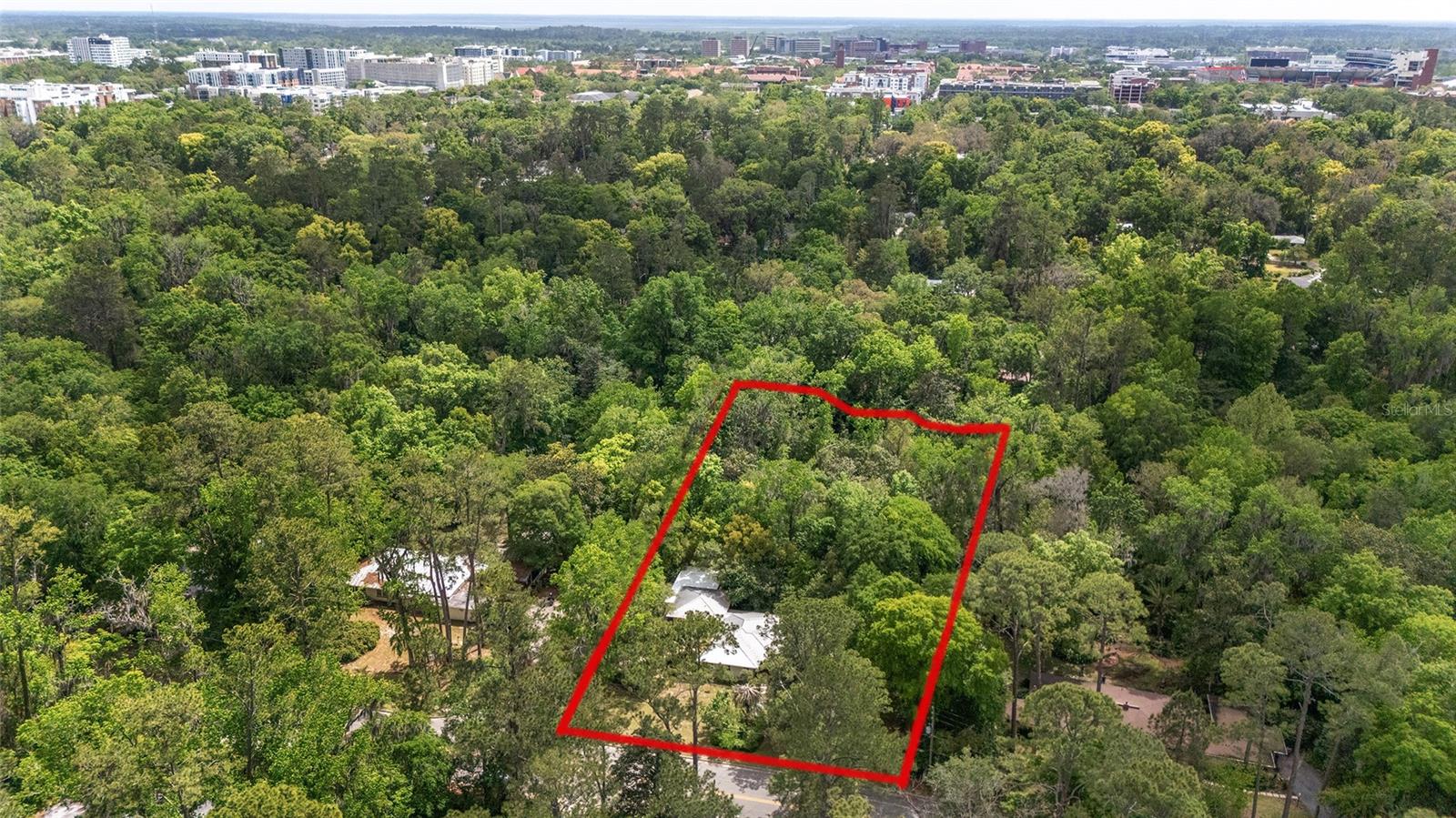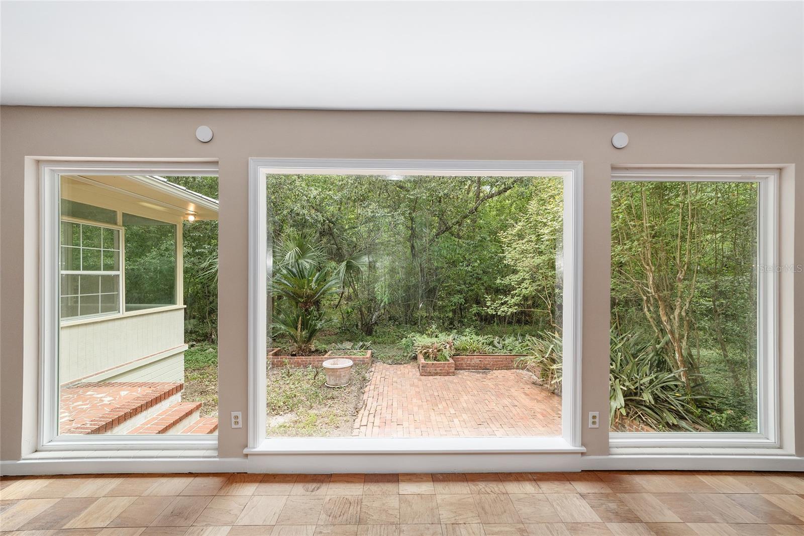 Charming 4-Bedroom Home nestled on over 1.3 acres and bounded by the Hogtown Creek in a serene natural setting. Welcome to your peaceful nature retreat just 1 mile to the University of Florida! This spacious 4-bedroom, 3.5-bathroom home in Florida Park offers the perfect blend of privacy, comfort, and functionality. The property features mature landscaping, oak and palm trees, and plenty of open space, making it ideal for relaxing, gardening, or entertaining outdoors. The house is a solid, split-level concrete block structure with a lifetime metal roof that has been nicely upgraded multiple times. Inside, the kitchen area features granite counters while the open Florida room is a true showstopper—bathed in natural light with wide views of the tranquil landscape, it's the perfect spot for a morning coffee or unwinding in the evening. The main living room offers expansive views of the back yard through floor to ceiling windows and an inviting layout for family life or hosting guests around the fireplace and on the adjacent hand-laid brick patio. The wood flooring was just refinished and freshly painted (including new ceiling paint). The home features a 3-way split floor plan, each bedroom is generously sized, and the three full bathrooms ensure convenience for everyone. The large primary bedroom on the main floor features an ensuite bathroom. Upstairs you will find two more large bedrooms with a hallway bathroom and linen closet. Downstairs is a laundry room, bedroom with ensuite bathroom, and a project/library room with built-in counters and bookshelves. Outside, a three-car carport provides ample covered parking and additional storage space. Gardeners will enjoy the turn-key greenhouse and potting room ready to go for adding to the property's existing natural beauty. Don't miss this opportunity to enjoy the best of North Florida living in a peaceful, natural setting!