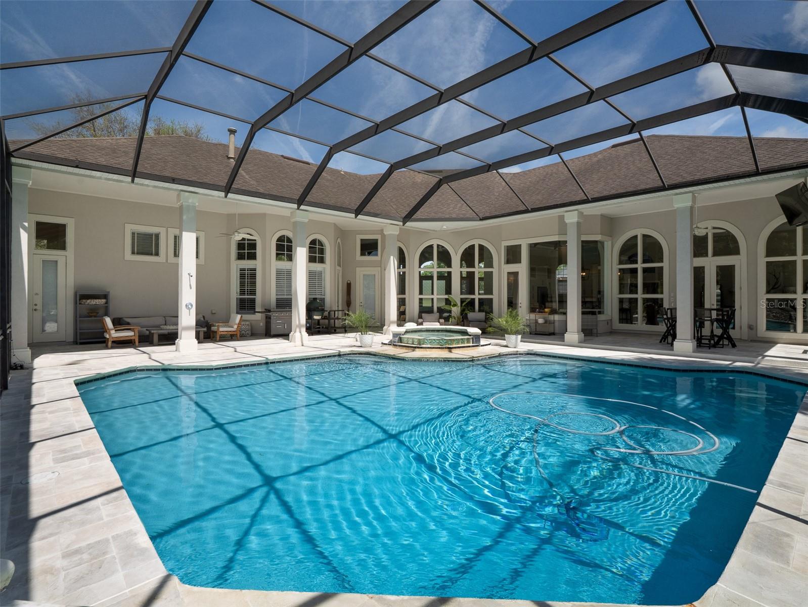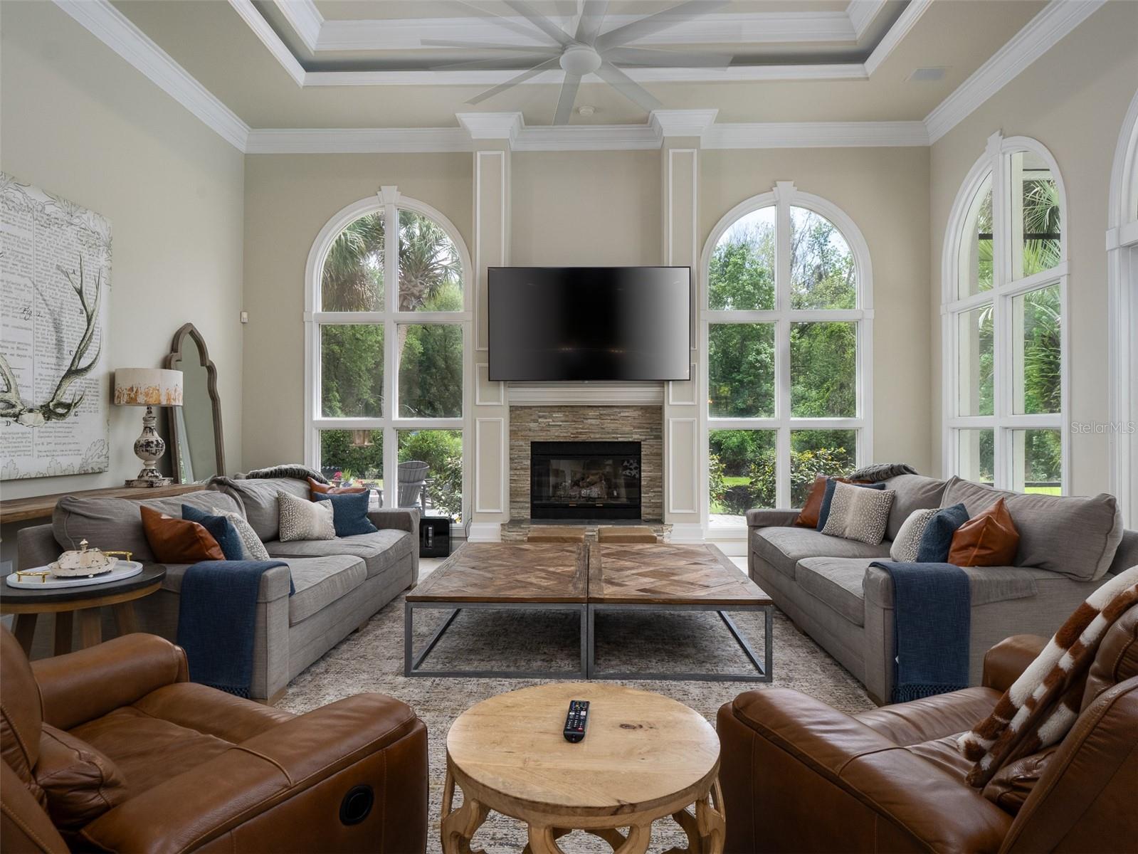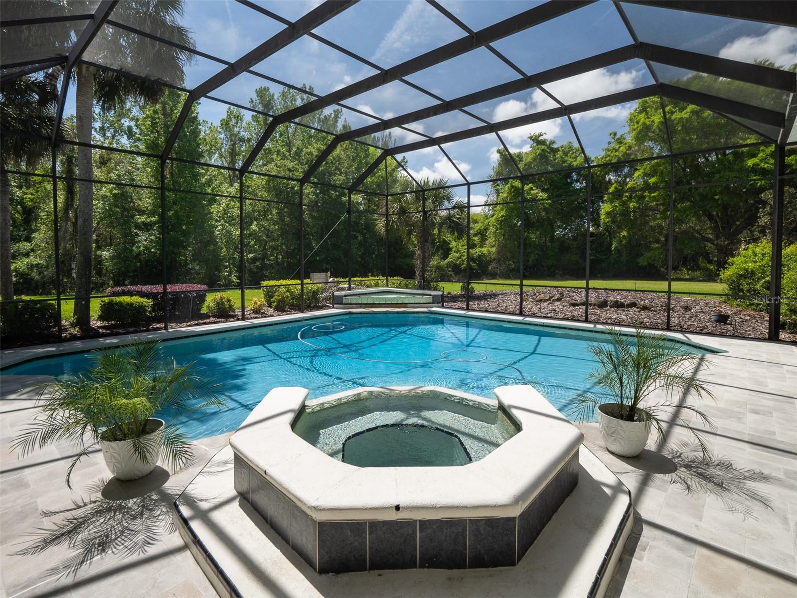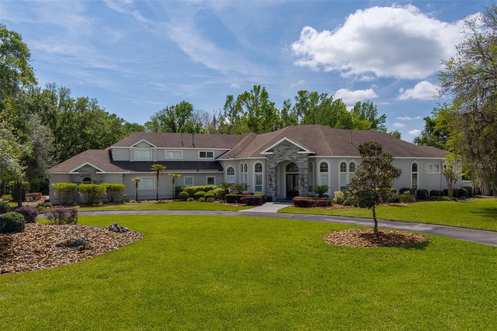 Once in a while, a truly extraordinary property emerges on the market, and this is one of those rare gems. This stunning home seamlessly combines character, elegance, and quality, creating an unparalleled living experience. Spanning over 4,000 square feet, this impressive residence features five bedrooms and three and a half baths, all nestled on 1.61 acres of lush landscape—truly a dream for entertainers. As you enter, you are greeted by a breathtaking grand entrance that captivates from the very first step. Soaring ceilings and expansive floor-to-ceiling windows allow natural light to cascade throughout the home, enhancing its warm and inviting atmosphere. Thoughtful details such as exquisite moldings, tray ceilings, decorative niches, and elegant arches infuse the space with an upscale charm that is rarely found. The sensational floor plan flows effortlessly from the formal dining and living areas to the inviting bar, leading into the grand room—perfect for gatherings and celebrations. The true chef's kitchen is a masterpiece, featuring a spacious eating and serving bar, breakfast nook, separate island, designer cabinetry, quartz countertops, a gas range, stainless steel appliances, and a wine refrigerator. The home boasts multiple fireplaces, one in the grand room and another in the luxurious primary suite. Packed with desirable extras, including plantation shutters, exterior stone accents, abundant closet space, surround sound, and beautiful wood and tile flooring throughout, this property truly has it all. The oversized primary suite is a serene retreat, tucked away for privacy, with its own grand entrance, unique ceiling details, a cozy fireplace, and dual walk-in closets. The luxurious bath features an oversized tub, separate walk-in shower, dual vanities, and a private toilet closet—offering a spa-like experience at home. The property wraps around a breathtaking pool, complete with a massive screened enclosure, tranquil waterfall, and separate hot tub. The extensive pavered patio and covered porch create an ideal setting for enjoying the quintessential Florida lifestyle. Set on one of the most magnificent lots in Thornhill, this 1.61-acre property is adorned with lush tropical landscaping, mature trees, and a meandering buffer that provides peace, privacy, and a tranquil outdoor living experience. The corner lot features a circular driveway and rear entry to a four-car garage, along with an intimate outdoor patio complete with a fire pit. Thornhill is one of Gainesville's most prestigious and sought-after communities, nestled in the heart of NW Gainesville along the scenic Millhopper Road, yet it feels like a serene oasis miles away from the hustle and bustle of everyday life. Do not miss this rare opportunity to own an exceptional property that embodies luxury, comfort, and elegance.