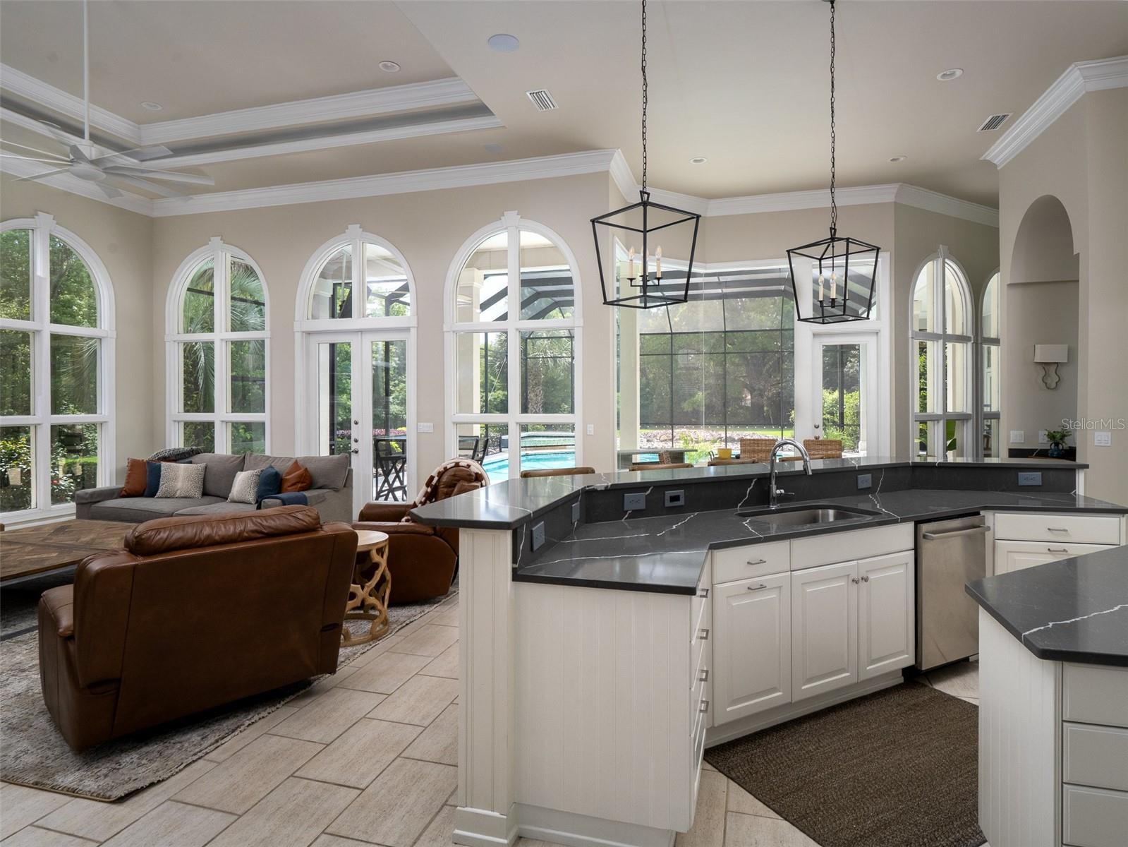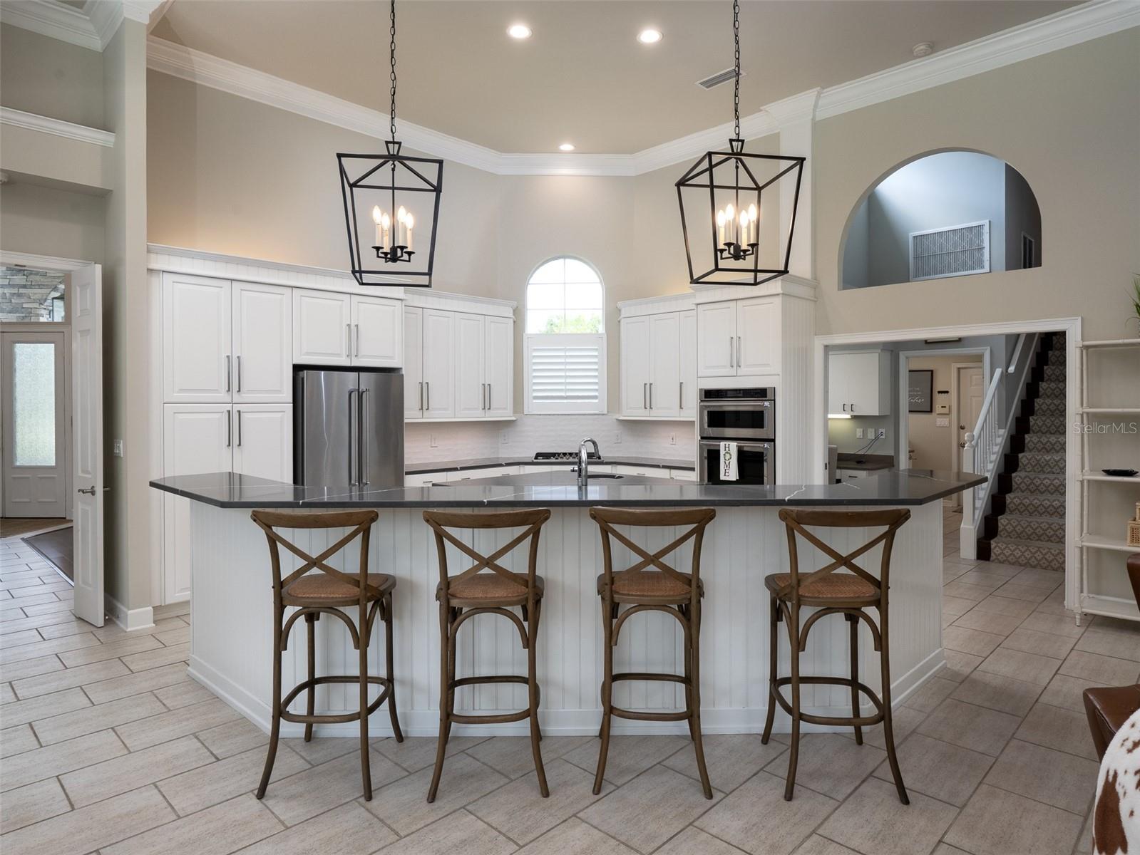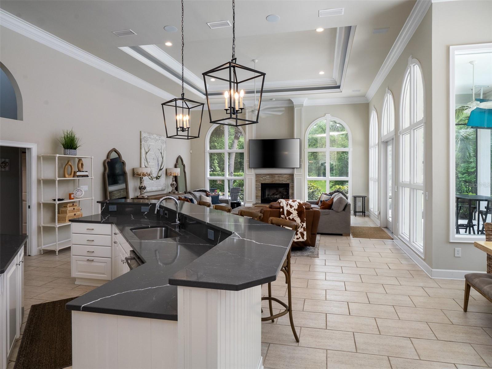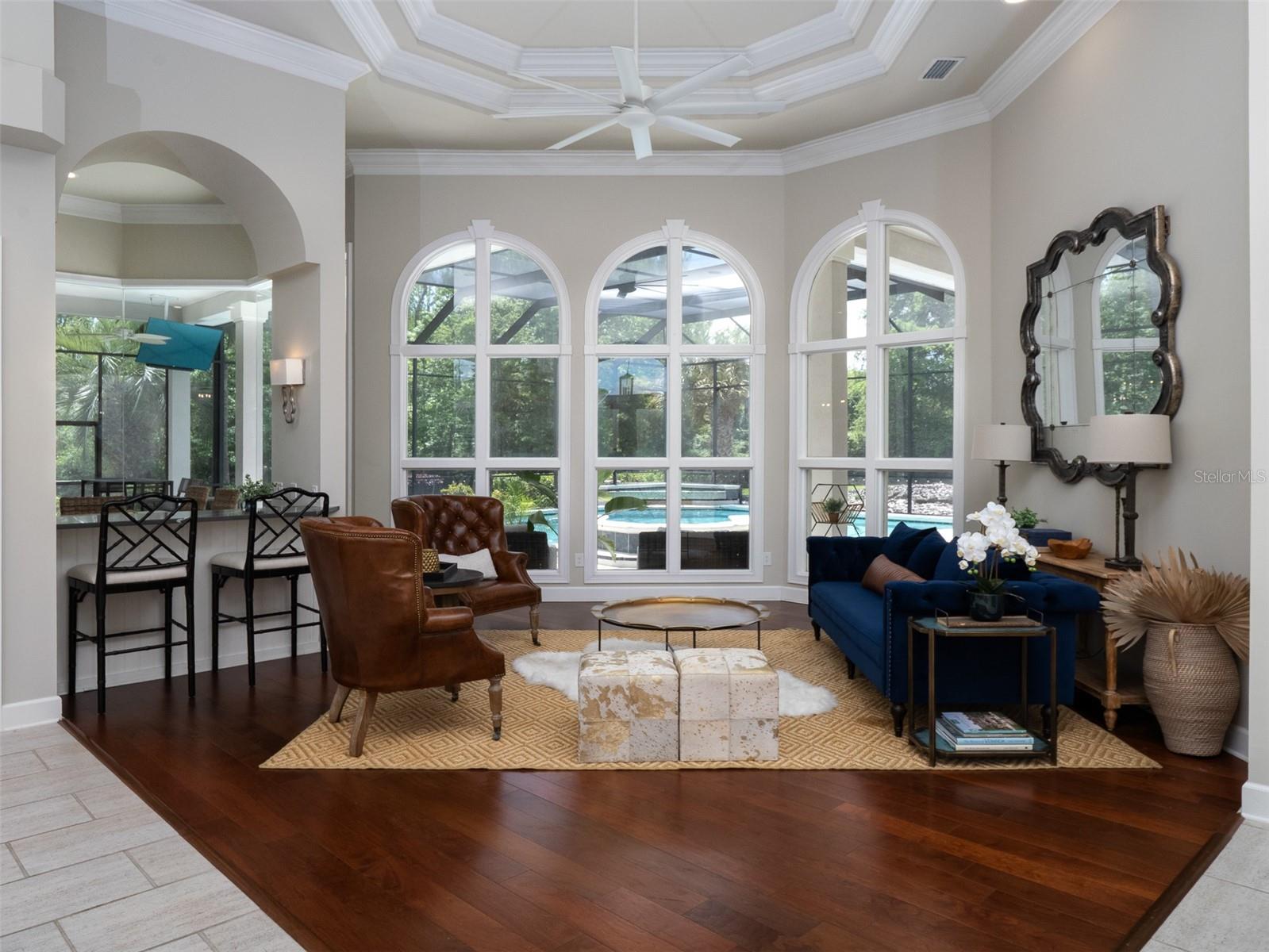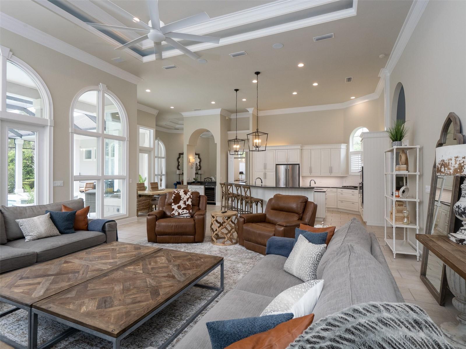 Once in a while, a truly extraordinary property emerges on the market, and this is one of those rare gems. This stunning home seamlessly combines character, elegance, and quality, creating an unparalleled living experience. Spanning over 4,000 square feet, this impressive residence features five bedrooms and three and a half baths, all nestled on 1.61 acres of lush landscape—truly a dream for entertainers. As you enter, you are greeted by a breathtaking grand entrance that captivates from the very first step. Soaring ceilings and expansive floor-to-ceiling windows allow natural light to cascade throughout the home, enhancing its warm and inviting atmosphere. Thoughtful details such as exquisite moldings, tray ceilings, decorative niches, and elegant arches infuse the space with an upscale charm that is rarely found. The sensational floor plan flows effortlessly from the formal dining and living areas to the inviting bar, leading into the grand room—perfect for gatherings and celebrations. The true chef's kitchen is a masterpiece, featuring a spacious eating and serving bar, breakfast nook, separate island, designer cabinetry, quartz countertops, a gas range, stainless steel appliances, and a wine refrigerator. The home boasts multiple fireplaces, one in the grand room and another in the luxurious primary suite. Packed with desirable extras, including plantation shutters, exterior stone accents, abundant closet space, surround sound, and beautiful wood and tile flooring throughout, this property truly has it all. The oversized primary suite is a serene retreat, tucked away for privacy, with its own grand entrance, unique ceiling details, a cozy fireplace, and dual walk-in closets. The luxurious bath features an oversized tub, separate walk-in shower, dual vanities, and a private toilet closet—offering a spa-like experience at home. The property wraps around a breathtaking pool, complete with a massive screened enclosure, tranquil waterfall, and separate hot tub. The extensive pavered patio and covered porch create an ideal setting for enjoying the quintessential Florida lifestyle. Set on one of the most magnificent lots in Thornhill, this 1.61-acre property is adorned with lush tropical landscaping, mature trees, and a meandering buffer that provides peace, privacy, and a tranquil outdoor living experience. The corner lot features a circular driveway and rear entry to a four-car garage, along with an intimate outdoor patio complete with a fire pit. Thornhill is one of Gainesville's most prestigious and sought-after communities, nestled in the heart of NW Gainesville along the scenic Millhopper Road, yet it feels like a serene oasis miles away from the hustle and bustle of everyday life. Do not miss this rare opportunity to own an exceptional property that embodies luxury, comfort, and elegance.