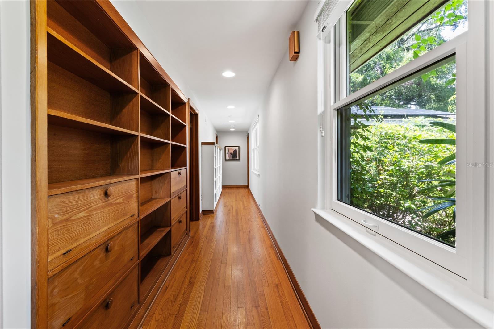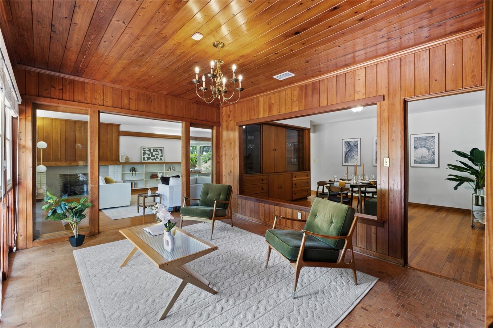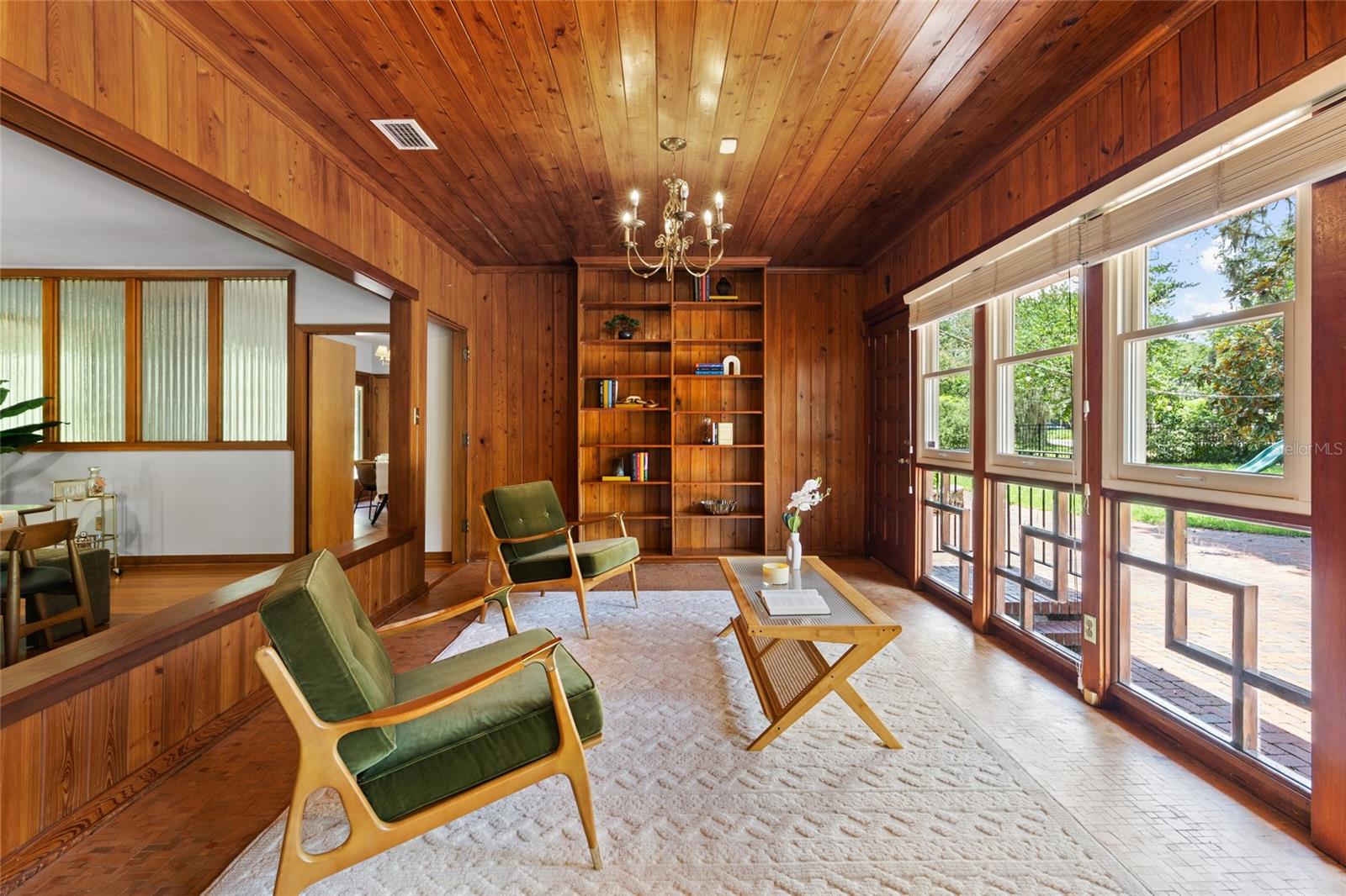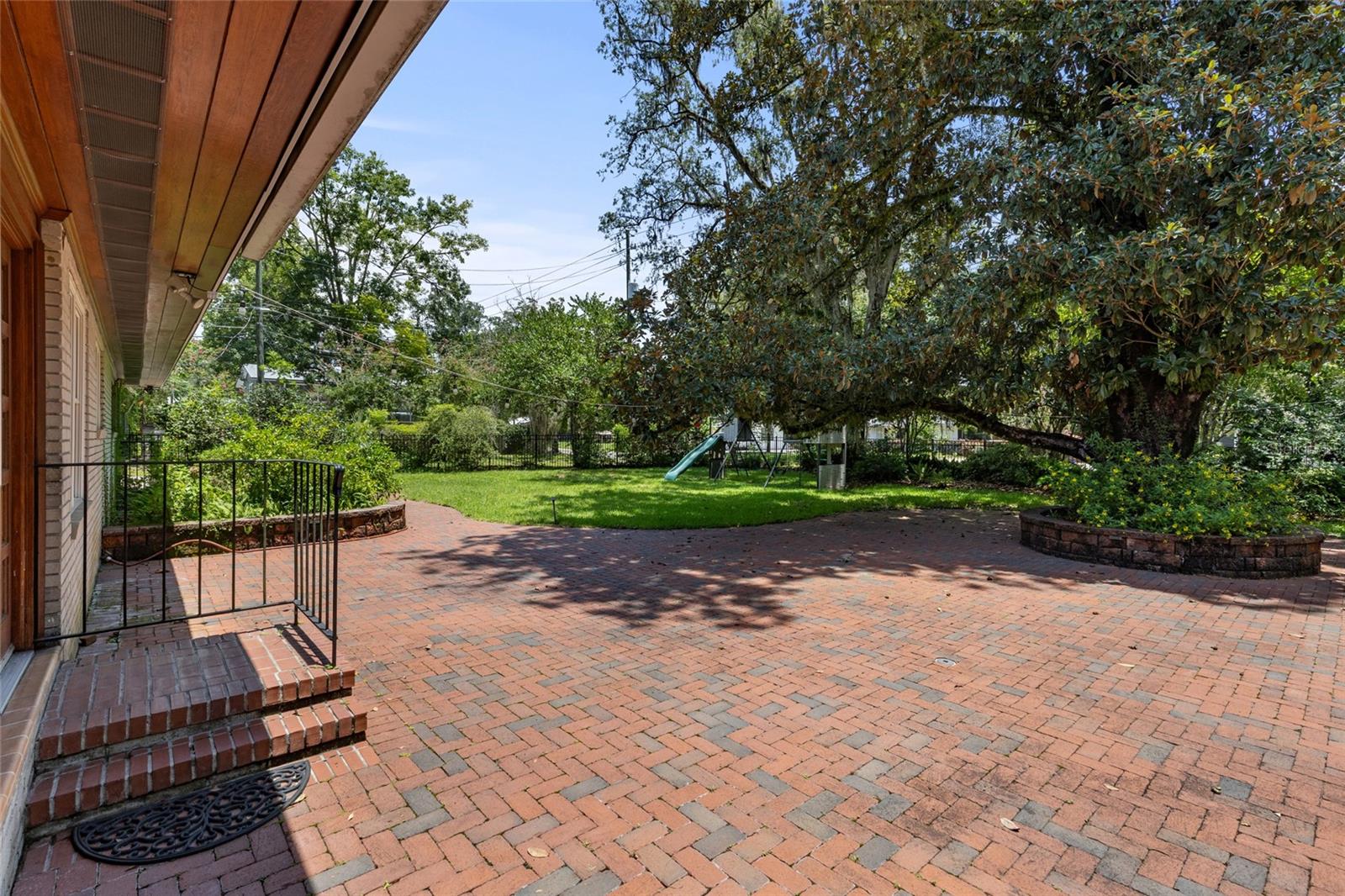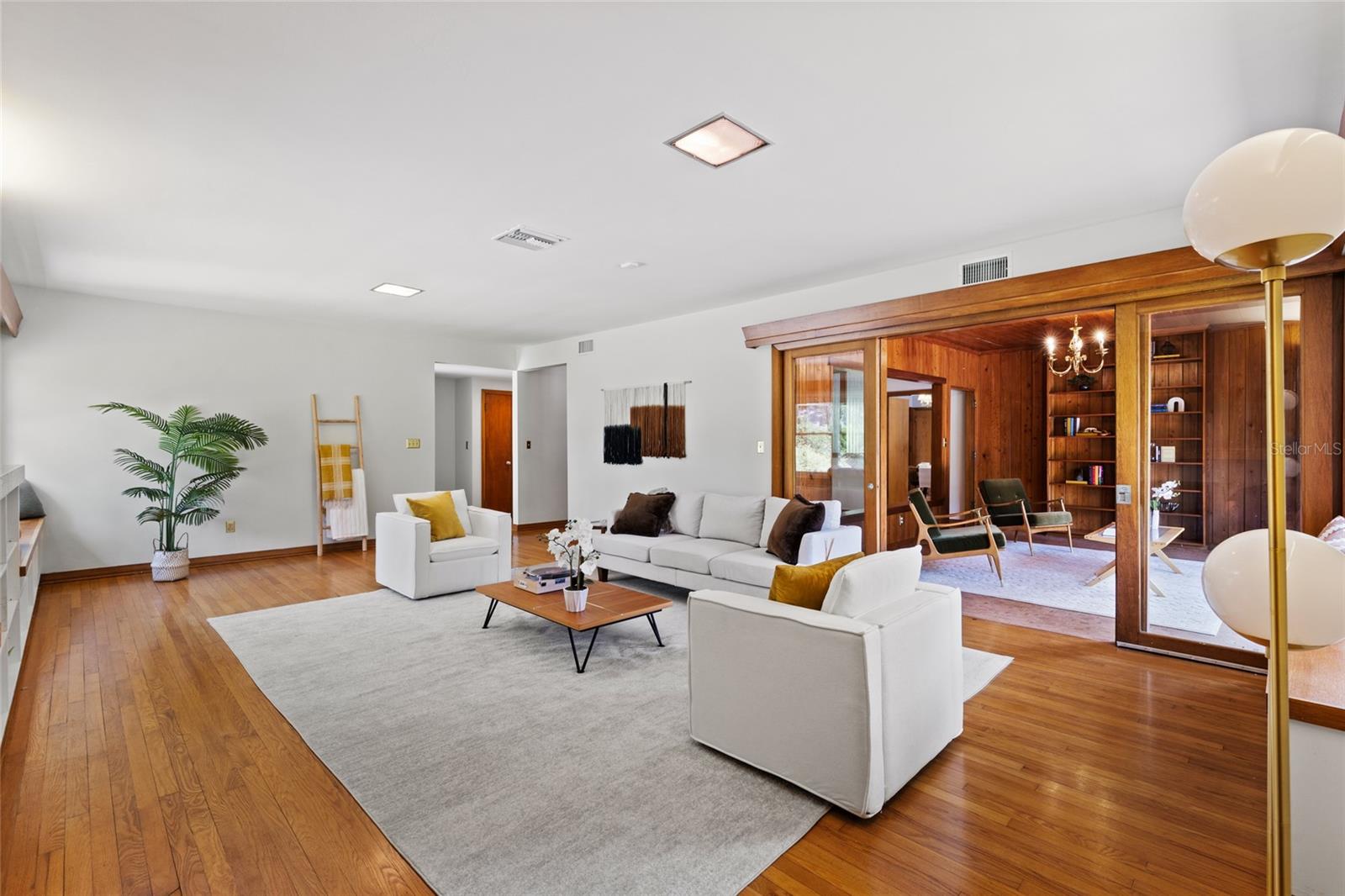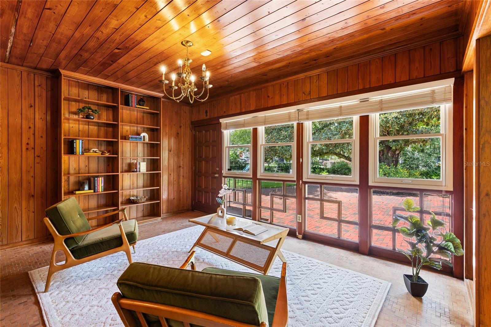 MAJOR PRICE IMPROVEMENT! Welcome to this rare mid-century ranch, a timeless architectural gem designed and built in 1952 by noted Gainesville architect Merle Haynes. Located just six blocks from the University of Florida and its renowned sports venues, this 2,900 sq ft home blends classic design with modern convenience, all set on a beautifully landscaped over half-acre lot. Lovingly cared for by only two owners and never rented, this home exudes warmth and craftsmanship throughout. Inside, you'll find heartwood oak and pine trim, custom built-in cabinets and bookcases, and hardwood floors flowing through the main living areas. The tile-floored bathrooms, wood-paneled study, and fireplace add to the home's rich, inviting character. The spacious, eat-in kitchen is perfect for both everyday living and entertaining, featuring high-end appliances including a Wolf gas cooktop, double oven, two refrigerators, an undercounter ice maker and beverage fridge, plus a dishwasher and washer/dryer. Step outside to a 1,600 sq ft brick patio professionally designed with lighting for evening entertaining, along with brick garden paths and a 3-car driveway by Landscapes Unlimited. The two-car garage offers built-in storage, and the rooftop solar electric system brings energy efficiency. Nature lovers will be enchanted by the park-like garden, featuring a camellia grove and many trees, including fig, olive, calamondin orange, magnolia, and live oaks. Layered throughout are palms, sagos, tea olives, bougainvillea, gardenias, azaleas, hydrangeas, crepe myrtles, and loropetalum hedges. A well and irrigation system support this thriving landscape year-round. With 3 bedrooms, generous closets, a formal dining room with built-in china cabinets, and a large living room with fireplace, this home offers space, character, and a location that’s hard to beat. Homes like this rarely come on the market—schedule your private showing today and experience the unique charm and history of this Gainesville classic.