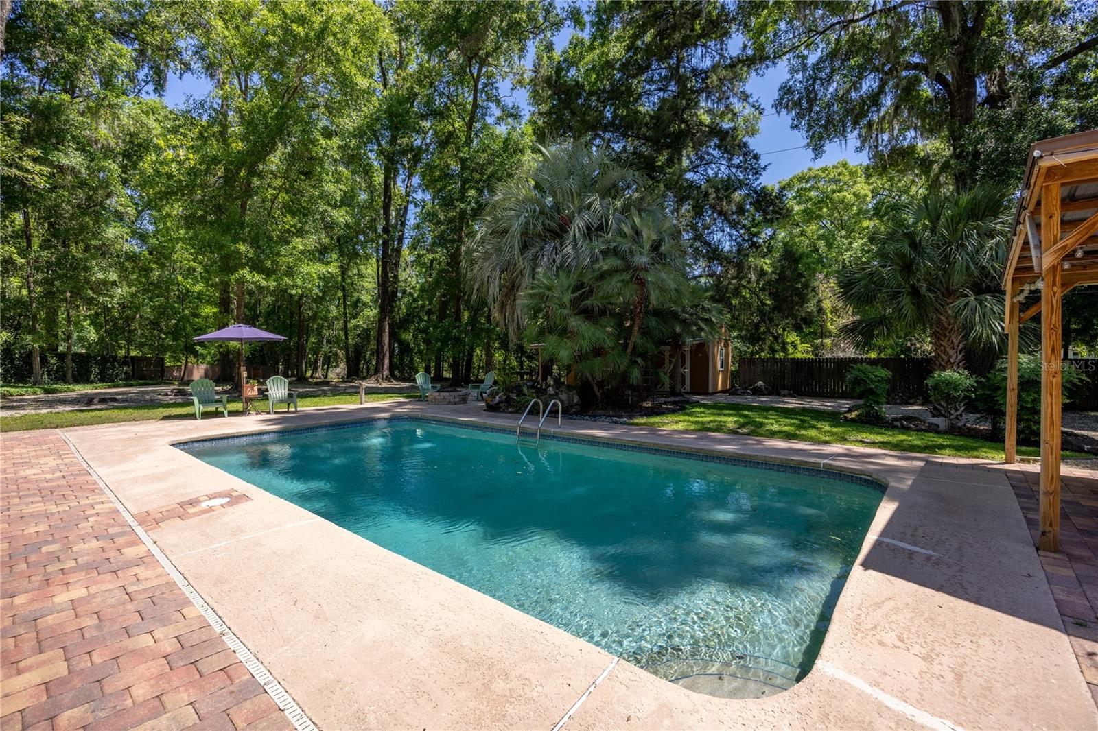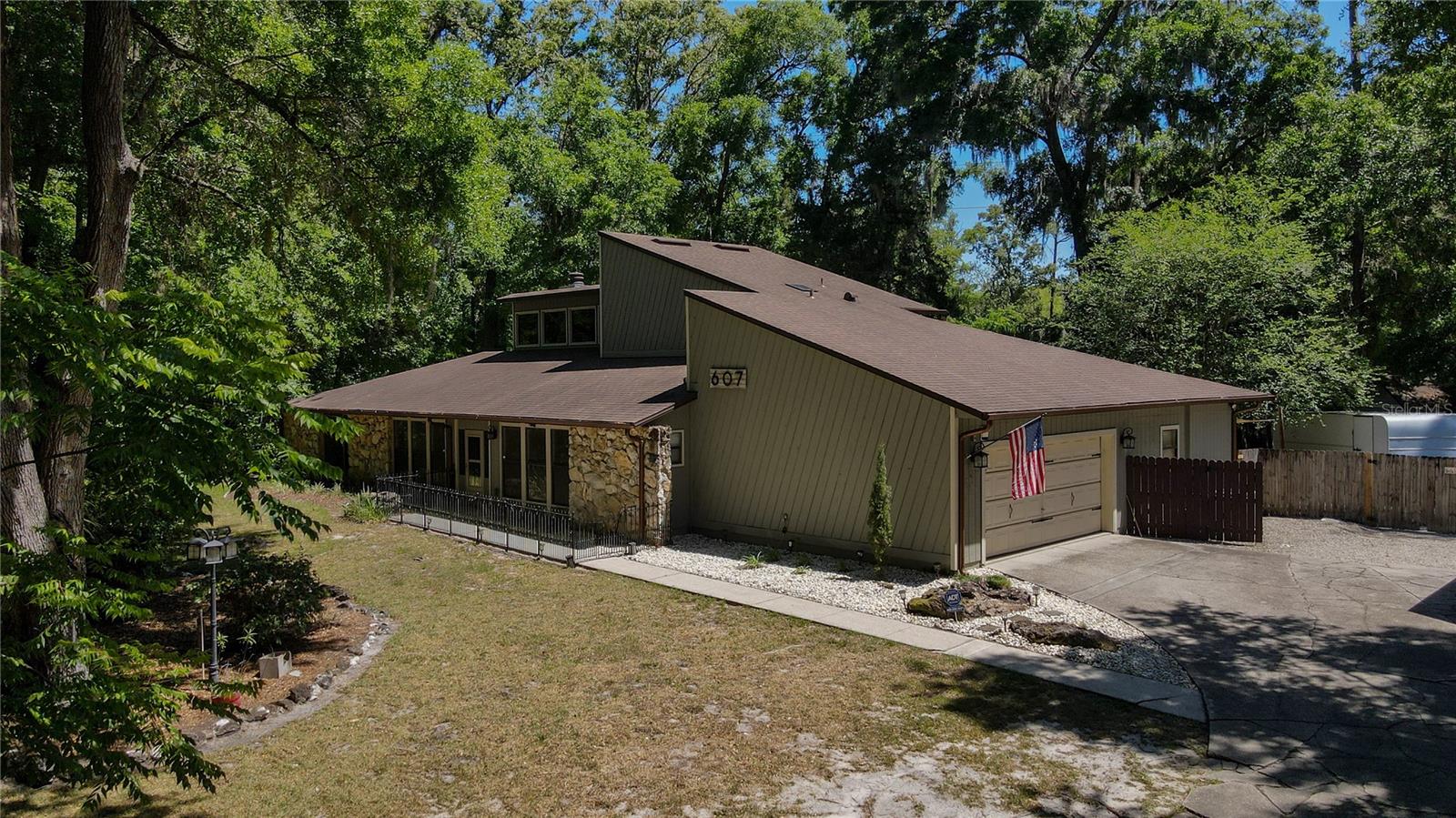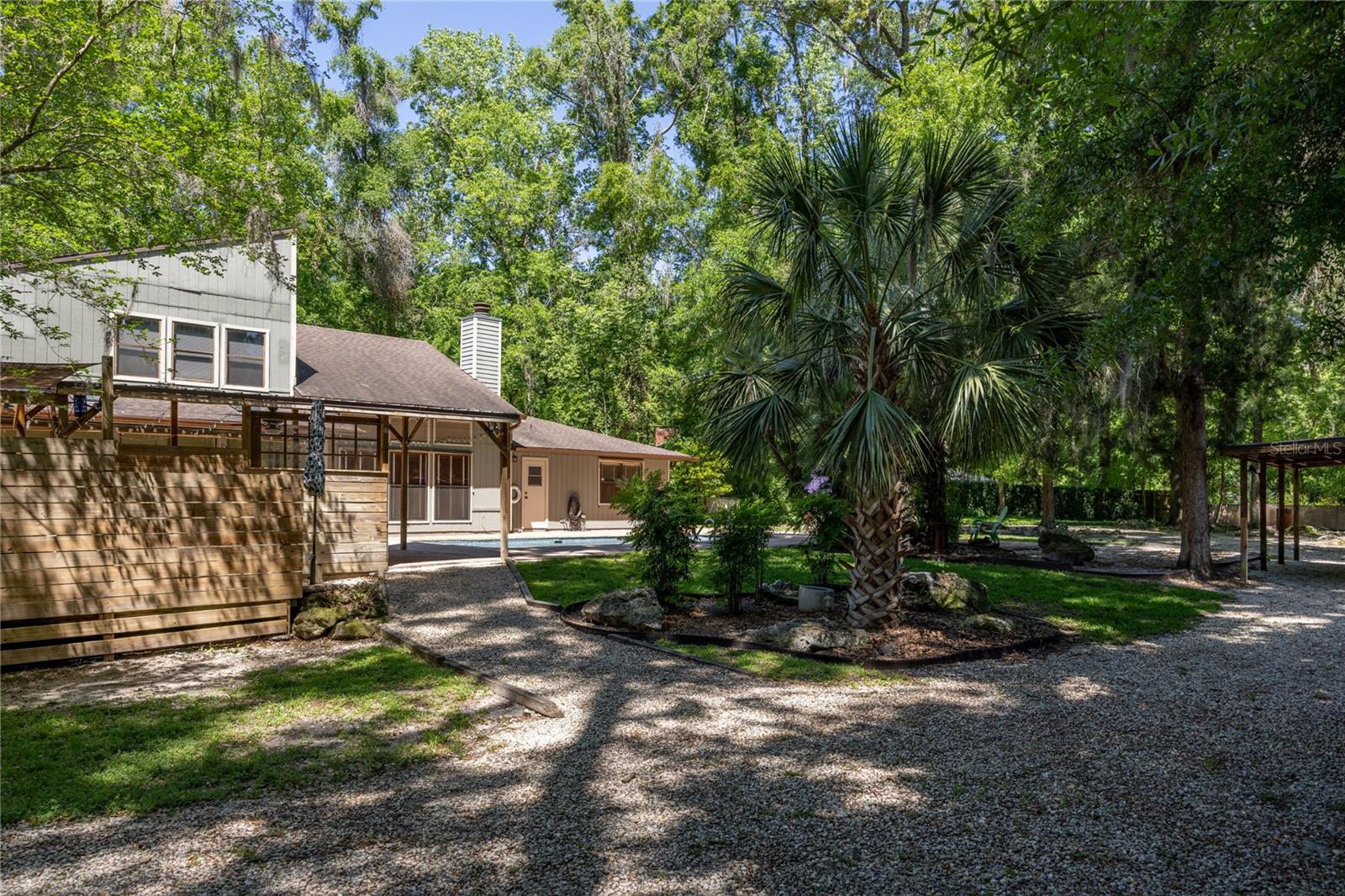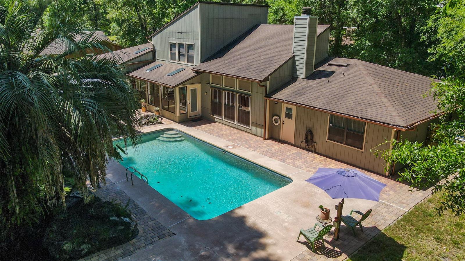 Experience Multigenerational Living and Entertaining at Its Finest. Looking for a home that suits a multigenerational lifestyle or hosts frequent guests with ease? This 5BR/3BA gem in SW Gainesville is perfect for you! Featuring a spacious main house with a 1BR/1BA in-law suite complete with a private entrance and screened porch, this property is designed for flexibility and comfort. The living room boasts stunning cathedral ceilings and a cozy wood-burning fireplace, while additional spaces include a den/study, a formal living/flex room, and an open dining room with a wall of windows that fills the space with natural light and offers picturesque views. The remodeled kitchen (2018) offers modern updates and functionality, while the convenience of an inside laundry room with a sink adds to the home’s practicality. The roof was replaced in 2019 for added peace of mind. The outdoor space is a true paradise, featuring a large open pool, a covered living area for entertaining, and a cozy firepit. Bonus features include an oversized 12x24 man cave/workshop shed with power, an additional 10x12 storage shed, and an oversized two-car garage perfect for vehicles and extra storage. Set on a spacious 0.67-acre lot, there’s plenty of room to relax and play. With 2,827 sq. ft. of living space, this home radiates Florida living and is perfectly priced. Don’t miss your chance to make this incredible property your own!
