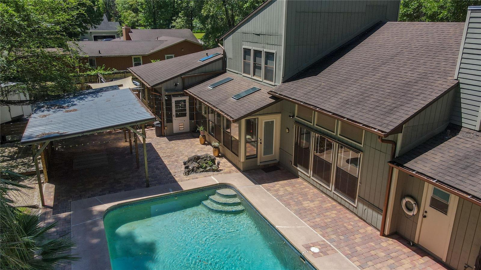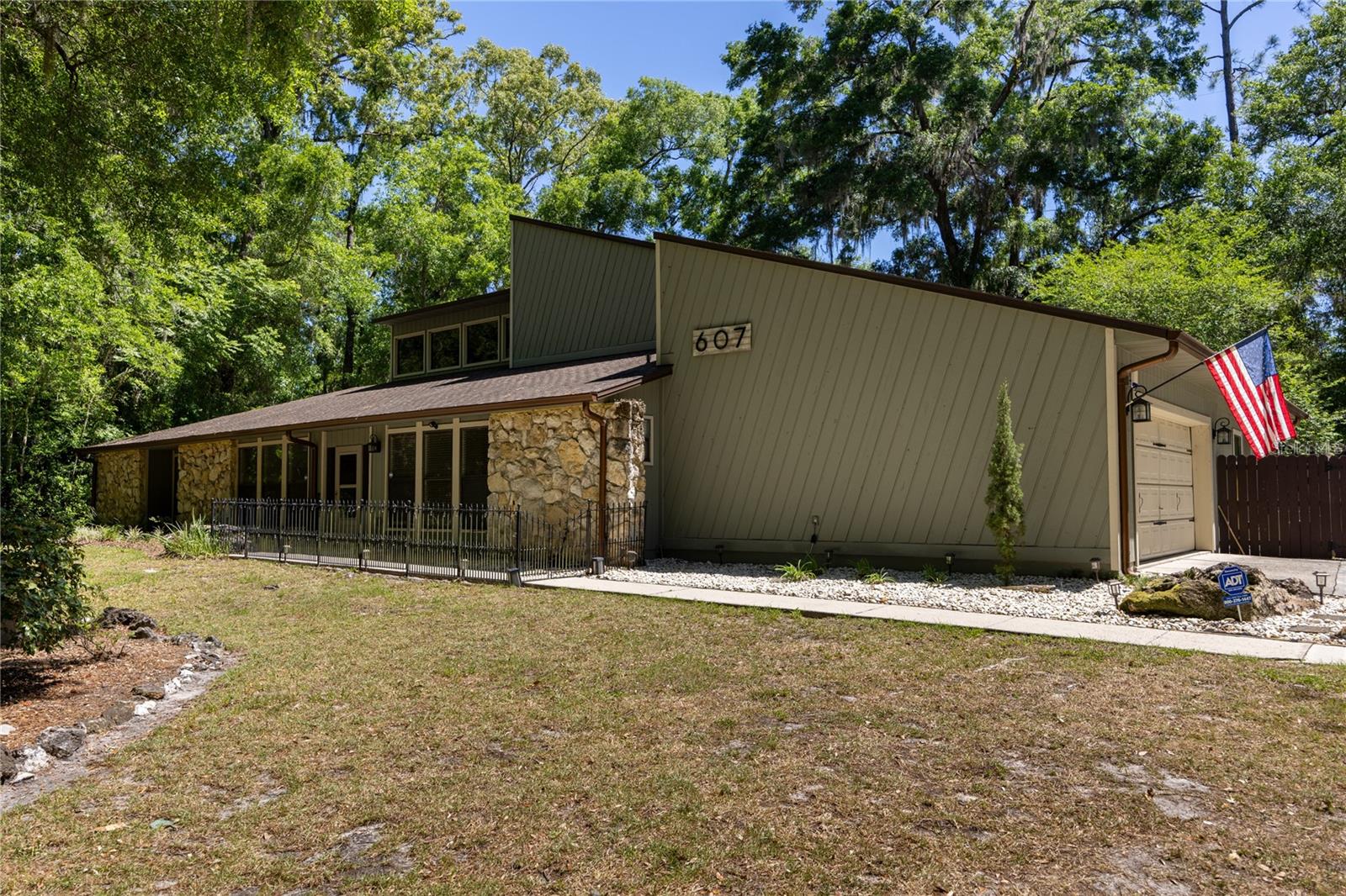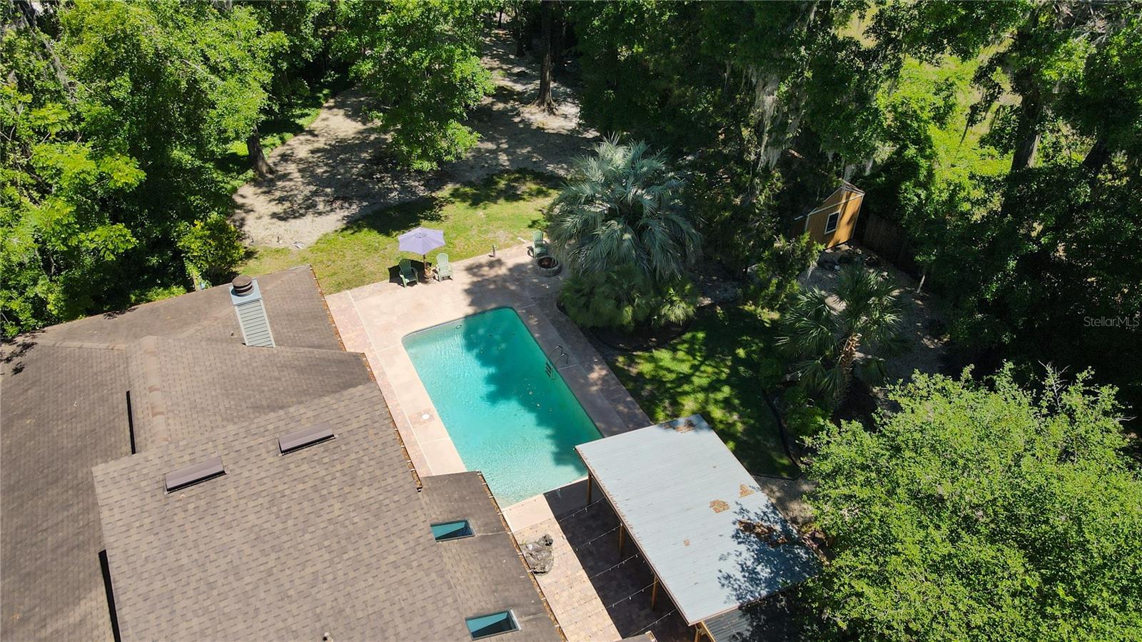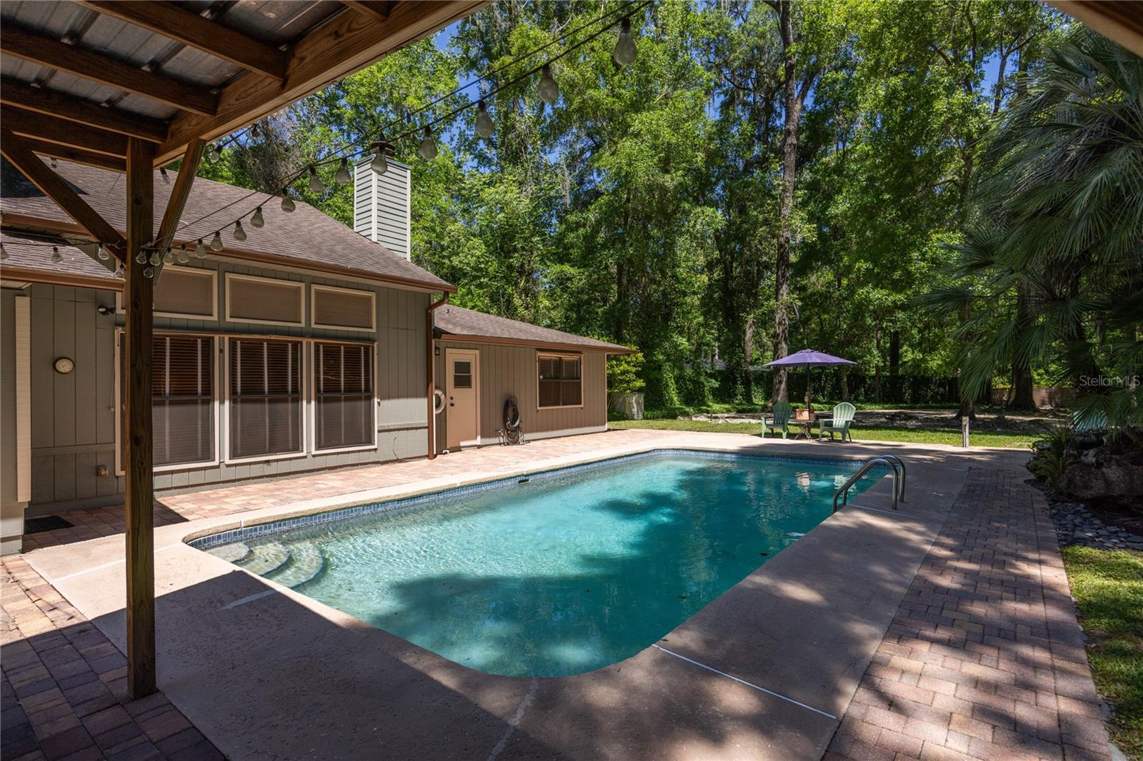 Experience Multigenerational Living and Entertaining at Its Finest. Looking for a home that suits a multigenerational lifestyle or hosts frequent guests with ease? This 5BR/3BA gem in SW Gainesville is perfect for you! Featuring a spacious main house with a 1BR/1BA in-law suite complete with a private entrance and screened porch, this property is designed for flexibility and comfort. The living room boasts stunning cathedral ceilings and a cozy wood-burning fireplace, while additional spaces include a den/study, a formal living/flex room, and an open dining room with a wall of windows that fills the space with natural light and offers picturesque views. The remodeled kitchen (2018) offers modern updates and functionality, while the convenience of an inside laundry room with a sink adds to the home’s practicality. The roof was replaced in 2019 for added peace of mind. The outdoor space is a true paradise, featuring a large open pool, a covered living area for entertaining, and a cozy firepit. Bonus features include an oversized 12x24 man cave/workshop shed with power, an additional 10x12 storage shed, and an oversized two-car garage perfect for vehicles and extra storage. Set on a spacious 0.67-acre lot, there’s plenty of room to relax and play. With 2,827 sq. ft. of living space, this home radiates Florida living and is perfectly priced. Don’t miss your chance to make this incredible property your own!