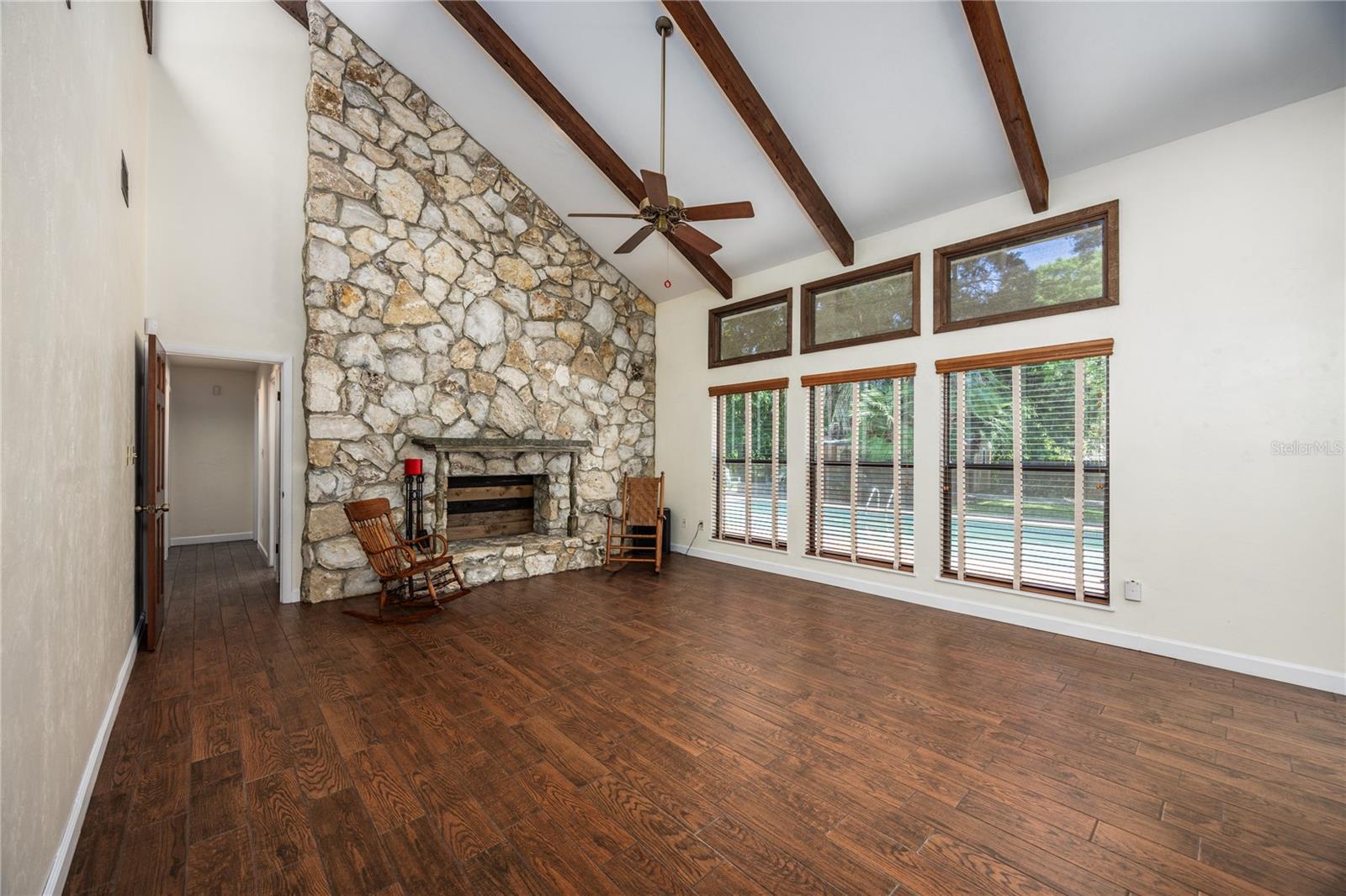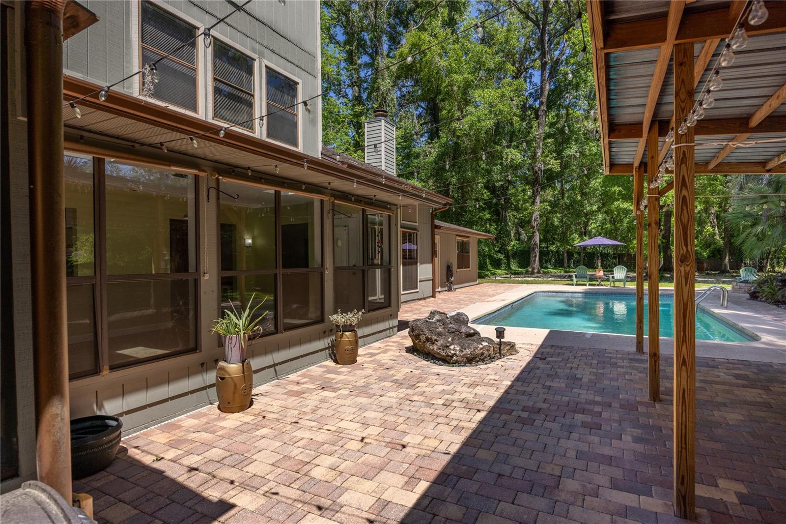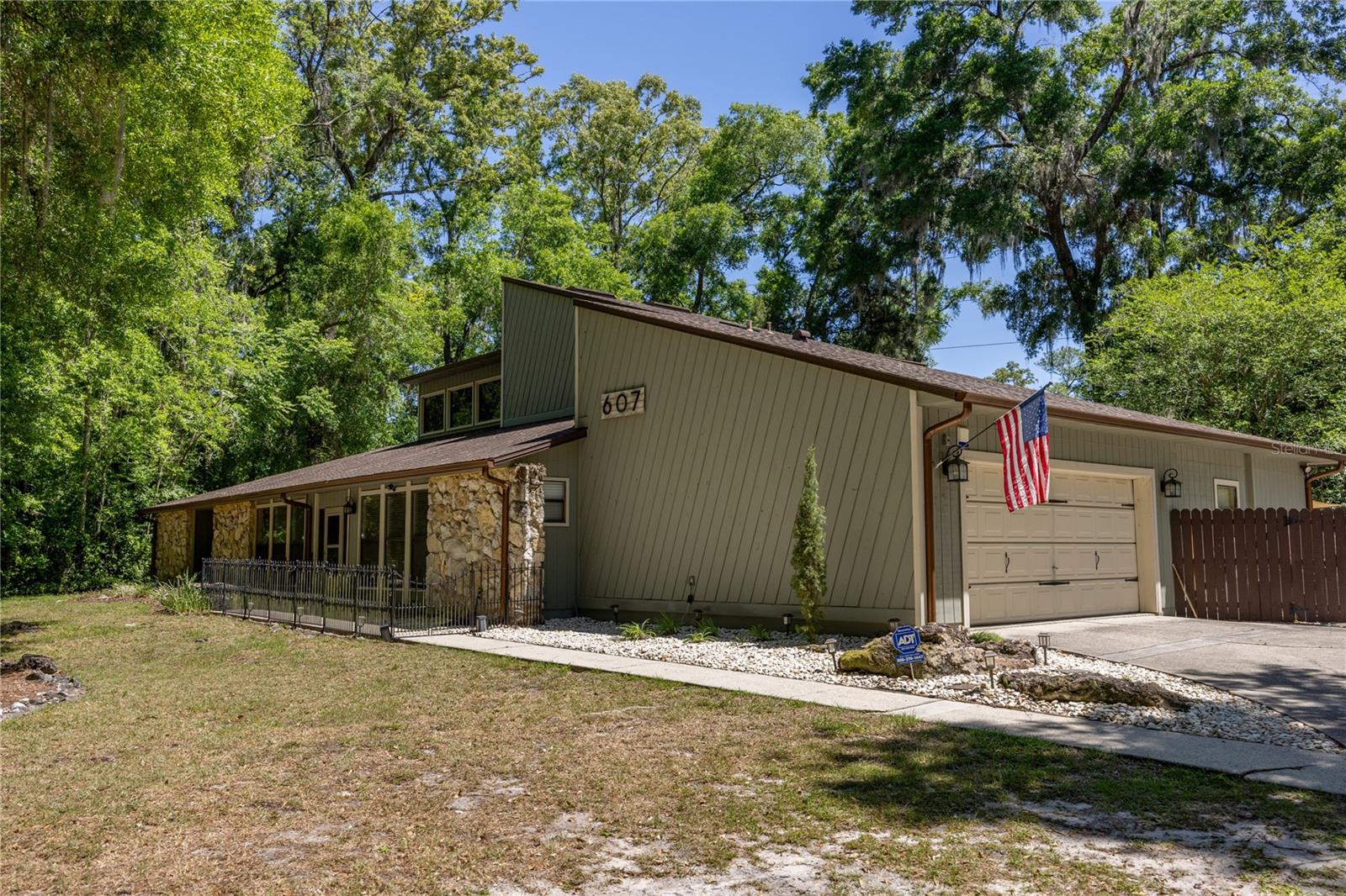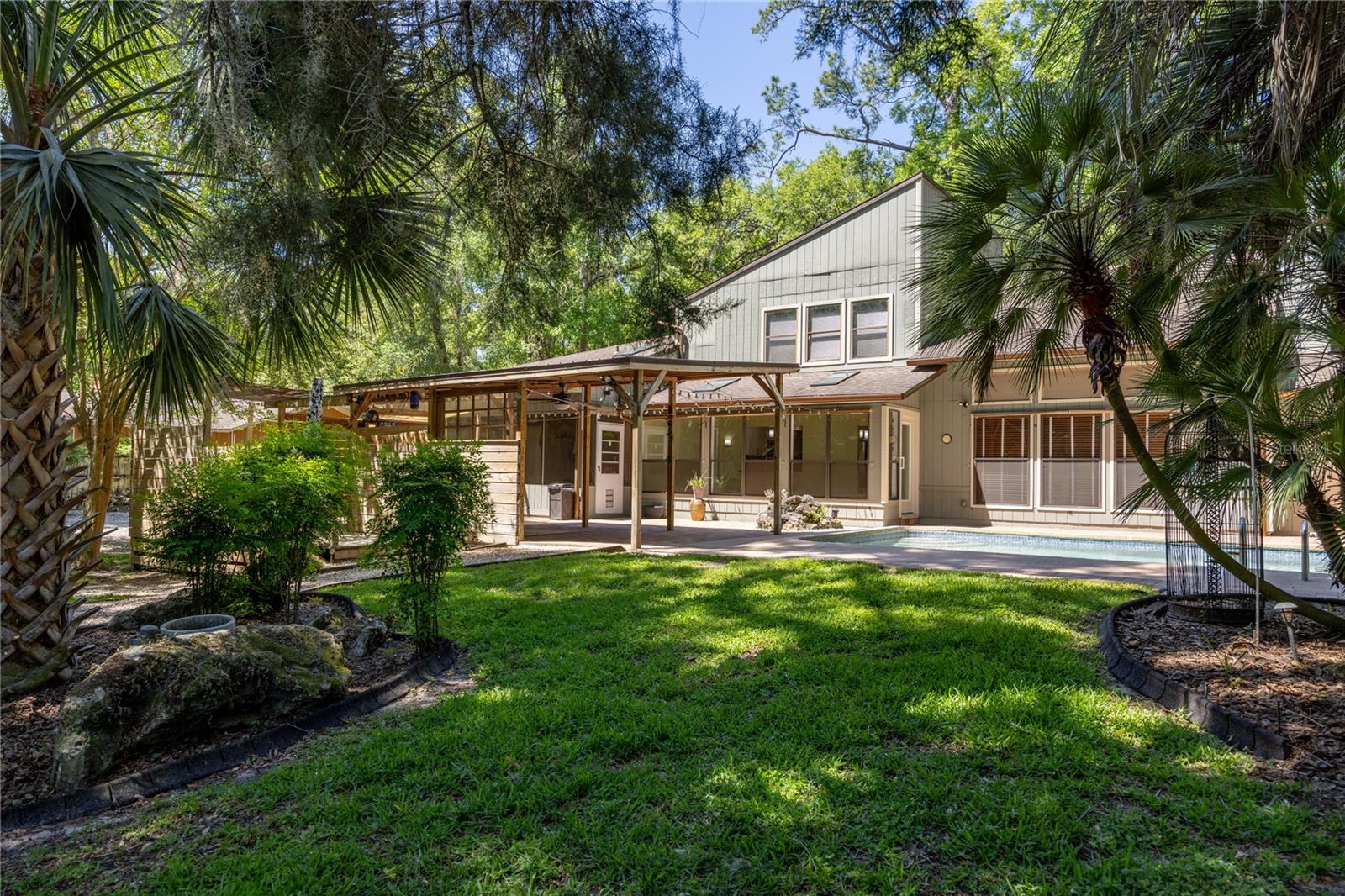 Experience Multigenerational Living and Entertaining at Its Finest. Looking for a home that suits a multigenerational lifestyle or hosts frequent guests with ease? This 5BR/3BA gem in SW Gainesville is perfect for you! Featuring a spacious main house with a 1BR/1BA in-law suite complete with a private entrance and screened porch, this property is designed for flexibility and comfort. The living room boasts stunning cathedral ceilings and a cozy wood-burning fireplace, while additional spaces include a den/study, a formal living/flex room, and an open dining room with a wall of windows that fills the space with natural light and offers picturesque views. The remodeled kitchen (2018) offers modern updates and functionality, while the convenience of an inside laundry room with a sink adds to the home’s practicality. The roof was replaced in 2019 for added peace of mind. The outdoor space is a true paradise, featuring a large open pool, a covered living area for entertaining, and a cozy firepit. Bonus features include an oversized 12x24 man cave/workshop shed with power, an additional 10x12 storage shed, and an oversized two-car garage perfect for vehicles and extra storage. Set on a spacious 0.67-acre lot, there’s plenty of room to relax and play. With 2,827 sq. ft. of living space, this home radiates Florida living and is perfectly priced. Don’t miss your chance to make this incredible property your own!