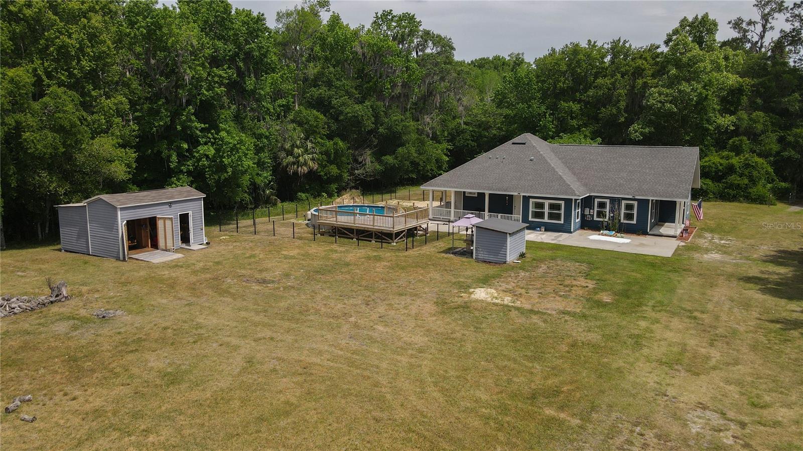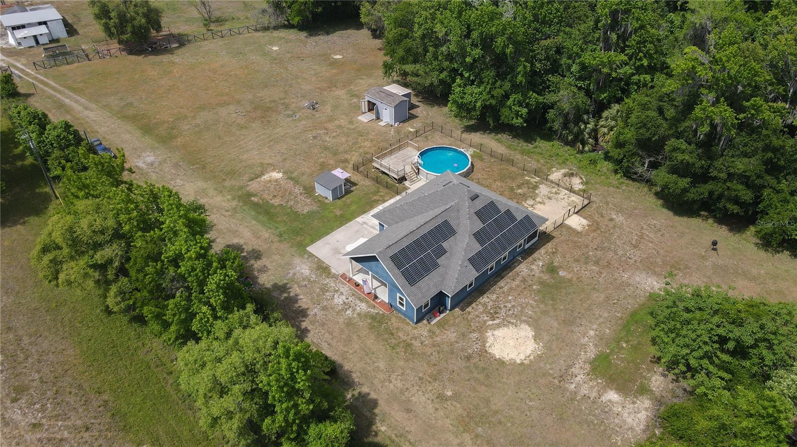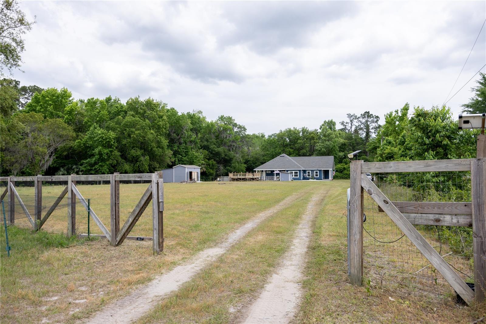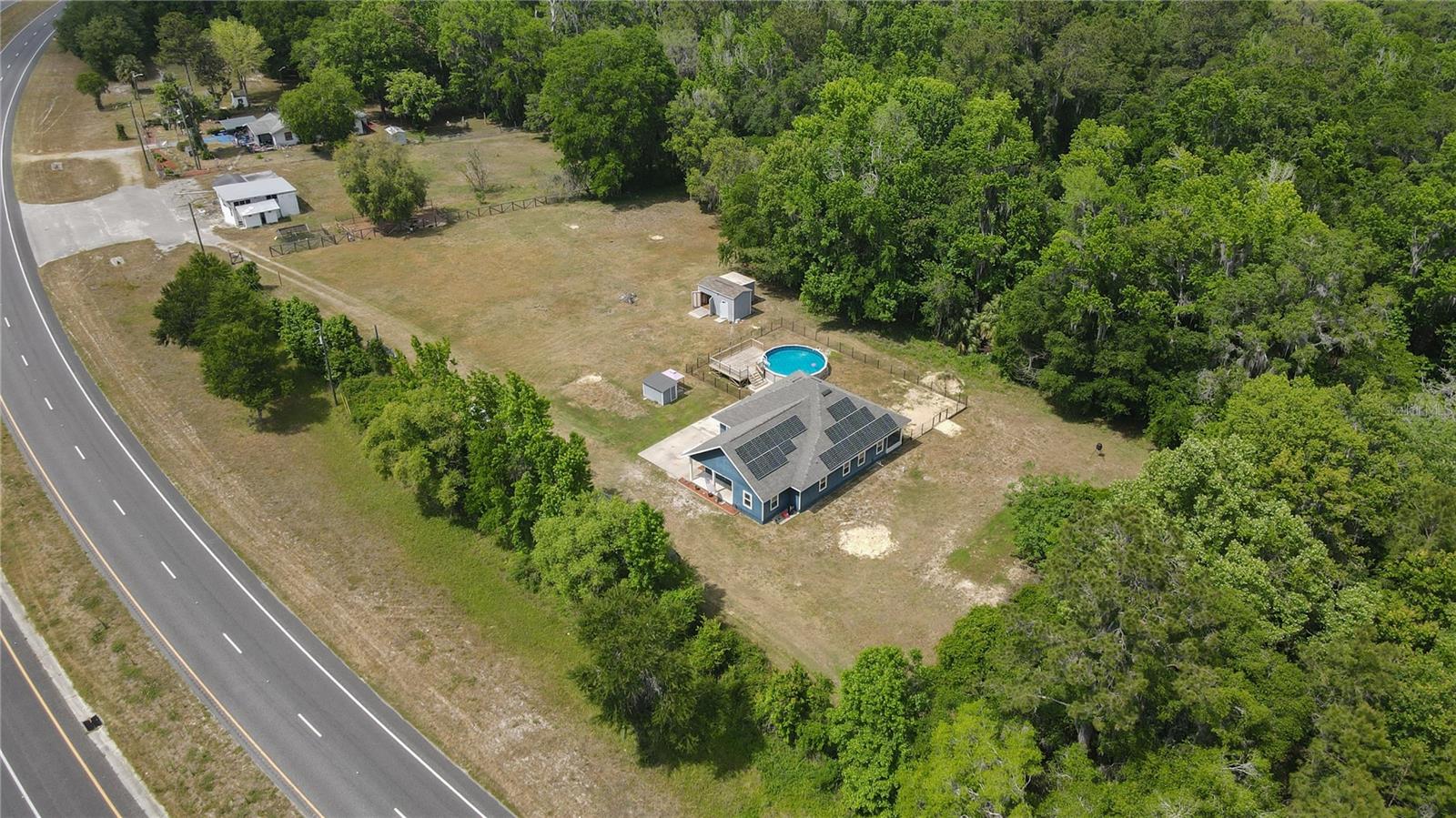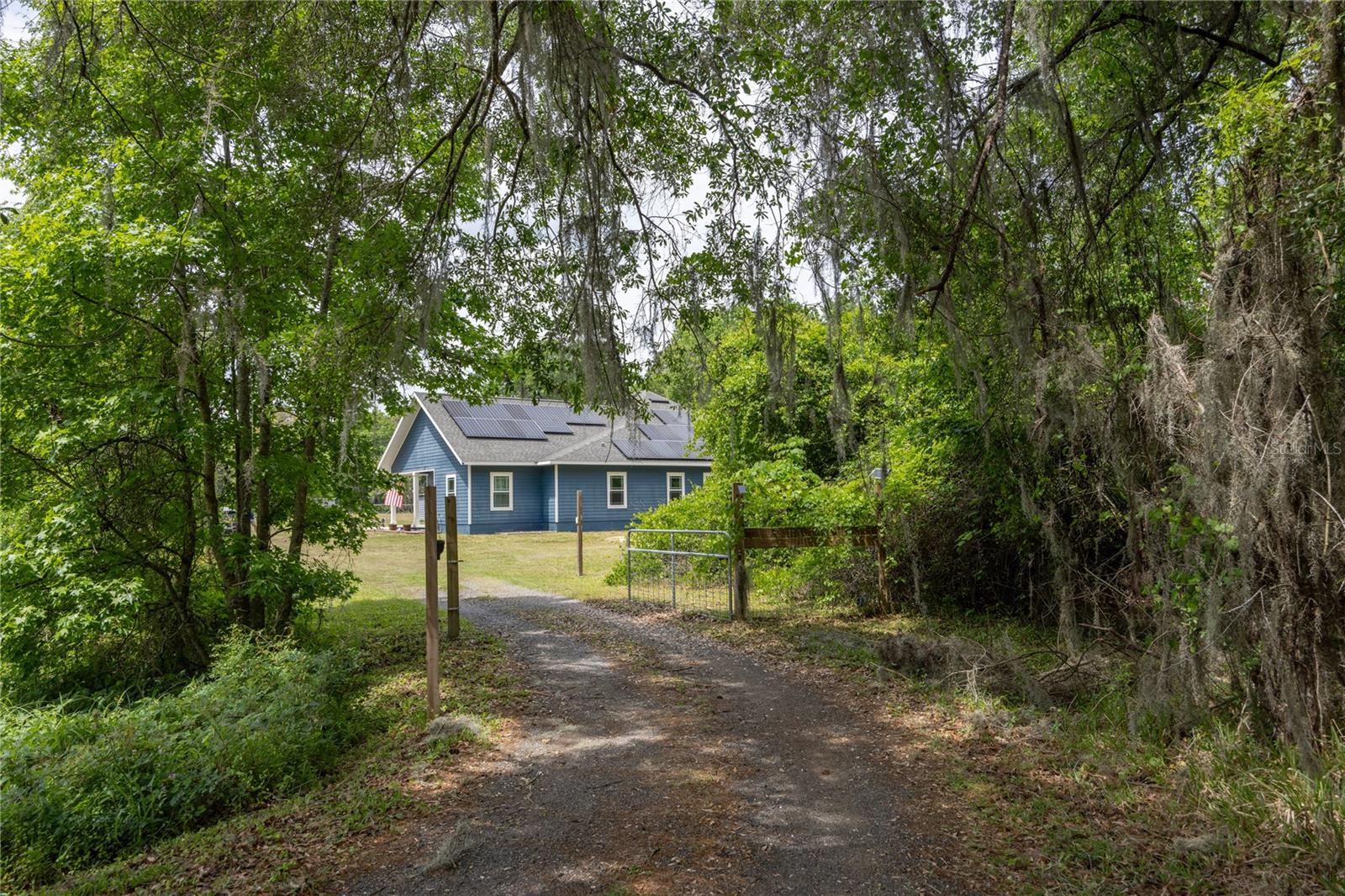 Make this beautiful 6.24-acre property your forever home—where modern comfort meets natural serenity, just minutes from the heart of Gainesville. Surrounded by state-protected preserve land, this home offers a private haven for nature lovers and outdoor enthusiasts. Enjoy daily visits from deer and turkey, direct access to the Gainesville-Hawthorne State Trail just across the street, and a fishing lake less than 600 yards away. The 3-bedroom, 2-bath home features an open-concept layout with high ceilings, a spacious kitchen with a large island, and a versatile den or office. The owner’s suite opens to an enclosed lanai, creating a perfect retreat, while a new deck leads to an above-ground pool in a fenced backyard. A functional mudroom, paid-off solar panels for low electric bills, and a powered shed/workshop add convenience and value. In addition to the main residence, the property includes a separate parcel with its own building, zoned for both commercial and agricultural use—offering endless possibilities, whether you want to expand your homestead, launch a small business, or develop a second home. Just 4.9 miles from downtown Gainesville and 10 minutes from the University of Florida, you’re ideally positioned for game-day weekends, serene country living, or entrepreneurial pursuits. With nearly seven acres of versatile land backing up to peaceful woods and agricultural zoning throughout, the opportunities here are as abundant as the wildlife. Schedule your private tour today and take a walk on the wild side.