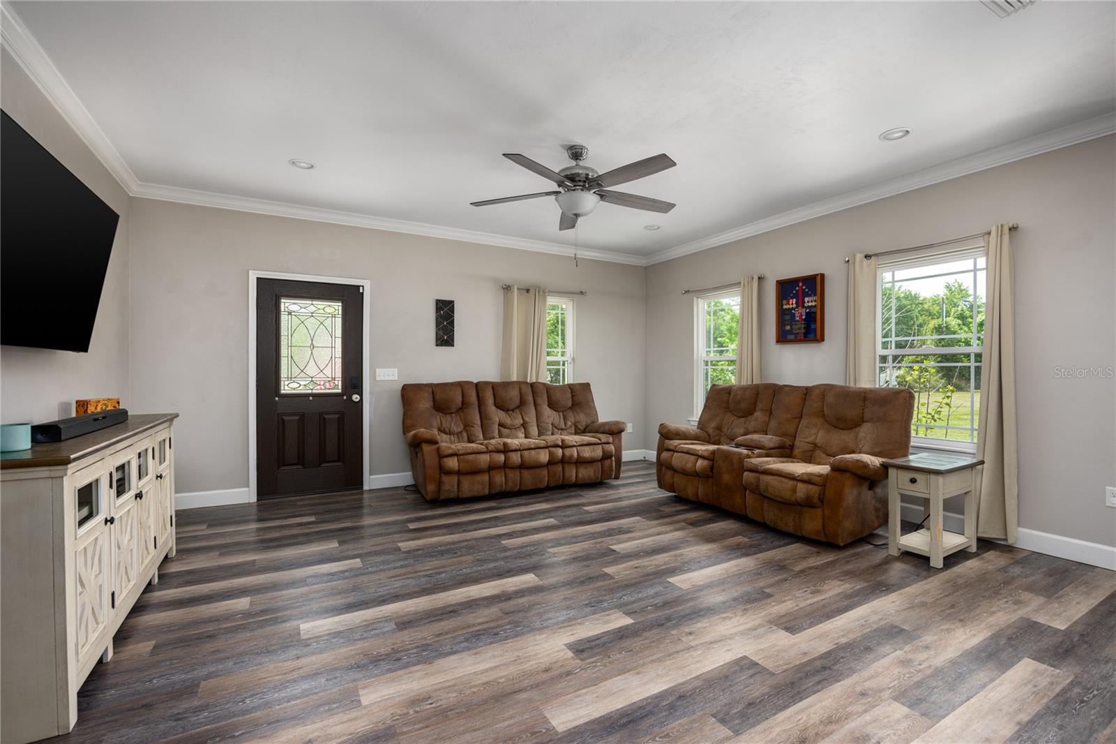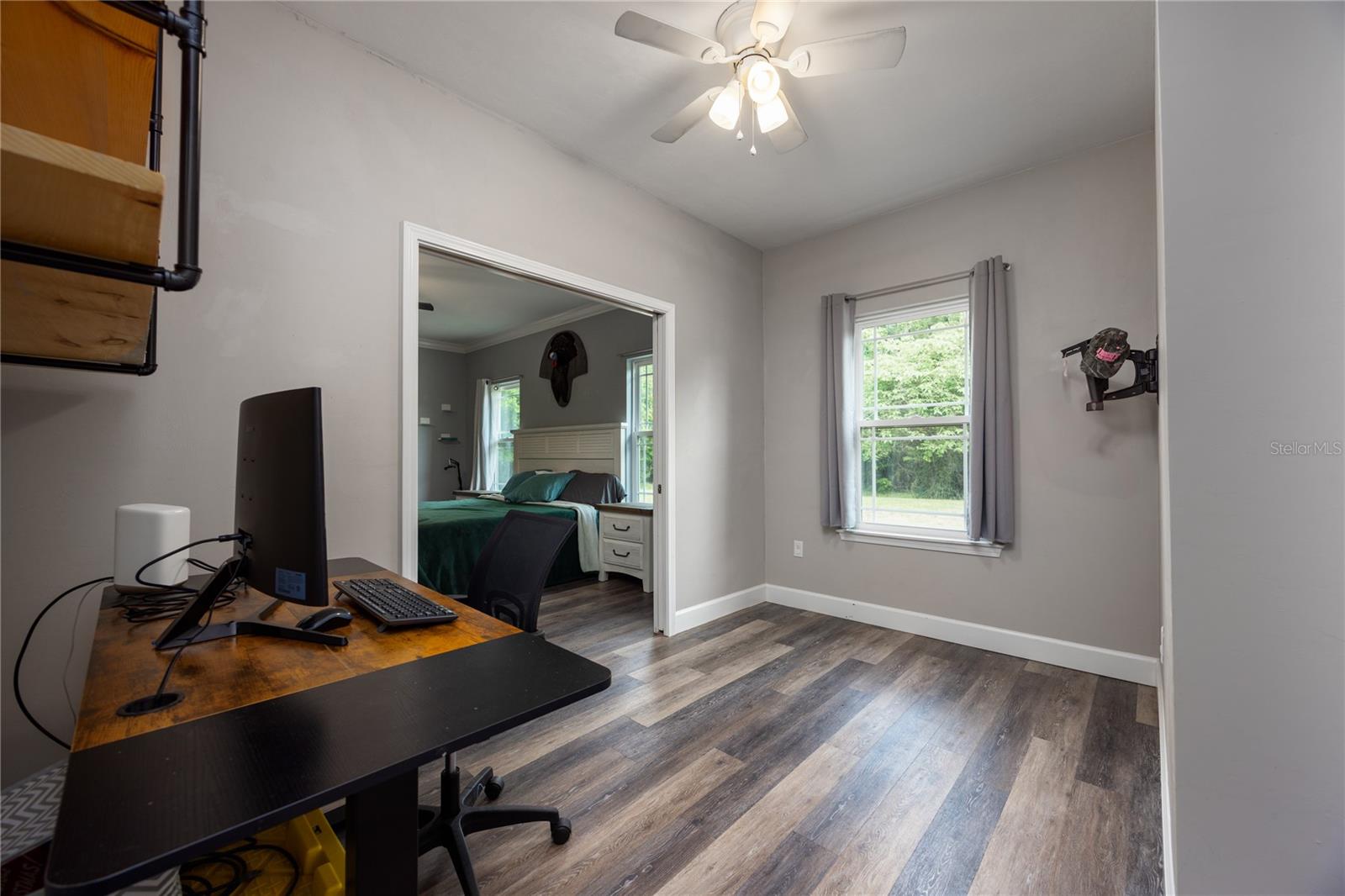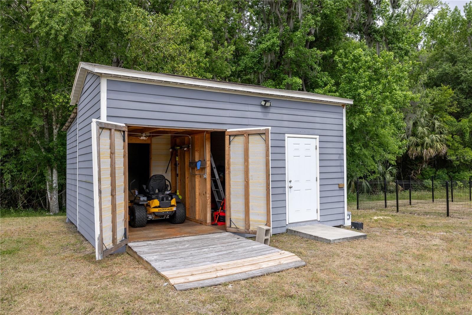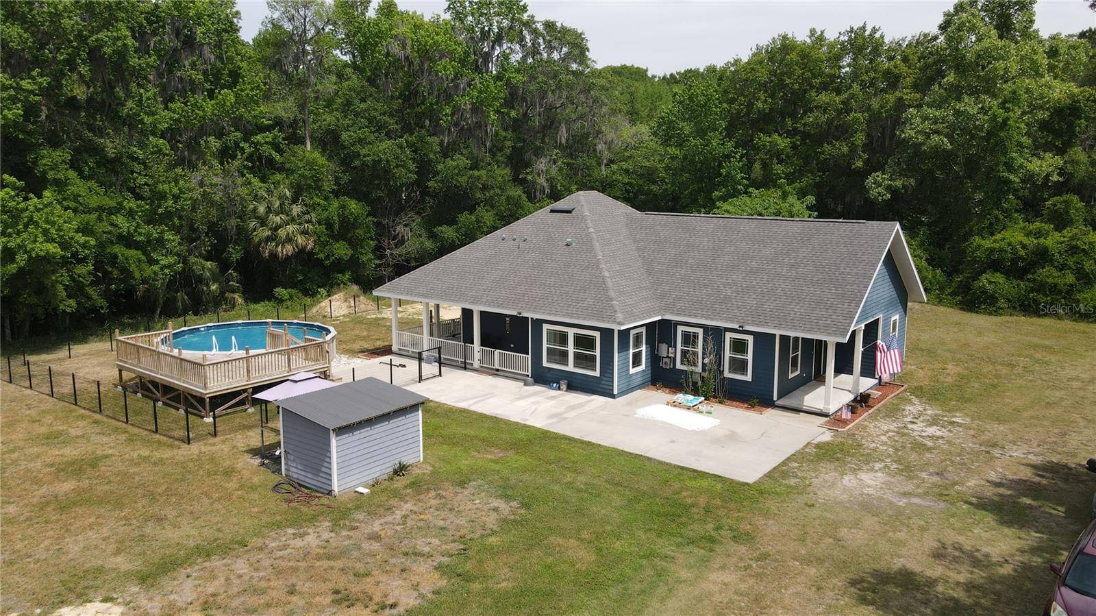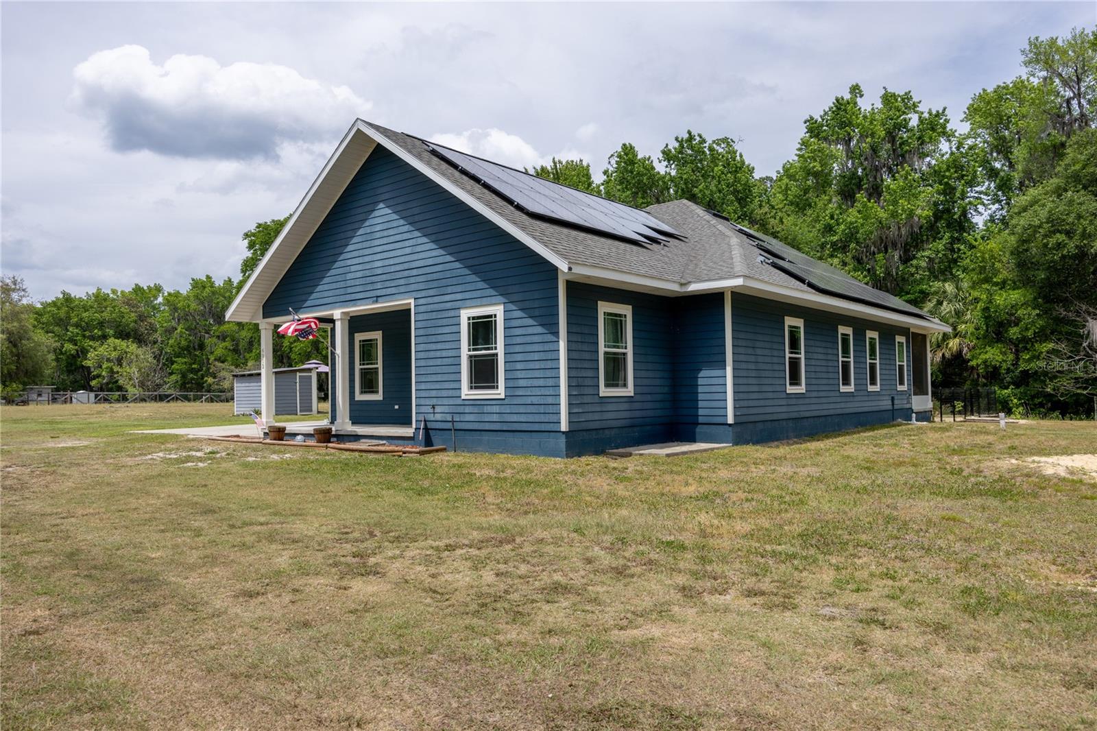 Make this beautiful 6.24-acre property your forever home—where modern comfort meets natural serenity, just minutes from the heart of Gainesville. Surrounded by state-protected preserve land, this home offers a private haven for nature lovers and outdoor enthusiasts. Enjoy daily visits from deer and turkey, direct access to the Gainesville-Hawthorne State Trail just across the street, and a fishing lake less than 600 yards away. The 3-bedroom, 2-bath home features an open-concept layout with high ceilings, a spacious kitchen with a large island, and a versatile den or office. The owner’s suite opens to an enclosed lanai, creating a perfect retreat, while a new deck leads to an above-ground pool in a fenced backyard. A functional mudroom, paid-off solar panels for low electric bills, and a powered shed/workshop add convenience and value. In addition to the main residence, the property includes a separate parcel with its own building, zoned for both commercial and agricultural use—offering endless possibilities, whether you want to expand your homestead, launch a small business, or develop a second home. Just 4.9 miles from downtown Gainesville and 10 minutes from the University of Florida, you’re ideally positioned for game-day weekends, serene country living, or entrepreneurial pursuits. With nearly seven acres of versatile land backing up to peaceful woods and agricultural zoning throughout, the opportunities here are as abundant as the wildlife. Schedule your private tour today and take a walk on the wild side.