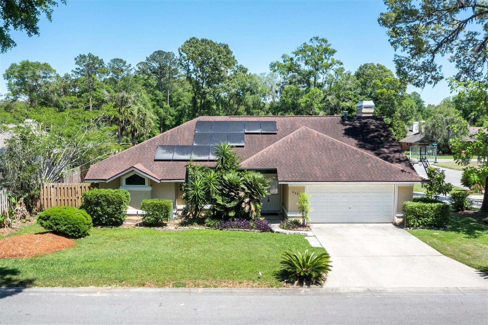 PRICE IMPROVEMENT!!! Gorgeous Renovated Pool Home in the Heart of Southwest Gainesville. Welcome to this beautifully renovated 4-bedroom, 3-bathroom pool home located in the highly desirable Fairfield neighborhood of Southwest Gainesville. Perfectly situated on a spacious corner lot, this stunning residence has been thoughtfully upgraded throughout, offering both luxury and functionality for modern living. Step inside to discover a completely remodeled kitchen designed to be the heart of the home. Featuring gleaming granite countertops, a stylish tile backsplash, new cabinetry, stainless steel appliances, and a convenient breakfast bar with additional eat-in seating, this kitchen is both elegant and practical. The open-concept design ensures seamless flow into the expansive living area, where 10-foot ceilings, recessed lighting, and a wood-burning fireplace create a warm and welcoming atmosphere — ideal for both relaxing evenings and entertaining guests. The home also includes a traditional formal dining room, a dedicated interior laundry room, and a versatile media/flex room that can be transformed into an entertainment center, home office, or second living space. Just off this flex area, you’ll find the fourth bedroom and third full bathroom — a perfect setup for guests, in-laws, or even a private office space. This wing of the home also features a separate entrance via a second driveway, offering added parking, privacy and convenience. The spacious master suite is a true retreat, complete with direct access to the pool area — imagine stepping out for a quiet morning swim or winding down poolside in the evening. The suite features a large walk-in closet, dual vanity with granite countertops, a separate make-up vanity, and a luxurious two person, walk-in tiled shower with bench seating, delivering a spa-like experience right at home. Step outside to your own private oasis — a sparkling in-ground pool enclosed by a screened lanai, perfect for outdoor entertaining or relaxing with family. A poolside bathroom offers easy access and functionality, doubling as a convenient cabana bath. Beyond its aesthetic appeal, this home is loaded with practical upgrades: a $60,000 solar panel system virtually eliminates your electric bills, while recently replaced low-E windows and an insulated, attached 2-car garage provide year-round energy efficiency. A 2017 architectural shingle roof adds even more peace of mind. Fairfield offers an ideal Gainesville location — close to top-rated schools, parks, and just a short drive to UF Health Shands and North Florida Regional hospitals. Enjoy convenient access to shopping, dining, and entertainment at nearby Haile Plantation Village Center, Celebration Pointe, and Butler Plaza.Don’t miss the opportunity to own this truly move-in ready, meticulously renovated home in one of Gainesville’s most sought-after communities. Schedule your private showing today and experience the perfect blend of comfort, style, and modern living!