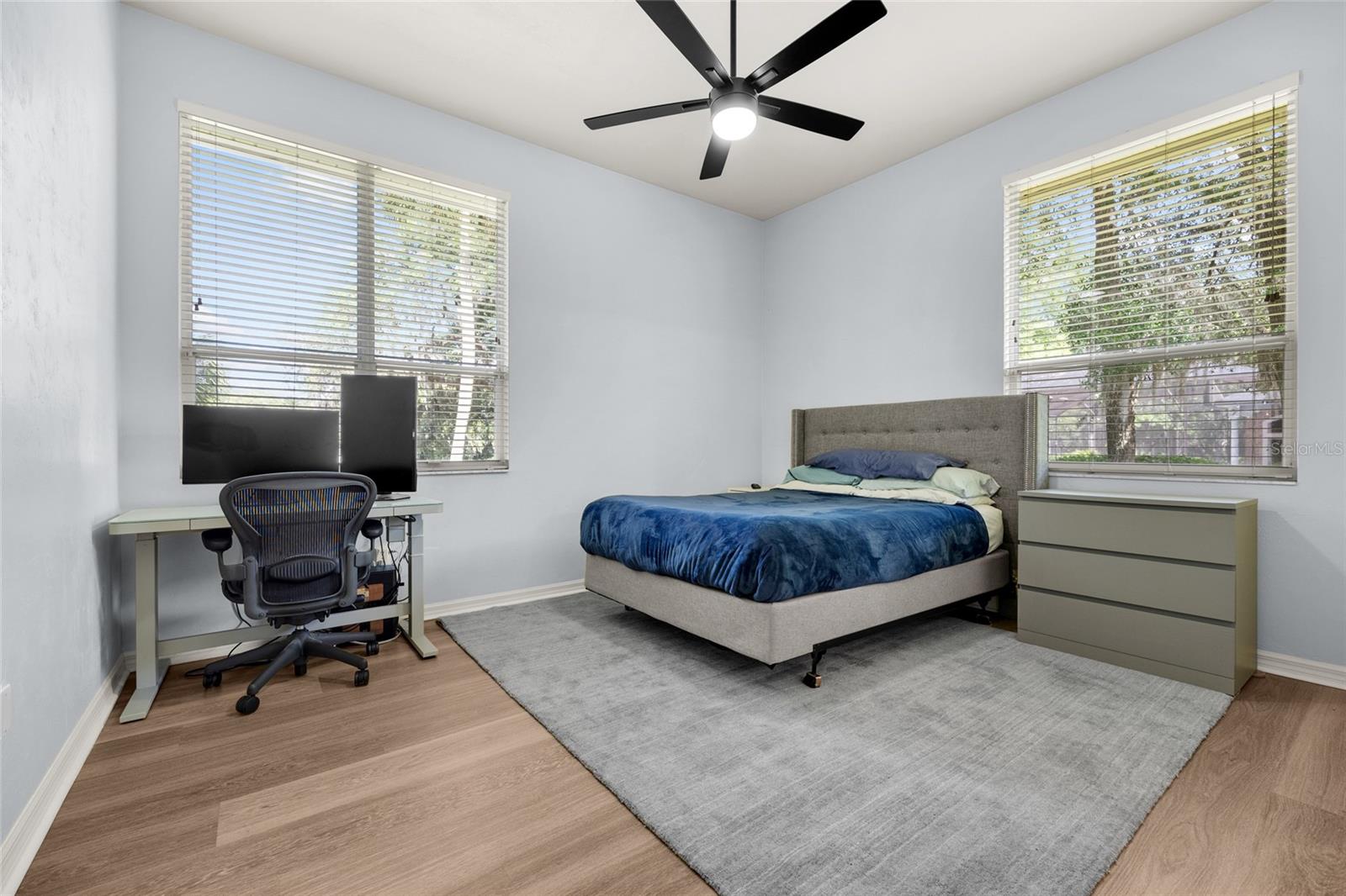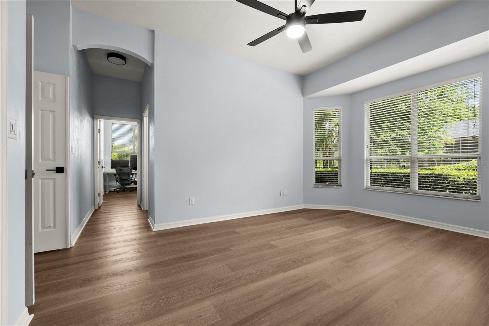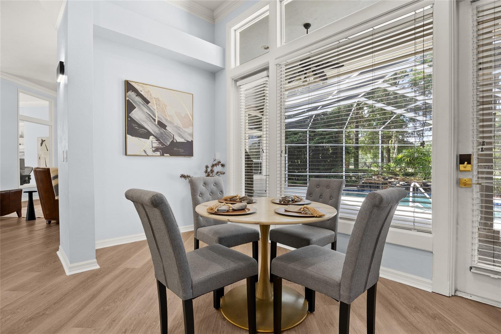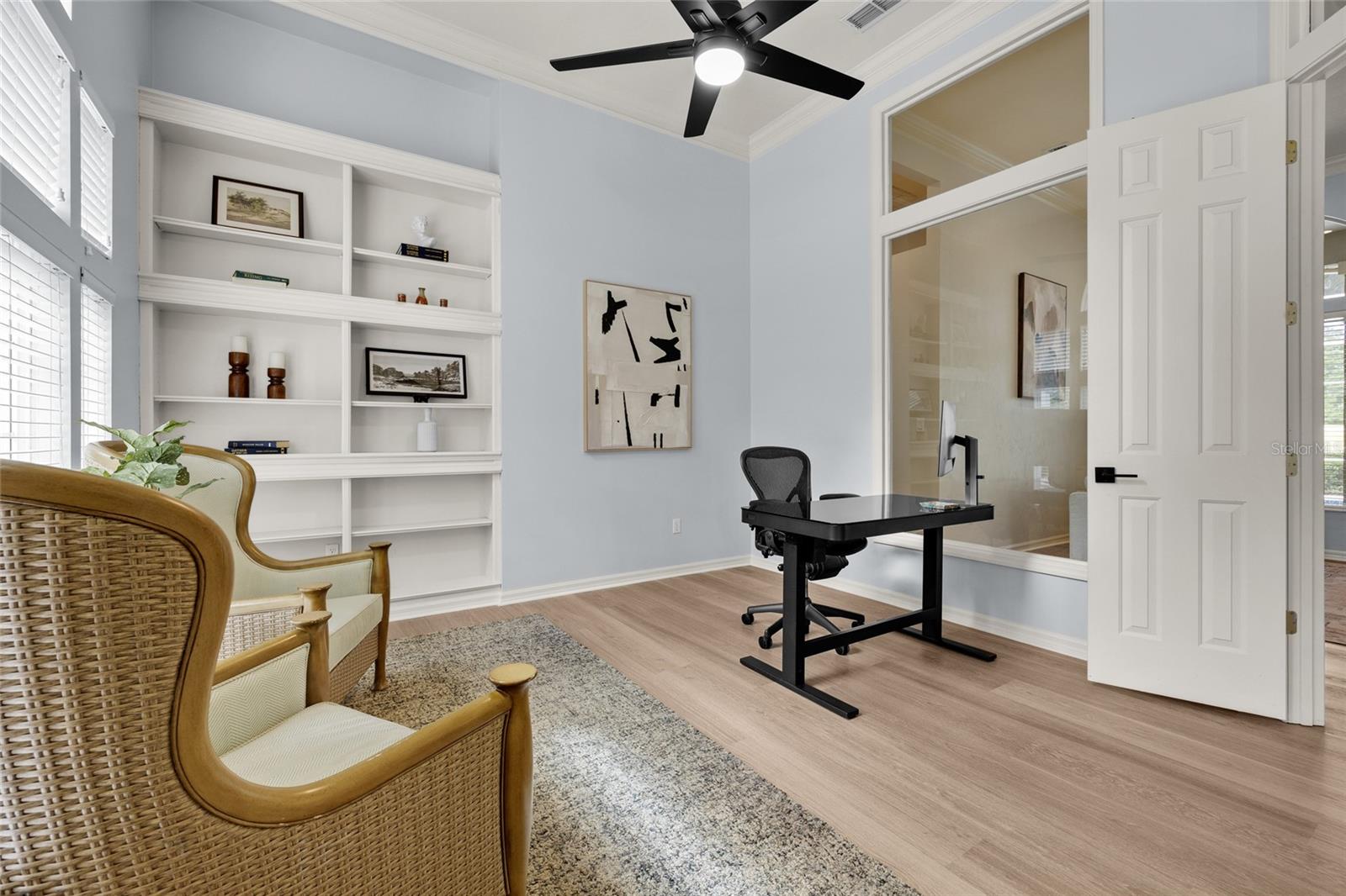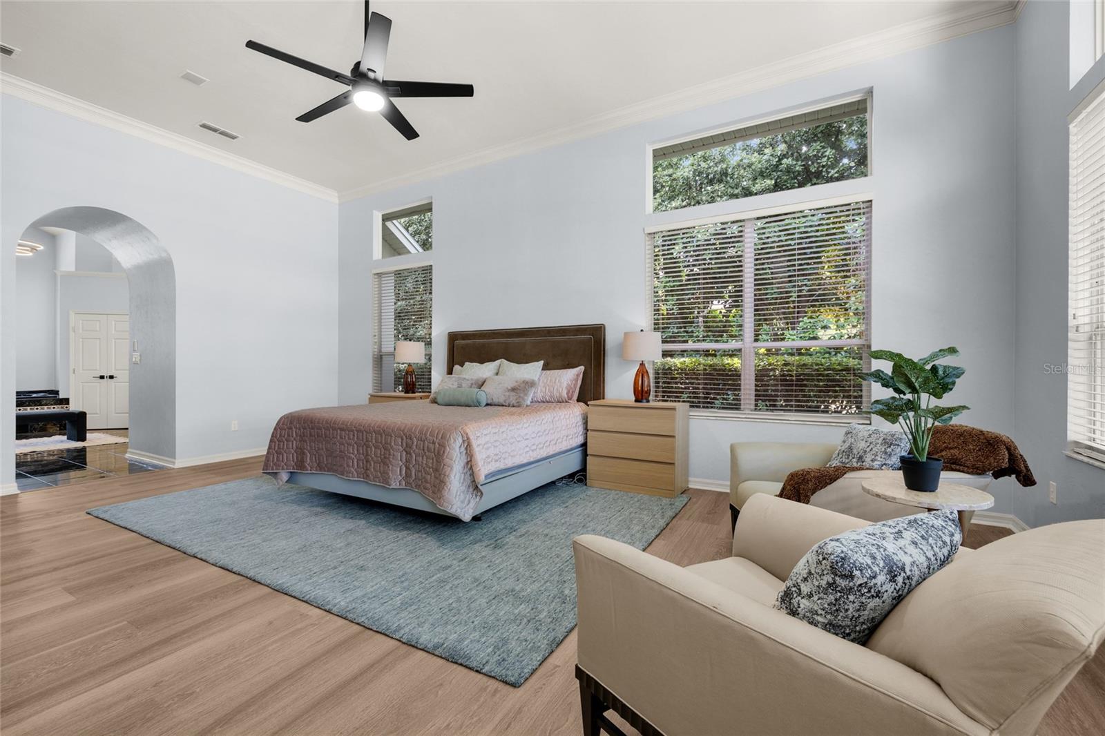 Welcome home to your beautifully updated Haile Plantation India Station estate set on one of the most desirable golf course lots in Hawkstone Country Club, with sweeping views of the signature 10th hole. This stately home offers over 4,900 square feet of thoughtfully designed living space, blending refined finishes with comfort and functionality. As you arrive, a circular driveway framed by mature landscaping creates a gracious first impression, while the oversized 3-car garage with a built-in workshop adds both convenience and storage. Step inside to soaring ceilings, abundant natural light, and brand-new luxury vinyl plank flooring that flows throughout the main level. Off the entry, you'll find a grand home office with French doors, a formal dining room, and a secondary living area—perfect for entertaining or creating a quiet retreat. The home features a 4-way split floor plan, ensuring privacy and space for everyone. The heart of the home is the updated kitchen, where new quartz counters, a designer backsplash, and all-new stainless steel appliances make a bold, modern statement. The kitchen opens to the family room and casual dining area, all of which are flooded with natural light and framed by stunning panoramic views of the golf course. Whether you're starting your morning with a cup of coffee or winding down in the evening, the view from this space is simply unmatched. Step outside to your private outdoor oasis—featuring a resort-style pool with waterfall, a granite summer kitchen, a cozy outdoor fireplace, and expansive covered patio space—all with sweeping views of the fairway. With six total bedrooms and 4.5 baths, the home offers incredible flexibility. Two of the six bedrooms are currently used as bonus spaces: one on the main level, ideal as a bonus living space, study retreat or playroom, and one upstairs, outfitted as a home theater with projection screen. The spacious primary suite is tucked away on the main floor and offers tranquil golf course views, a luxurious en suite bath, and dual walk-in closets. Beyond the home, residents enjoy all the perks of Haile Plantation—one of Gainesville’s most sought-after communities. Stroll or bike along miles of shaded walking trails that wind through lush surroundings, or head to the charming Haile Village Center for coffee, dining, boutiques, and community events. With easy access to UF Health/Shands, HCA Florida North Florida Hospital, Butler Plaza, Celebration Pointe, and I-75, the location offers unmatched convenience while preserving a peaceful, neighborhood feel. This exceptional property offers more than a home—it offers a lifestyle. Schedule your private tour today.