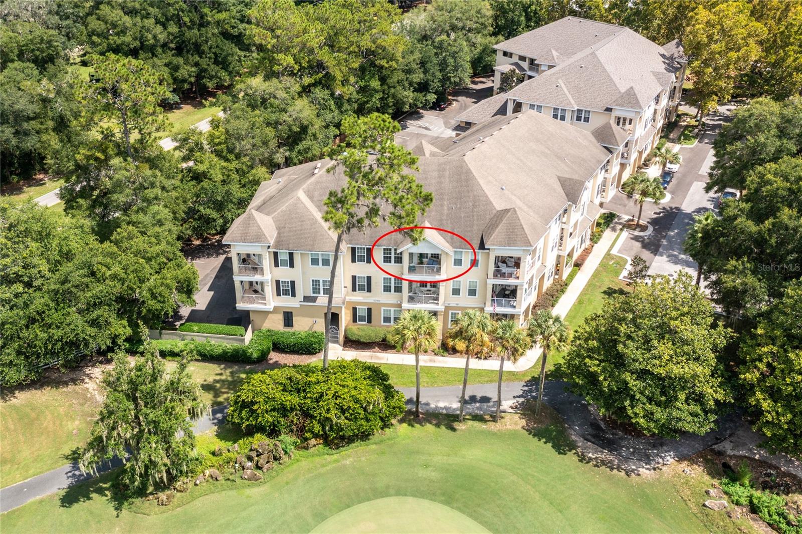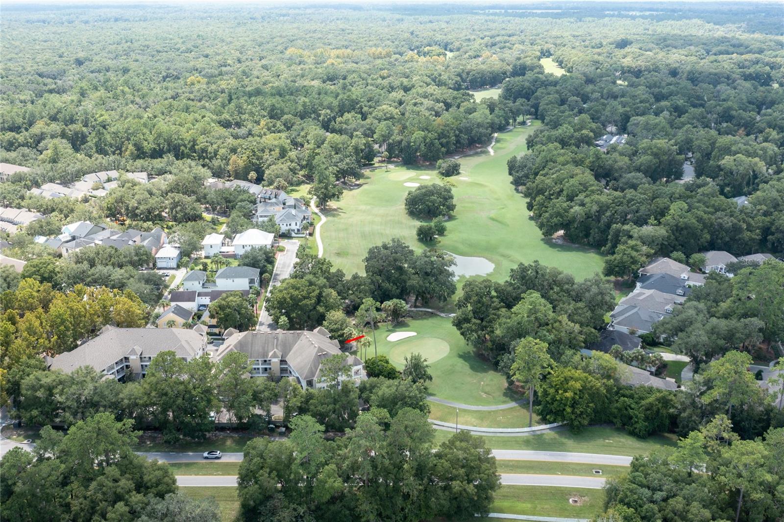 One or more photo(s) has been virtually staged. Stunning view from this luxury top floor condo overlooking the 12th green of the Hawkstone Golf Course. Covered balcony is perfect for relaxing with your morning coffee or a sip of wine at sunset. Kitchen w granite, newer refrigerator, breakfast bar, wood cabinets, pantry, wood floors in main living areas, combo living & dining rooms for spaciousness with built in cabinetry & window box seat, split bedroom plan with large owners suite with dual vanity, walk in shower & walk in closet, sliding barn doors, laundry room with newer Electrolux washer/dryer, HVAC 2019. One car garage with newer garage door opener with additional guest parking and building elevator. Enjoy maintenance free living and all the amenities this award winning community has to offer including an optional country club membership. The location is a short distance to the Haile Village Center with restaurants, shops, businesses & Saturday farmers market. Convenient to schools, health facilities and I-75.
