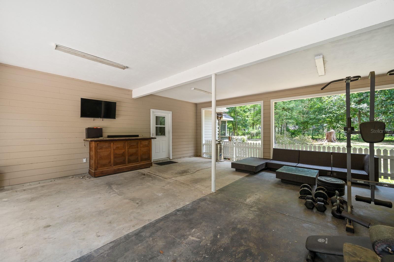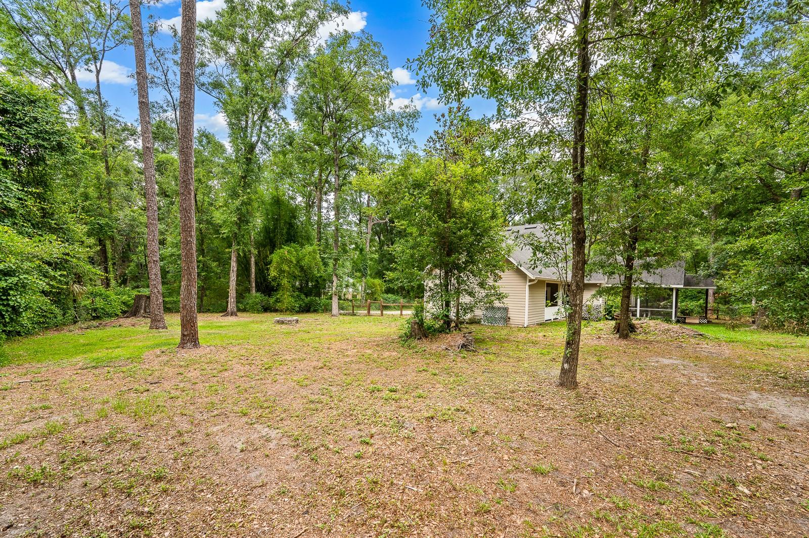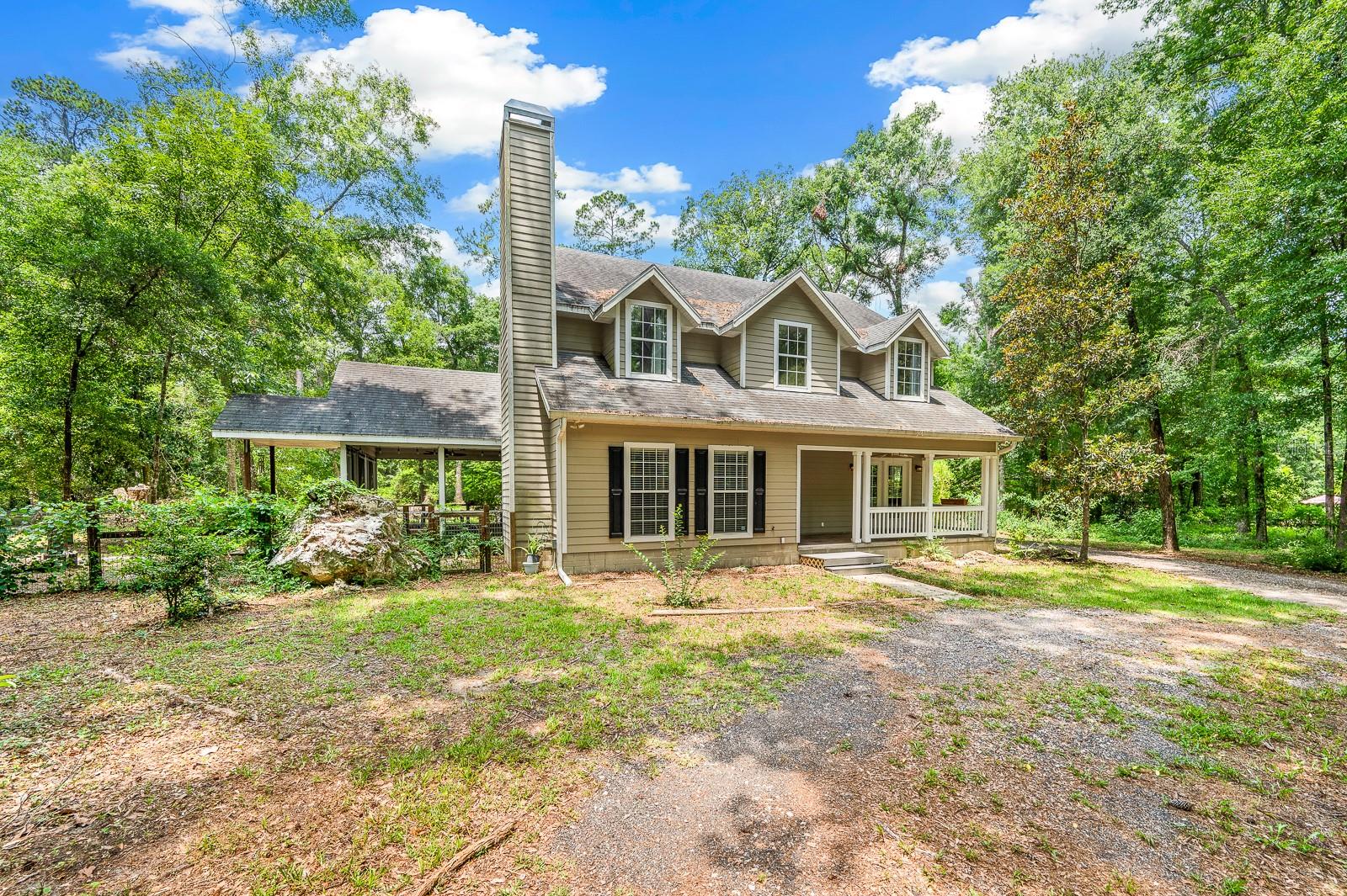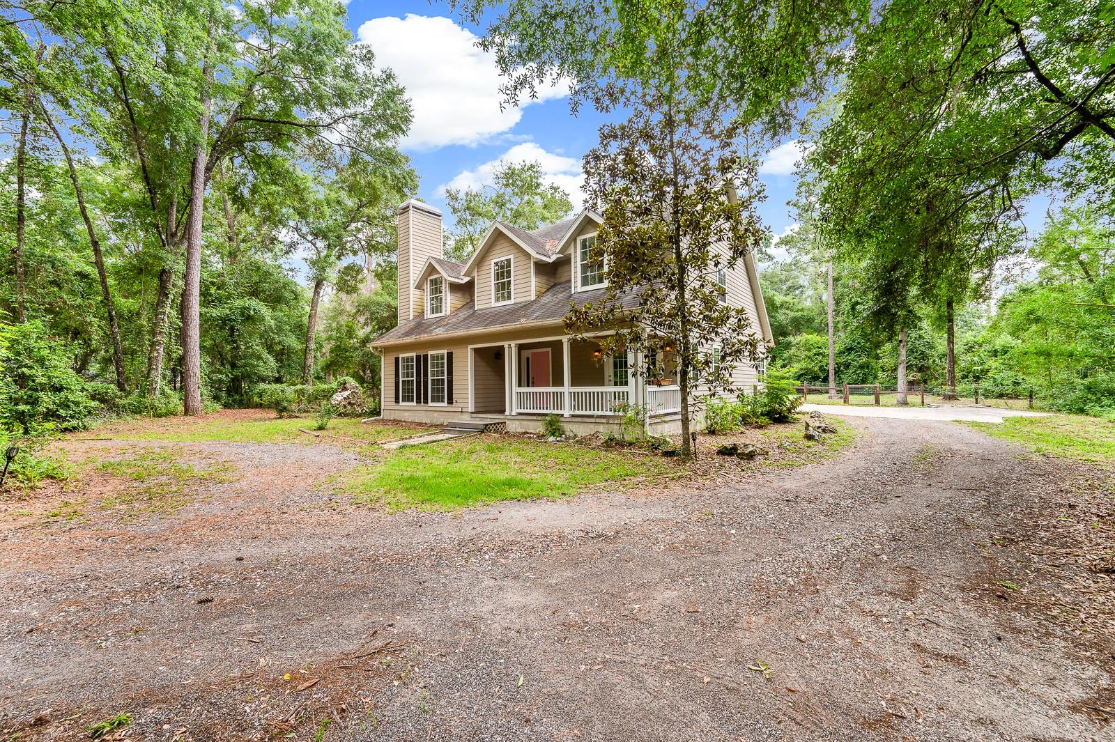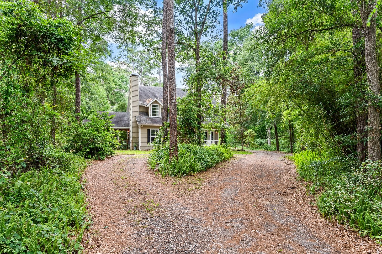 Welcome to a rare 1.73 acre retreat in highly sought-after SW Gainesville! This spacious custom 3 bedroom 2 and a half bath home can be found at the end of a private wooded driveway. You will love the open concept floor plan, the wood-burning fireplace, and the primary bedroom downstairs with french doors opening to the beautiful front porch. Every bedroom enjoys walk in closets, but the primary closet's built ins are not to be missed! Chefs will love the stainless steel appliances and gas range, meticulous homeowners will appreciate the wood and tile floors throughout--no carpet! Upstairs, 2 large bedrooms are connected by a light and bright jack and jill bathroom. Don't miss the surprise massive storage space upstairs (300sf) with the possibility for living space conversion. Relax on your screened back porch (with a gas grill hook up), and soak in the serenity of your fenced backyard with so many possibilities! There is plenty of outdoor storage--attached to your carport is a large lockable storage/workshop space with even more attic storage! Also enjoy lower utility costs with your well, septic tank, and tankless water heater!