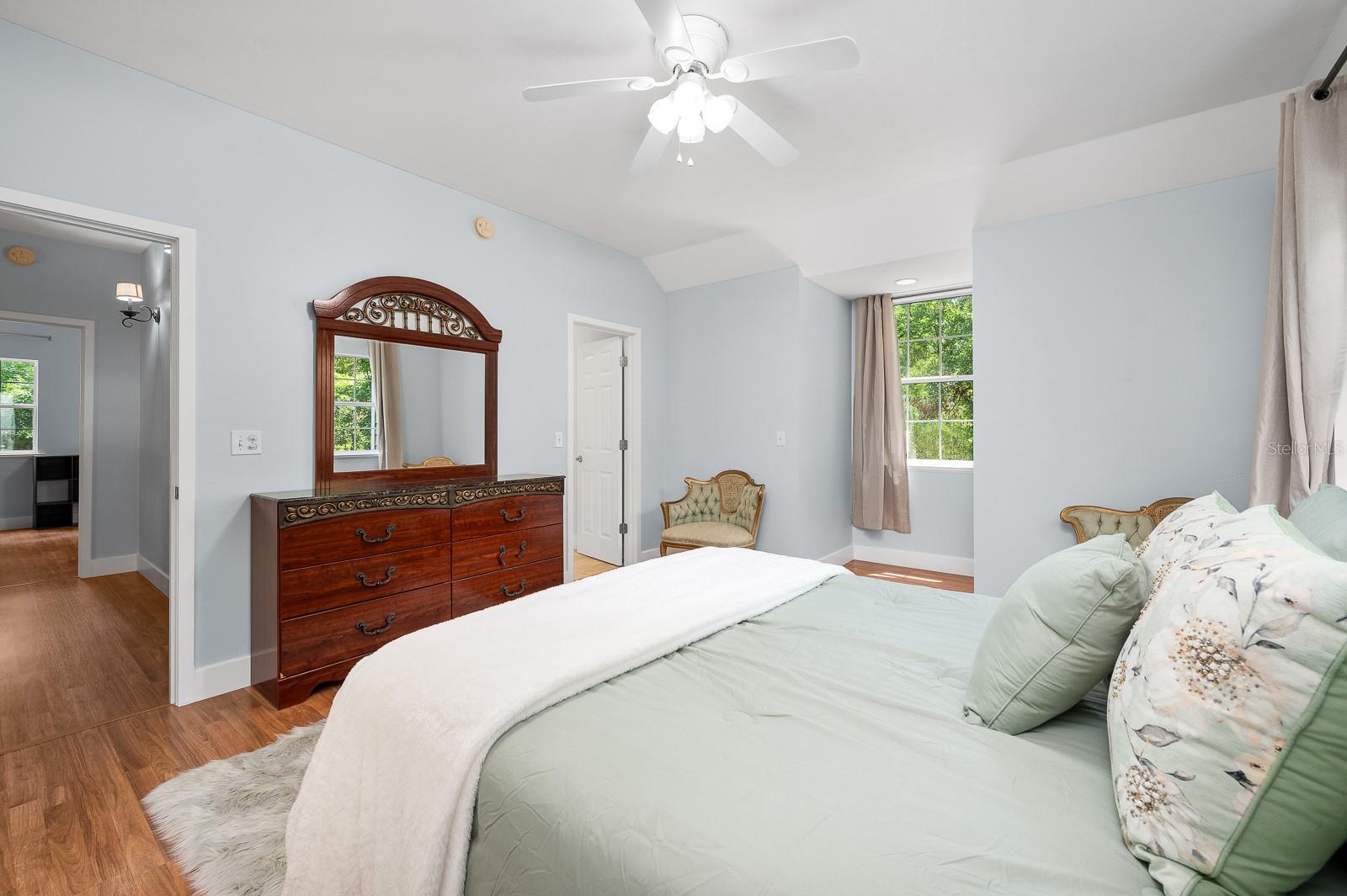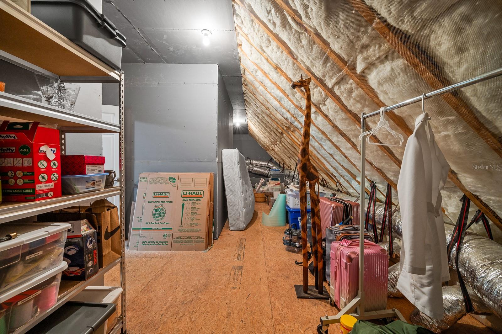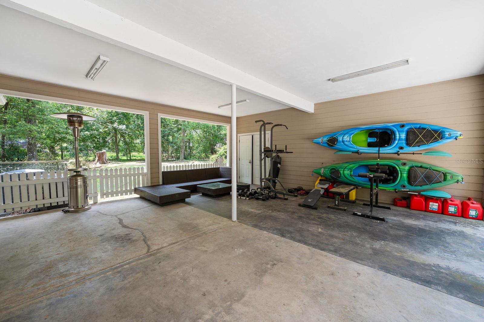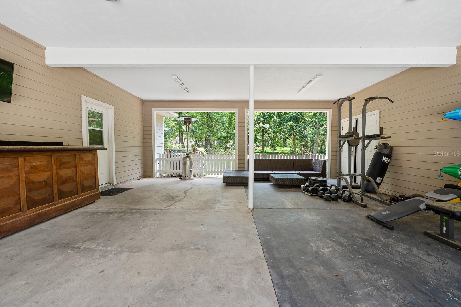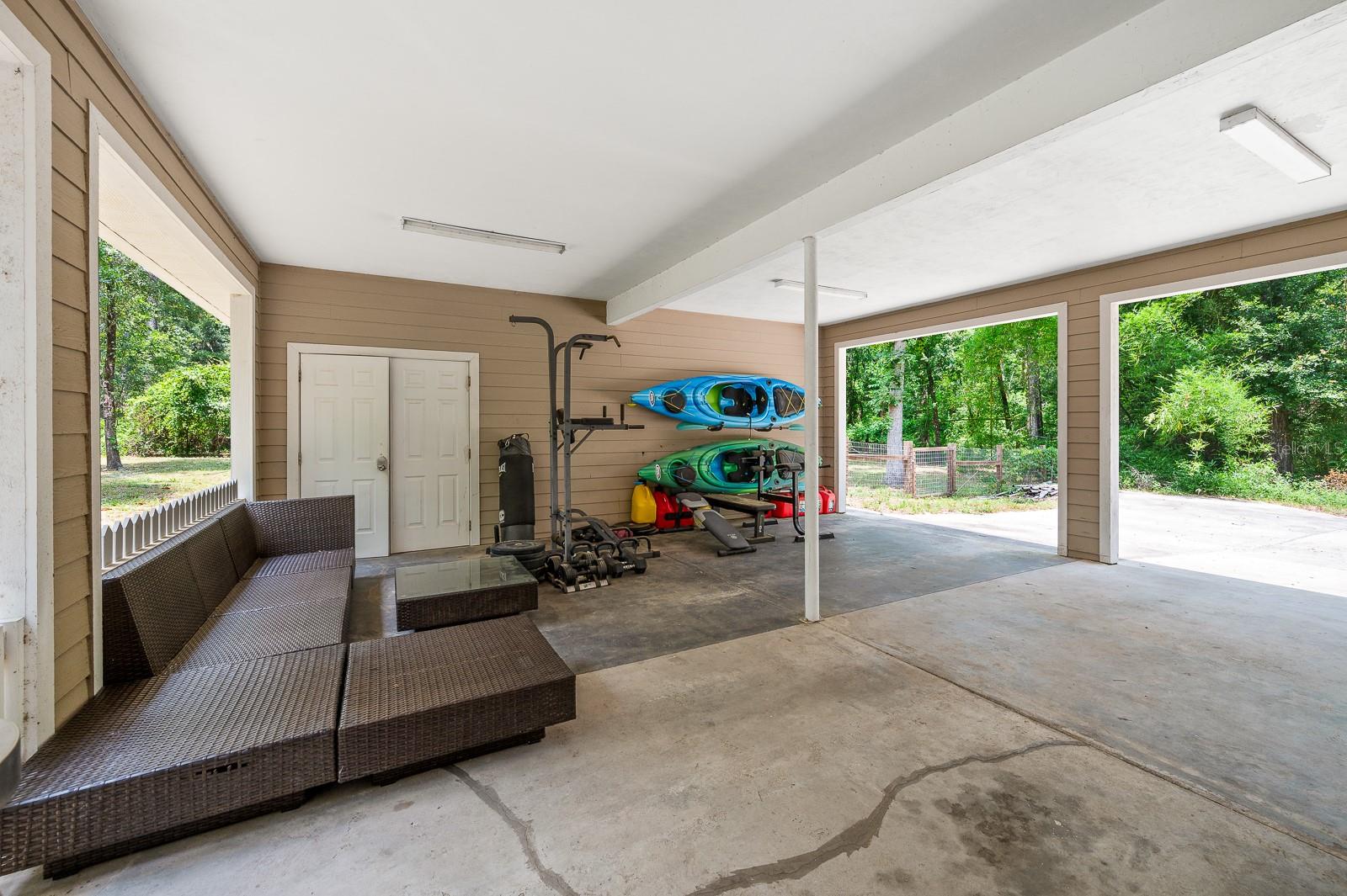 Welcome to a rare 1.73 acre retreat in highly sought-after SW Gainesville! This spacious custom 3 bedroom 2 and a half bath home can be found at the end of a private wooded driveway. You will love the open concept floor plan, the wood-burning fireplace, and the primary bedroom downstairs with french doors opening to the beautiful front porch. Every bedroom enjoys walk in closets, but the primary closet's built ins are not to be missed! Chefs will love the stainless steel appliances and gas range, meticulous homeowners will appreciate the wood and tile floors throughout--no carpet! Upstairs, 2 large bedrooms are connected by a light and bright jack and jill bathroom. Don't miss the surprise massive storage space upstairs (300sf) with the possibility for living space conversion. Relax on your screened back porch (with a gas grill hook up), and soak in the serenity of your fenced backyard with so many possibilities! There is plenty of outdoor storage--attached to your carport is a large lockable storage/workshop space with even more attic storage! Also enjoy lower utility costs with your well, septic tank, and tankless water heater!