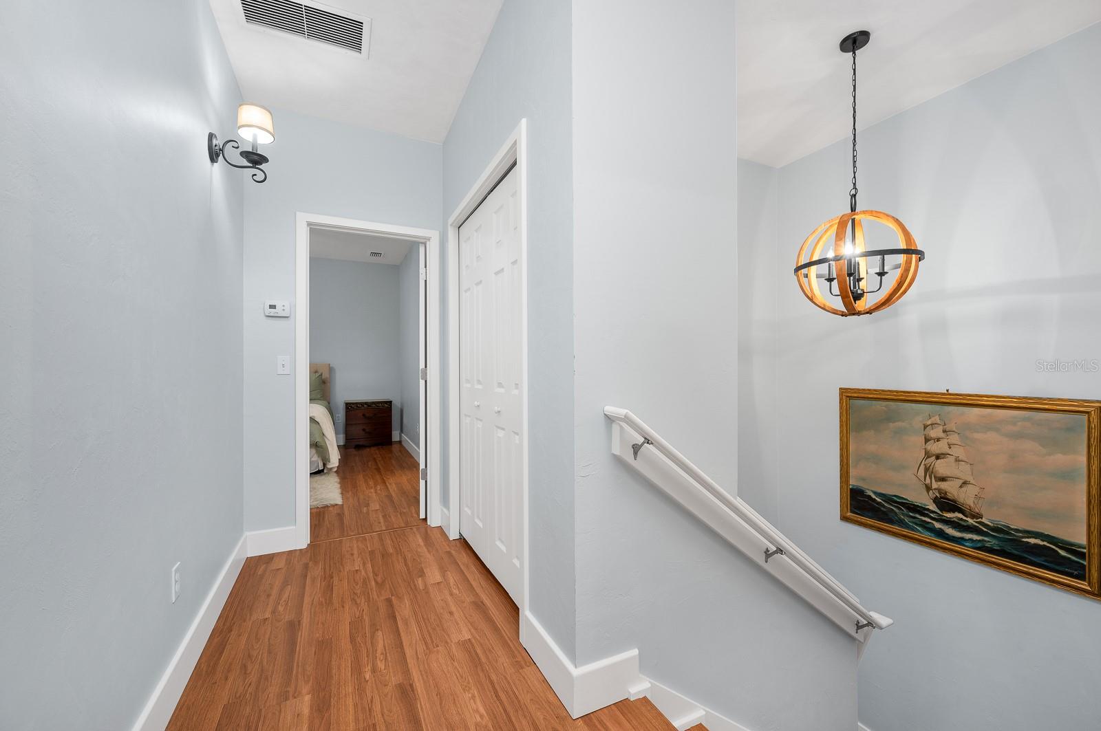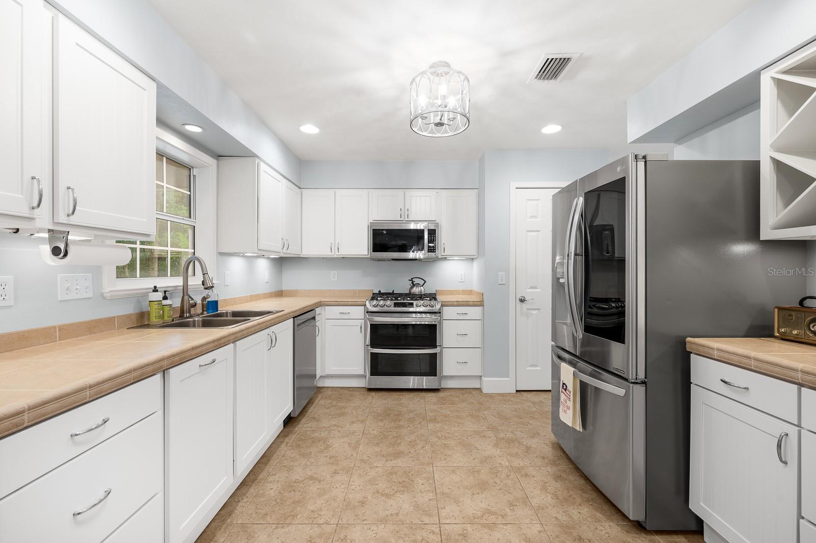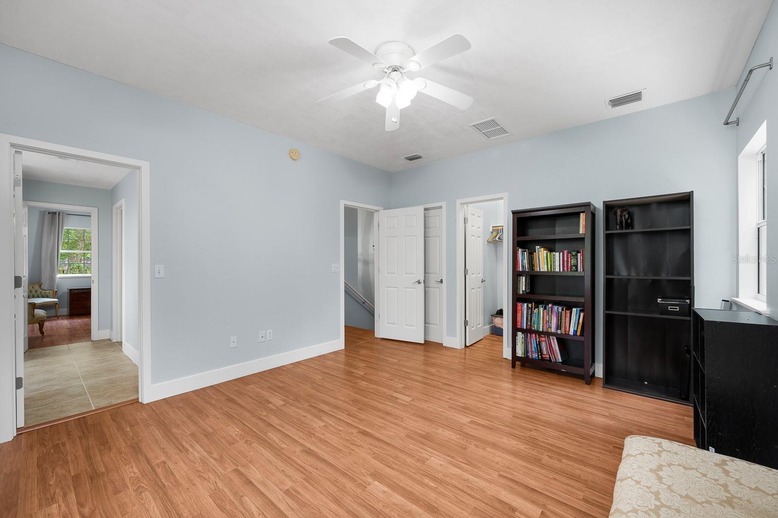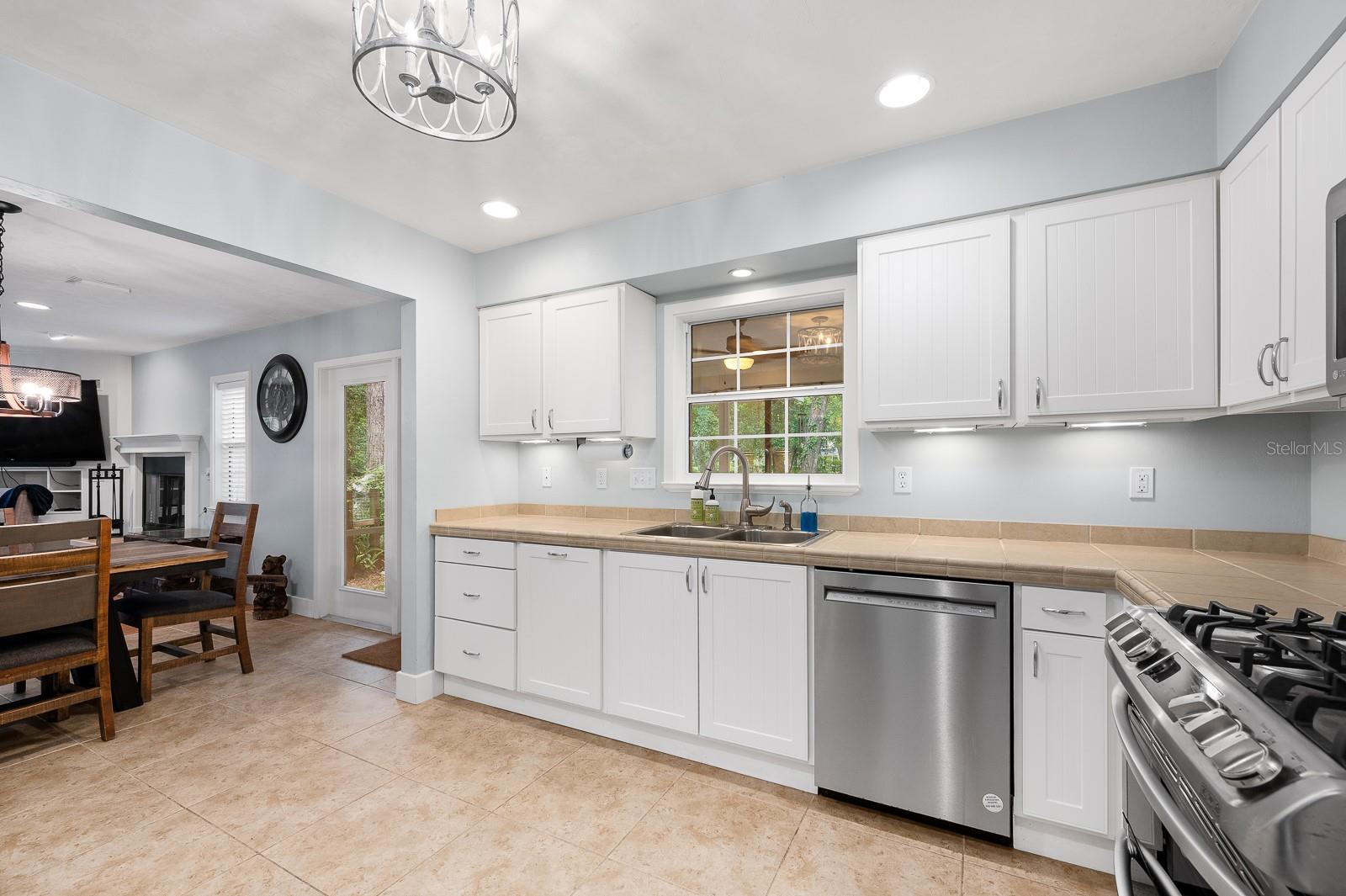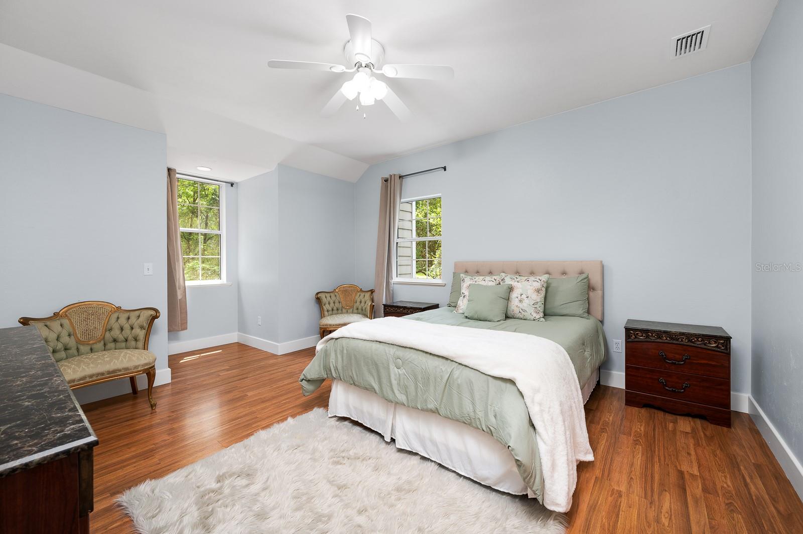 Welcome to a rare 1.73 acre retreat in highly sought-after SW Gainesville! This spacious custom 3 bedroom 2 and a half bath home can be found at the end of a private wooded driveway. You will love the open concept floor plan, the wood-burning fireplace, and the primary bedroom downstairs with french doors opening to the beautiful front porch. Every bedroom enjoys walk in closets, but the primary closet's built ins are not to be missed! Chefs will love the stainless steel appliances and gas range, meticulous homeowners will appreciate the wood and tile floors throughout--no carpet! Upstairs, 2 large bedrooms are connected by a light and bright jack and jill bathroom. Don't miss the surprise massive storage space upstairs (300sf) with the possibility for living space conversion. Relax on your screened back porch (with a gas grill hook up), and soak in the serenity of your fenced backyard with so many possibilities! There is plenty of outdoor storage--attached to your carport is a large lockable storage/workshop space with even more attic storage! Also enjoy lower utility costs with your well, septic tank, and tankless water heater!