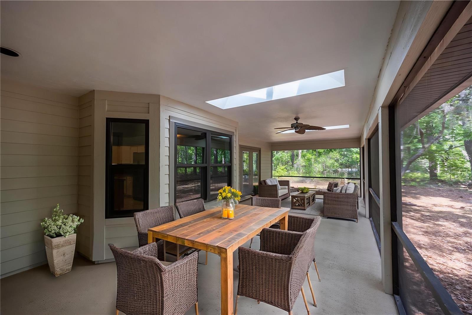 One or more photo(s) has been virtually staged. Welcome to this beautifully maintained 4-bedroom, 2-bathroom home located in the highly sought-after neighborhood, The Hammock. This lot is a prime location on a cul-de-sac and backing up to the San Felasco Preserve, offering an abundance of wildlife! Nestled on a peaceful scenic street with mature trees and lush landscaping, this home offers a perfect blend of comfort, functionality, and Florida charm. Step inside to a light-filled dining room featuring large front-facing windows—ideal for everyday meals or entertaining guests. The kitchen is a chef’s delight, offering abundant cabinet space, stainless steel appliances, and a cozy breakfast nook for casual dining. The spacious living room is the heart of the home, complete with a fireplace and French doors that lead to a screened-in porch—perfect for relaxing mornings or evening gatherings. The primary suite is your personal retreat with ample space, a walk-in closet, and a luxurious en-suite bathroom featuring a soaking tub, walk-in shower, and dual sink vanity. Three additional bedrooms provide flexibility for guest rooms, a home office, or creative spaces, and are served by a well-appointed guest bathroom. A large laundry room doubles as a convenient mudroom with direct access from the 2-car garage, making everyday living even more efficient. Located in The Hammock, known for its tranquility and convenient access to local parks, schools, and shopping—this home offers the perfect blend of privacy and accessibility. Don’t miss your chance to make this versatile and welcoming property your new home!