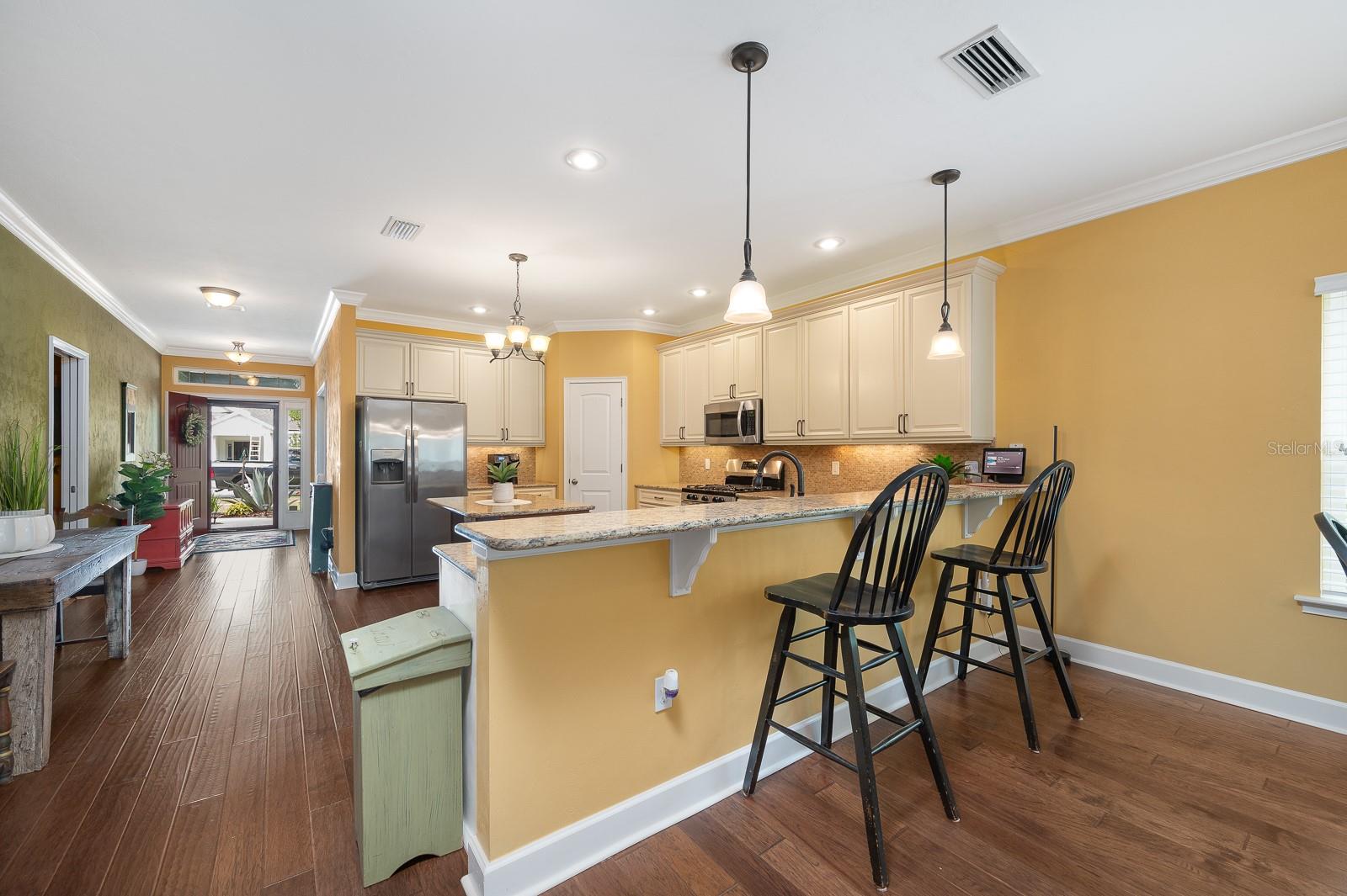 Immaculate & Move-In Ready in Longleaf! Pride of ownership is on full display in this beautifully maintained 4-bedroom, 2.5-bath home with a versatile bonus room, located in the highly sought-after Longleaf community in West Gainesville. This home features an open floor plan filled with natural light and high ceilings throughout, creating a bright, spacious, and inviting atmosphere. The kitchen is a true centerpiece, featuring granite countertops, solid wood cabinetry, stainless steel appliances, a large island, and a dry bar. The full hardiboard plank exterior and ceilings throughout were freshly painted in 2025, while hand-scraped wood flooring enhances the high-traffic areas with warmth and character. The spacious primary suite boasts a tray ceiling, walk-in shower, large dual vanities, and a massive walk-in closet. A cozy gas fireplace anchors the main living space, and the bonus room provides incredible flexibility—ideal as an office, playroom, workout space, or guest area. Step outside to a covered back patio where stone pavers lead to a custom-built fire pit, all overlooking a peaceful, tree-lined backdrop with no rear neighbors. The landscaping is beautifully kept and low-maintenance, and the HOA maintains the front yard, replaces mulch, and sprays for pests—taking care of the exterior so you can focus on enjoying your home. The two-car garage was widened during construction to provide additional space for storage, tools, bikes, or weekend projects—a thoughtful and practical upgrade. Additional perks include a UV light AC system designed to help neutralize airborne viruses (including COVID), an active termite bond, a regularly serviced AC system, fiber optic internet, and underground utilities. Longleaf’s fantastic amenities elevate the lifestyle even further—with a top-of-the-line beach-entry pool area, splash pad, playground, streetlights, a beautiful clubhouse, sidewalks throughout the neighborhood, basketball, pickleball, tennis courts, and more. All this just 5 minutes from the shops, restaurants, Hawkstone Country Club golf, and farmer’s market at Haile Village Center, and only 20 minutes to UF, Shands, the VA, Santa Fe College, and downtown Gainesville. Quick and easy access to I-75 makes commuting simple!