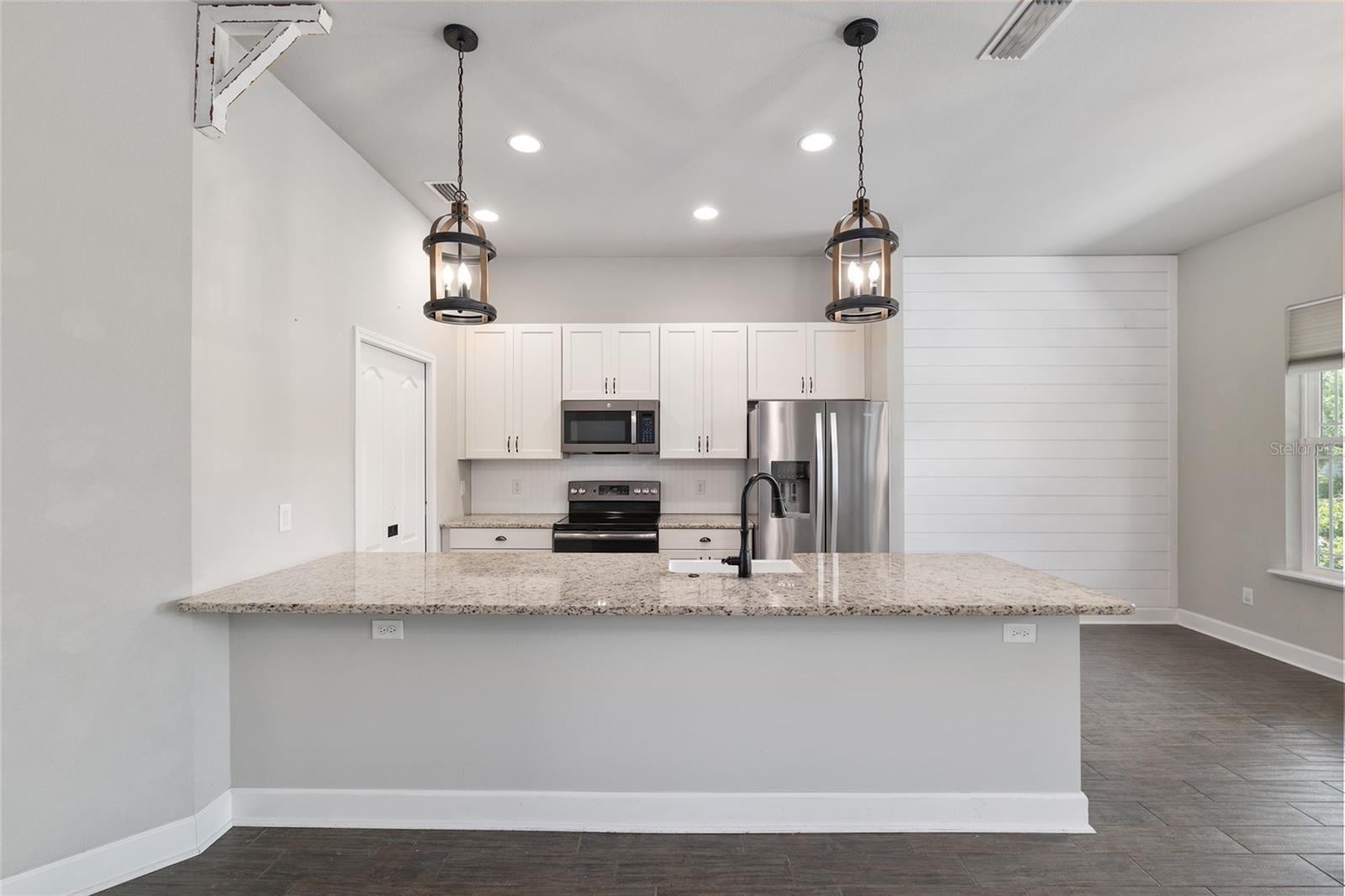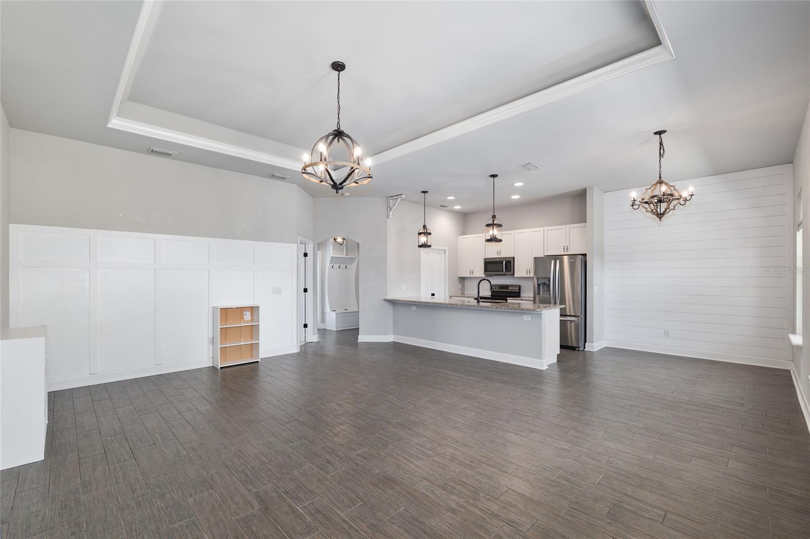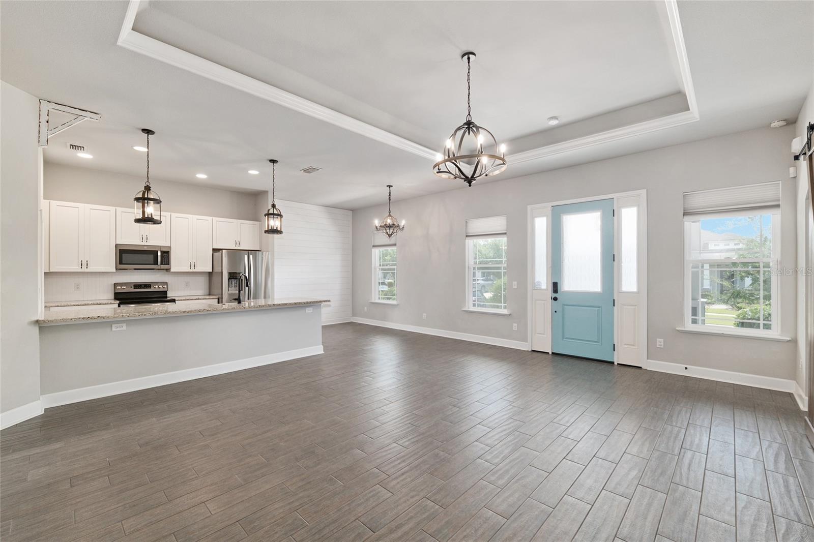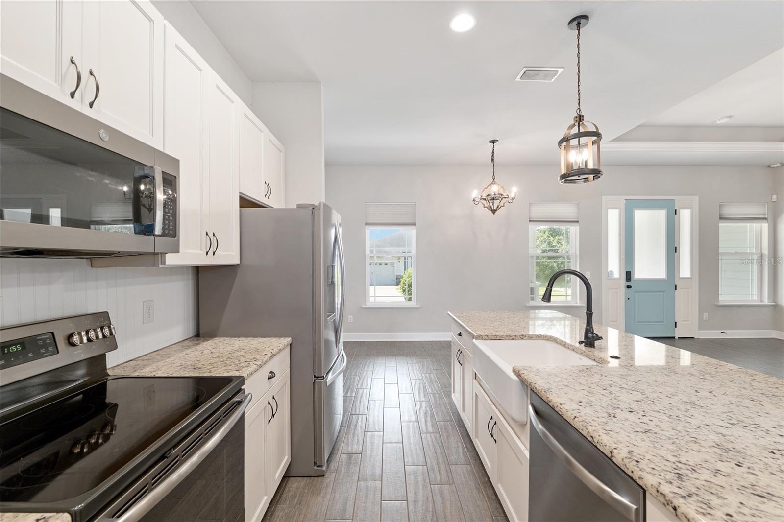If you want to make the move to Oakmont, act fast....this home is now price reduced, and is the LOWEST priced home in the fabulous neighborhood! This adorable 3-bedroom, 2 bath, Tommy Williams popular Kingston floor plan home, offers an energy-efficient quality-built home with an open, two-way split floor. The front elevation, with its charming Craftsman exterior, has a front porch perfect for casual furniture or a pair of rocking chairs. The front door opens onto the living space. Complete with wood-look, porcelain tile in the living space, dining area, kitchen and laundry room, this home has an easy flow for daily living and casual entertaining. Best features of the family room include a step-up tray ceiling with cove lighting and three large, east-facing windows for natural light. The open, inviting kitchen is designed with a white farmhouse sink, GE appliances and large pot and pan cabinet. There is a separate pantry, modern farmhouse pendant lighting and a breakfast bar for casual seating. The adjacent dining space features a tongue-n-groove accent wall, and a window that overlooks the covered front porch. Opposite the kitchen is the guest wing of the home. With a custom barn door at the hallway entrance, close off this wing from the family room for privacy. The two guest rooms are similar in size and share a hallway bath. The spacious owner suite bathroom features a walk-in shower, dual shower heads and wood closet organizational system. Next to the rear French door is the separate laundry room with washer hookups, a Samsung dryer, and two upper sets of cabinets for storage. Between the laundry room and the rear French door is a built-in stop-n-drop convenience center so you have a place to hang backpacks, laptop bags, and coats. The bottom section has a hinged door for quick storage, and the upper part has two open cubbies. The covered rear patio has a wall-mounted TV and a porch swing. Between the home and the detached 2 car garage is a trellised area for lounge furniture or use as your grilling space. With the garage detached from the home, there is plenty of grassed areas for fun and play. There is also a paver fire pit and an enclosed outdoor shower. The SOLAR PANEL system enables your economical CLAY ELECTRIC bill to be even more affordable. Learn to love the “Oakmont life-style” with its renown amenity center complete with a Clubhouse with catering kitchen, a 3000 SF fitness center with on-demand pilates and yoga classes, tennis and basketball courts, a pool with splash zone, and nearby greenspace for outdoor play. Offering a perfect blend of comfort, convenience, and luxury living, this Oakmont residence presents an unparalleled opportunity to enjoy all that Oakmont has to offer.
