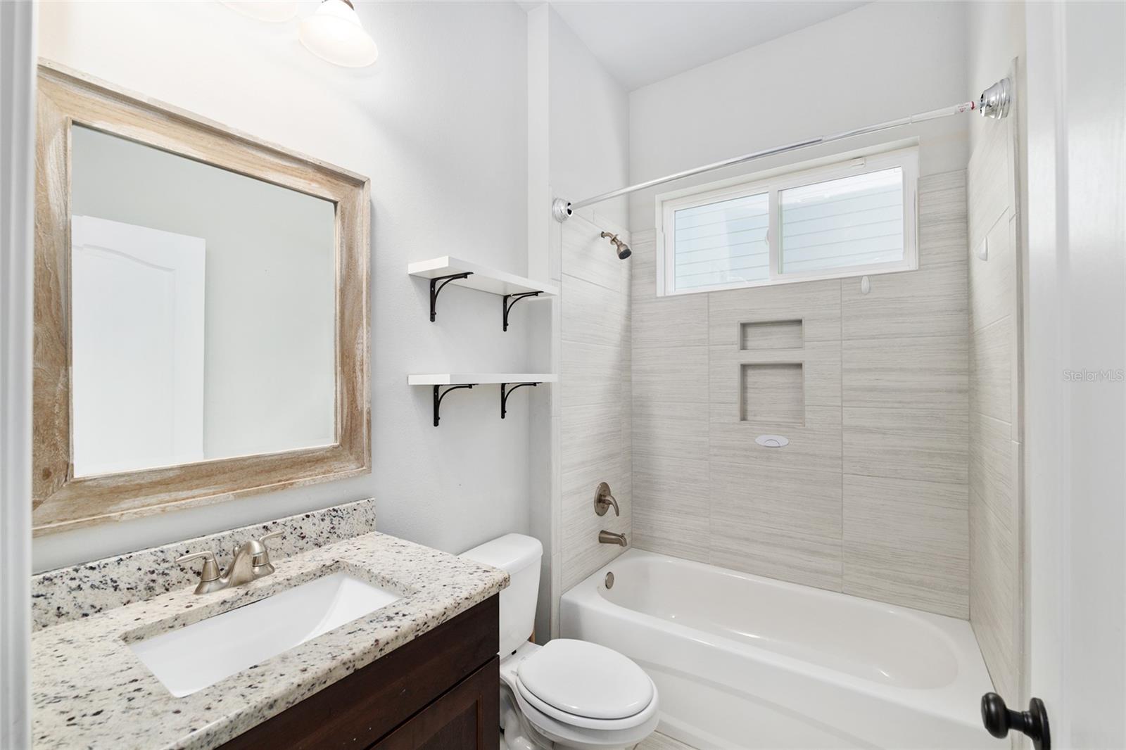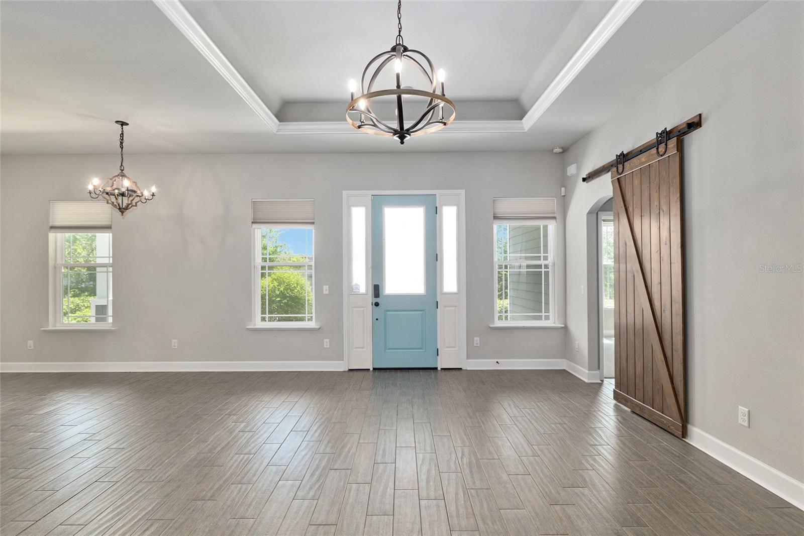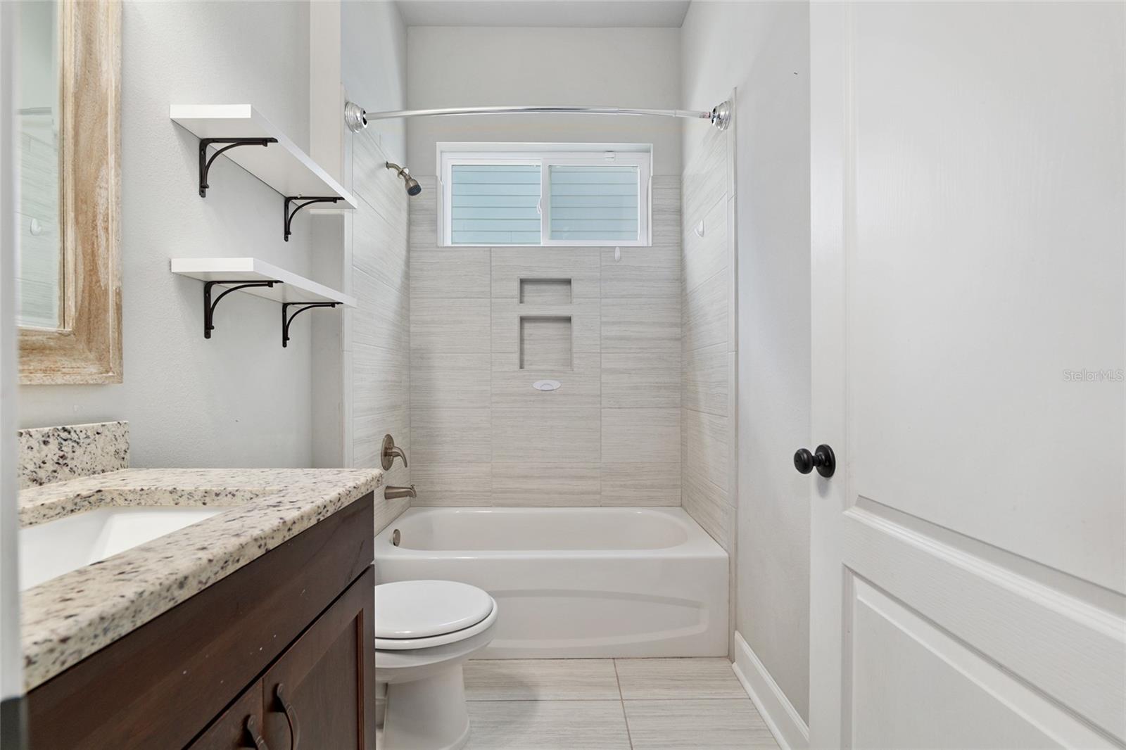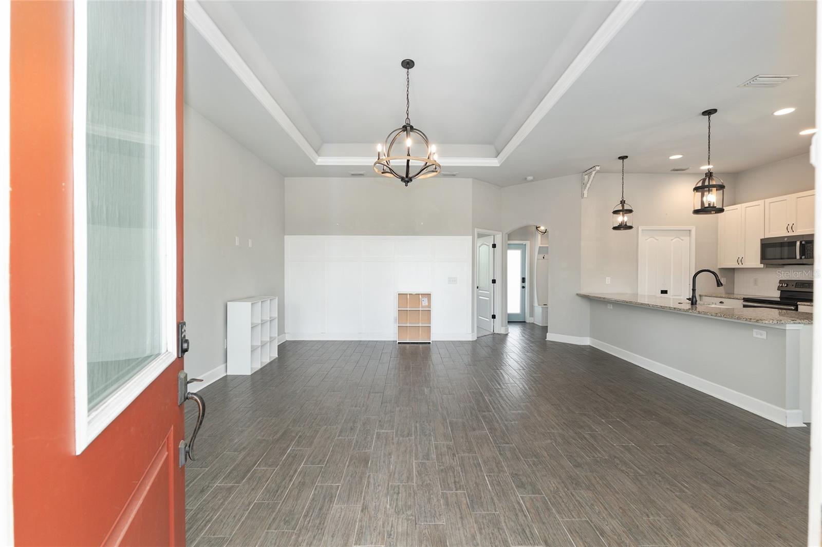 If you want to make the move to Oakmont, act fast....this home is now price reduced, and is the LOWEST priced home in the fabulous neighborhood! This adorable 3-bedroom, 2 bath, Tommy Williams popular Kingston floor plan home, offers an energy-efficient quality-built home with an open, two-way split floor. The front elevation, with its charming Craftsman exterior, has a front porch perfect for casual furniture or a pair of rocking chairs. The front door opens onto the living space. Complete with wood-look, porcelain tile in the living space, dining area, kitchen and laundry room, this home has an easy flow for daily living and casual entertaining. Best features of the family room include a step-up tray ceiling with cove lighting and three large, east-facing windows for natural light. The open, inviting kitchen is designed with a white farmhouse sink, GE appliances and large pot and pan cabinet. There is a separate pantry, modern farmhouse pendant lighting and a breakfast bar for casual seating. The adjacent dining space features a tongue-n-groove accent wall, and a window that overlooks the covered front porch. Opposite the kitchen is the guest wing of the home. With a custom barn door at the hallway entrance, close off this wing from the family room for privacy. The two guest rooms are similar in size and share a hallway bath. The spacious owner suite bathroom features a walk-in shower, dual shower heads and wood closet organizational system. Next to the rear French door is the separate laundry room with washer hookups, a Samsung dryer, and two upper sets of cabinets for storage. Between the laundry room and the rear French door is a built-in stop-n-drop convenience center so you have a place to hang backpacks, laptop bags, and coats. The bottom section has a hinged door for quick storage, and the upper part has two open cubbies. The covered rear patio has a wall-mounted TV and a porch swing. Between the home and the detached 2 car garage is a trellised area for lounge furniture or use as your grilling space. With the garage detached from the home, there is plenty of grassed areas for fun and play. There is also a paver fire pit and an enclosed outdoor shower. The SOLAR PANEL system enables your economical CLAY ELECTRIC bill to be even more affordable. Learn to love the “Oakmont life-style” with its renown amenity center complete with a Clubhouse with catering kitchen, a 3000 SF fitness center with on-demand pilates and yoga classes, tennis and basketball courts, a pool with splash zone, and nearby greenspace for outdoor play. Offering a perfect blend of comfort, convenience, and luxury living, this Oakmont residence presents an unparalleled opportunity to enjoy all that Oakmont has to offer.