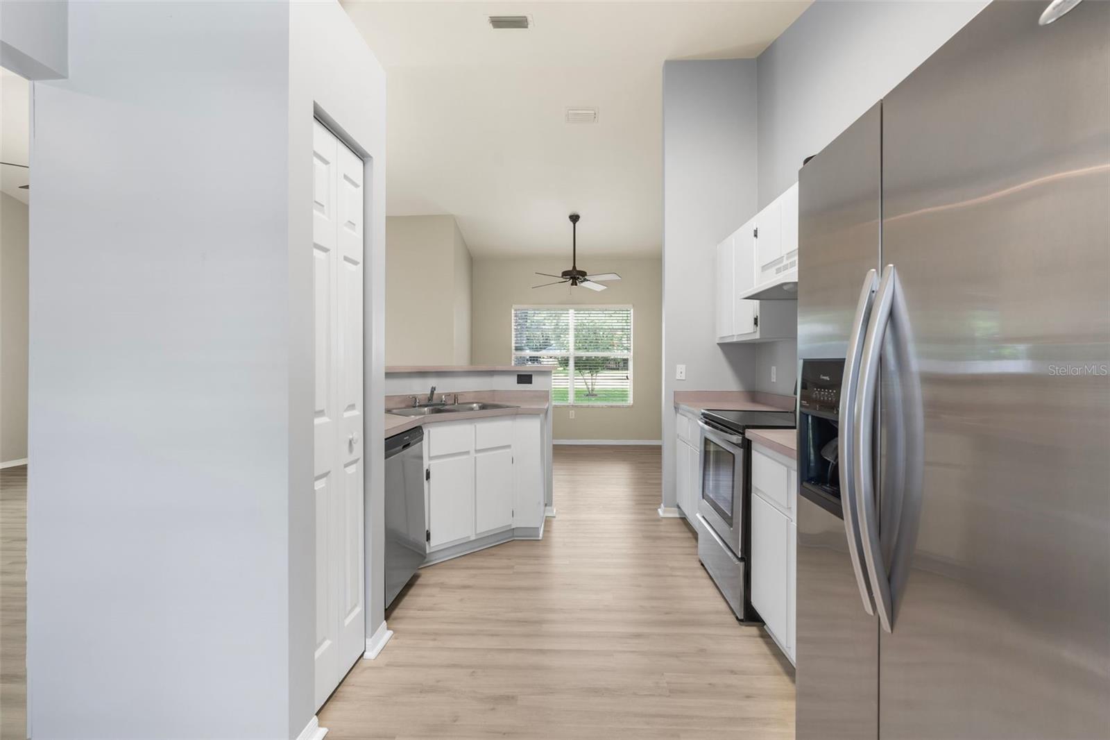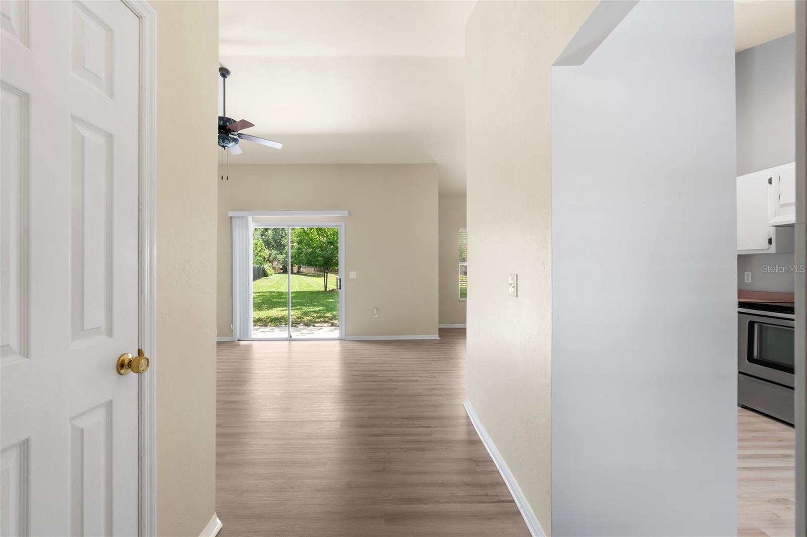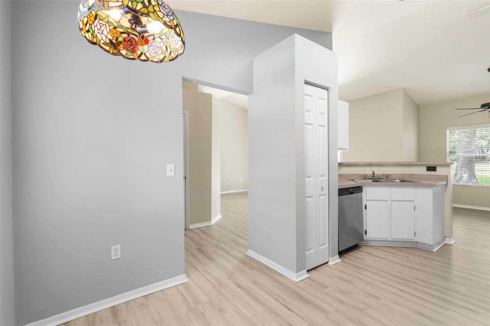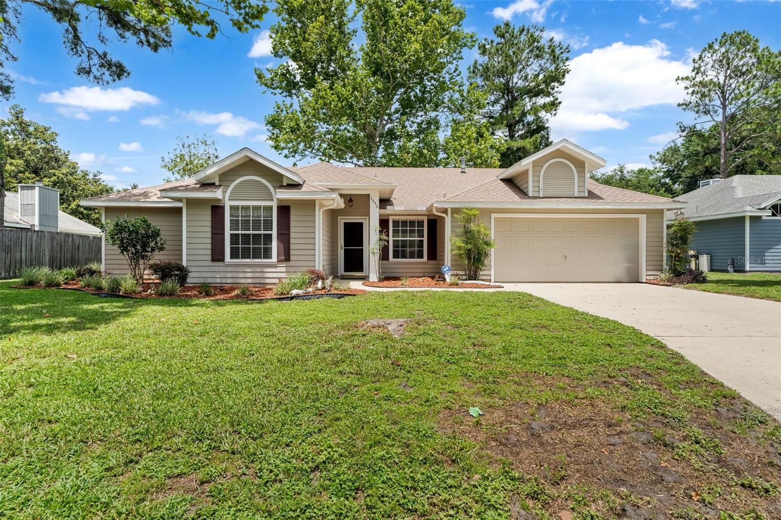 Welcome to this beautifully updated 3-bedroom, 2-bath home located in the desirable Millhopper Station - Grand Central Station neighborhood of NW Gainesville. Featuring brand-new luxury vinyl plank flooring throughout and fresh interior paint, this home offers a clean, modern feel from the moment you walk in. The split floor plan provides privacy and functionality, with the primary suite separated from the additional bedrooms. The open living and dining area is perfect for everyday living or entertaining. Kitchen features updated stainless appliances. Enjoy peaceful views and added privacy with no rear neighbors—this home backs up to a serene pond, creating a relaxing natural backdrop. Major updates have already been taken care of, including a 2015 HVAC system, a 2012 roof, full replumb and new water heater in 2024. The exterior has been resided with durable Hardie board, adding long-term value and curb appeal. Conveniently located near shopping, dining, parks, and schools, this home is move-in ready and offers peace of mind with its thoughtful upgrades.