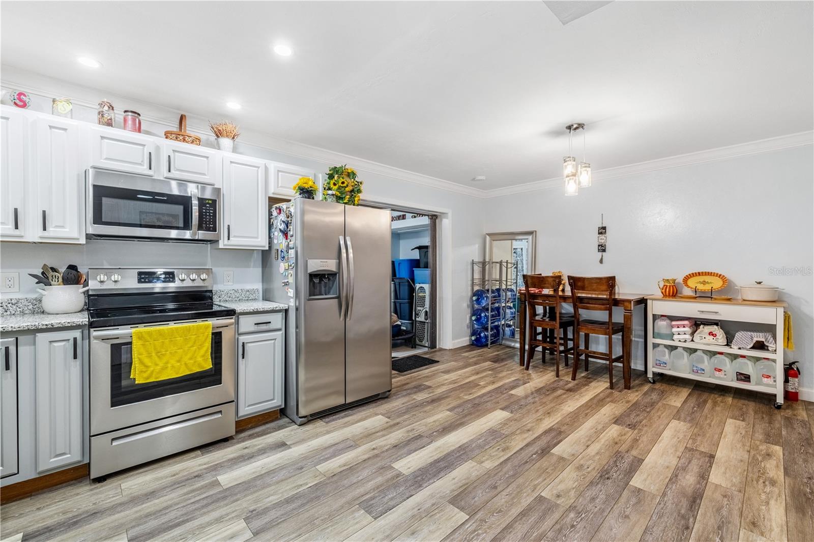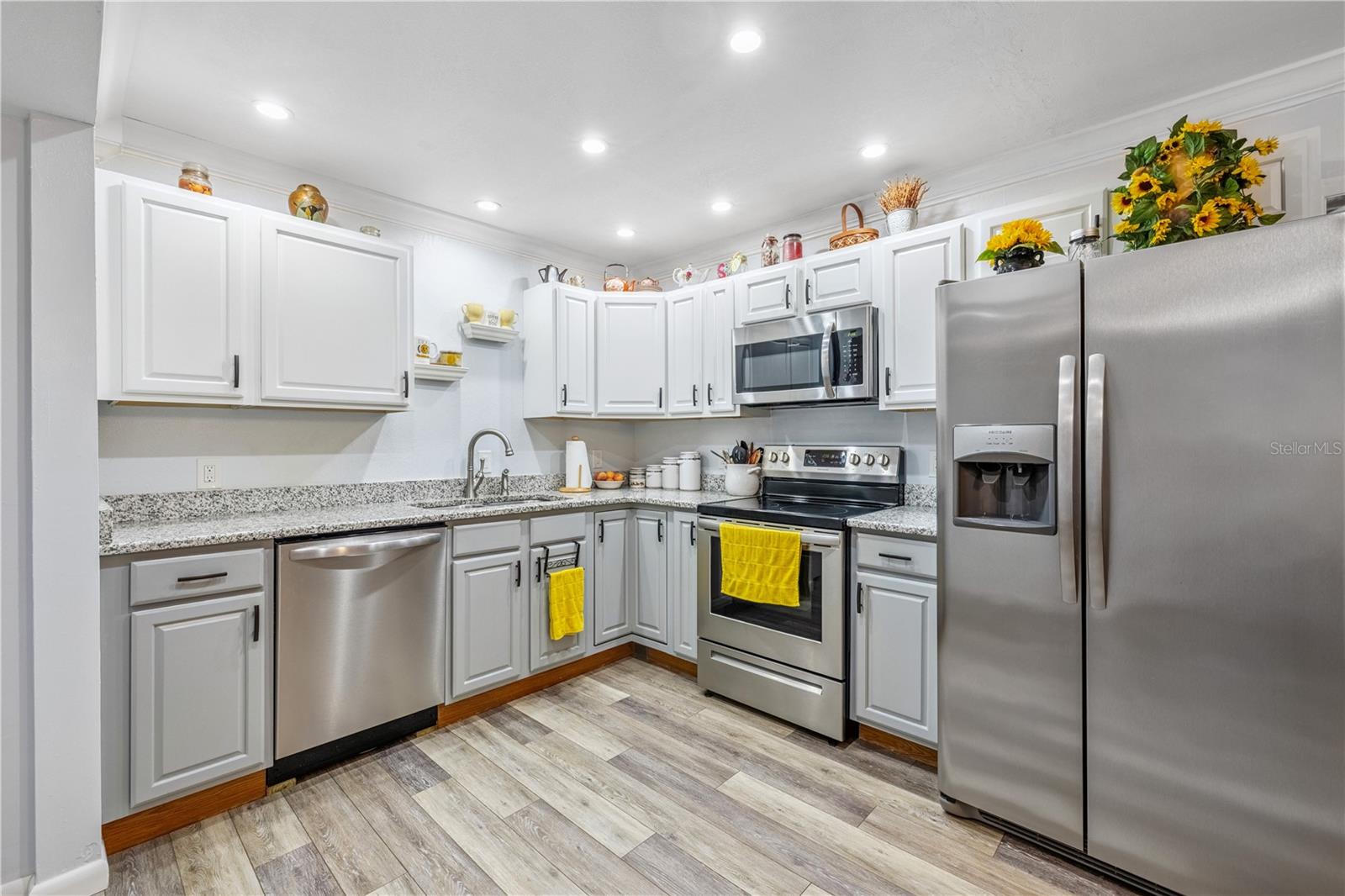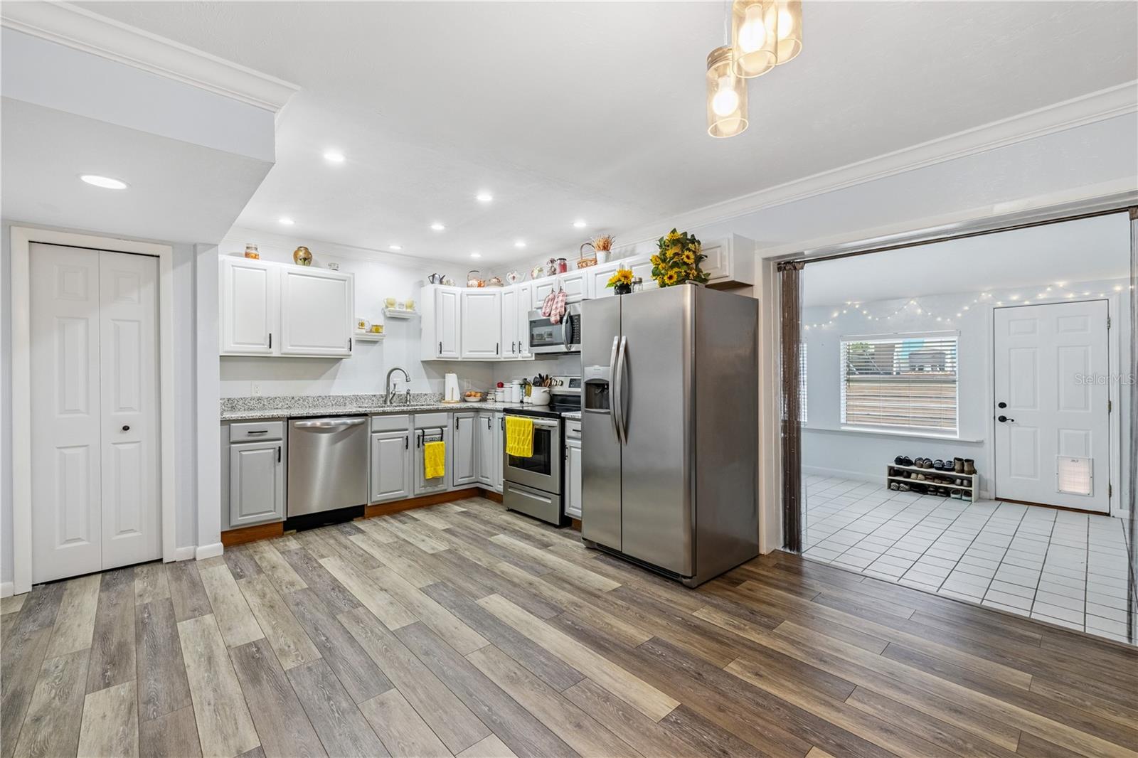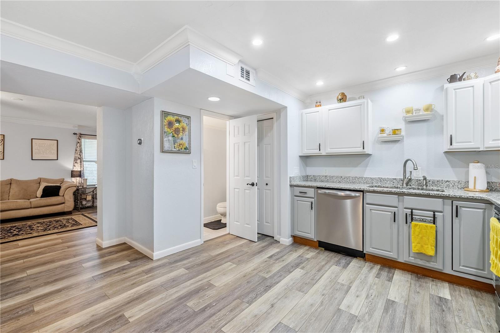 Seller is HIGHLY motivated and will include a FREE 1-year home warranty with purchase! This beautifully updated 3-bedroom, 1.5-bath condo in the peaceful Hills of Santa Fe community offers 1,182 sq. ft. of well-designed living space. Inside you’ll find durable laminate flooring throughout (no carpet), a fresh neutral palette, and crown molding for a modern yet cozy feel. The kitchen features granite countertops, stainless steel appliances, and an open layout that flows seamlessly into the spacious living room, complete with a charming corner fireplace. A versatile bonus room off the kitchen—measuring approximately 10'11" by 19'6"—adds valuable flex space and is currently cooled with AC, making it ideal for a home office, playroom, or additional sitting area. The bathrooms have been stylishly updated, and thoughtful touches like new light fixtures and updated finishes elevate the overall look and feel. Outside, you’ll find a private fenced yard with a wooden deck and gate, perfect for relaxing or entertaining. The detached one-car garage offers added convenience and storage. Located on a quiet cul-de-sac with only one entry and exit, the home provides both privacy and a true sense of neighborhood. Condo dues include roof and siding maintenance, lawn care, and termite treatment, offering low-maintenance living. Zoned for Hidden Oak Elementary, Fort Clarke Middle, and Buchholz High School, this home is also conveniently located near Santa Fe College, shopping, parks, and medical facilities. Whether you're a first-time homebuyer, investor, or looking to downsize, this move-in-ready condo is a rare find in a desirable Gainesville location.